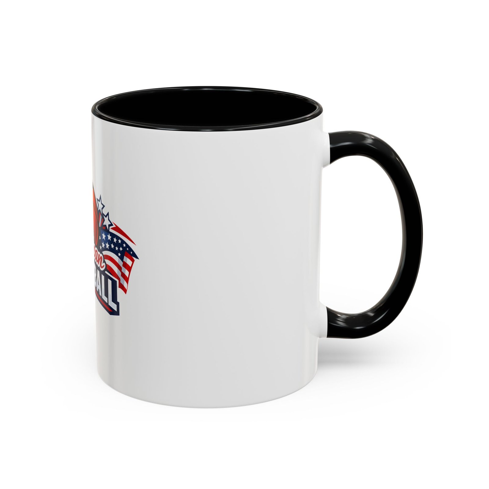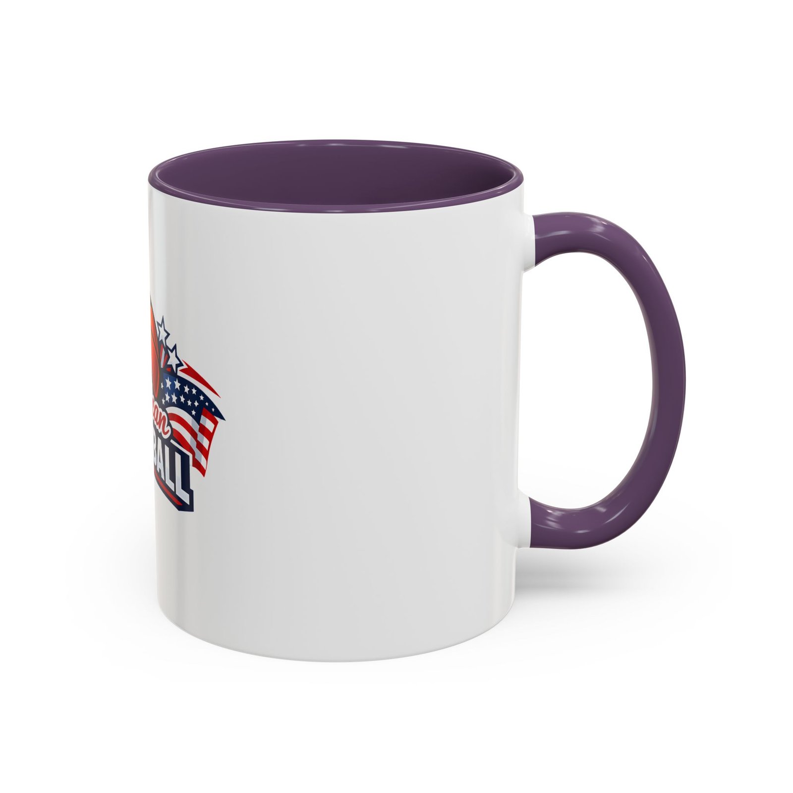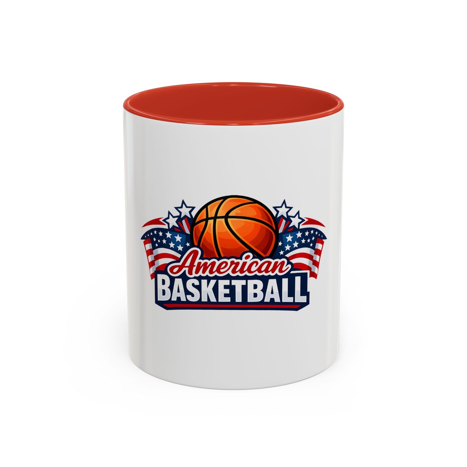 A bold ceramic mug that celebrates American basketball spirit with every sip. The glossy white exterior is bright and clean, while the colored interior and handle add an energetic contrast that highlights the vibrant basketball-and-flag artwork. Hold it between games, on early morning shoots, or while planning the next tournament—this mug brings a little hometown pride and court-side nostalgia to coffee, tea, or hot cocoa. It feels sturdy in the hand thanks to the C-shaped handle and keeps colors crisp through daily use and dishwasher cycles.