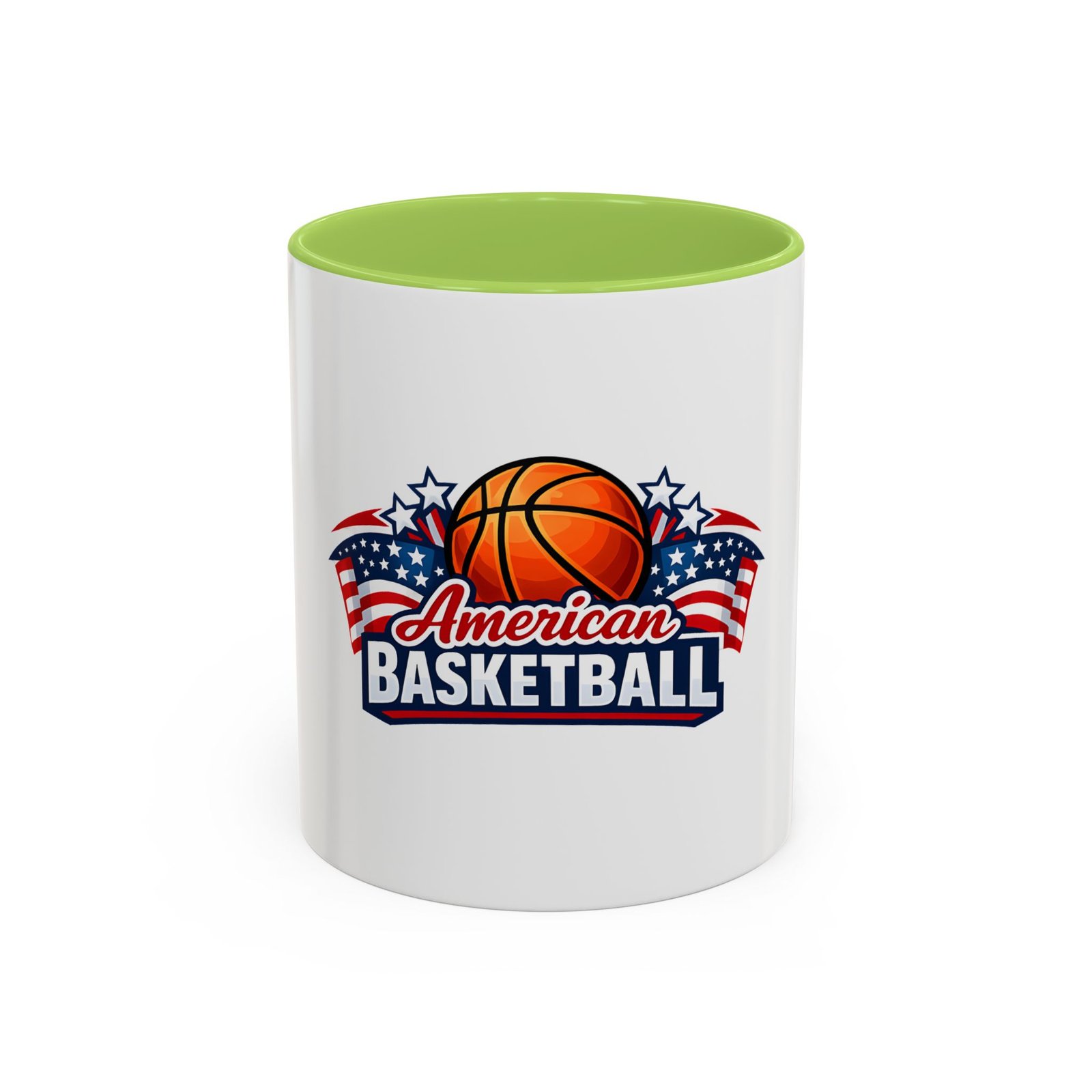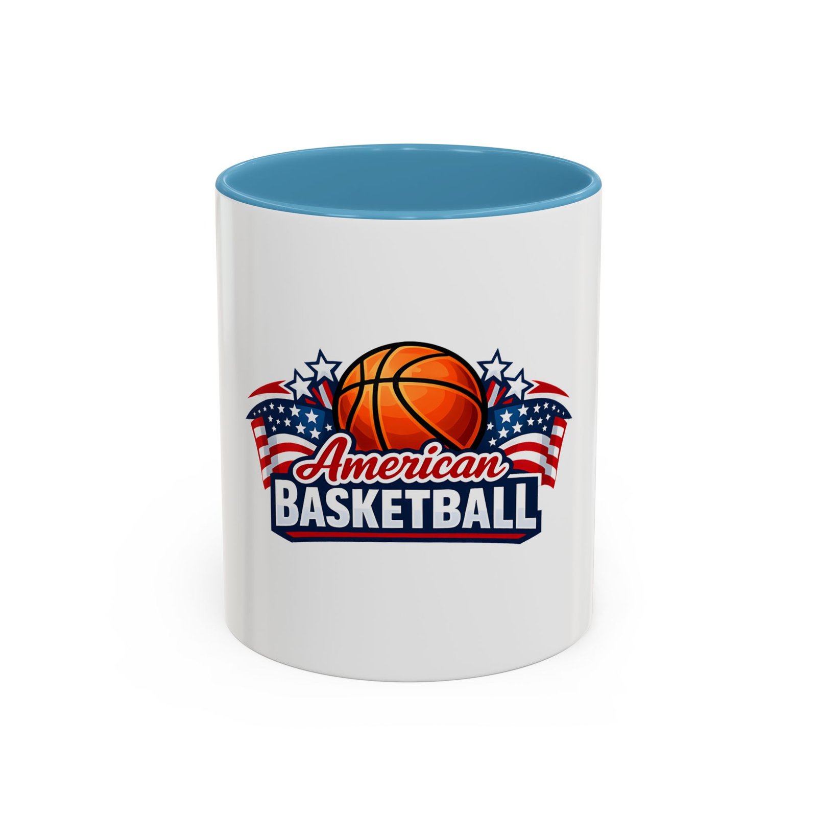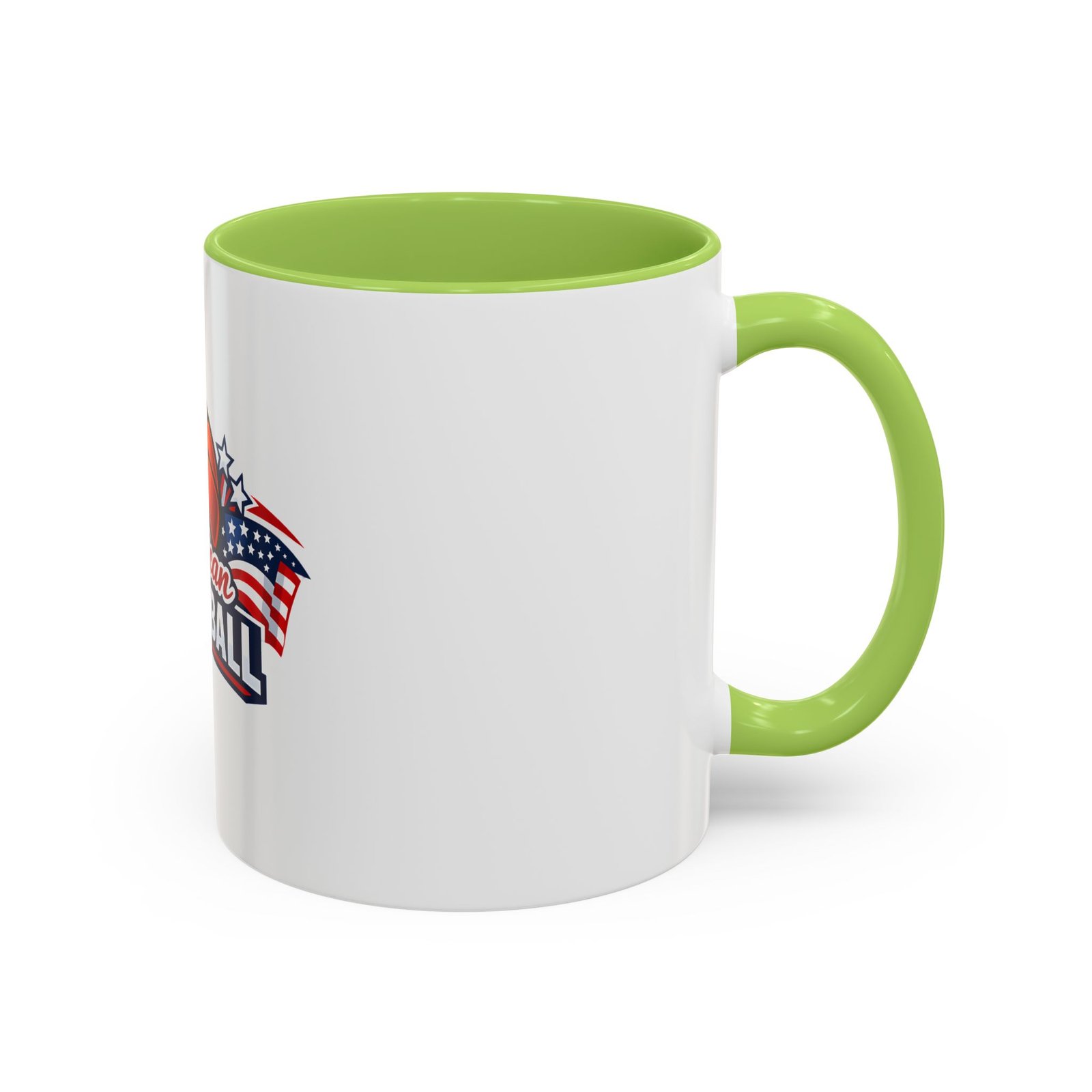 A bold ceramic mug that celebrates American basketball spirit with every sip. The glossy white exterior is bright and clean, while the colored interior and handle add an energetic contrast that highlights the vibrant basketball-and-flag artwork. Hold it between games, on early morning shoots, or while planning the next tournament—this mug brings a little hometown pride and court-side nostalgia to coffee, tea, or hot cocoa. It feels sturdy in the hand thanks to the C-shaped handle and keeps colors crisp through daily use and dishwasher cycles.