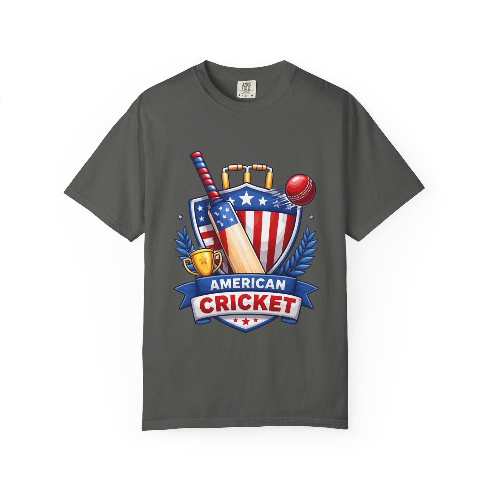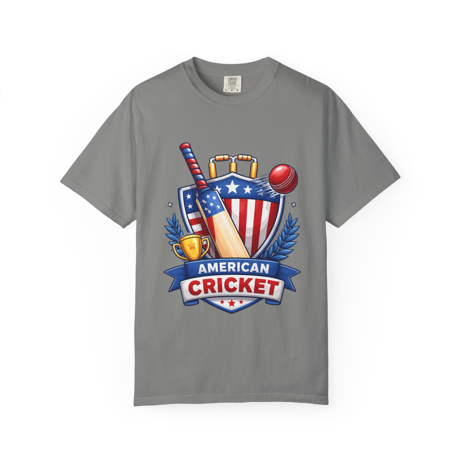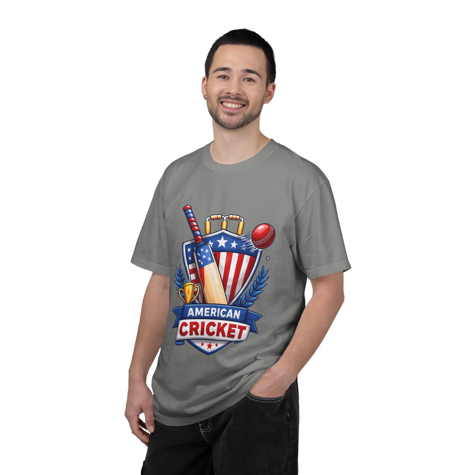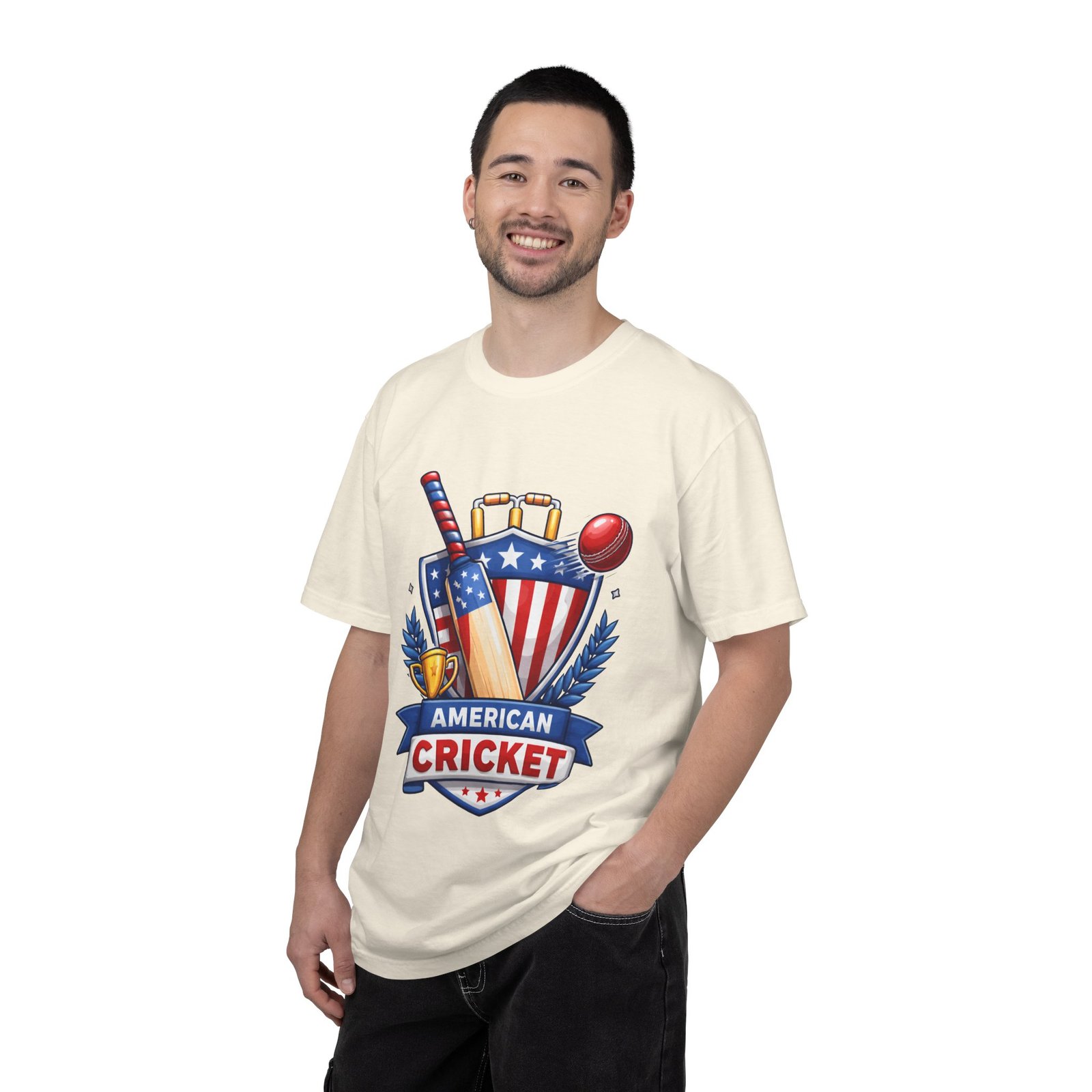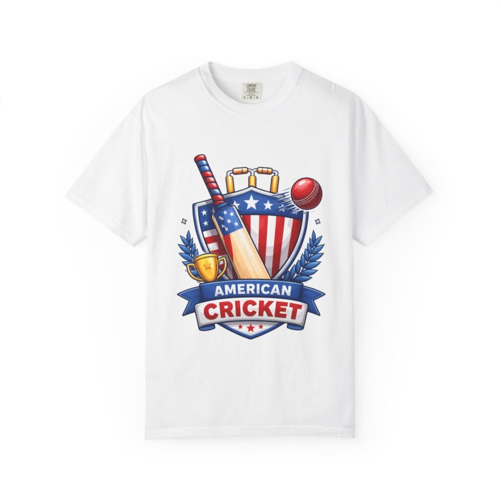 Wear your love for the game with quiet confidence. This heavyweight, garment-dyed tee carries a bold American Cricket emblem—bat, ball and shield—so you look like you belong on the pitch or cheering from the sidelines. The dye-after-construction finish gives the shirt a lived-in softness and gentle color depth that only improves over washes. Cut with a relaxed fit and durable double-needle stitching, it moves with weekend practices, park matches, and long grill-side conversations. Available in many sizes and colors, it settles into your regular rotation and becomes the shirt you reach for when you want to broadcast team pride without shouting it.