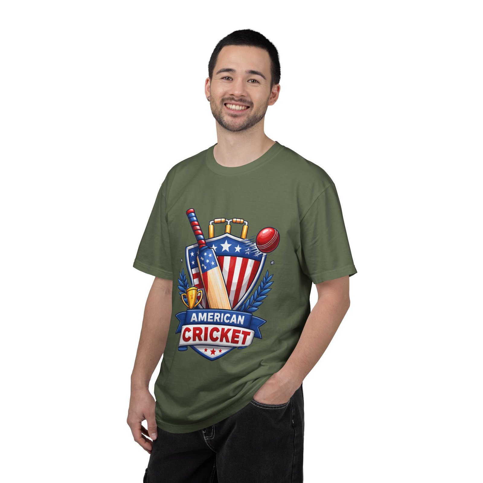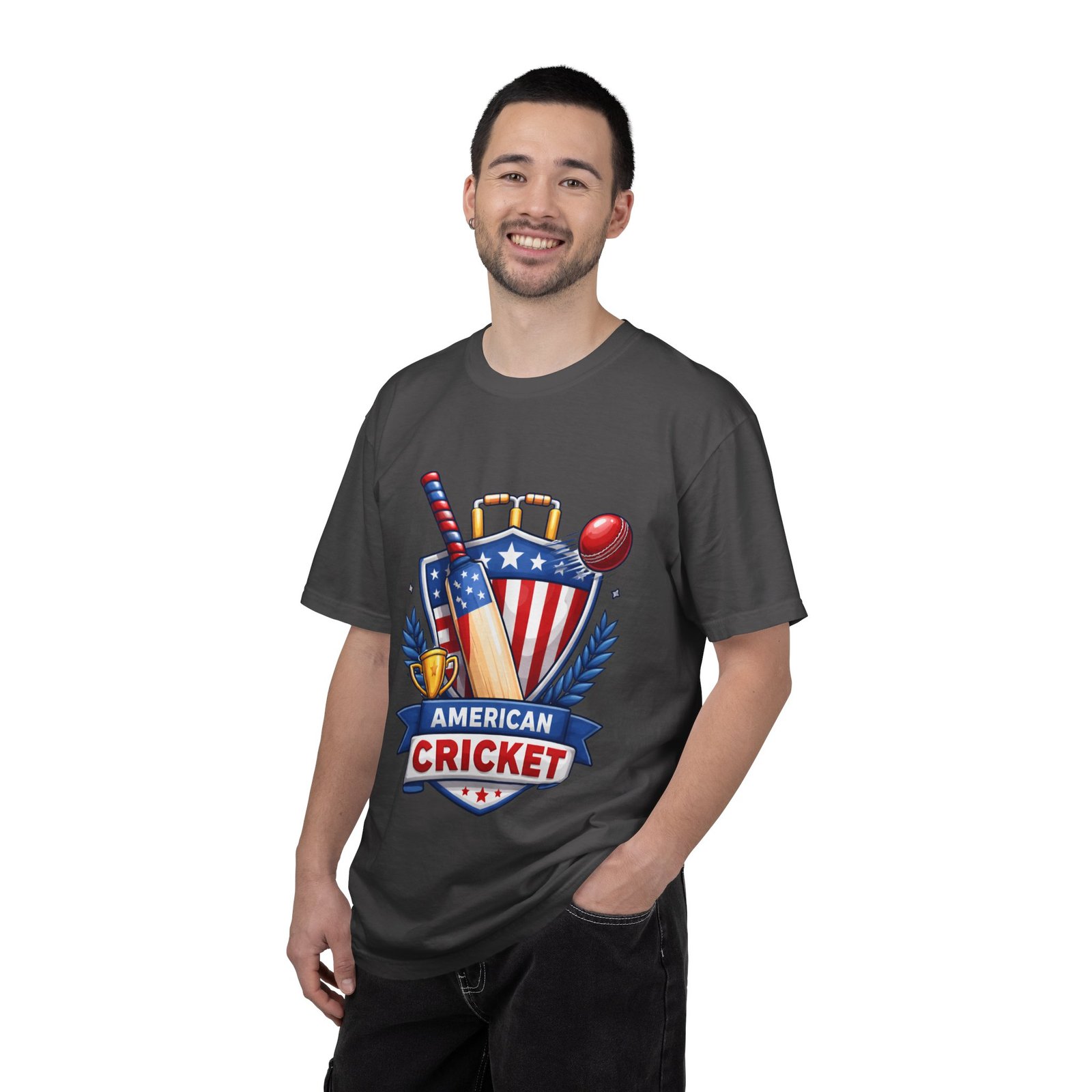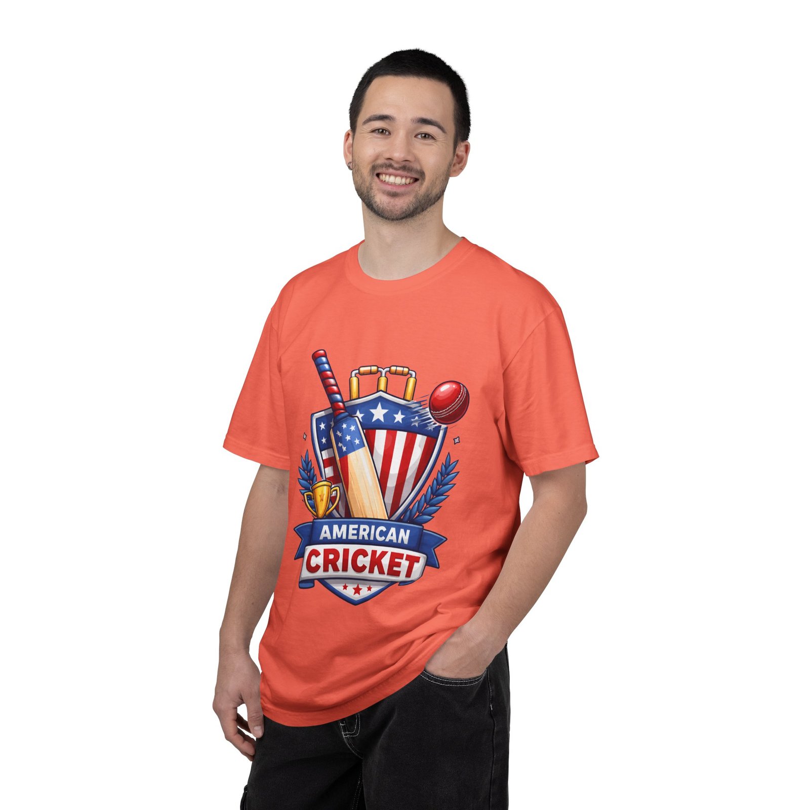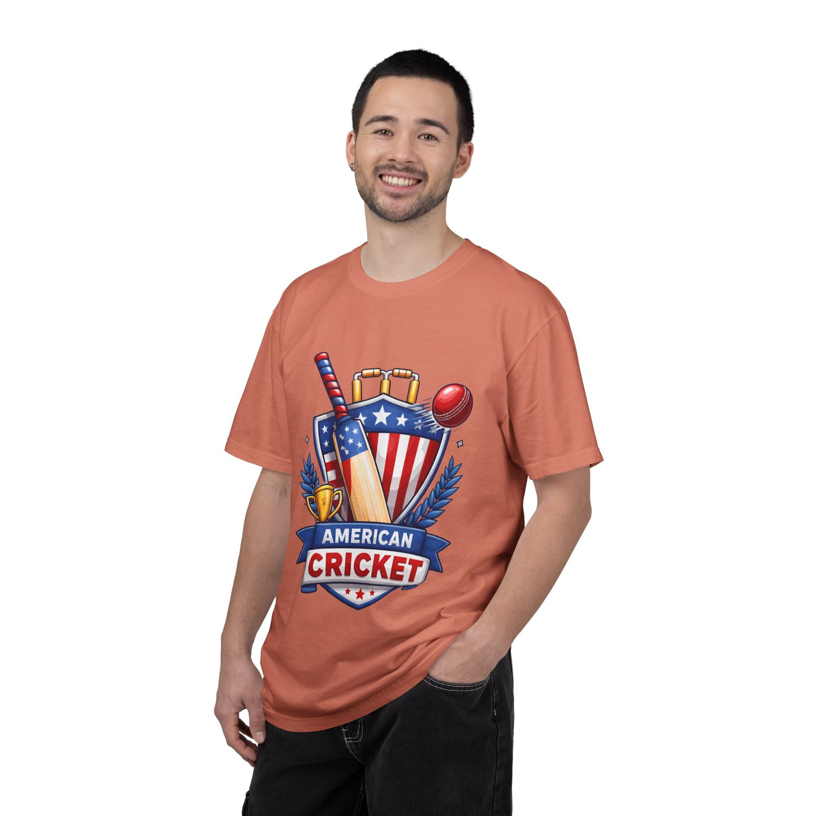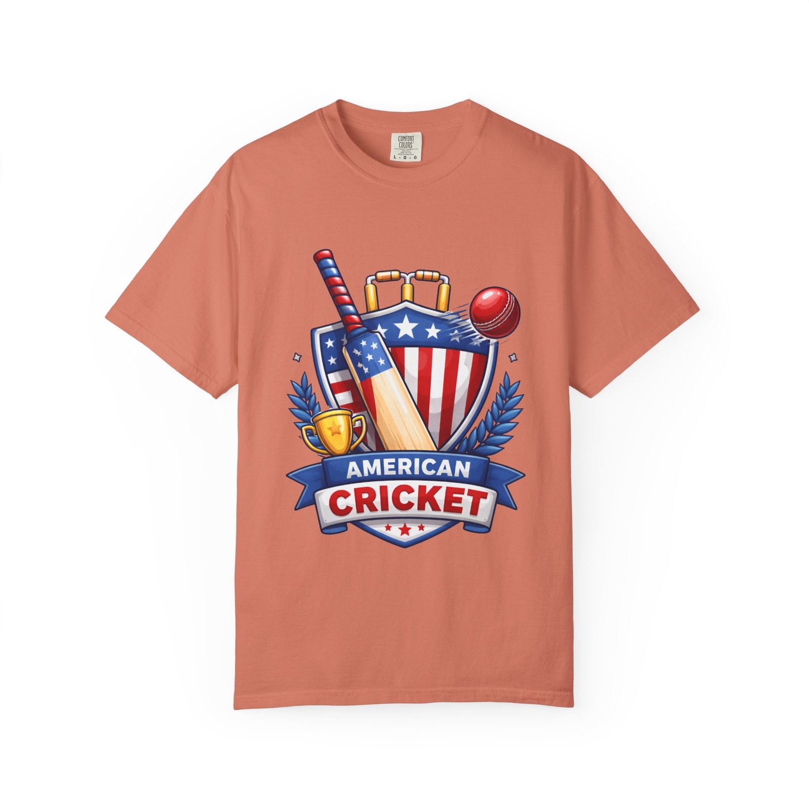 Wear your love for the game with quiet confidence. This heavyweight, garment-dyed tee carries a bold American Cricket emblem—bat, ball and shield—so you look like you belong on the pitch or cheering from the sidelines. The dye-after-construction finish gives the shirt a lived-in softness and gentle color depth that only improves over washes. Cut with a relaxed fit and durable double-needle stitching, it moves with weekend practices, park matches, and long grill-side conversations. Available in many sizes and colors, it settles into your regular rotation and becomes the shirt you reach for when you want to broadcast team pride without shouting it.