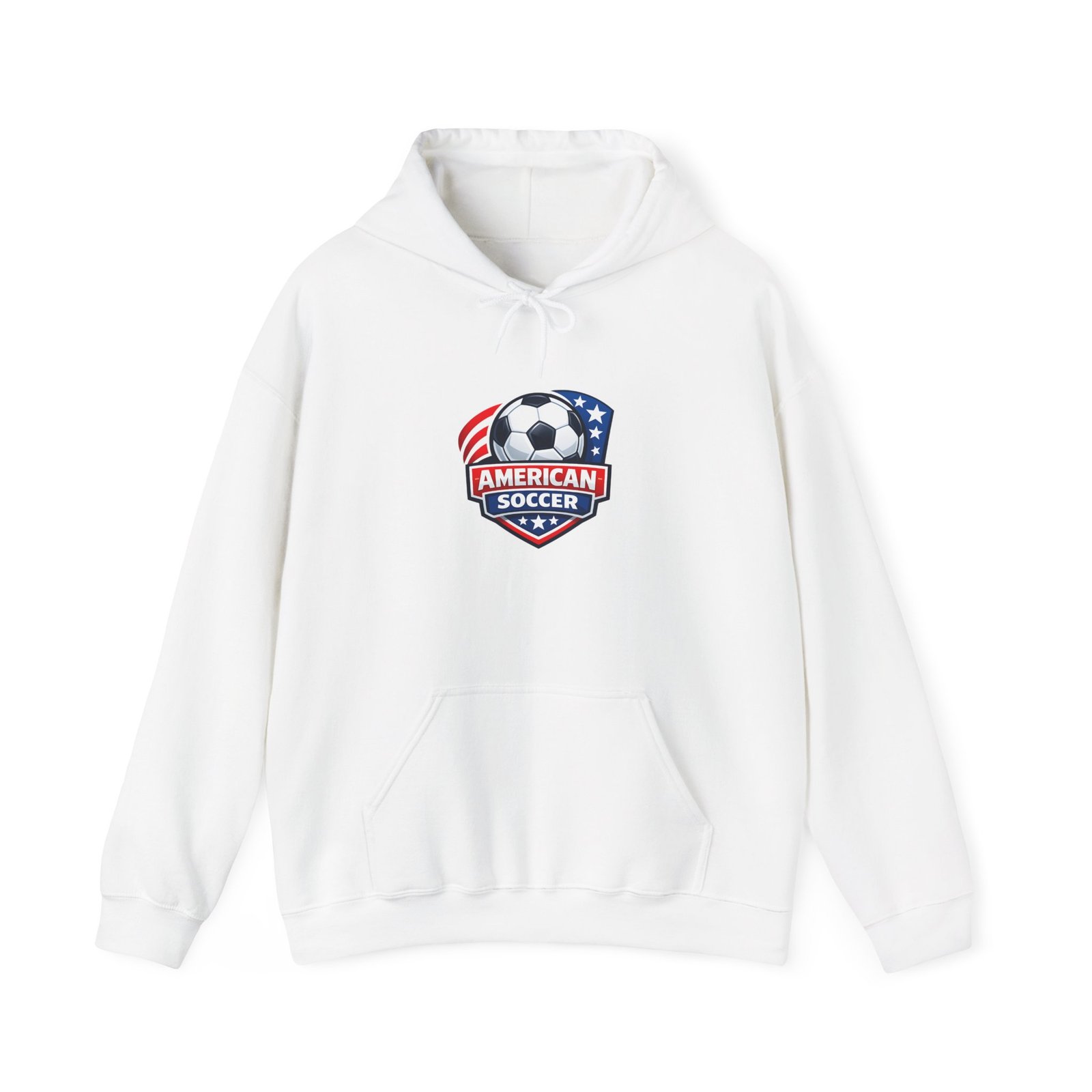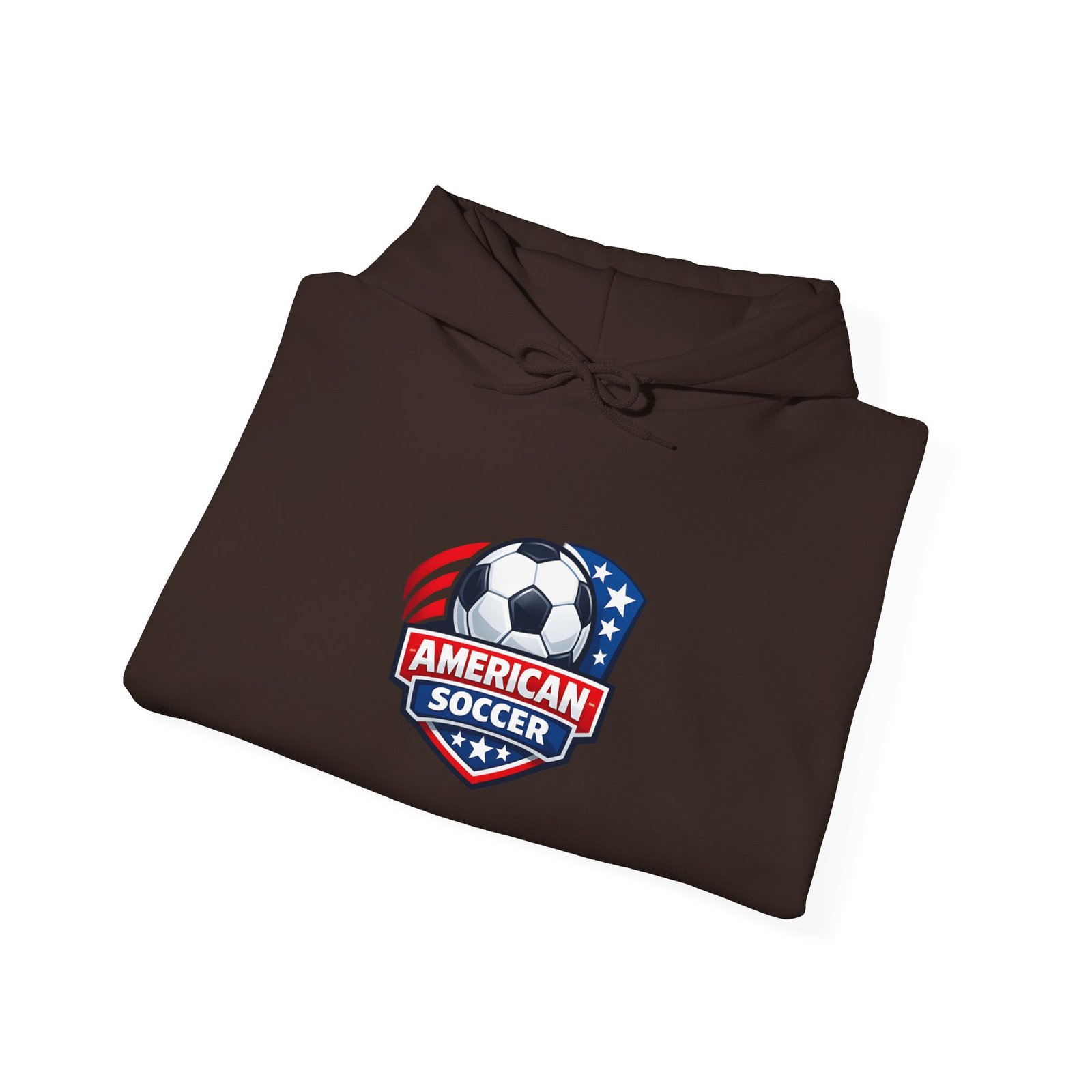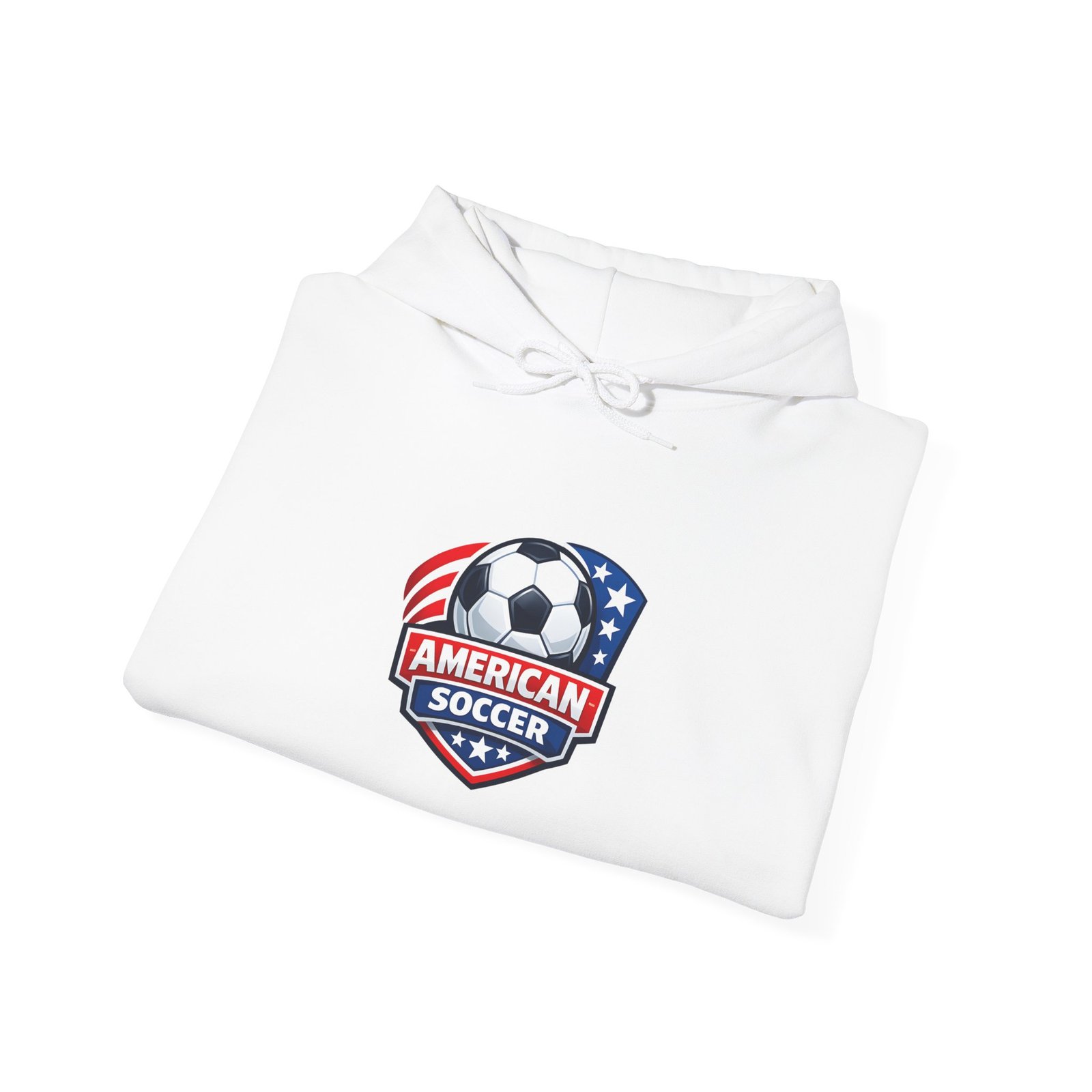 Wear your team pride with a soft, cozy hoodie that carries a bold American soccer emblem at the chest. The medium-weight fabric traps warmth without feeling bulky, and the double-lined hood and color-matched drawcord give it a finished, sporty look. Slip your hands into the roomy kangaroo pocket between training sessions, tailgate crowds, or weekend walks. Clean, classic lines and durable printing mean this hoodie moves from practice to post-game hangs with ease — familiar, comfortable, and quietly proud.