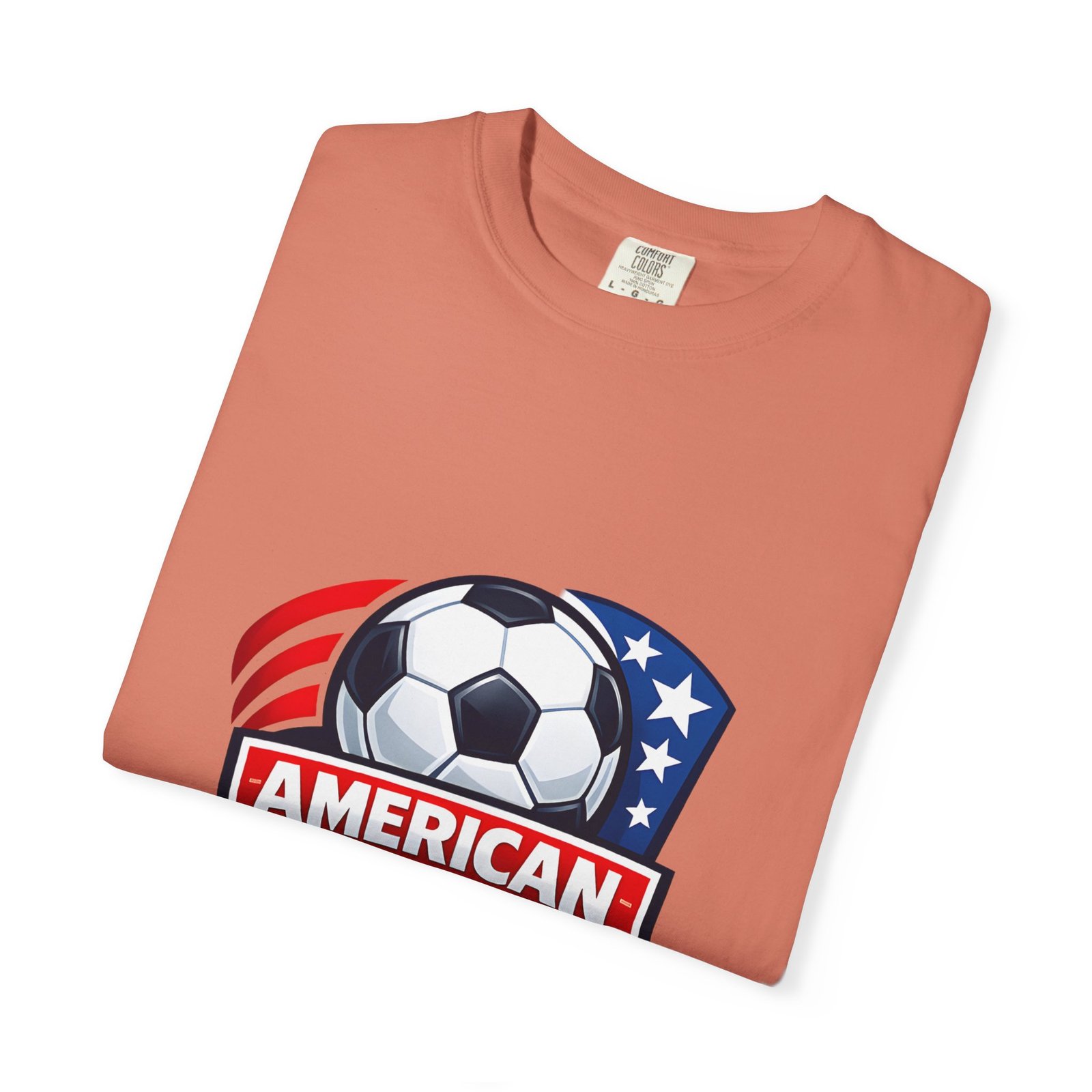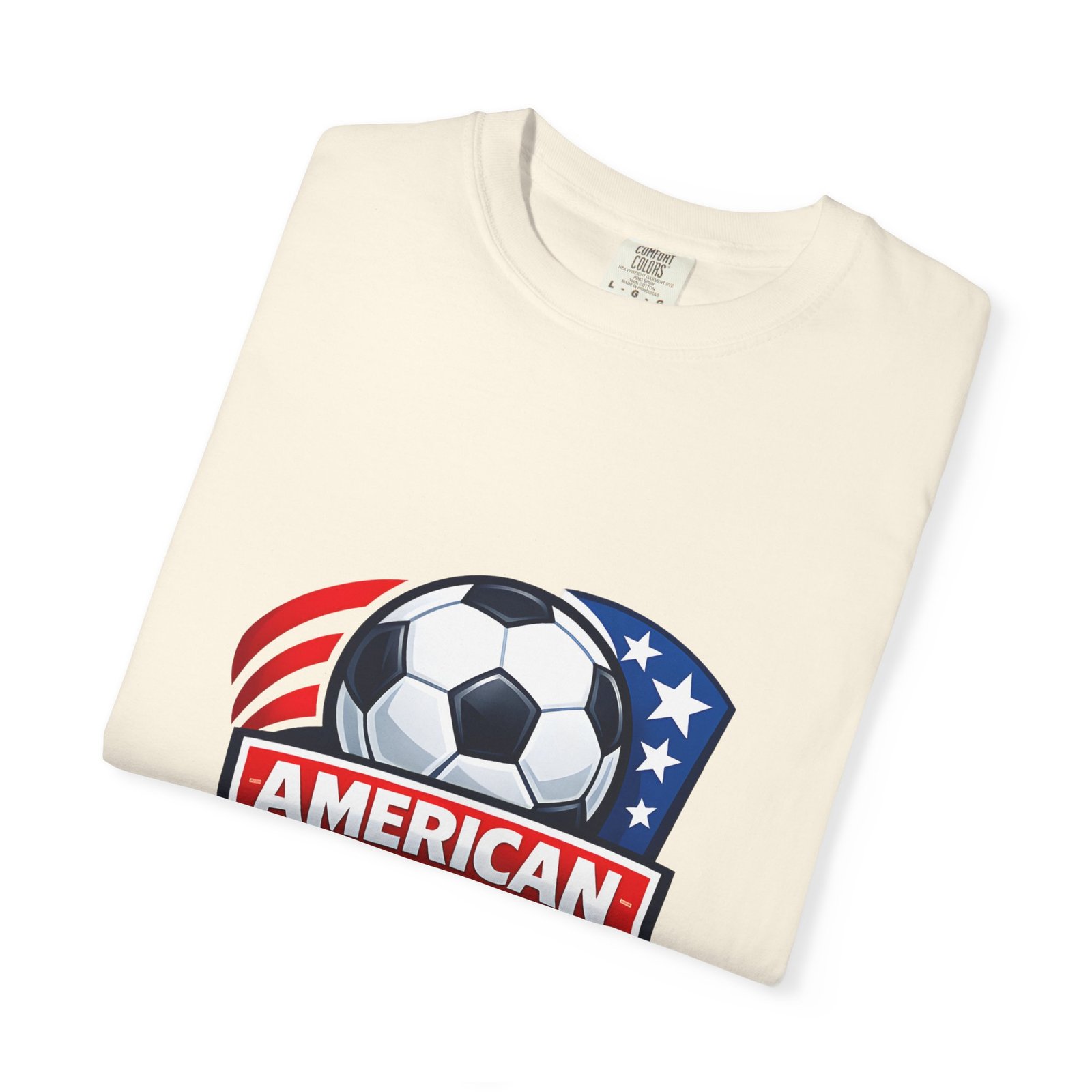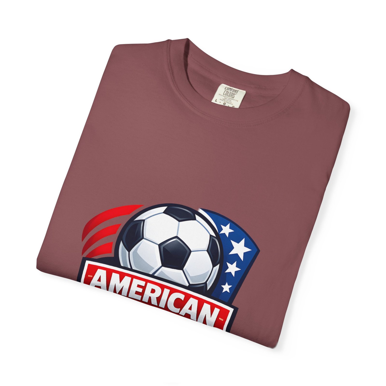 This heavyweight, garment-dyed tee brings game-day pride into everyday wear. The relaxed fit and soft, broken-in texture from post-construction dye make it feel like an old favorite from the first wear. A bold, Americana soccer crest sits on the chest—clean lines, stars and stripes, and a classic soccer ball—so it reads sporty and patriotic without shouting. Wear it to practice, to the stands, or on weekend errands; it layers easily under a jacket or pairs with worn-in jeans. The sewn-in label and durable double-needle stitching mean it stands up to season-after-season wear, while the tubular knit keeps the silhouette clean and comfortable. Available in many colors and sizes, it’s a straightforward choice for players, coaches, and fans who want a solid, everyday soccer tee with a lived-in feel.