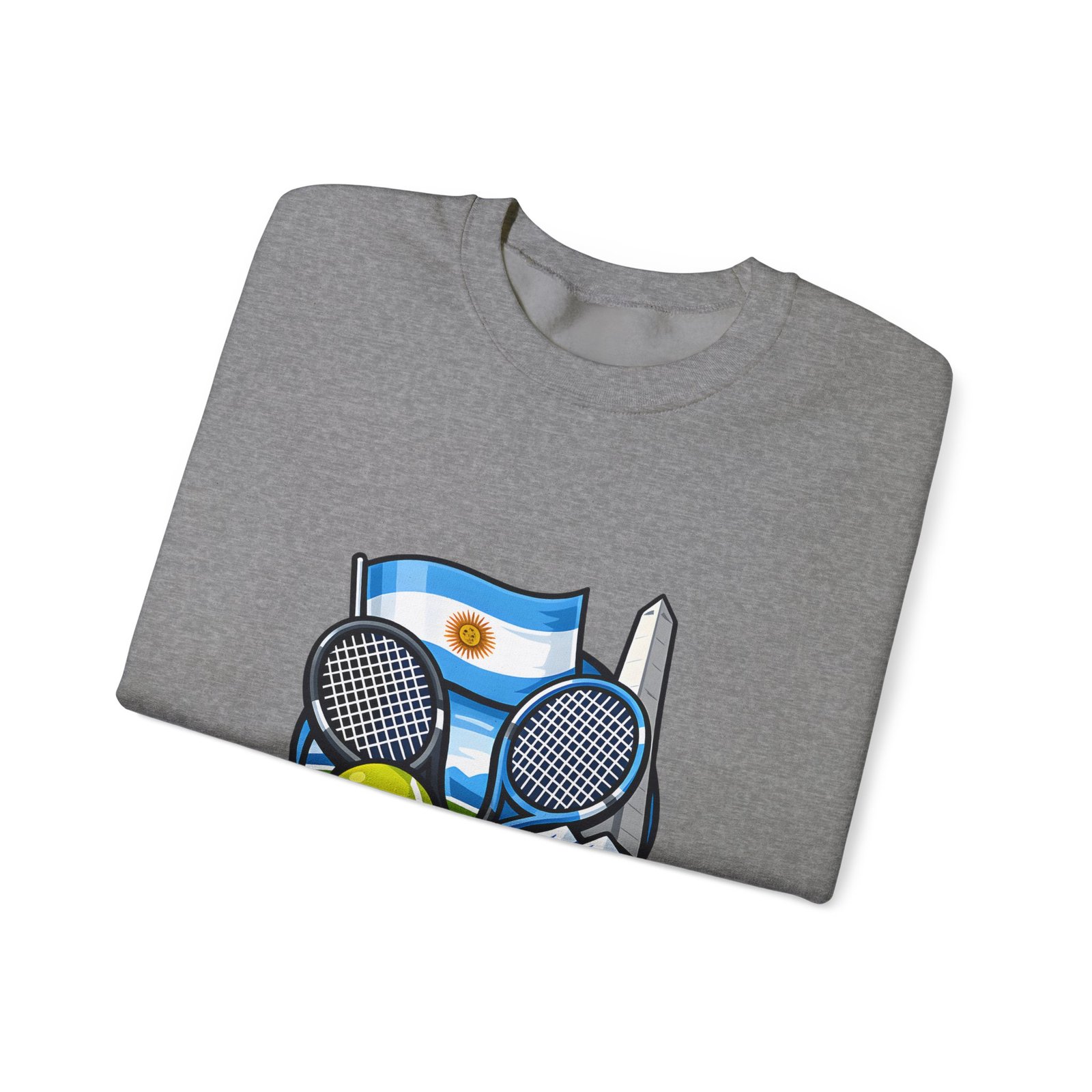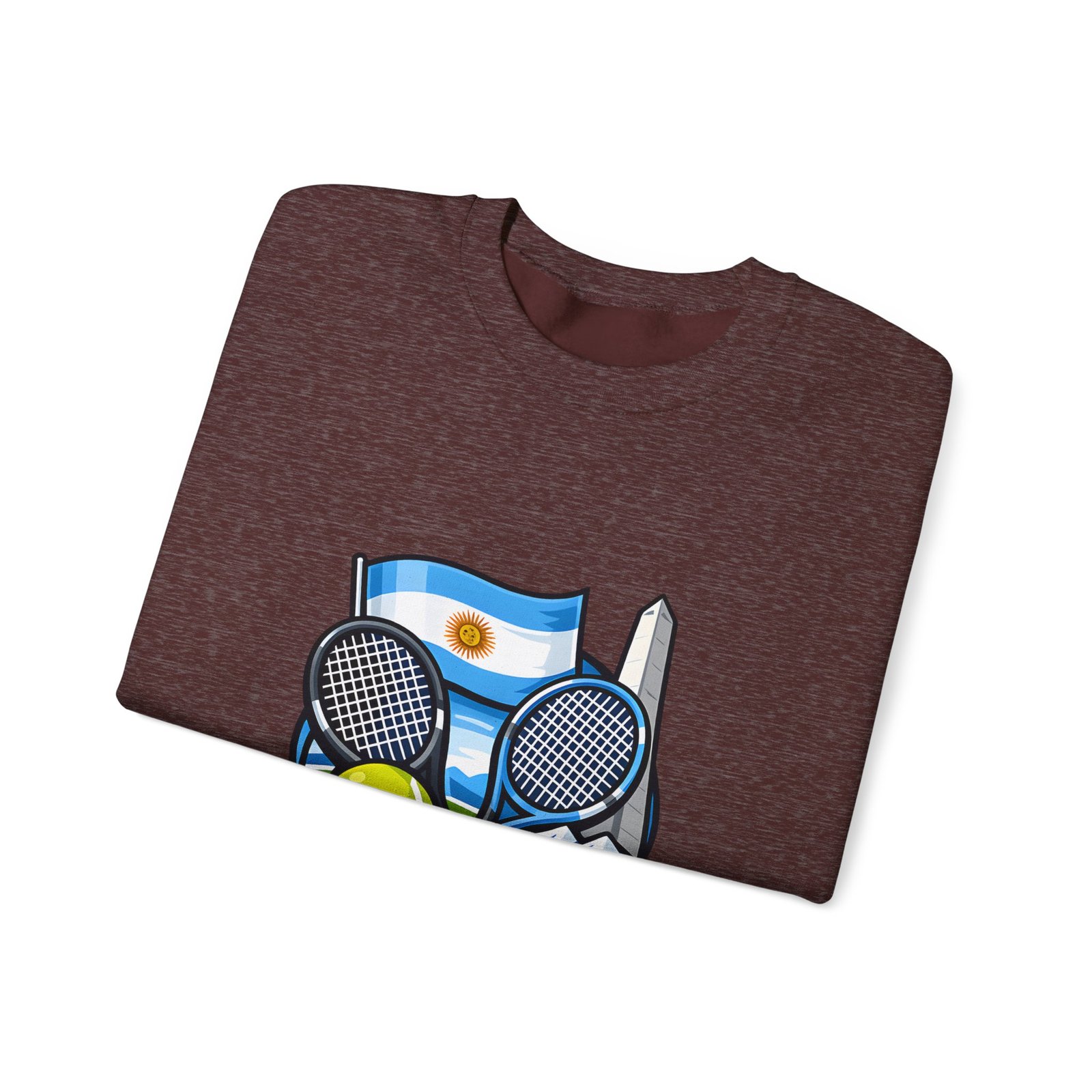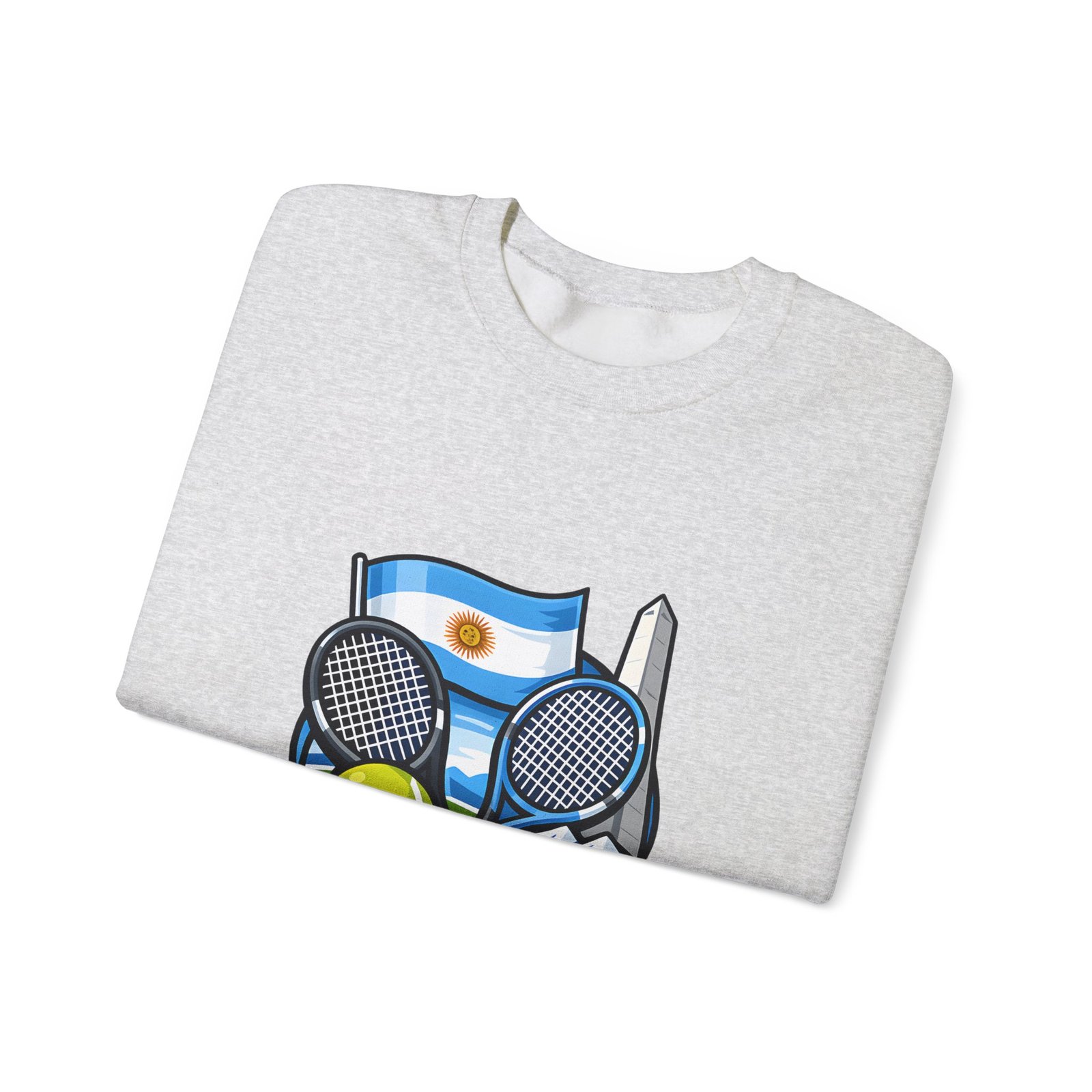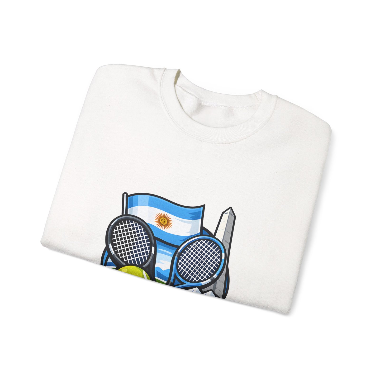 This cozy crewneck brings a calm, sporty pride to casual days and cool evenings. Soft, midweight fabric and a classic cut make it feel familiar from the first wear. The front artwork—tennis rackets, a ball, and Argentina’s flag and skyline—calls to mind brisk matches at neighborhood courts, cheering from the stands, and nights out celebrating a win. It sits easily over jeans or layered under a jacket, the kind of sweatshirt you reach for when you want warmth without fuss and a subtle nod to your love of the game and country.
