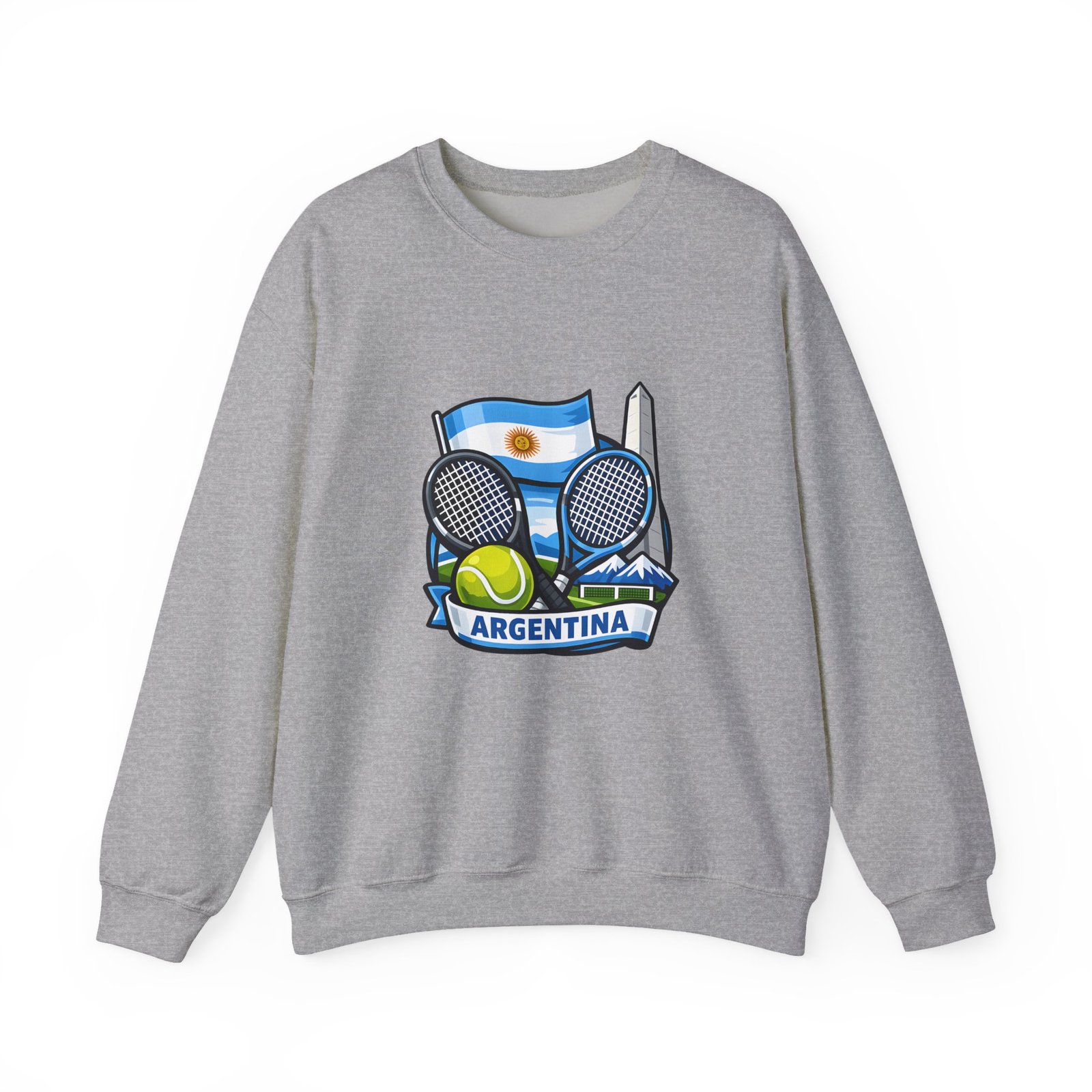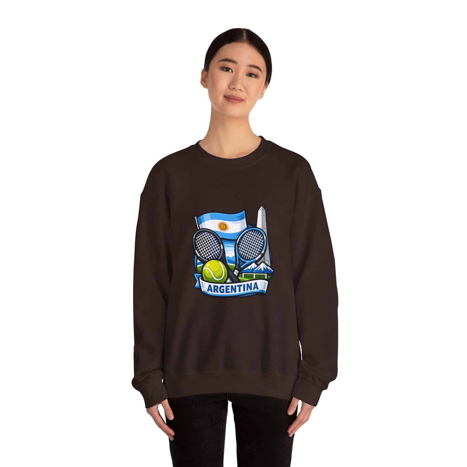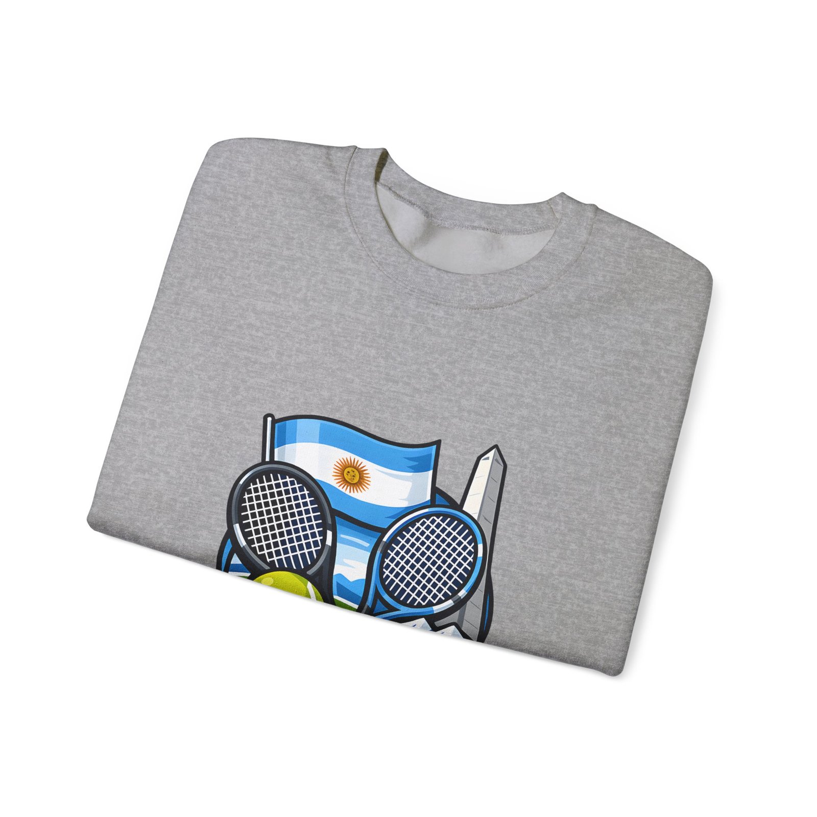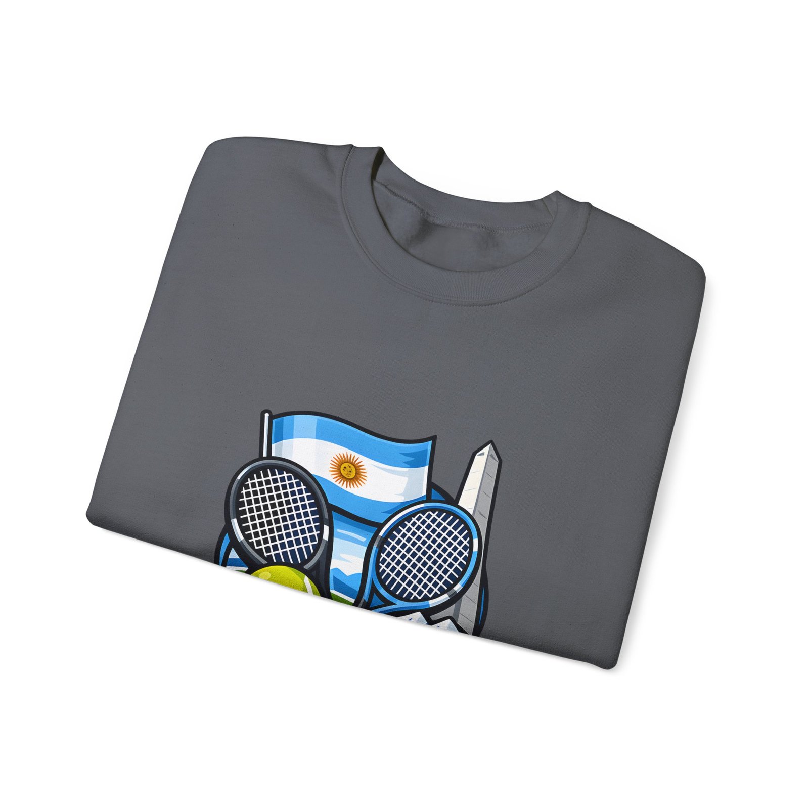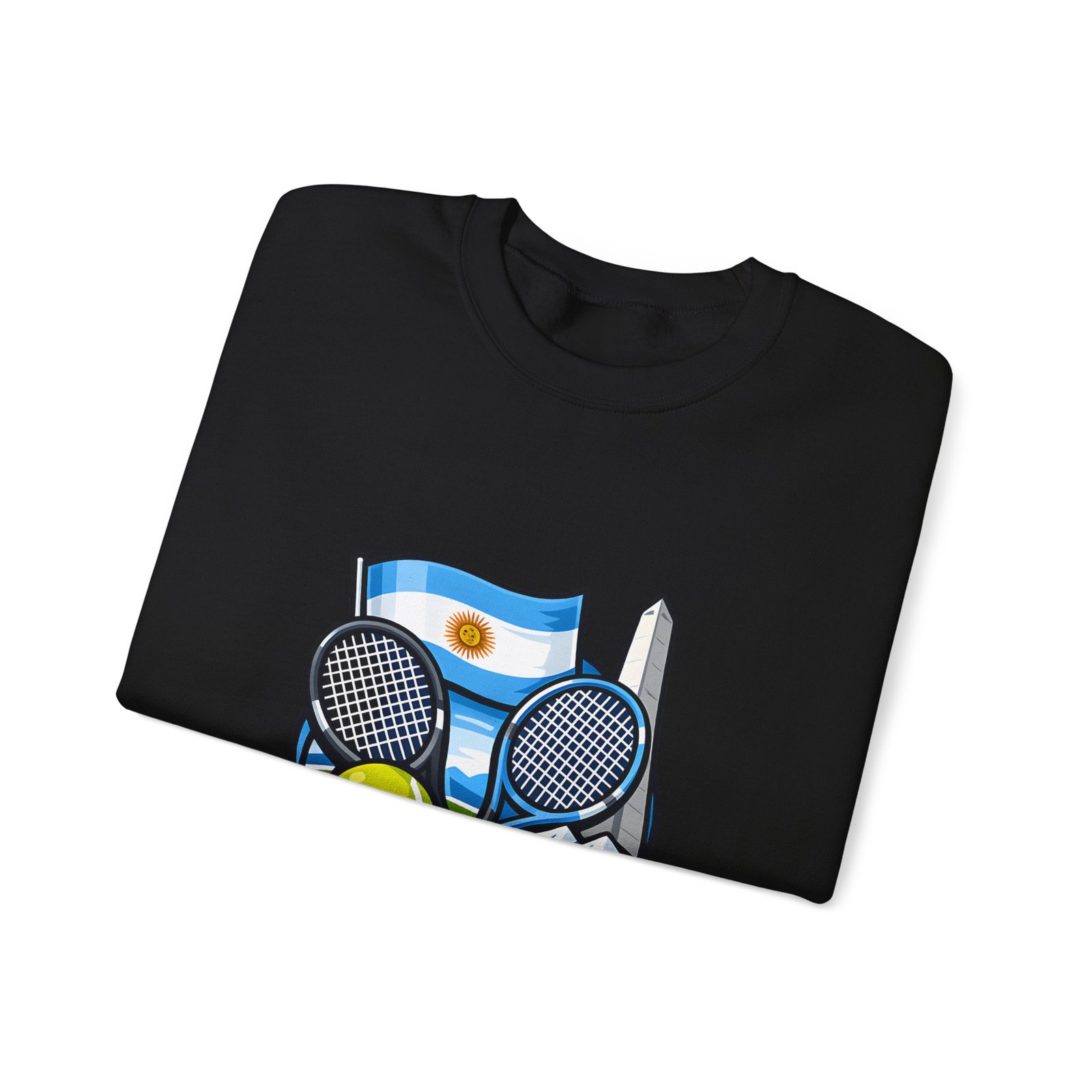 This cozy crewneck brings a calm, sporty pride to casual days and cool evenings. Soft, midweight fabric and a classic cut make it feel familiar from the first wear. The front artwork—tennis rackets, a ball, and Argentina’s flag and skyline—calls to mind brisk matches at neighborhood courts, cheering from the stands, and nights out celebrating a win. It sits easily over jeans or layered under a jacket, the kind of sweatshirt you reach for when you want warmth without fuss and a subtle nod to your love of the game and country.
