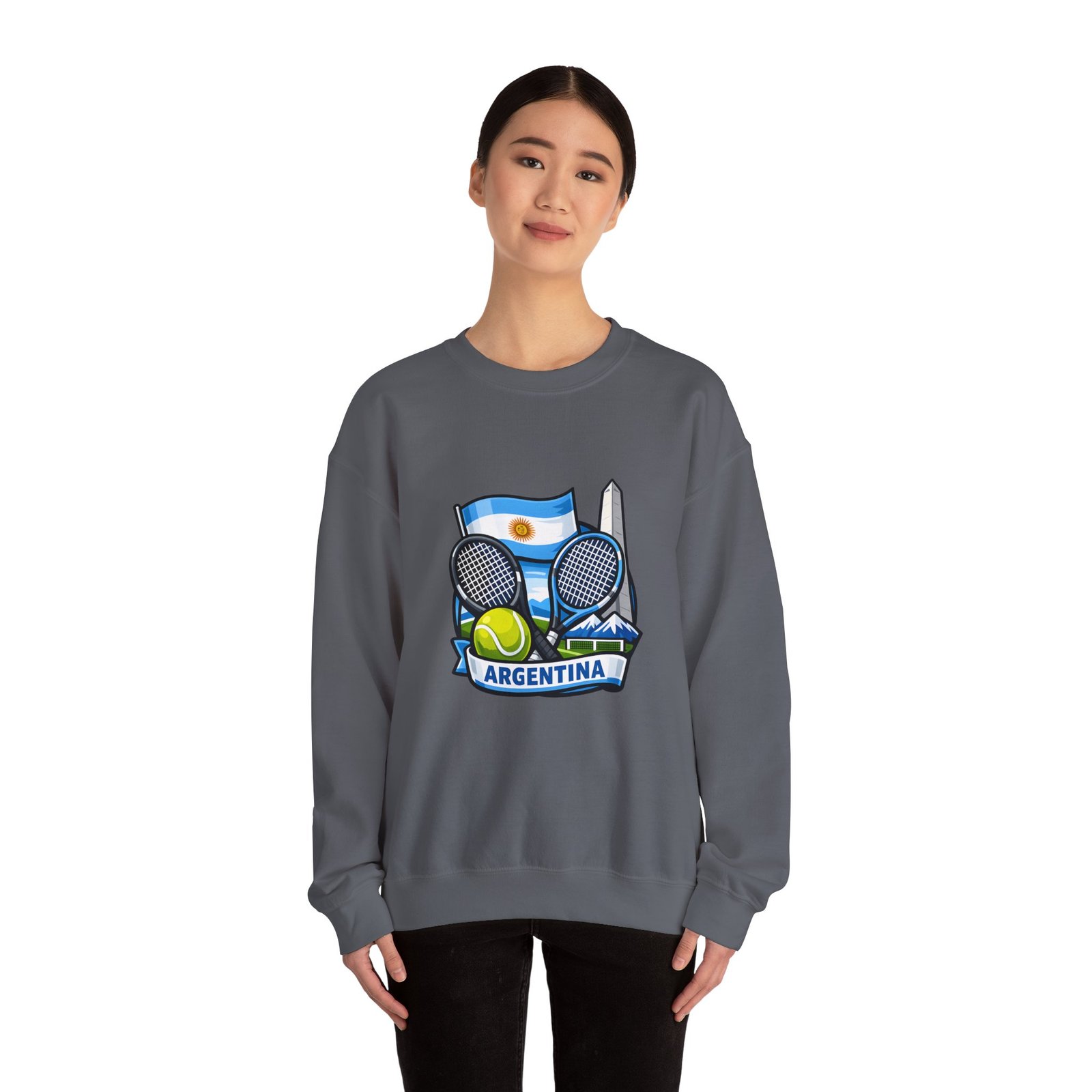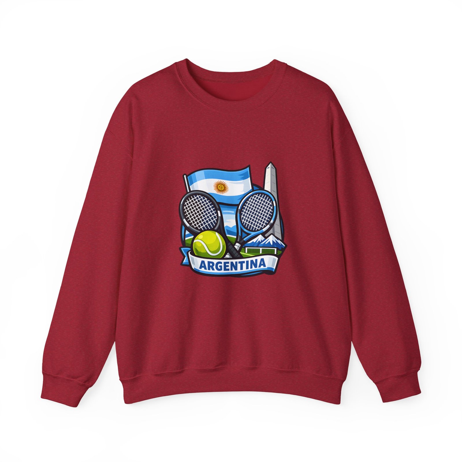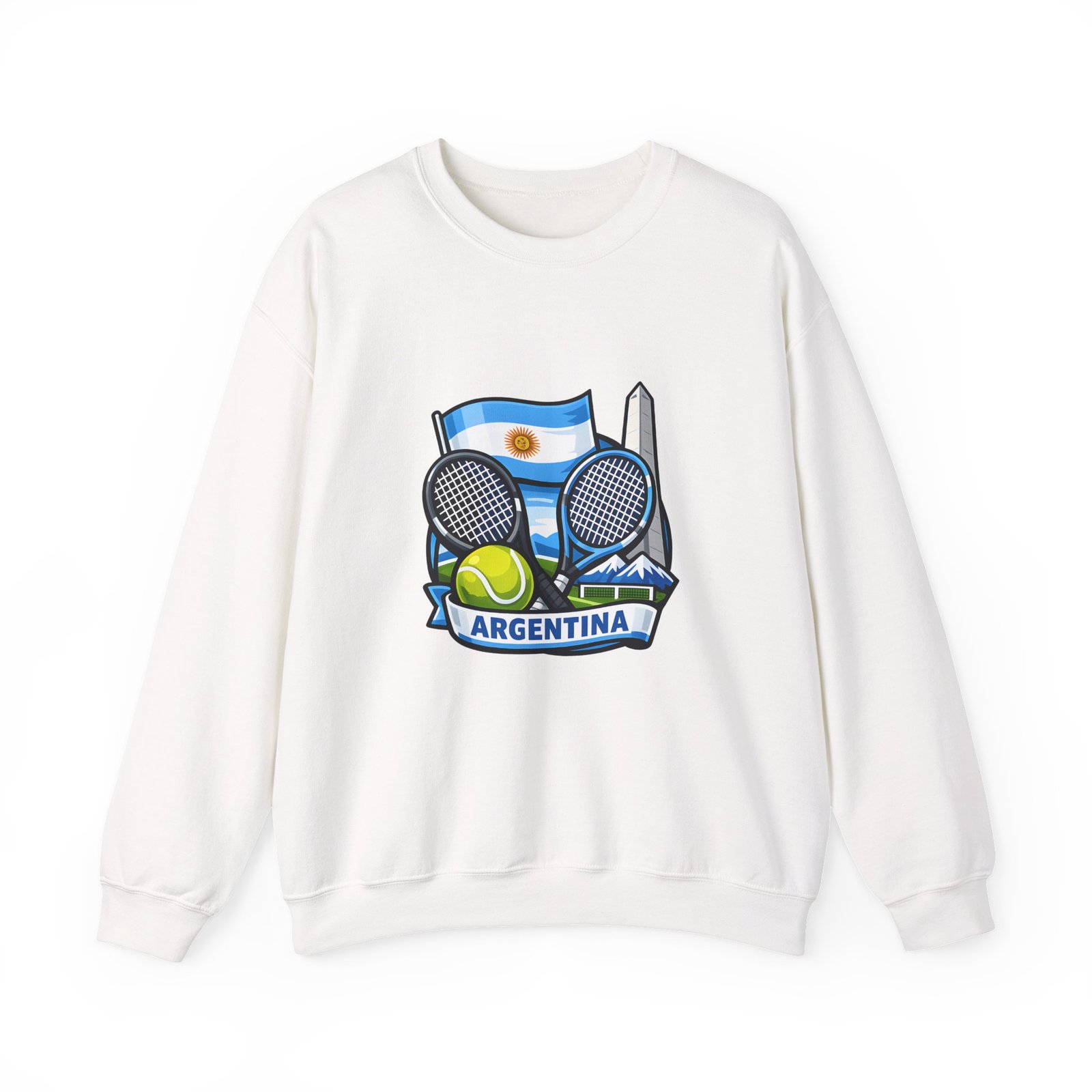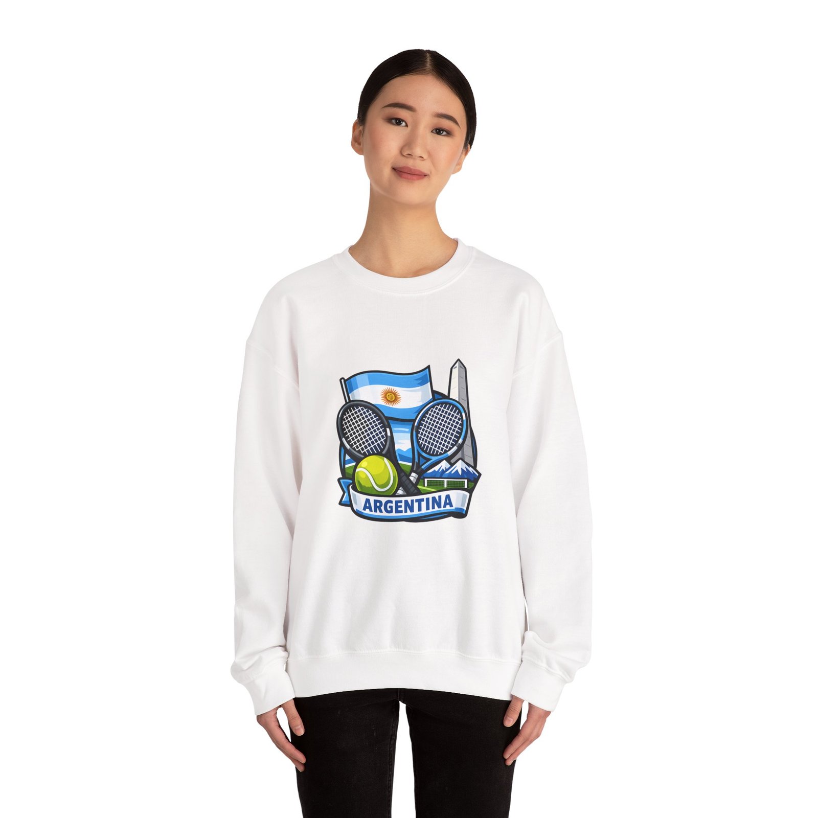 This cozy crewneck brings a calm, sporty pride to casual days and cool evenings. Soft, midweight fabric and a classic cut make it feel familiar from the first wear. The front artwork—tennis rackets, a ball, and Argentina’s flag and skyline—calls to mind brisk matches at neighborhood courts, cheering from the stands, and nights out celebrating a win. It sits easily over jeans or layered under a jacket, the kind of sweatshirt you reach for when you want warmth without fuss and a subtle nod to your love of the game and country.