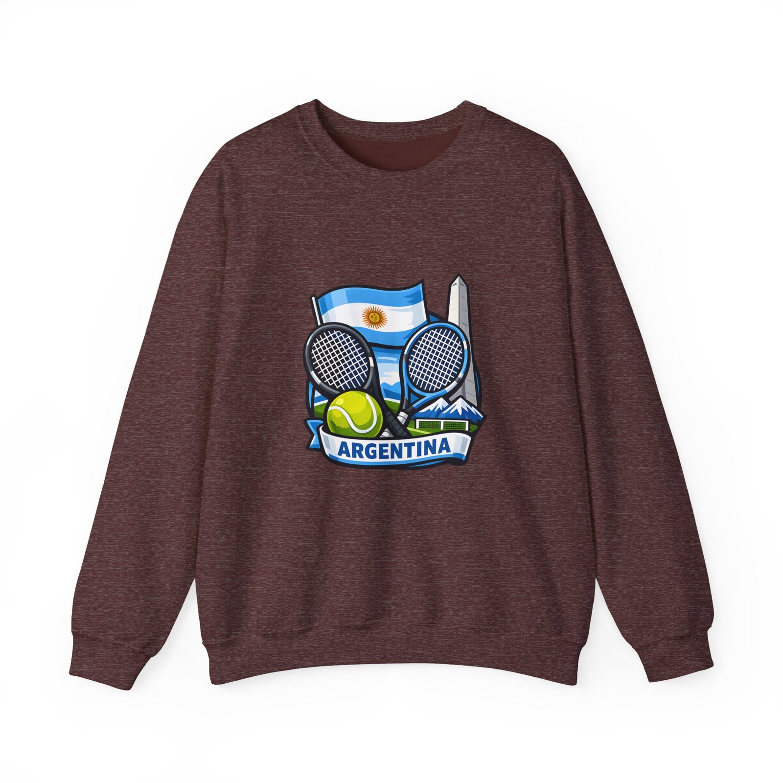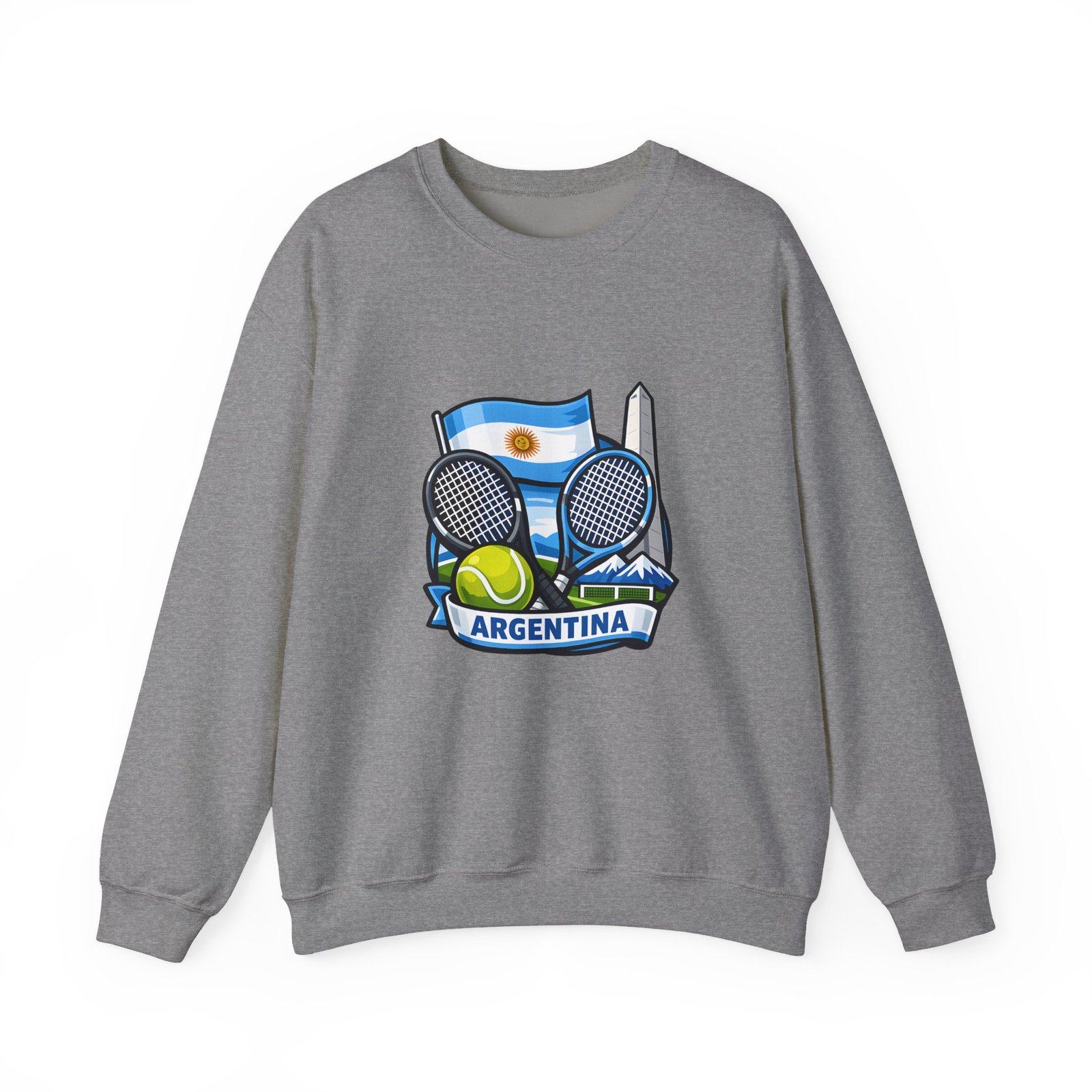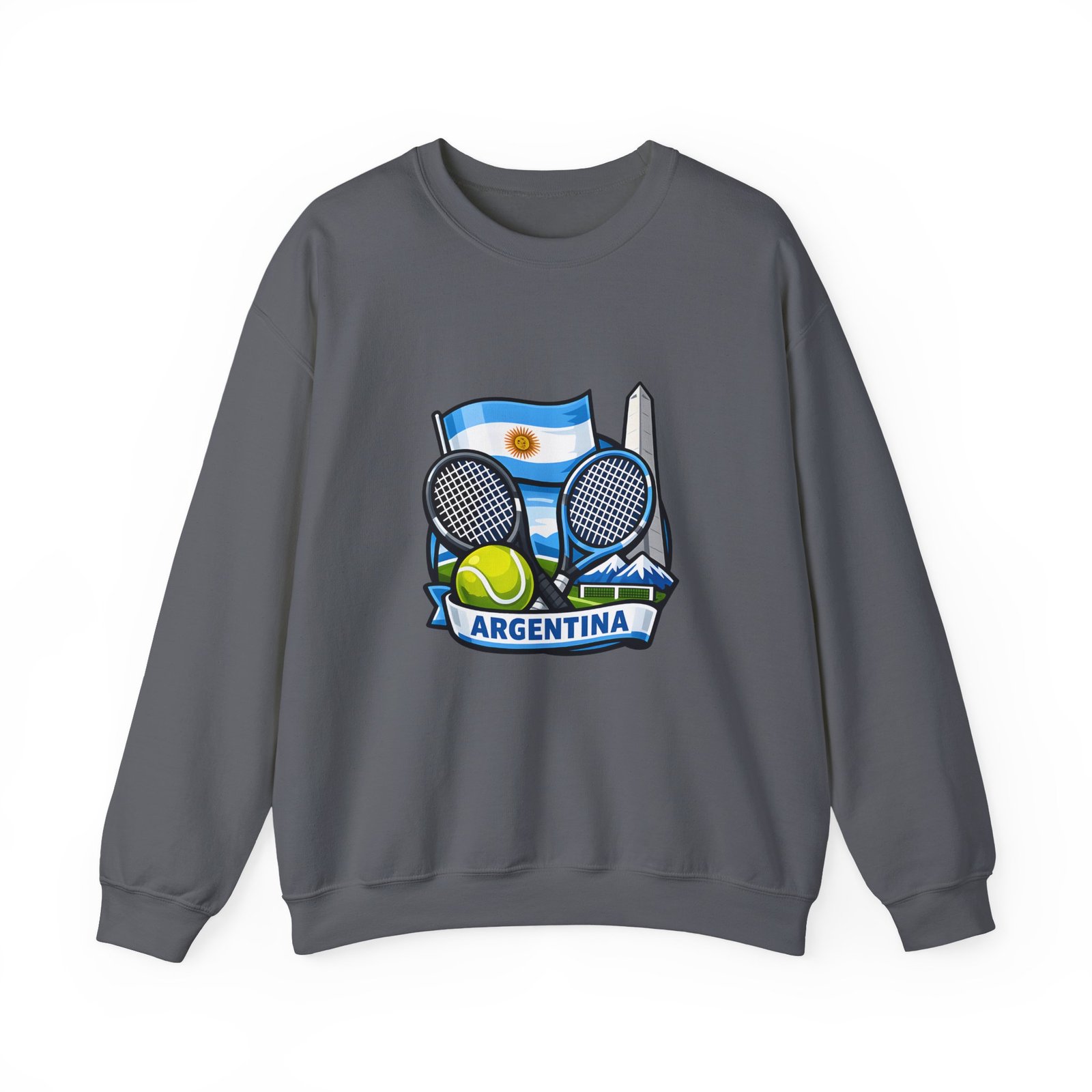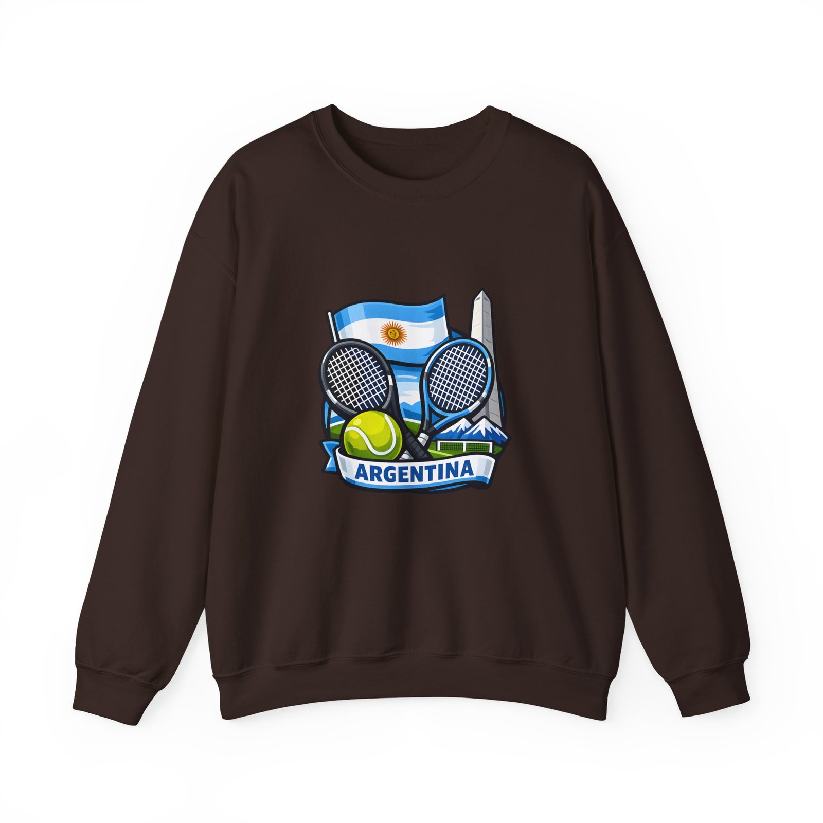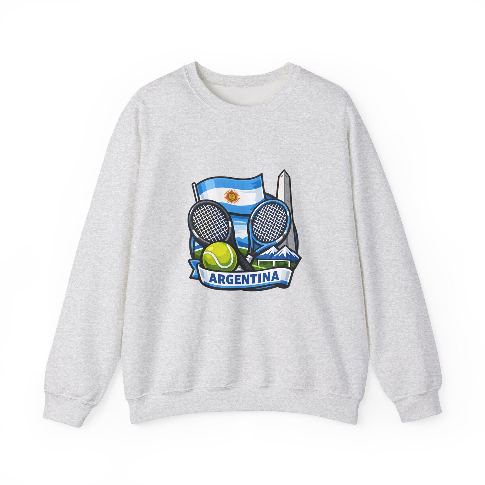 This cozy crewneck brings a calm, sporty pride to casual days and cool evenings. Soft, midweight fabric and a classic cut make it feel familiar from the first wear. The front artwork—tennis rackets, a ball, and Argentina’s flag and skyline—calls to mind brisk matches at neighborhood courts, cheering from the stands, and nights out celebrating a win. It sits easily over jeans or layered under a jacket, the kind of sweatshirt you reach for when you want warmth without fuss and a subtle nod to your love of the game and country.
