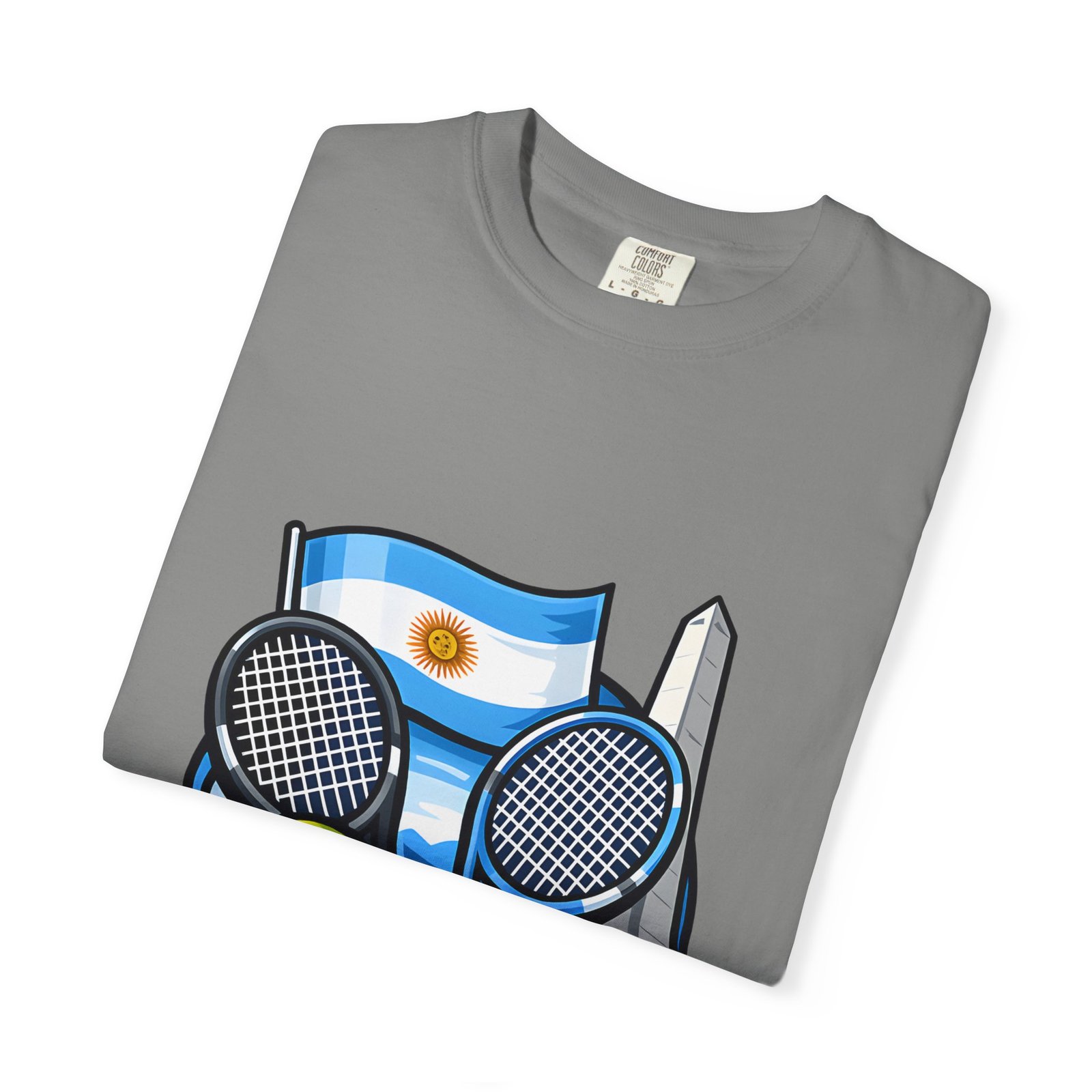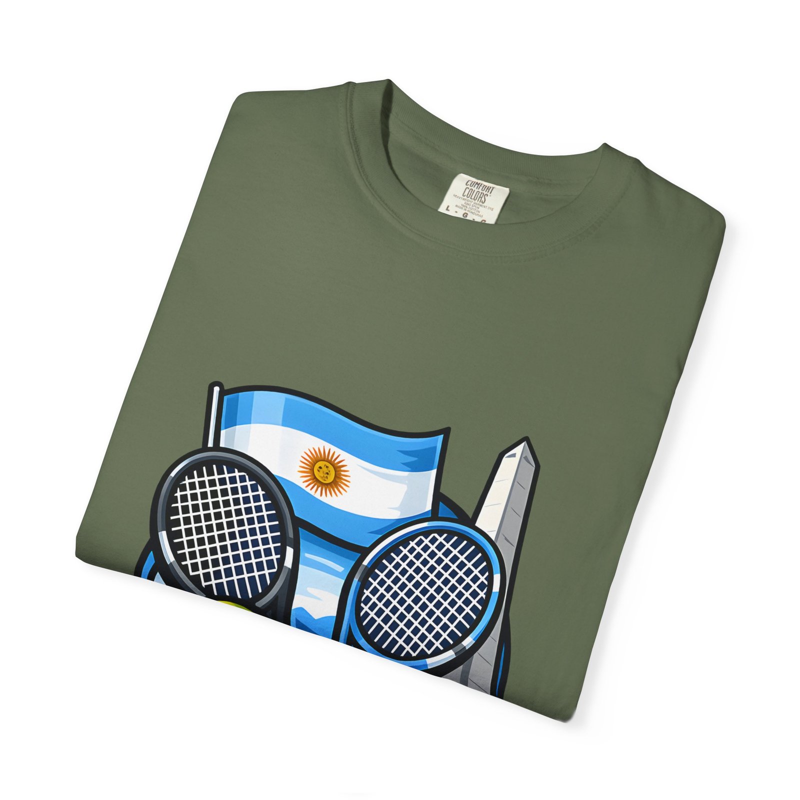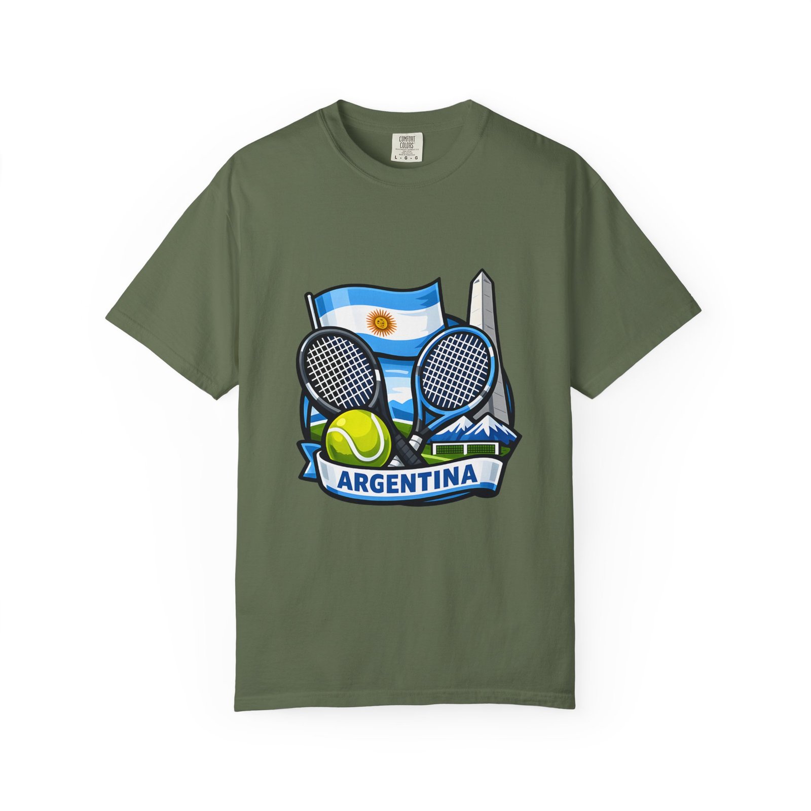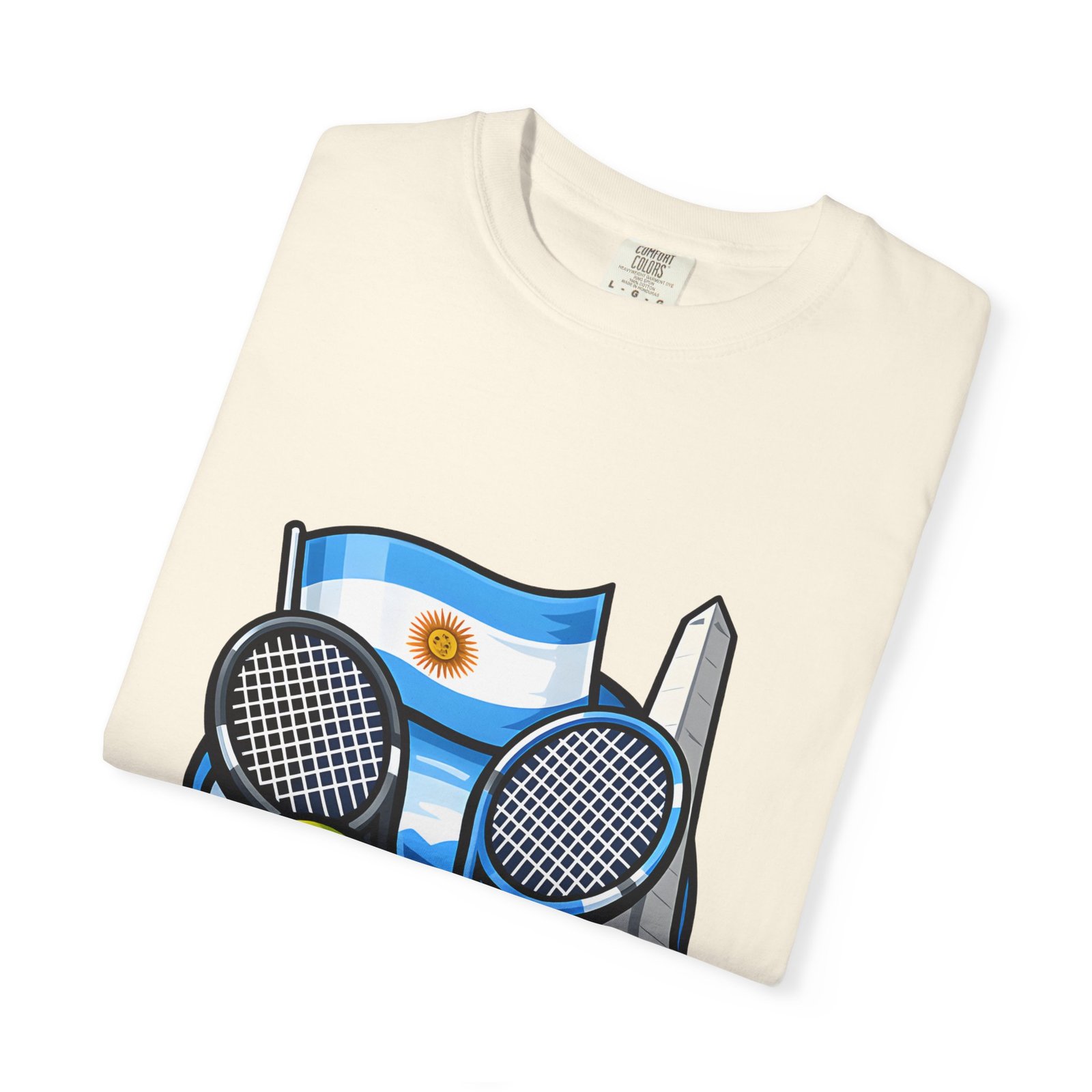 This garment-dyed tee carries a relaxed, lived-in feel that pairs performance-ready imagery with everyday comfort. A vivid Argentina tennis crest—two rackets, a bright tennis ball, and the Obelisco silhouette against the Argentine flag—sits on the chest, projecting quiet pride and court-side energy. The heavy-weight ring-spun cotton softens with wear, the dye process gives a subtle vintage texture, and the roomy cut lets you move freely between practice sessions, club nights, and weekend wanderings. Worn by fans who love the game and their country, it reads like a favorite jersey reimagined for streetwear — breathable, durable, and made to age well with you.
