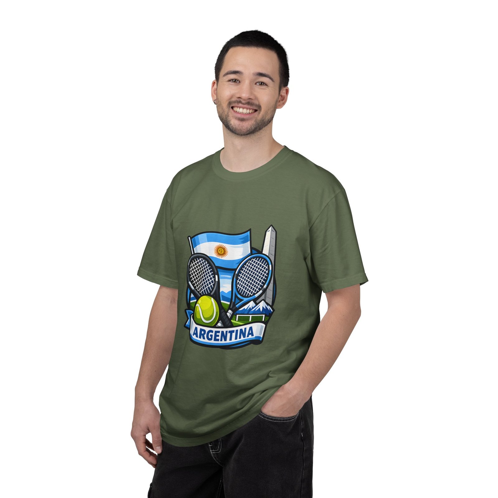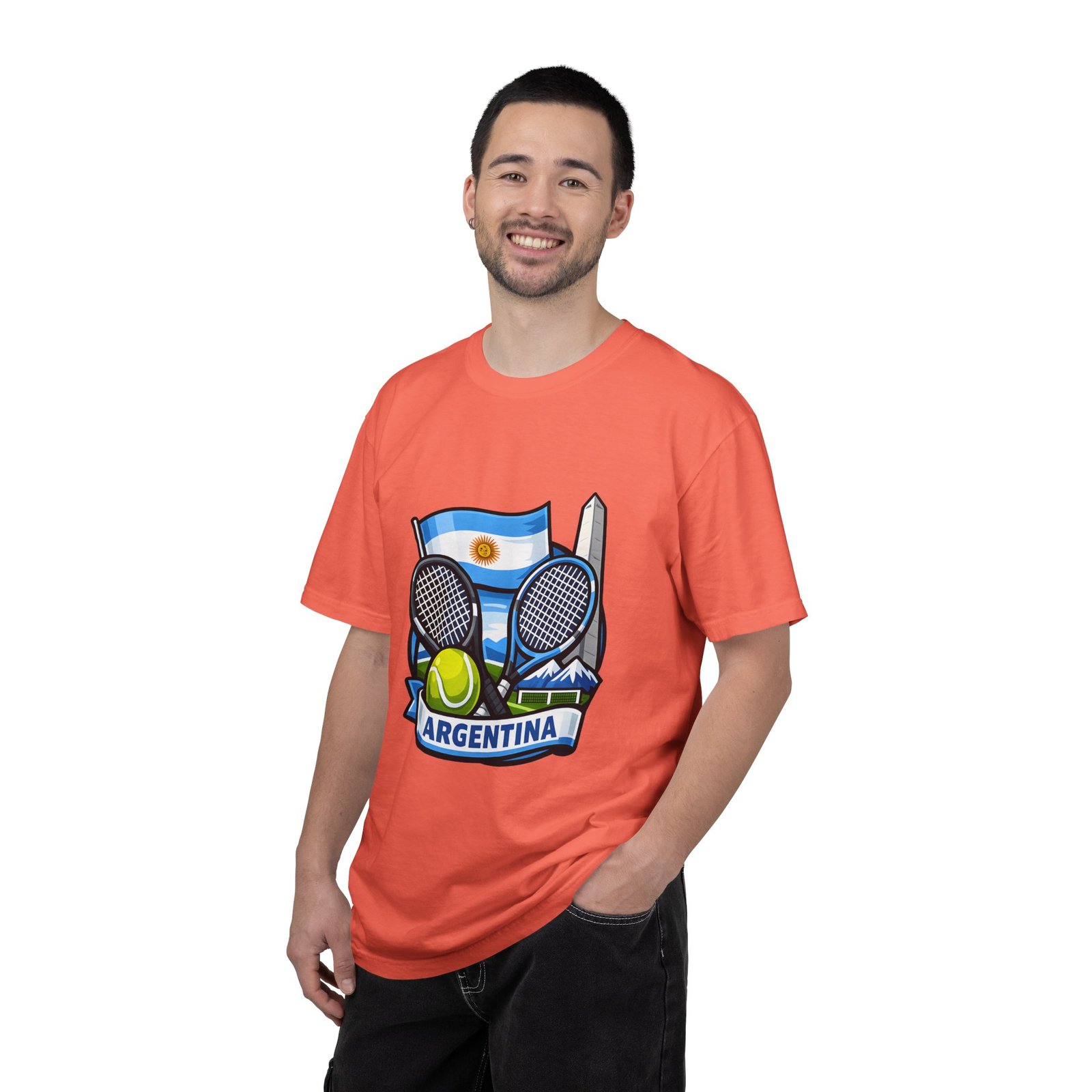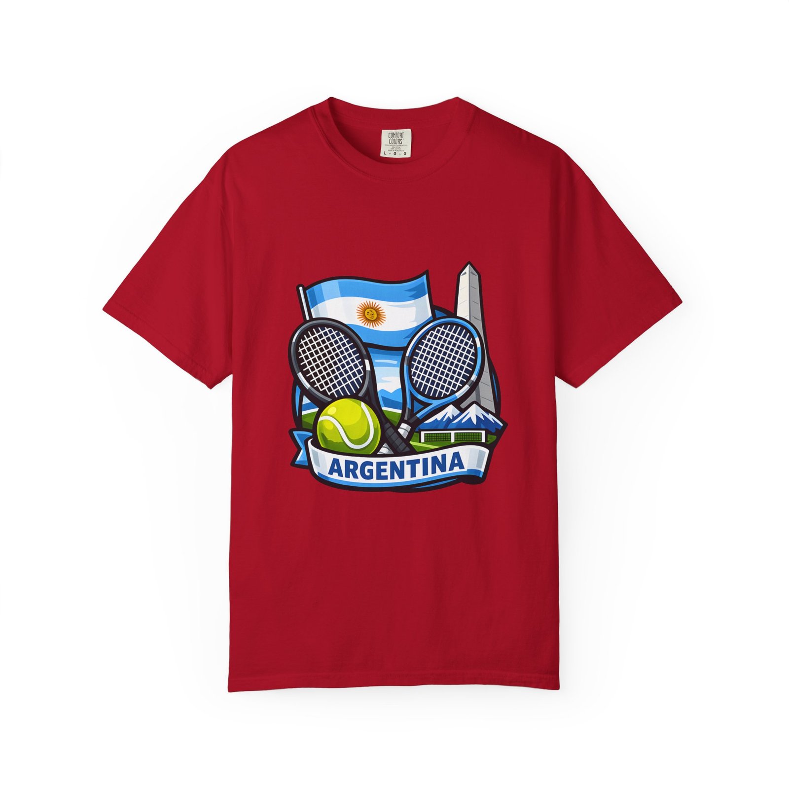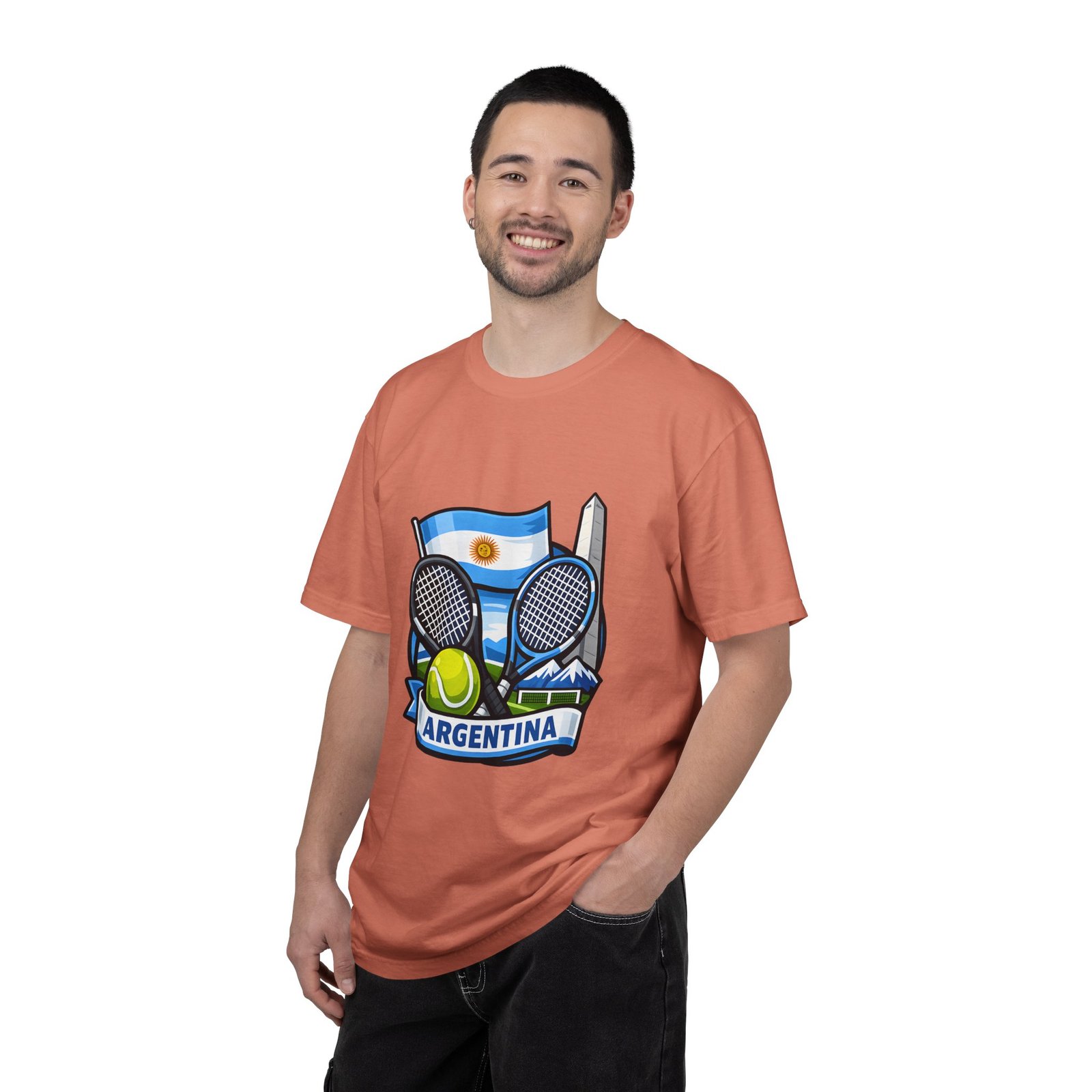 This garment-dyed tee carries a relaxed, lived-in feel that pairs performance-ready imagery with everyday comfort. A vivid Argentina tennis crest—two rackets, a bright tennis ball, and the Obelisco silhouette against the Argentine flag—sits on the chest, projecting quiet pride and court-side energy. The heavy-weight ring-spun cotton softens with wear, the dye process gives a subtle vintage texture, and the roomy cut lets you move freely between practice sessions, club nights, and weekend wanderings. Worn by fans who love the game and their country, it reads like a favorite jersey reimagined for streetwear — breathable, durable, and made to age well with you.