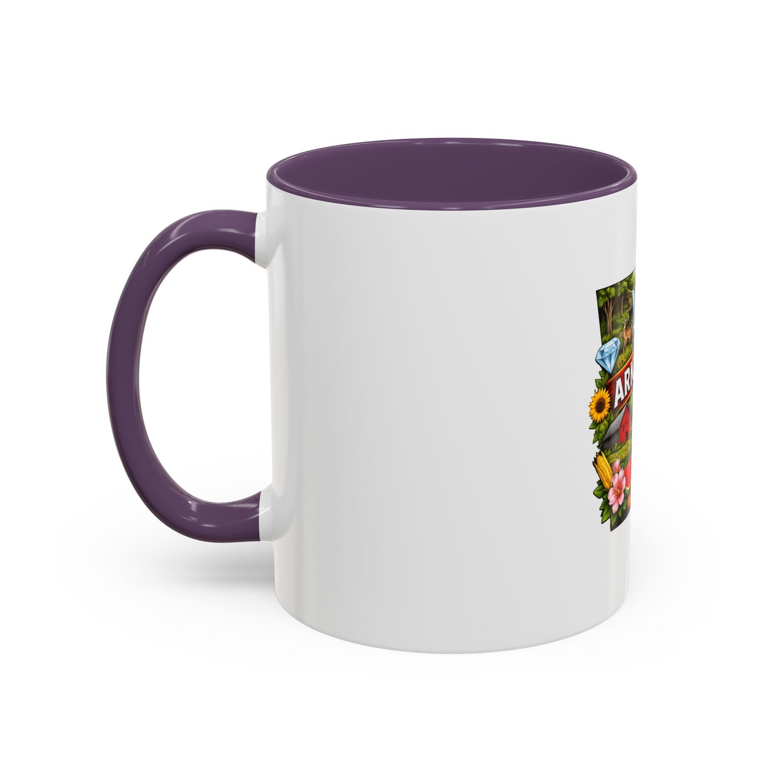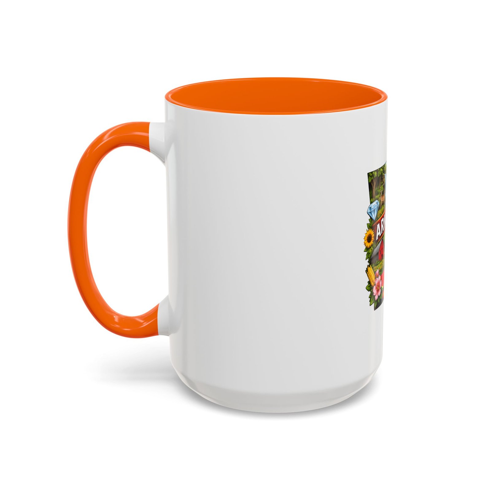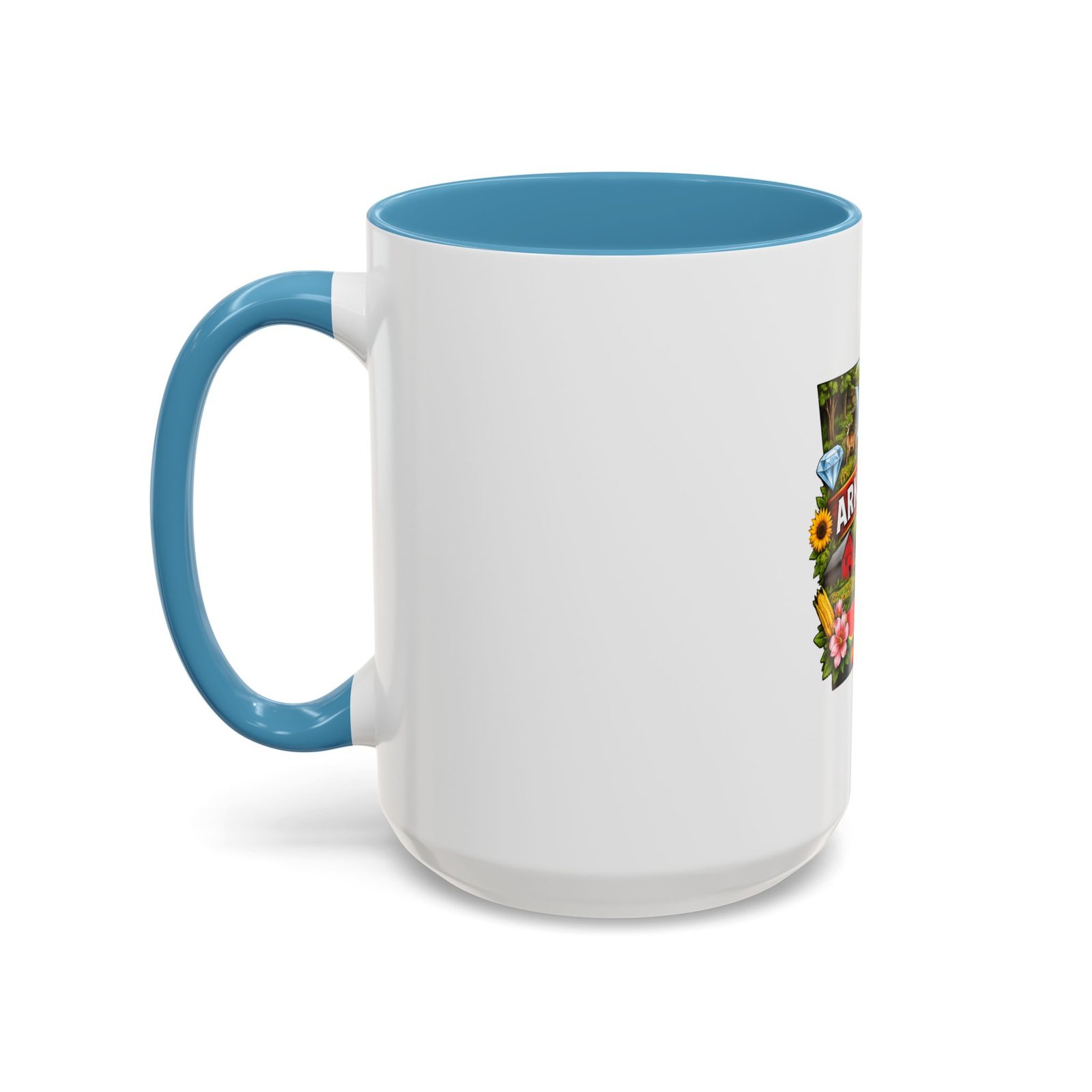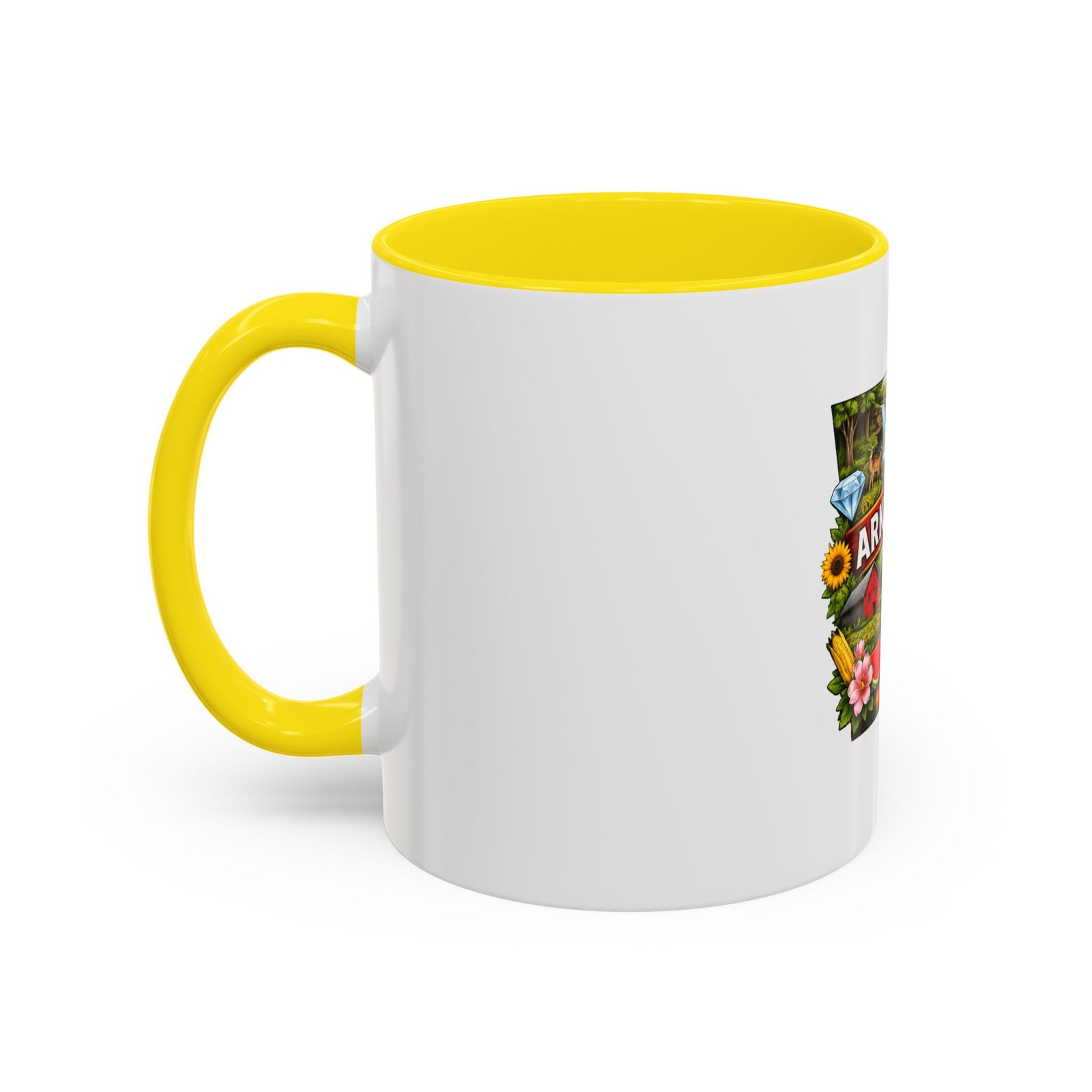 This glossy ceramic mug brings Arkansas to your morning routine with bright, detailed artwork that celebrates the state’s landscapes and local flavor. The colored interior and handle add a playful contrast to the white exterior, framing the vibrant design of waterfalls, wildlife, farmland, and regional icons. It feels like a little escape—hold it in your hands and remember riverbank mornings, shaded hollows, and weekend drives through blooming fields. Durable for everyday use, the mug stands up to microwave reheats and dishwasher cycles without dulling the print. For anyone who carries Arkansas in their heart, this mug turns coffee breaks into familiar, homespun moments.