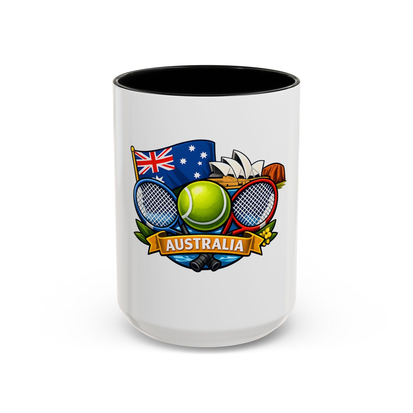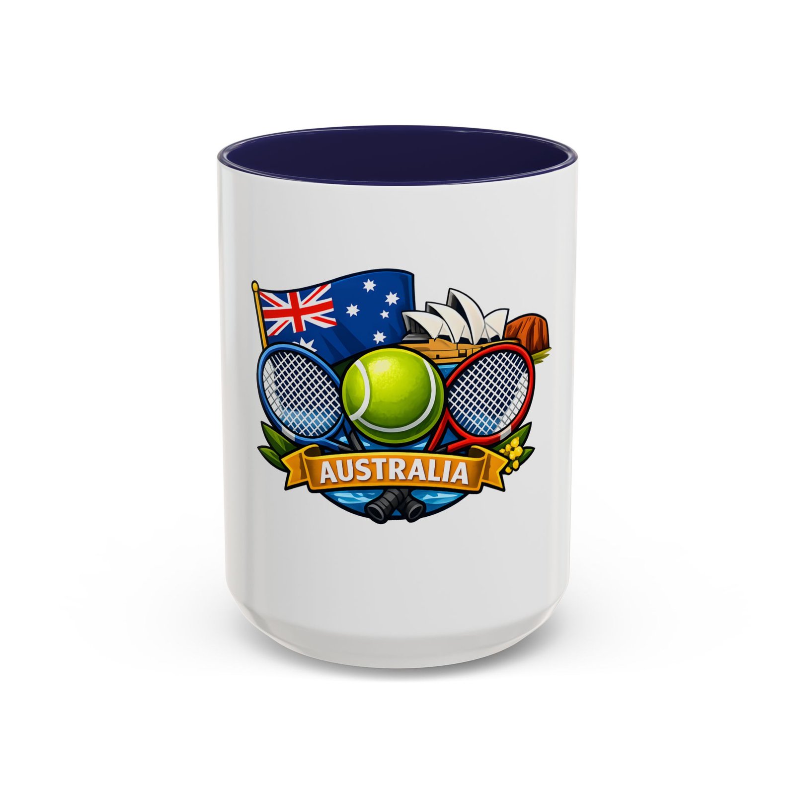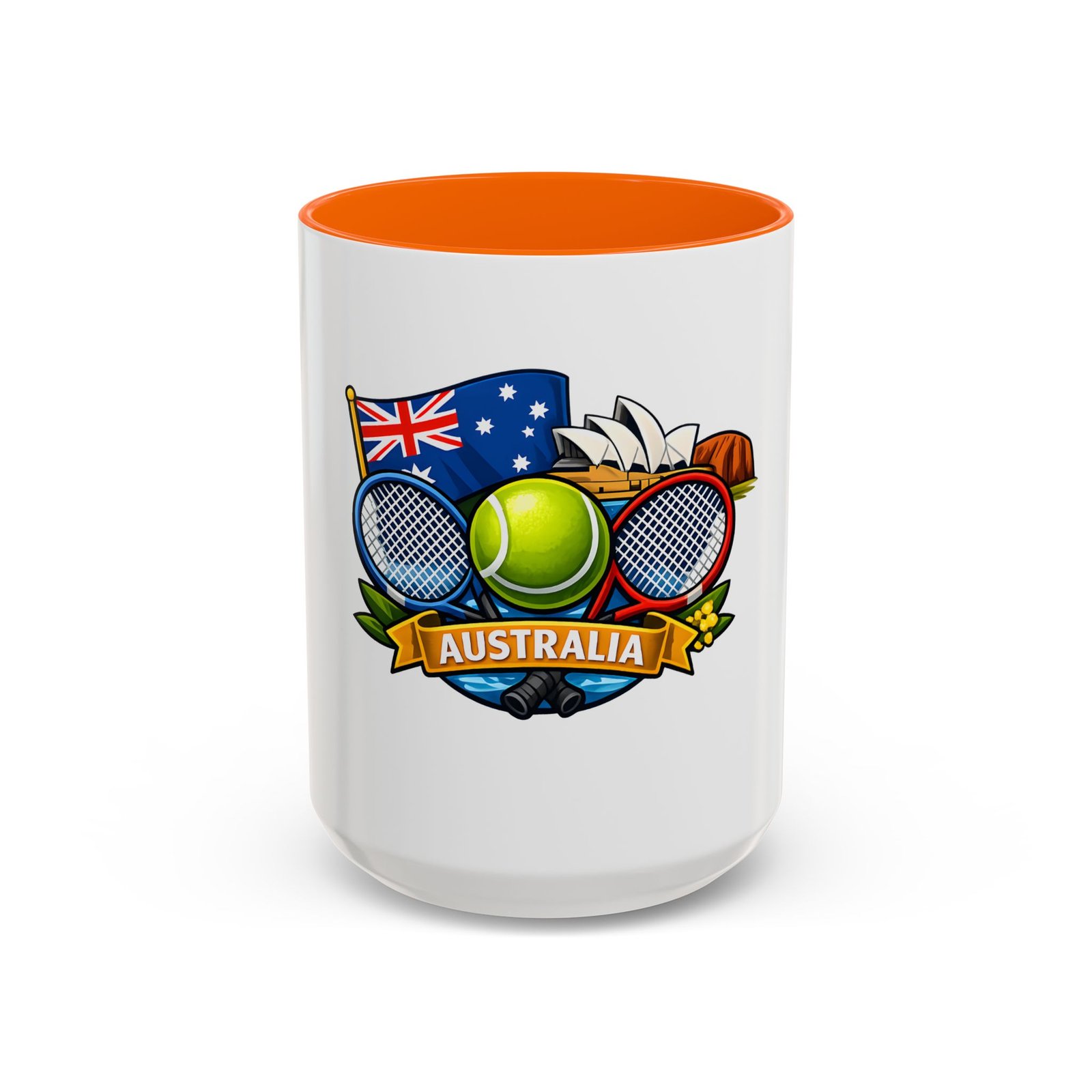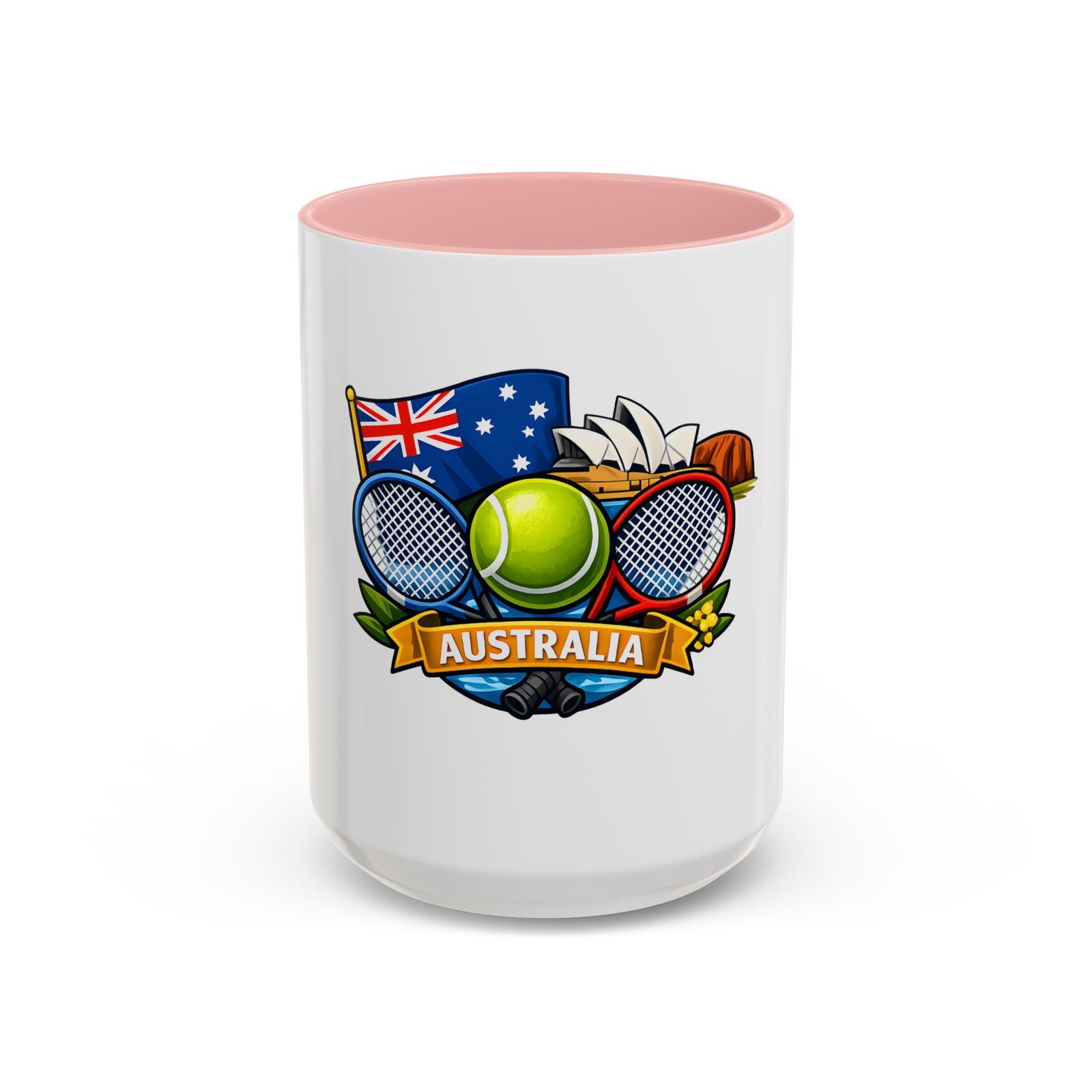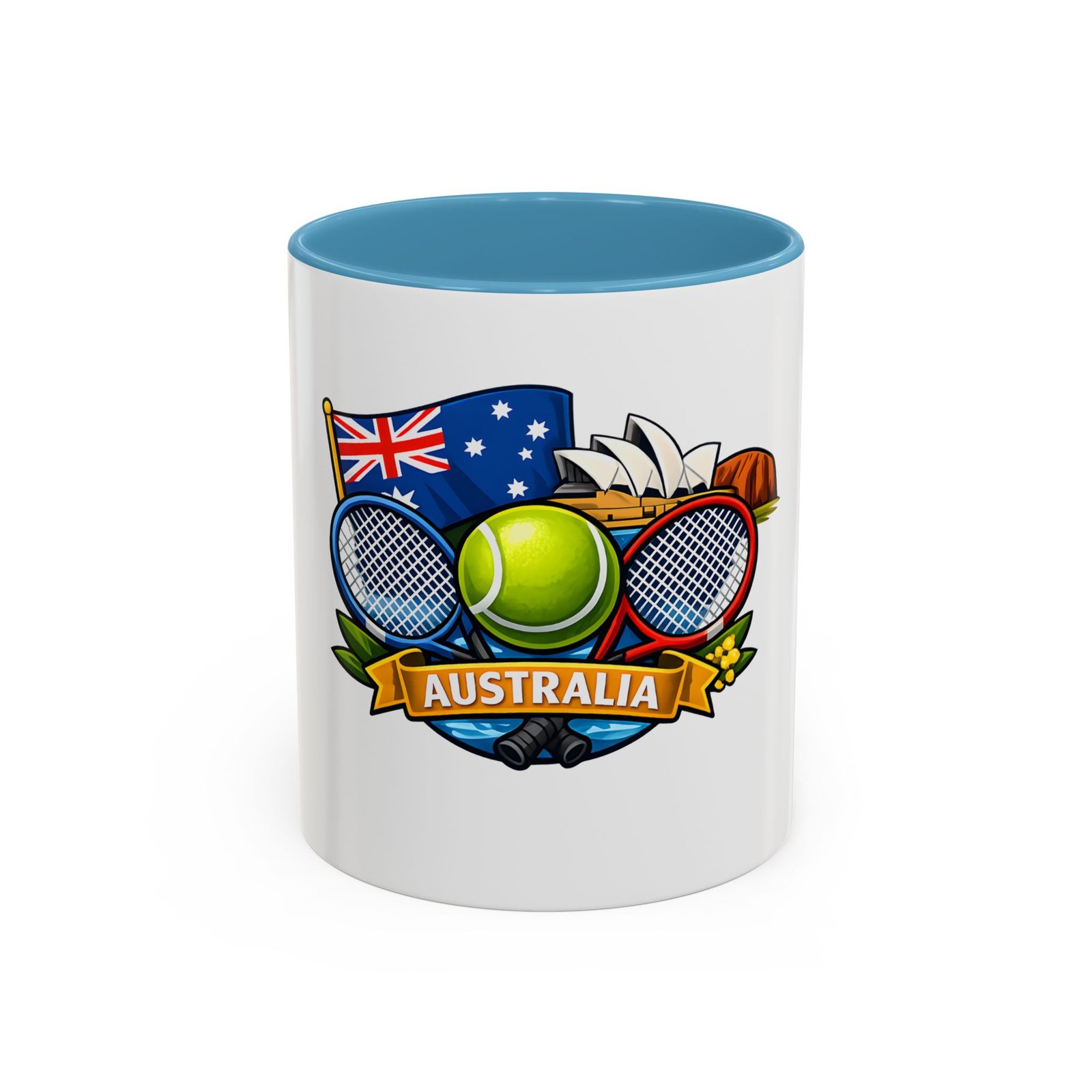This ceramic accent mug brings a lively slice of Australia to your morning routine. Bold colors and a glossy finish showcase a playful crest—tennis racquets, a bright tennis ball, the Australian flag and a hint of the Opera House—so every sip feels like a small celebration of sport and place. The colored interior and handle add cheerful contrast while the sturdy C-handle and two size options let you choose your comfort level. Dishwasher- and microwave-safe, it’s built for everyday use and made without lead or BPA, so it stays vibrant through daily washes and quick reheats.