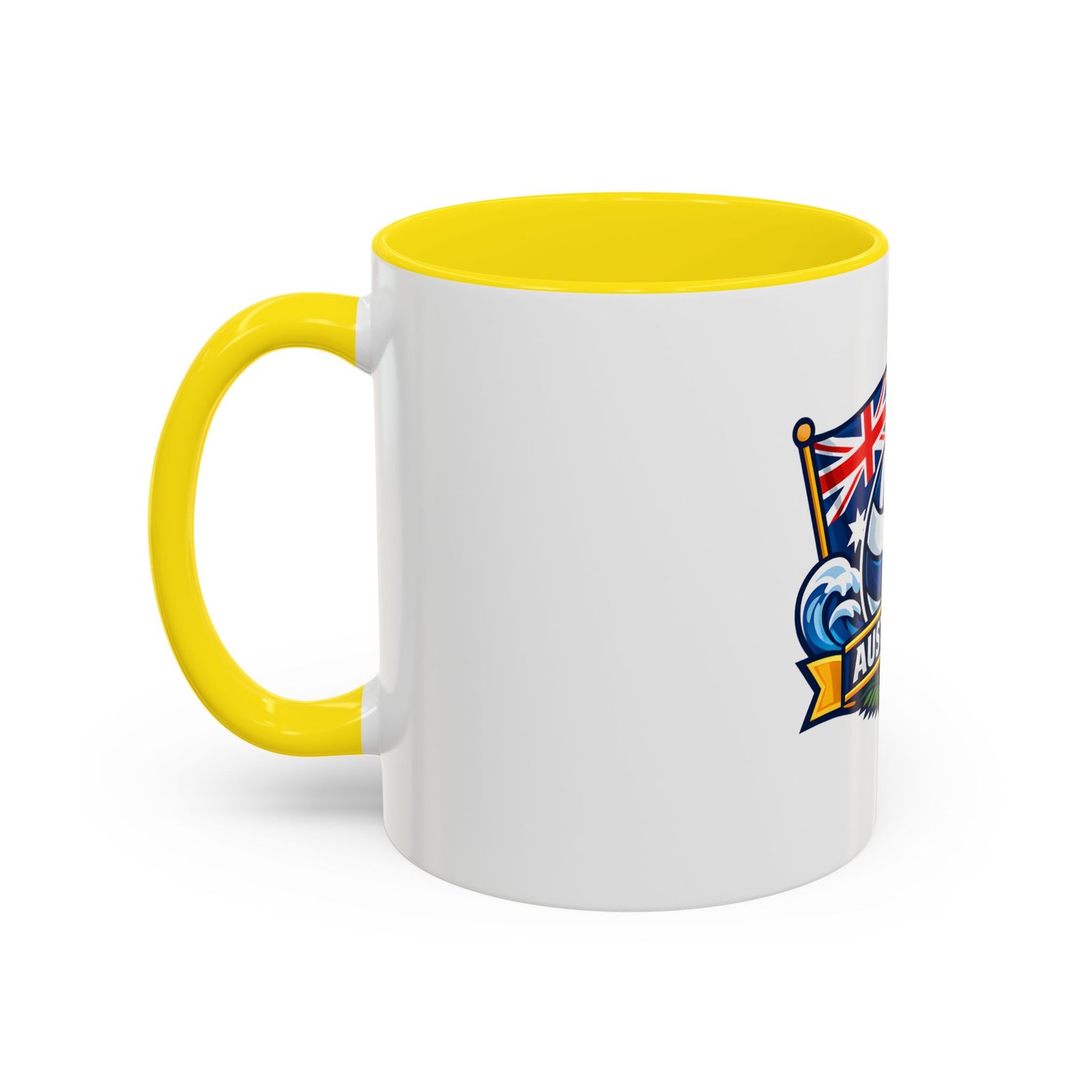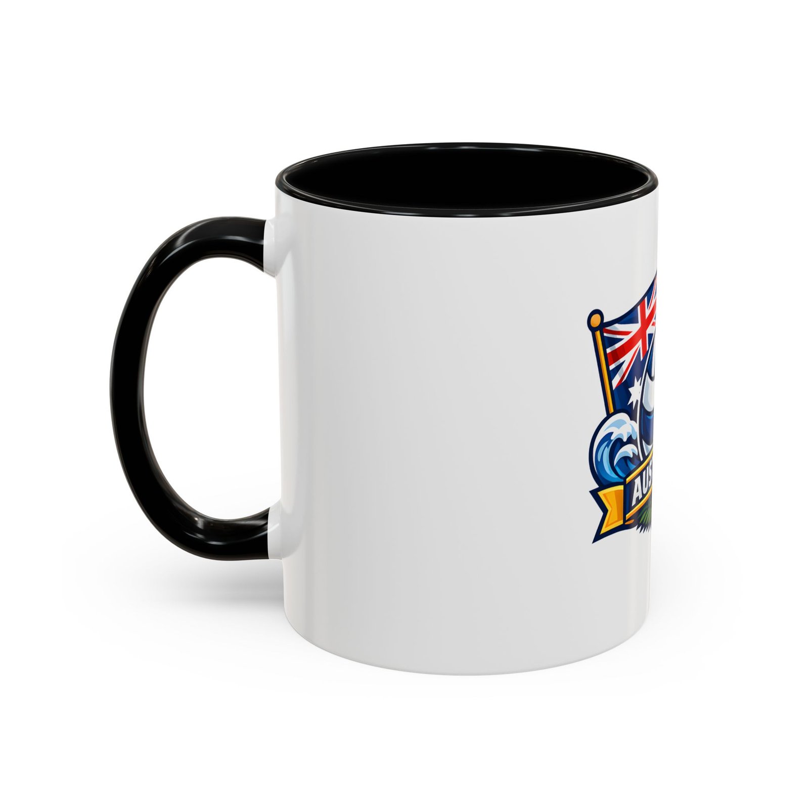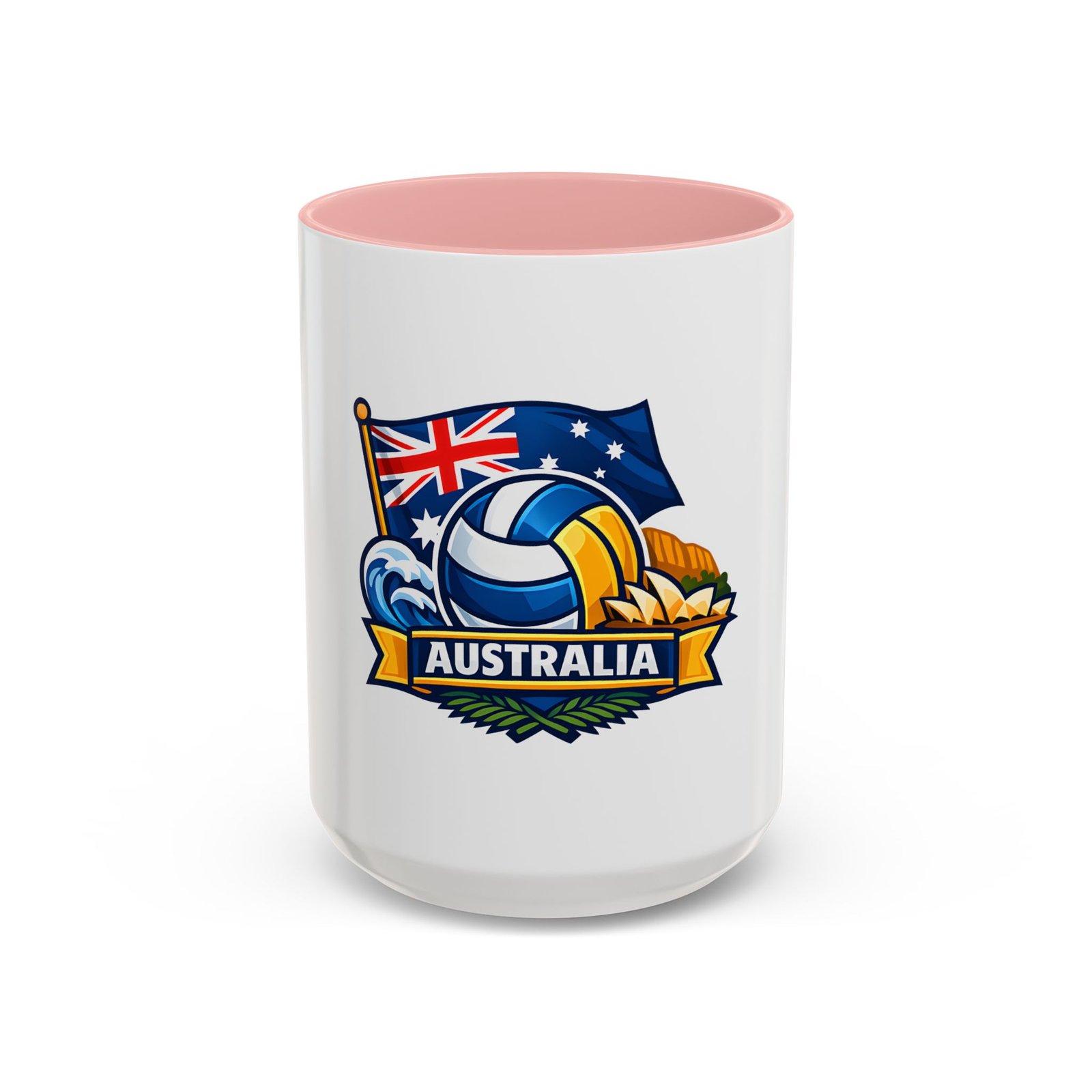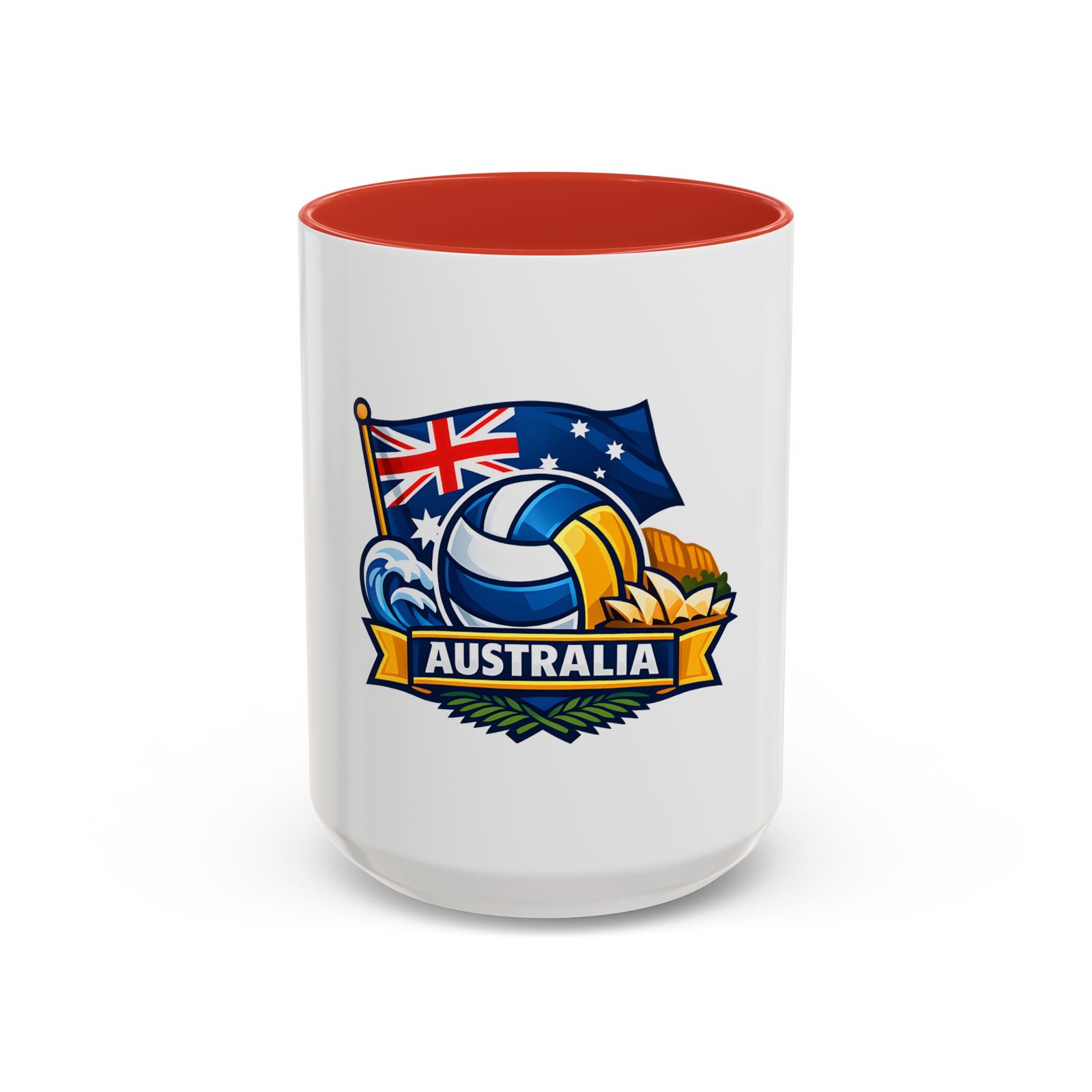 Celebrate the spirit of Aussie volleyball with a bright, proudly styled ceramic mug. The bold emblem—volleyballs, ocean waves, golden sunbeams and the Australian flag—wraps around a glossy white canvas, while the contrasting black interior and handle give it a sporty, modern edge. Sip your morning coffee or post-practice tea and feel connected to coastal courts, early-morning training, and the shared rush after a tight set. This mug sits naturally in the hands of players, coaches, and devoted fans who live for the serve, the sand, and the roar of the crowd. It’s the kind of everyday object that sparks quick smiles, team chatter, and memories of sunlit matches.