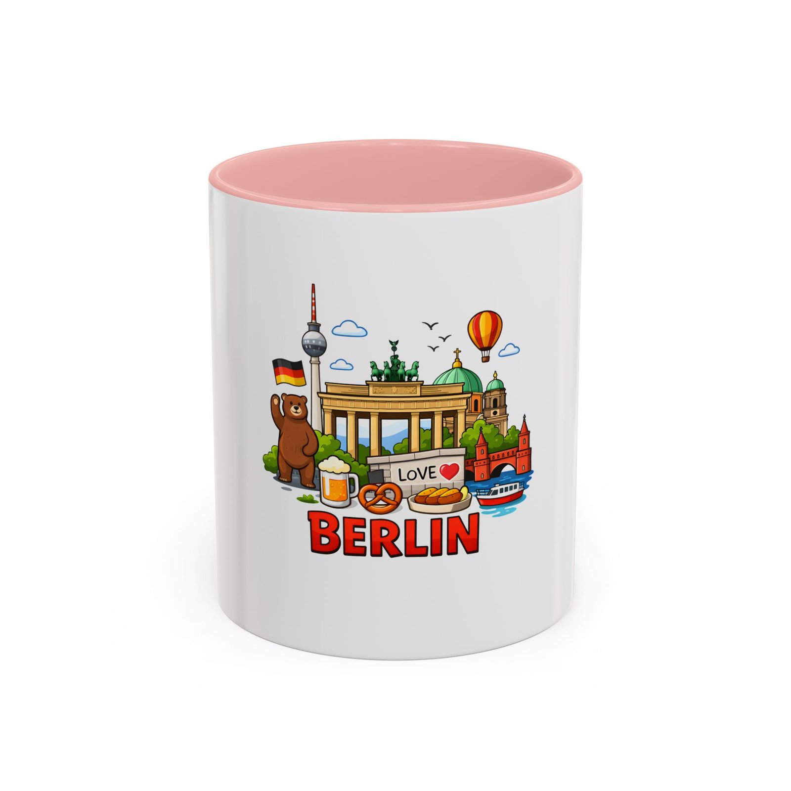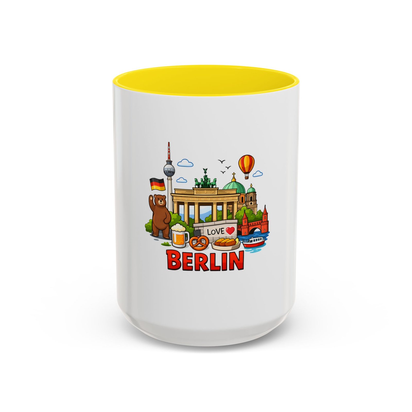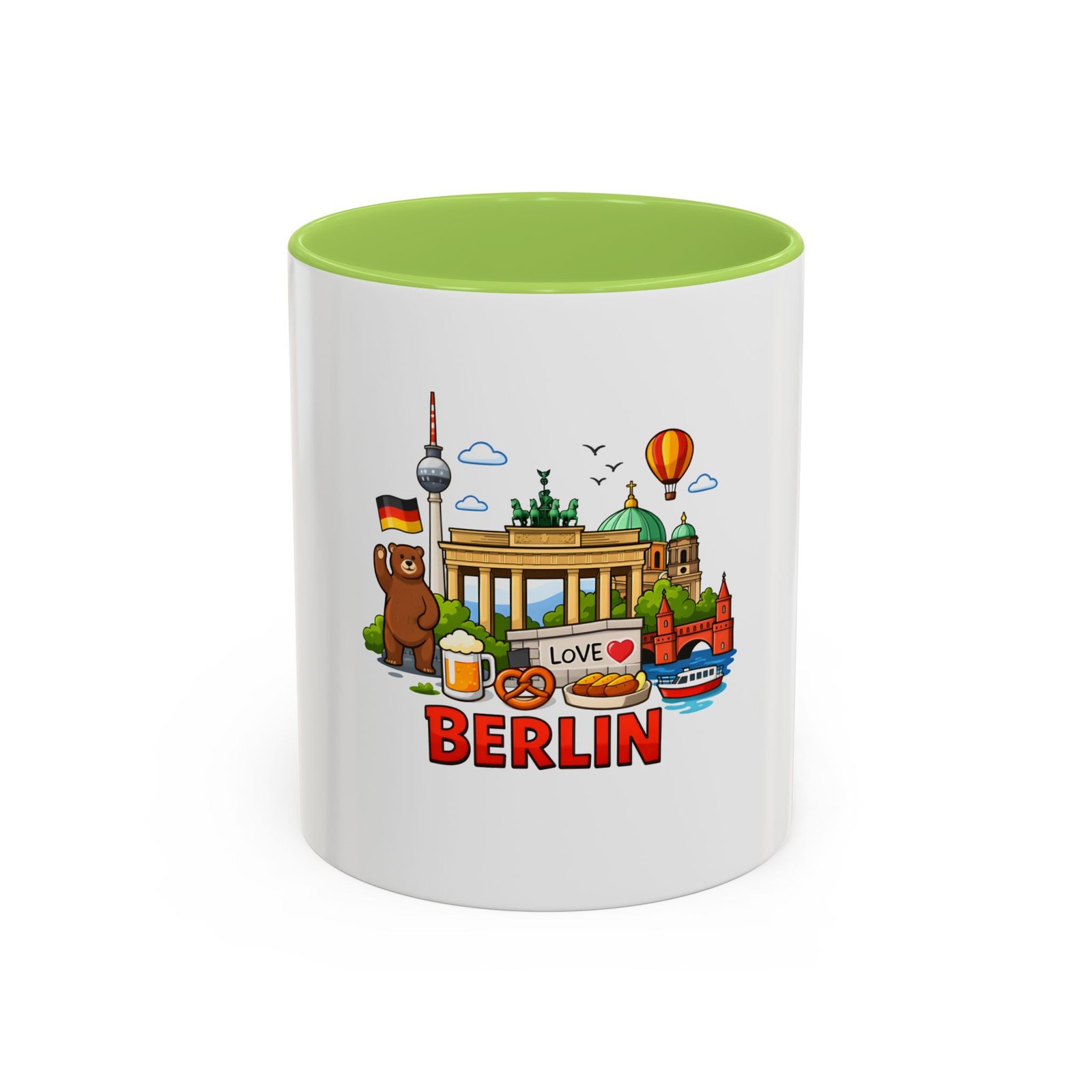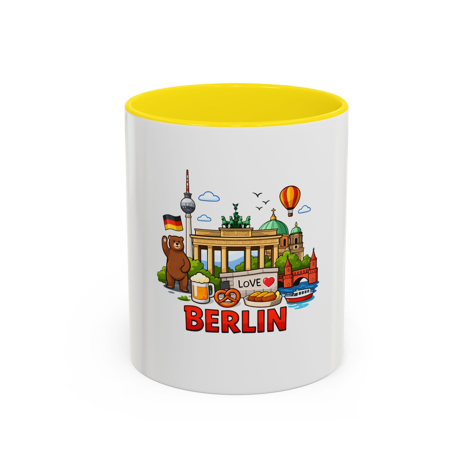 Sip your morning coffee while taking a tiny, colorful trip to Berlin. This ceramic accent mug pairs a bright, glossy finish with a bold interior and handle color to make every sip feel playful. The illustration wraps iconic Berlin touches — a bear, Brandenburg Gate, TV tower, and a frothy beer — into a cheerful scene that sparks nostalgia for city streets, lazy cafe mornings, and sunlit river walks. Durable enough for daily use, it keeps its vivid print through the dishwasher and is microwave safe, so it’s as practical as it is charming. Whether it’s on your desk or held in hand at the kitchen table, this mug adds a pocket of wanderlust to ordinary moments.
