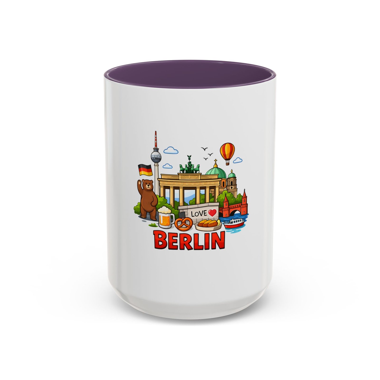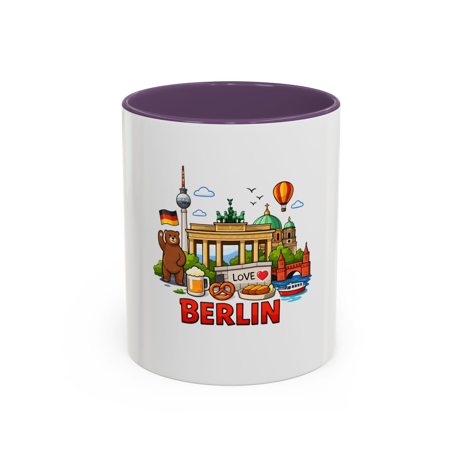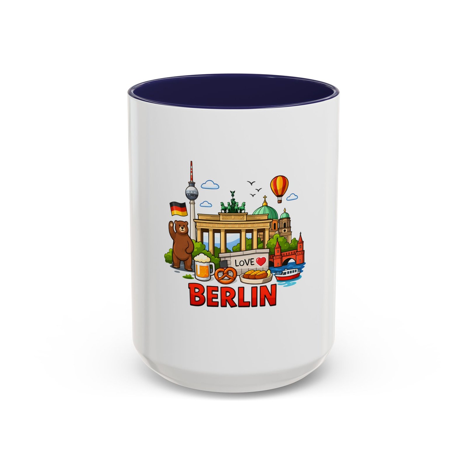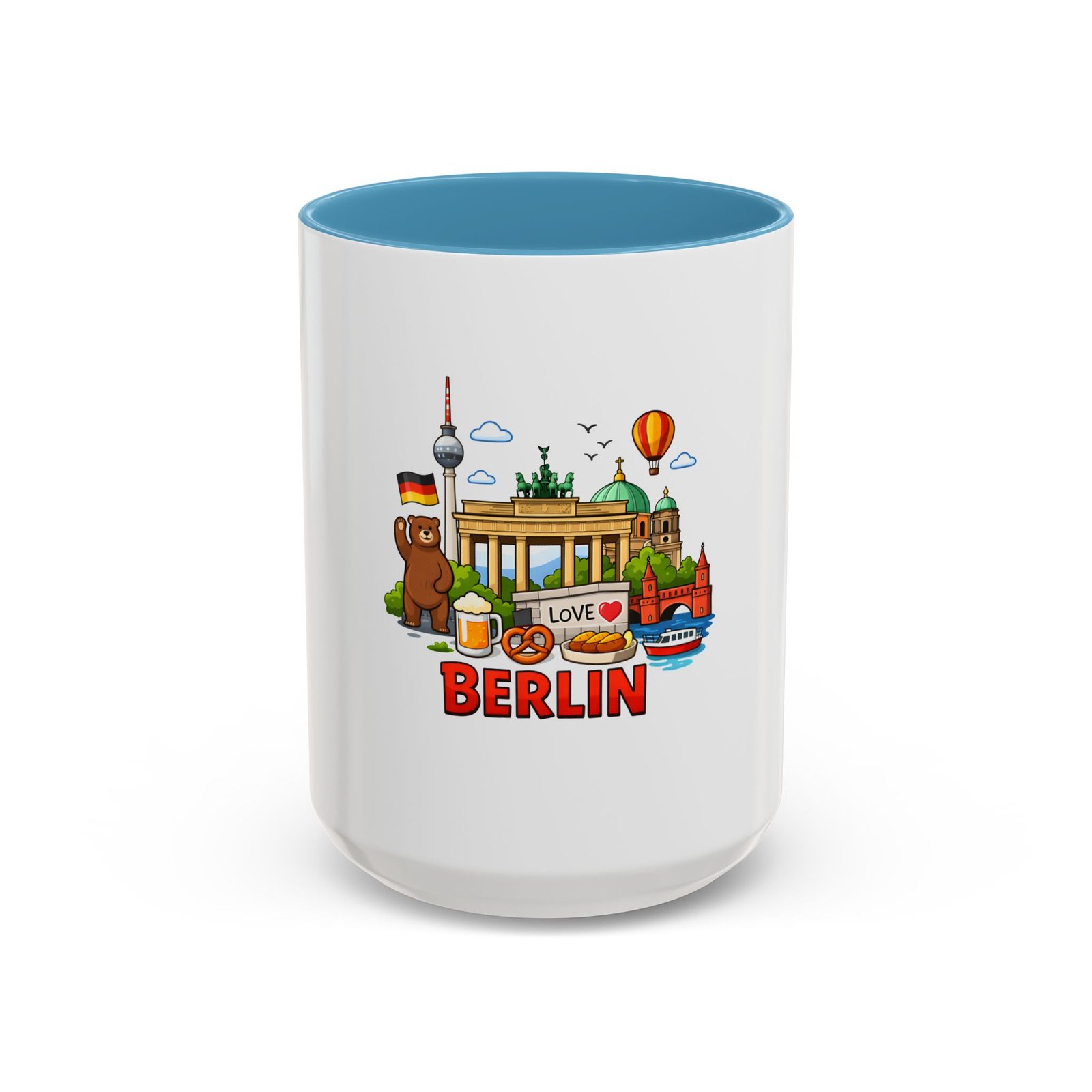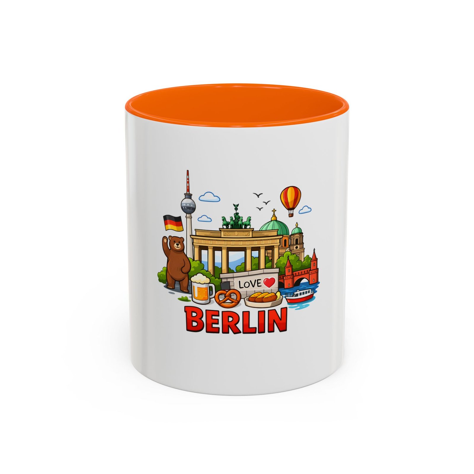 Sip your morning coffee while taking a tiny, colorful trip to Berlin. This ceramic accent mug pairs a bright, glossy finish with a bold interior and handle color to make every sip feel playful. The illustration wraps iconic Berlin touches — a bear, Brandenburg Gate, TV tower, and a frothy beer — into a cheerful scene that sparks nostalgia for city streets, lazy cafe mornings, and sunlit river walks. Durable enough for daily use, it keeps its vivid print through the dishwasher and is microwave safe, so it’s as practical as it is charming. Whether it’s on your desk or held in hand at the kitchen table, this mug adds a pocket of wanderlust to ordinary moments.
