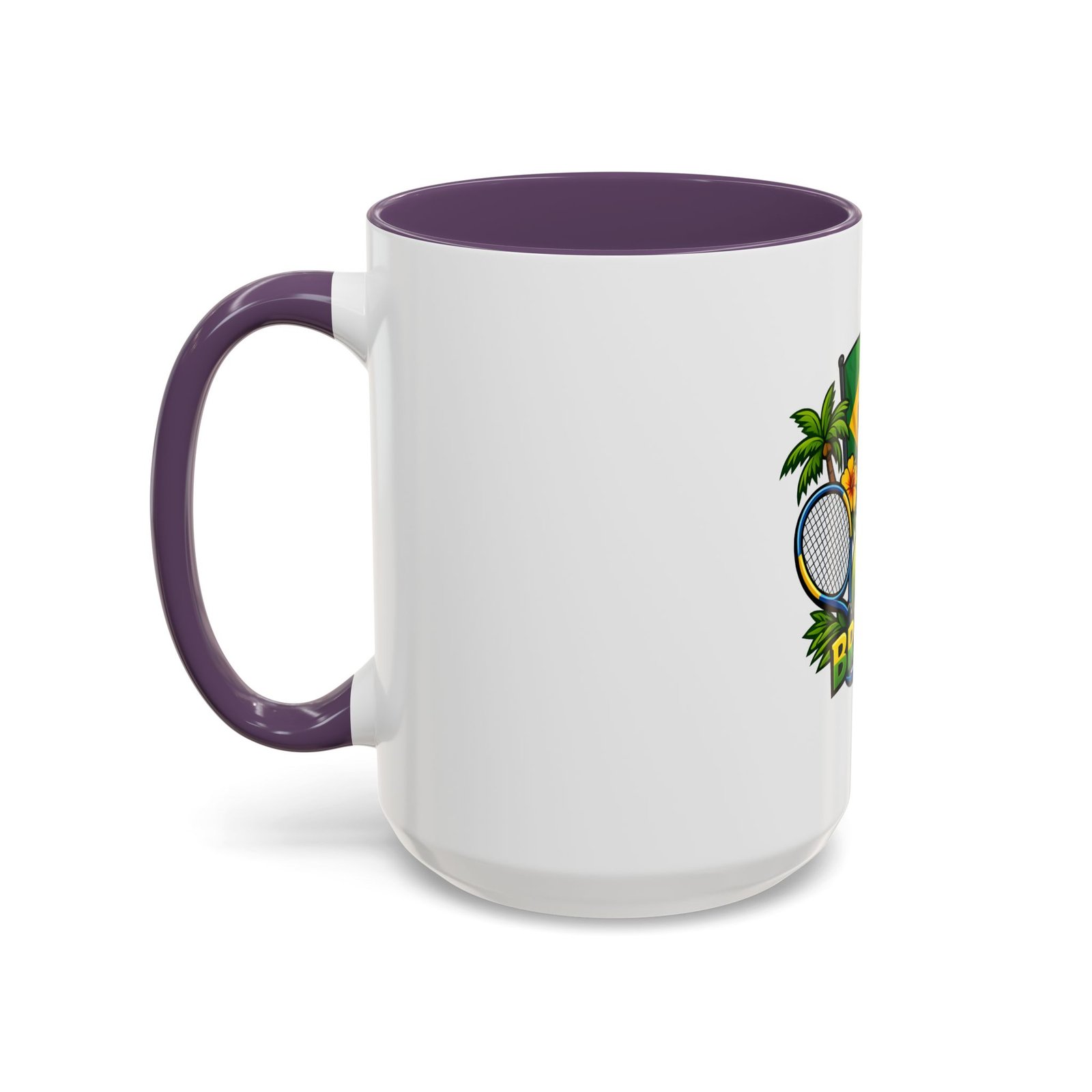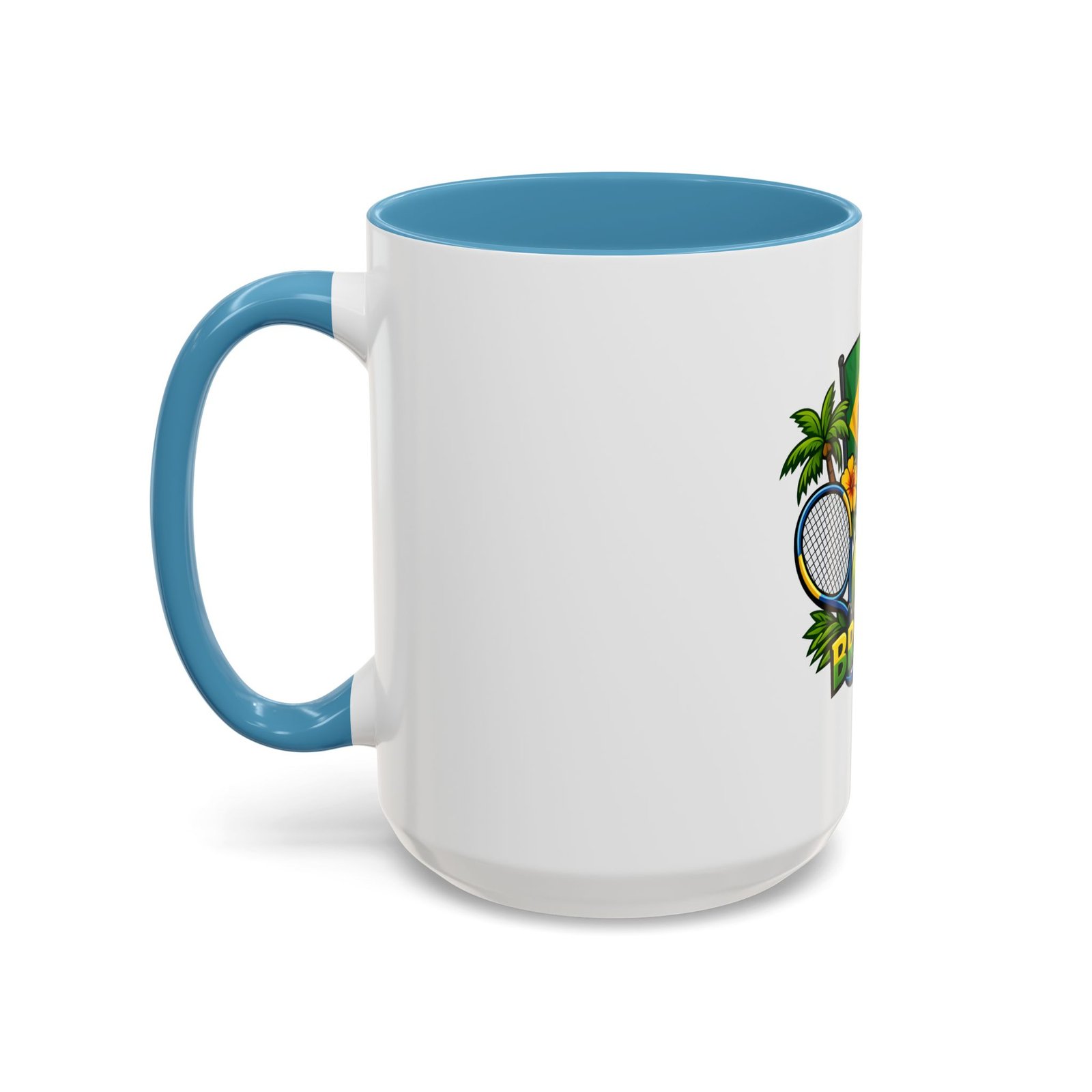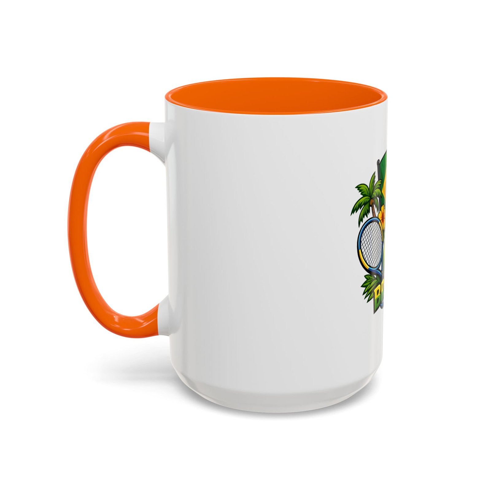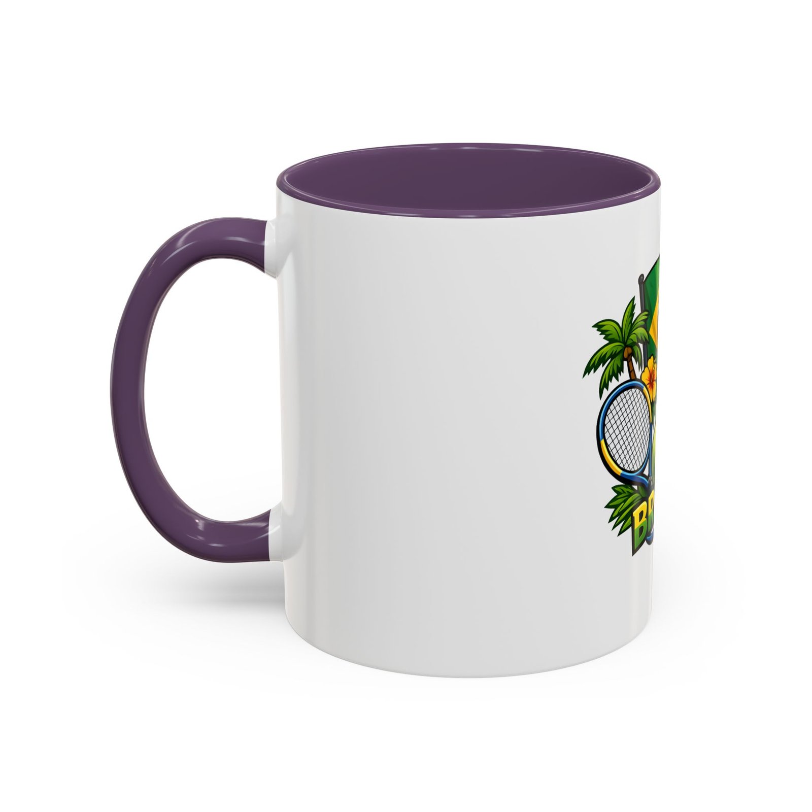 Morning light, strong coffee, and the hum of anticipation — this ceramic mug brings a little Brazil to your daily ritual. Color-rich printing showcases the Brazilian flag, a tennis racket and ball, tropical palms, hibiscus, and the silhouette of Christ the Redeemer, all framed by vivid contrast between the white exterior and the colored interior and handle. It feels lively in your hands and lively on the table, whether you’re sipping before a match, celebrating a win, or reminiscing about sunlit courts and coastal breezes. The glossy finish and bold colors keep the design bright through regular use, and the comfortable C-shaped handle fits naturally whether you reach for an espresso shot or a long, leisurely pour-over.