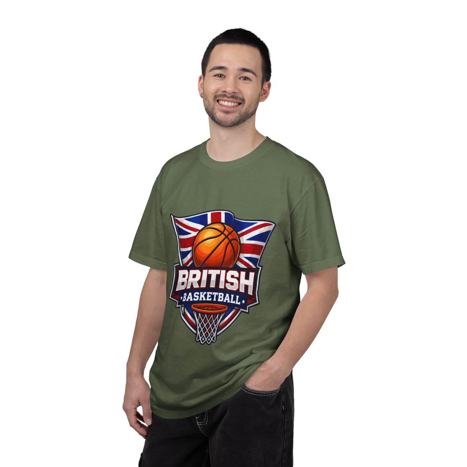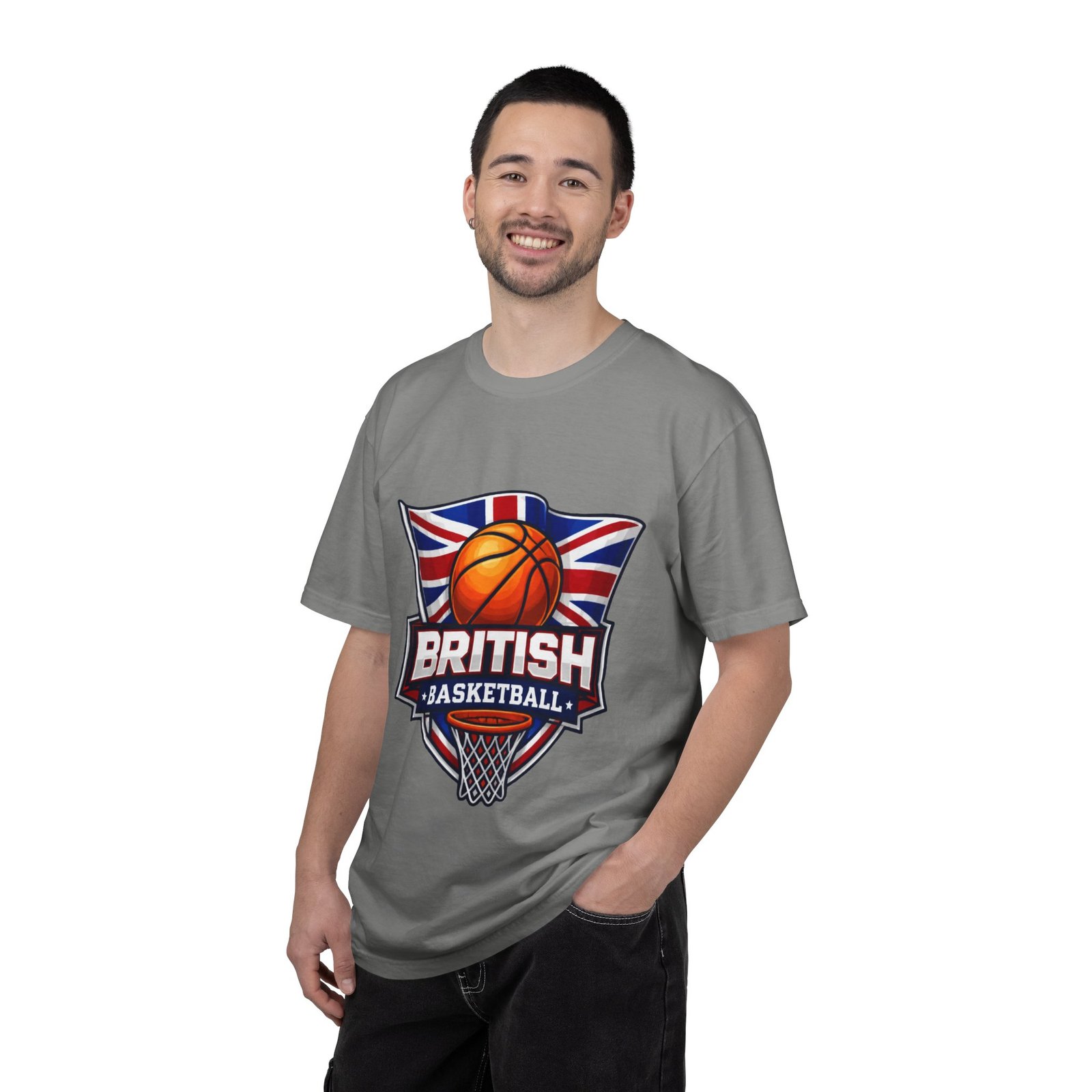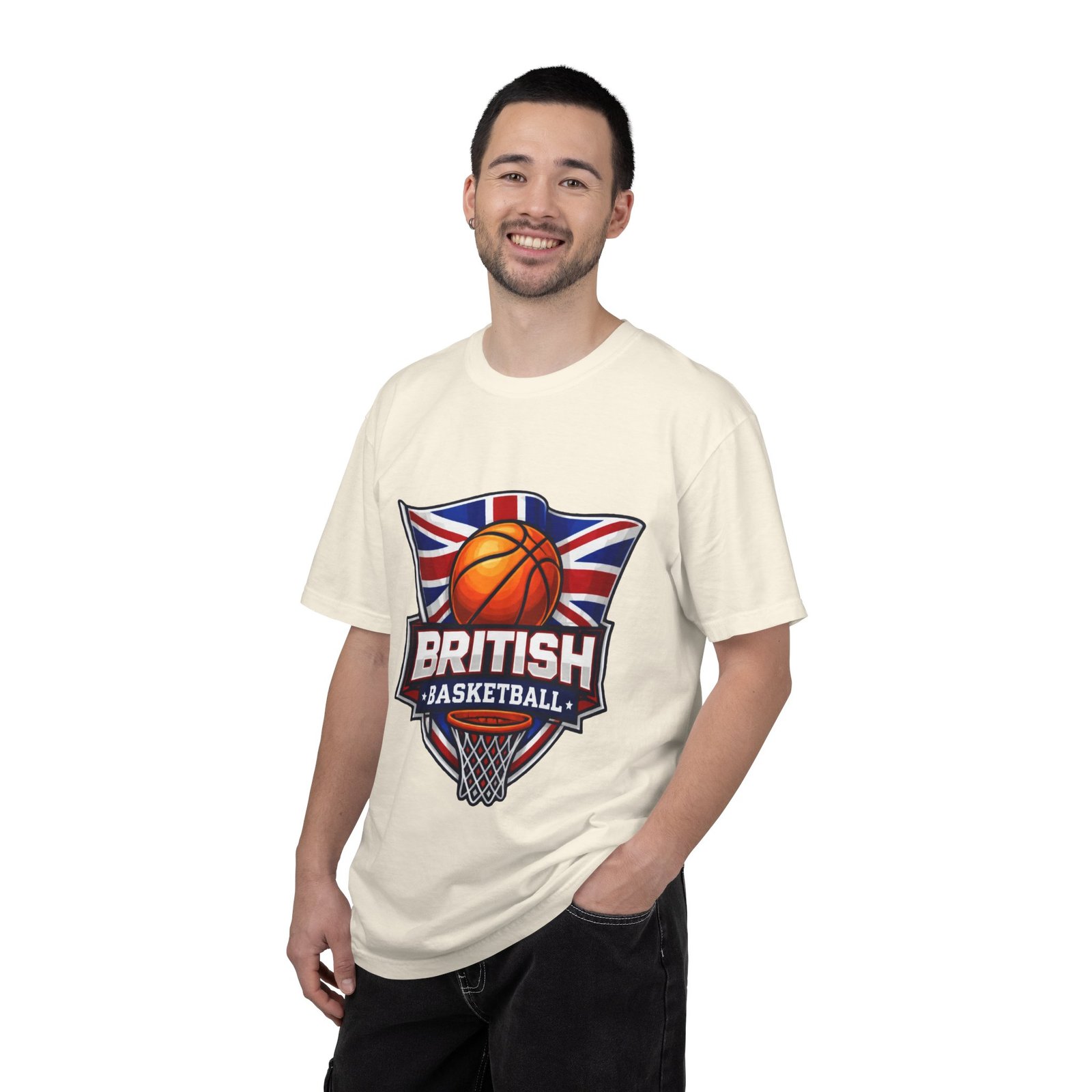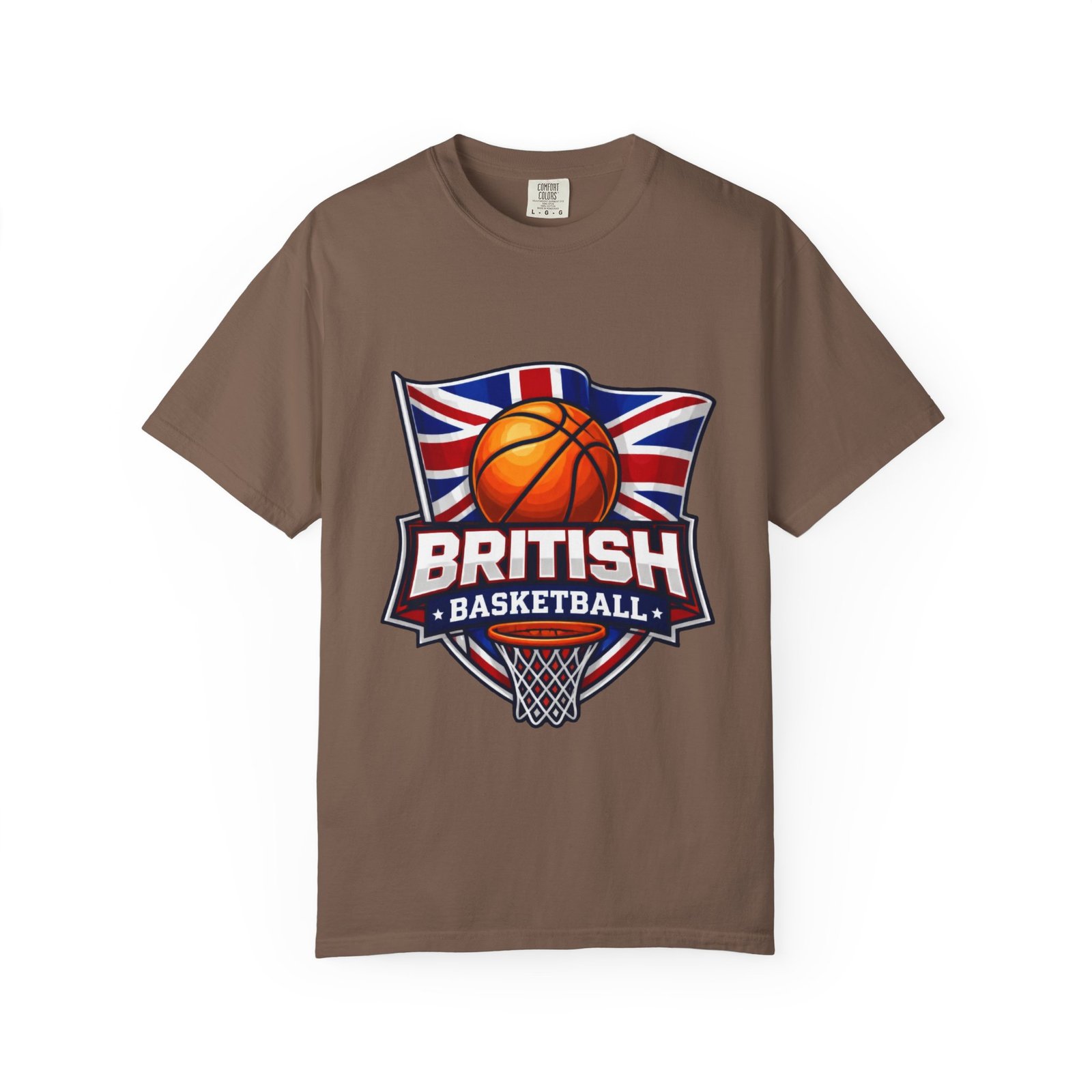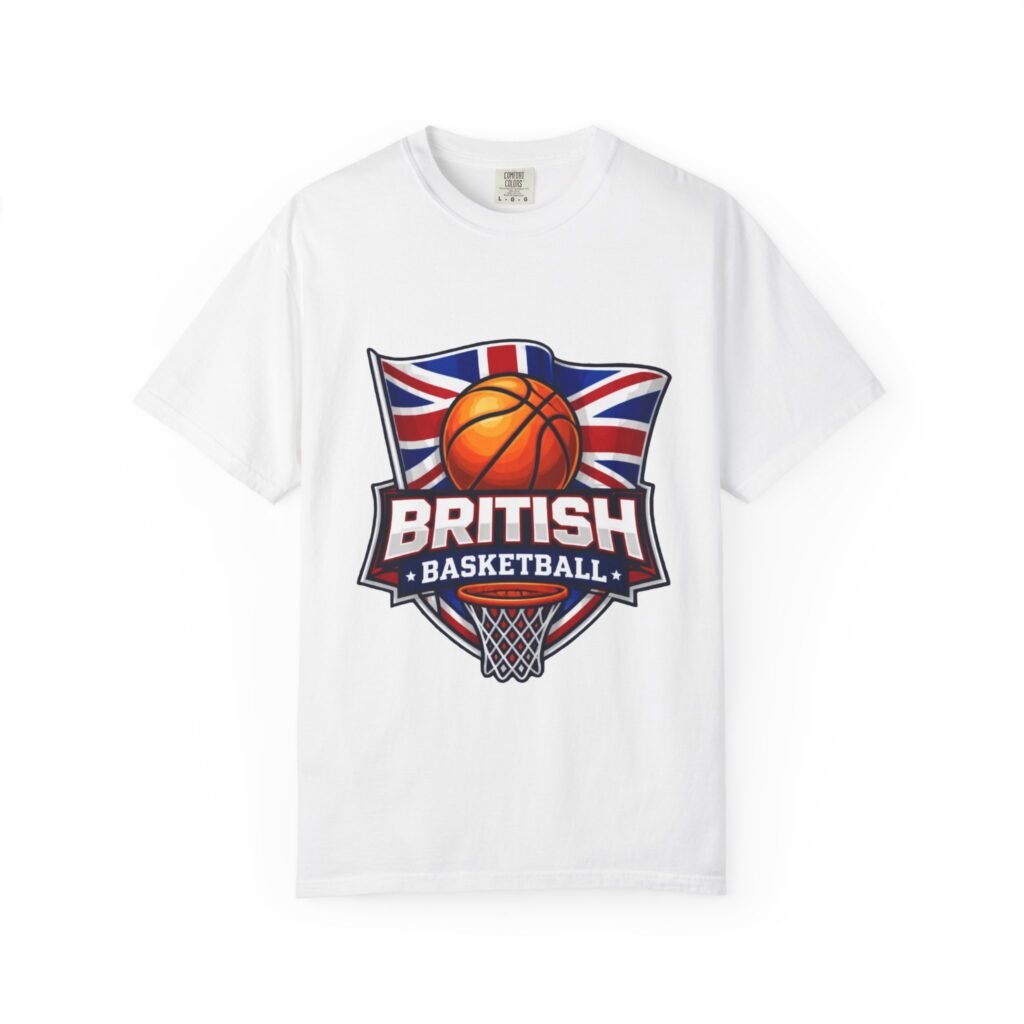 A soft, garment-dyed cotton tee that proudly celebrates British basketball culture. The relaxed, heavyweight fabric feels broken-in from the first wear, and the bold crest-style artwork — a basketball set against the Union Jack with a hoop below — reads loud and clear on the chest. Wear it to practice, to the local court, or around town to signal your love for the game and for British hoops history. The shirt’s muted, lived-in color and sturdy construction make it one you’ll reach for again and again.