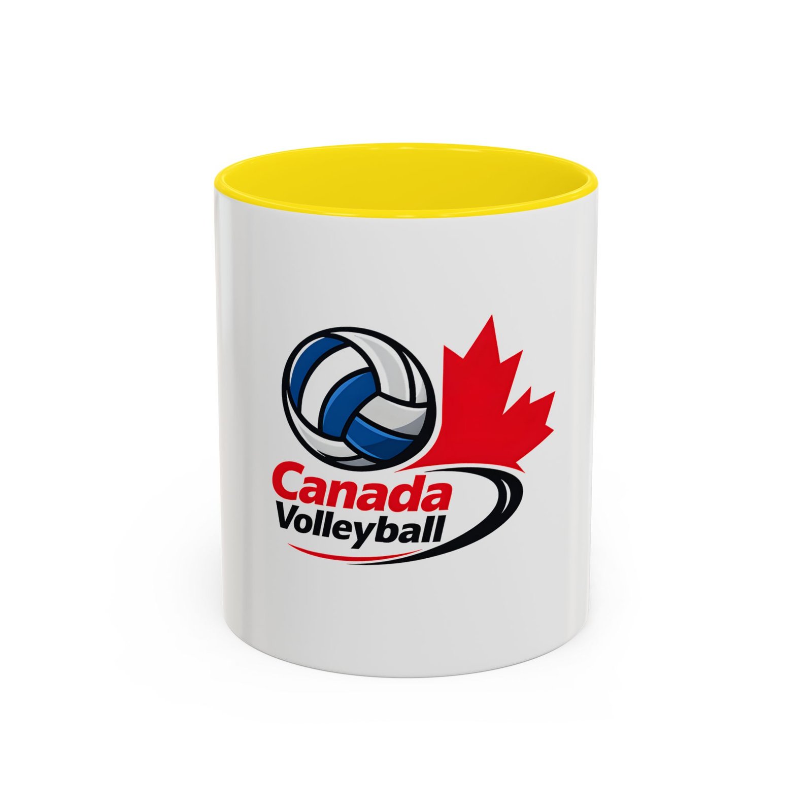 Warmth in hand, pride on display. This ceramic accent mug pairs a glossy white exterior with a bold black interior and handle, letting the Canada Volleyball crest pop with bright, crisp color. It’s the kind of mug that starts conversations — post-practice coffee, early morning game-day routine, or a quiet moment replaying last night’s set. The sturdy C-shaped handle and balanced weight feel familiar and dependable. Dishwasher and microwave safe, it stands up to everyday use while keeping that spirited design vivid. Whether sitting on a coach’s desk, tucked into a team locker, or warmed between sets, this mug quietly celebrates the love of the game.