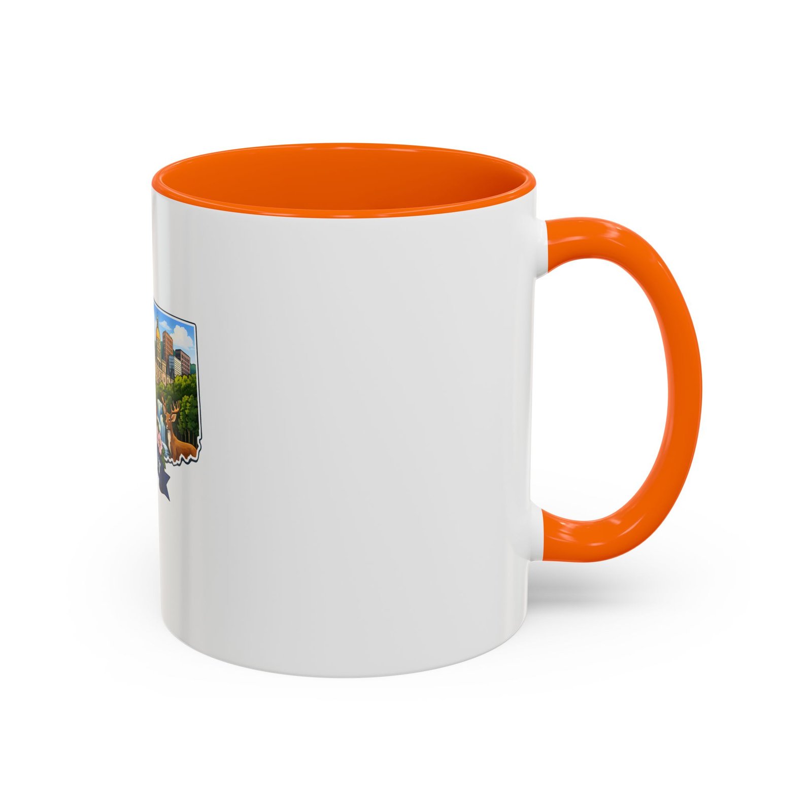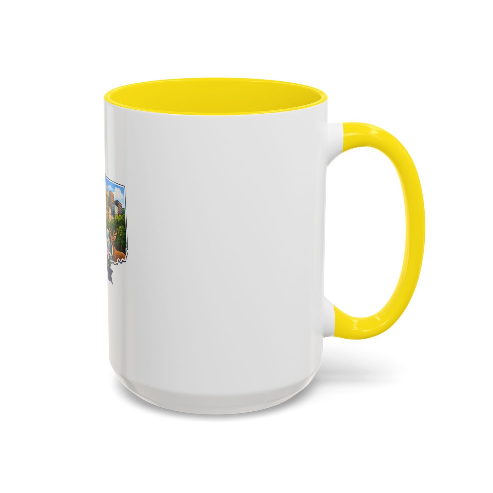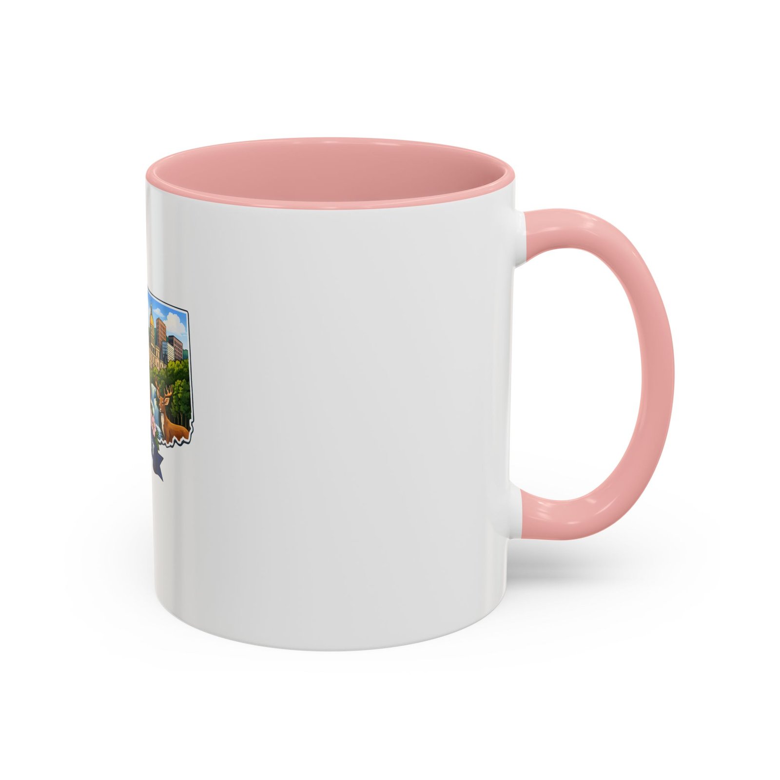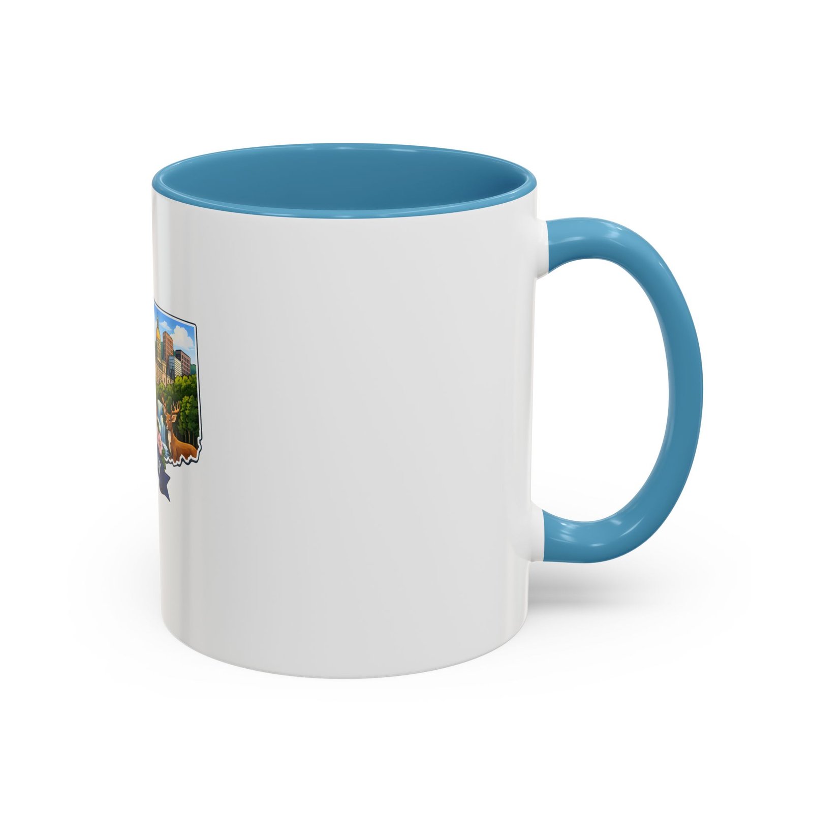 Warm, bright, and full of local charm — this ceramic accent mug celebrates Connecticut with a cheerful illustrated map wrapped around a glossy white canvas. A bold colored interior and handle add playful contrast, while the vivid print captures lighthouses, sailboats, fall foliage, and classic shoreline scenes that bring a morning cup of coffee or tea to life. The comfortable C-shaped handle and two size options make it easy to reach for every day. It’s the kind of mug that feels like home: familiar, colorful, and a little bit nostalgic.