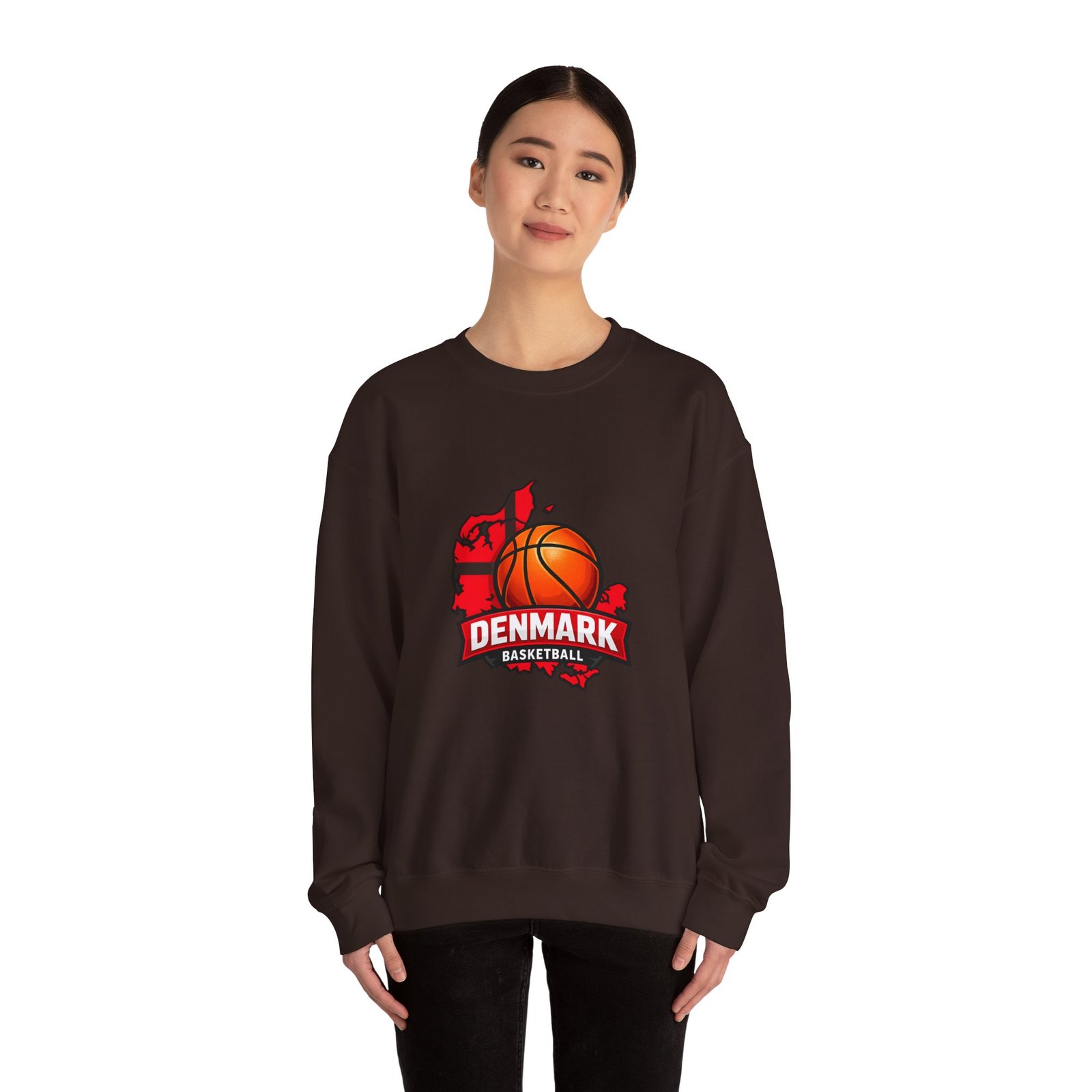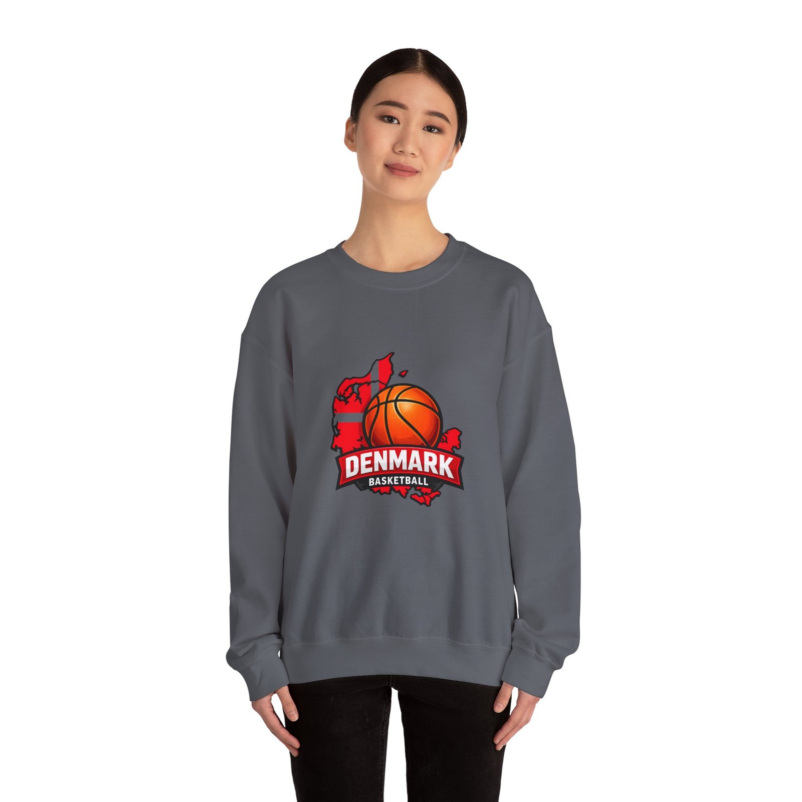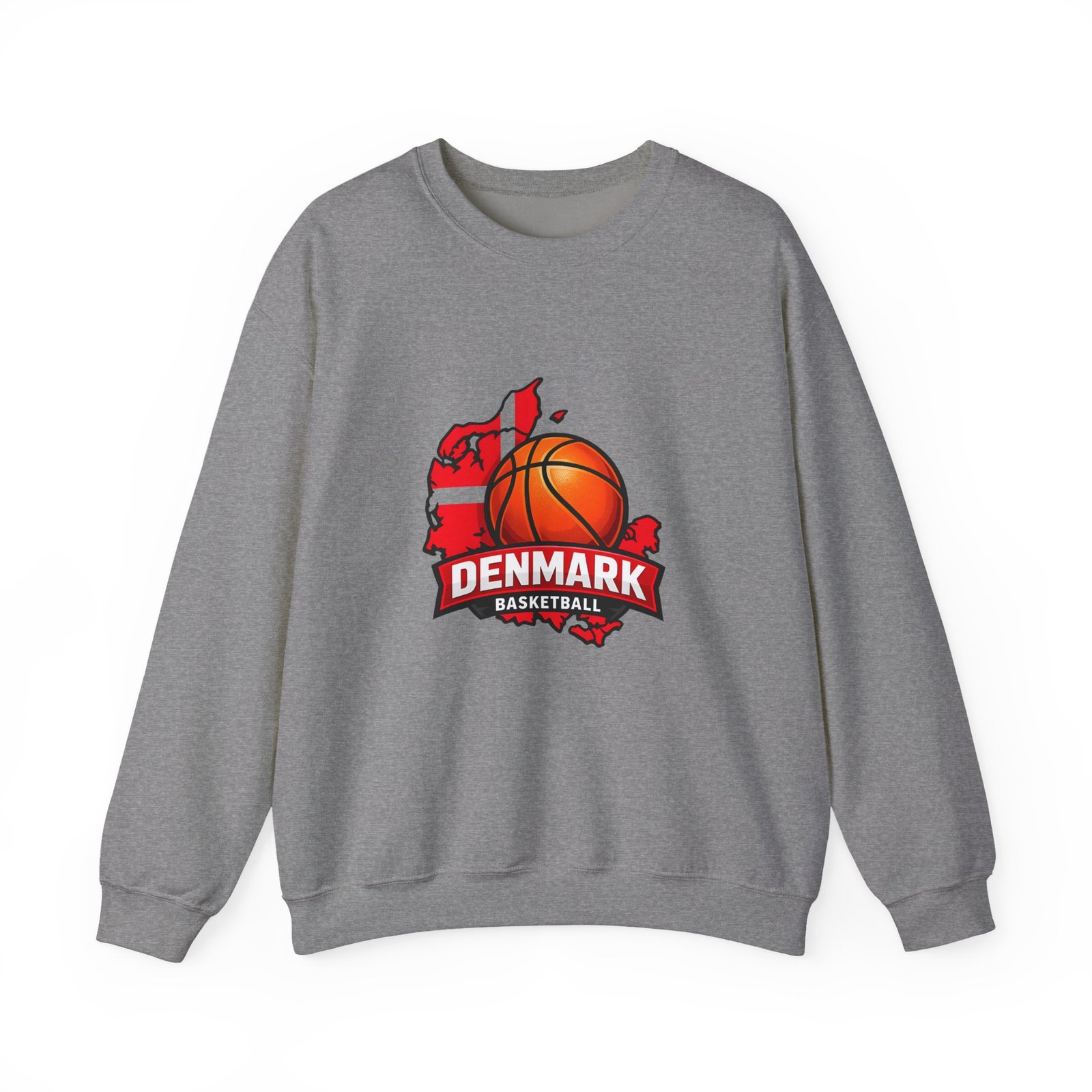 Wear a quiet roar of national pride on cool evenings. This mid-weight crewneck combines soft, brushed interior comfort with a bold Denmark basketball graphic—an orange ball set against the silhouette of the country and a banner that reads “DENMARK.” It’s the kind of sweatshirt you pull on after practice, during a weekend pick-up, or while cheering from the stands. The classic fit and ribbed collar hold their shape through seasons. Thoughtful construction—tubular knit, double-needle seams, and a tear-away neck label—keeps the focus on the design and your day-to-day comfort. Embroidery options and DTF neck/wrist prints add tactile detail for a handcrafted team feel.