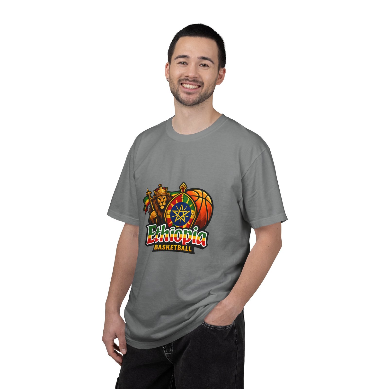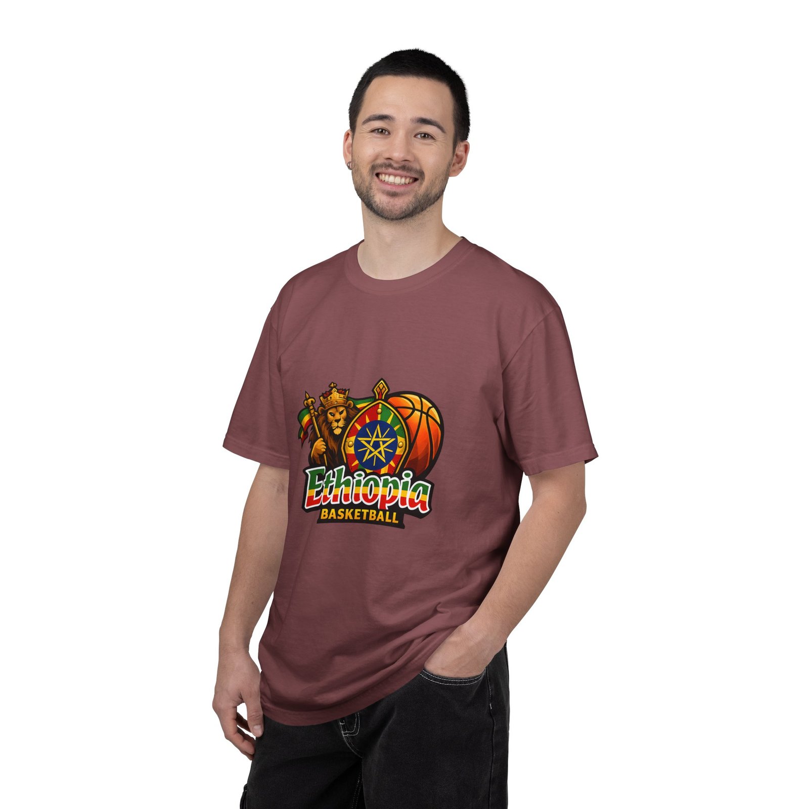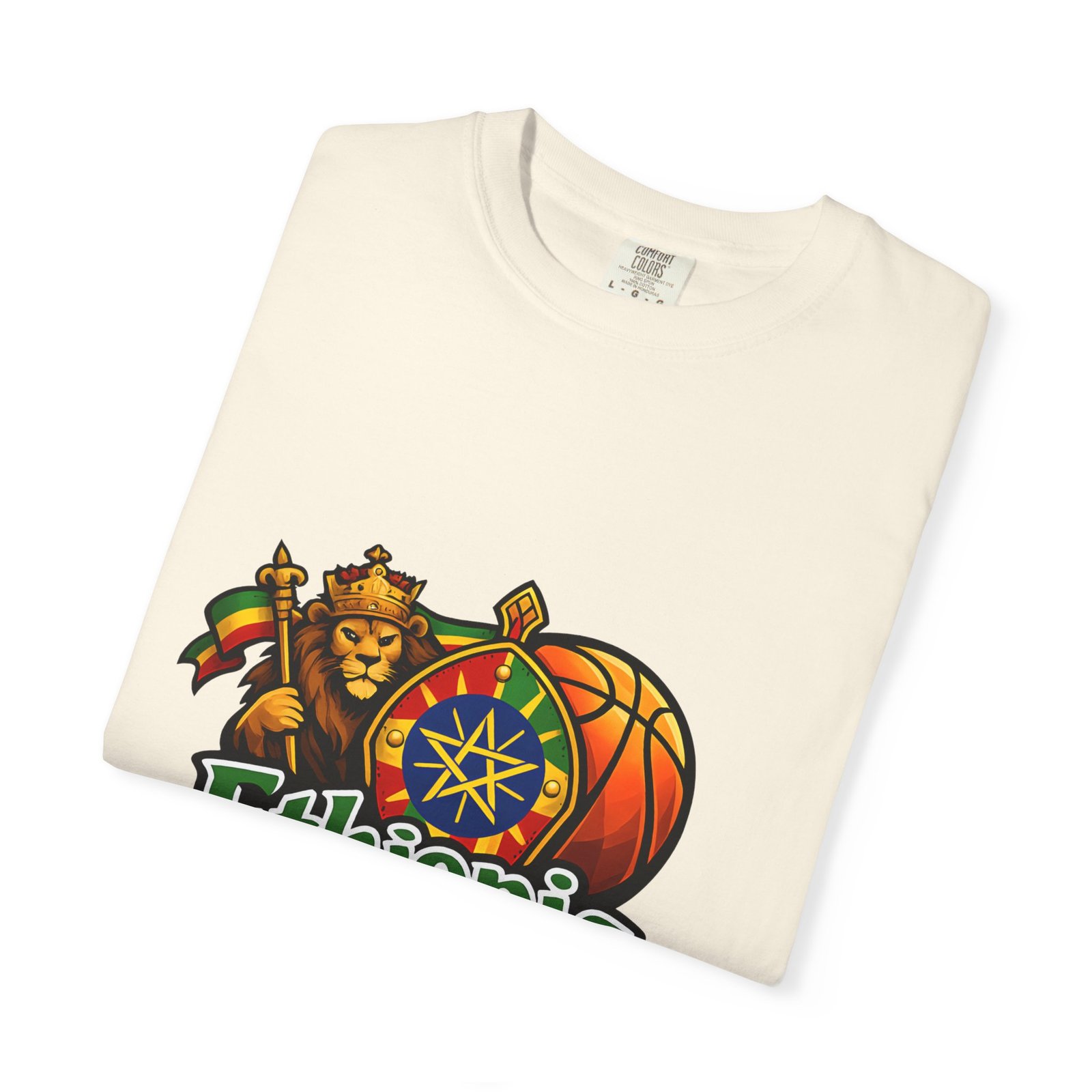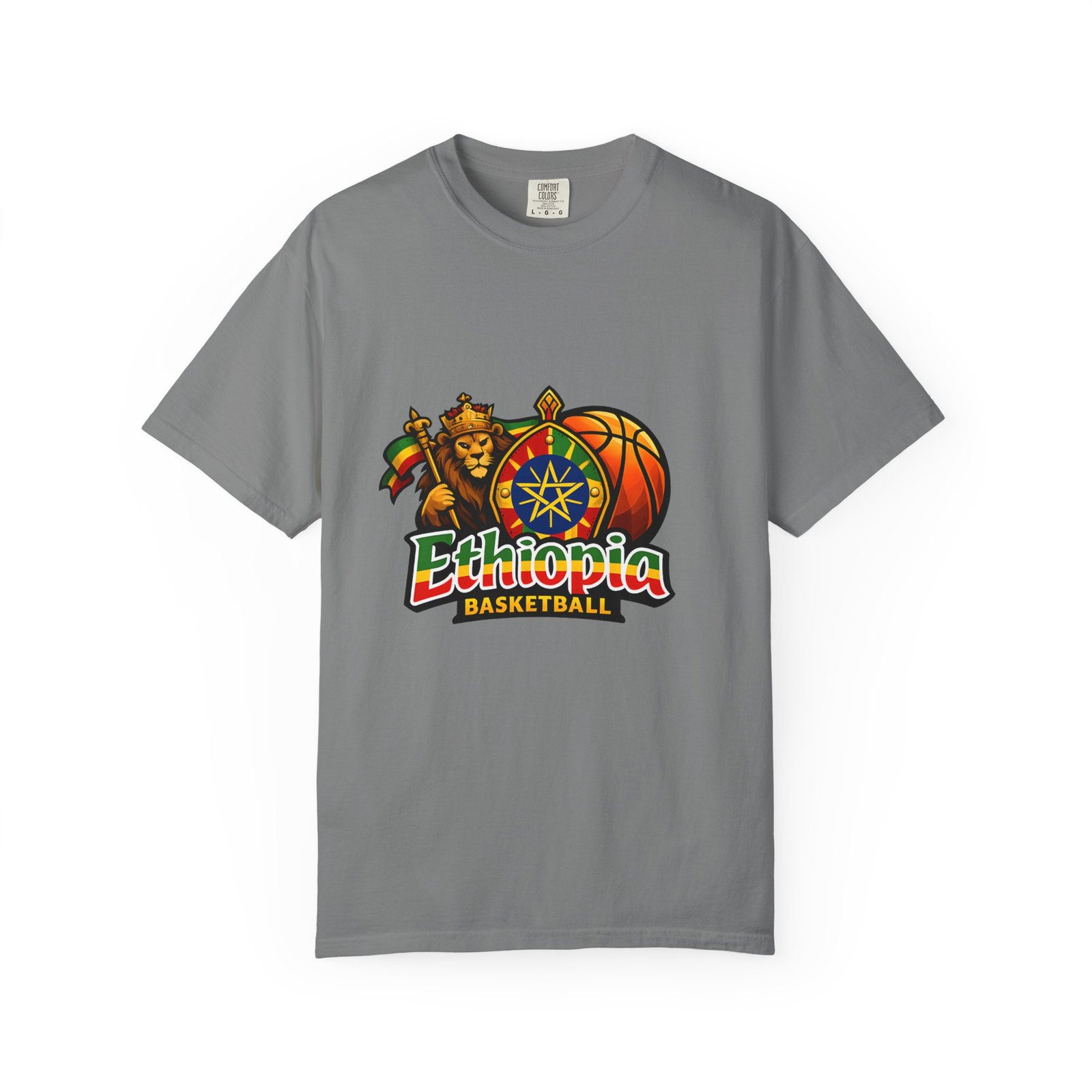This heavyweight garment-dyed tee brings a warm, lived-in feel to everyday wear while celebrating Ethiopian basketball spirit. The soft, washed cotton drapes with relaxed ease, and the vibrant chest artwork — a lion, basketball and Ethiopian emblem in bold Rasta tones — makes it feel like you’re carrying a bit of home and the court with you. It’s the kind of shirt you reach for on practice days, neighborhood pick-up games, or when you want to rep cultural pride at a community event. The muted, vintage-like color of the fabric pairs with the saturated print to create an authentic, timeworn look that only improves with wear. Durable stitching and a roomy cut let you move freely while staying comfortable through long days and active nights.