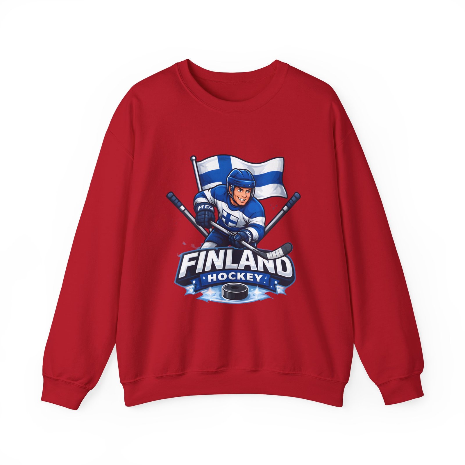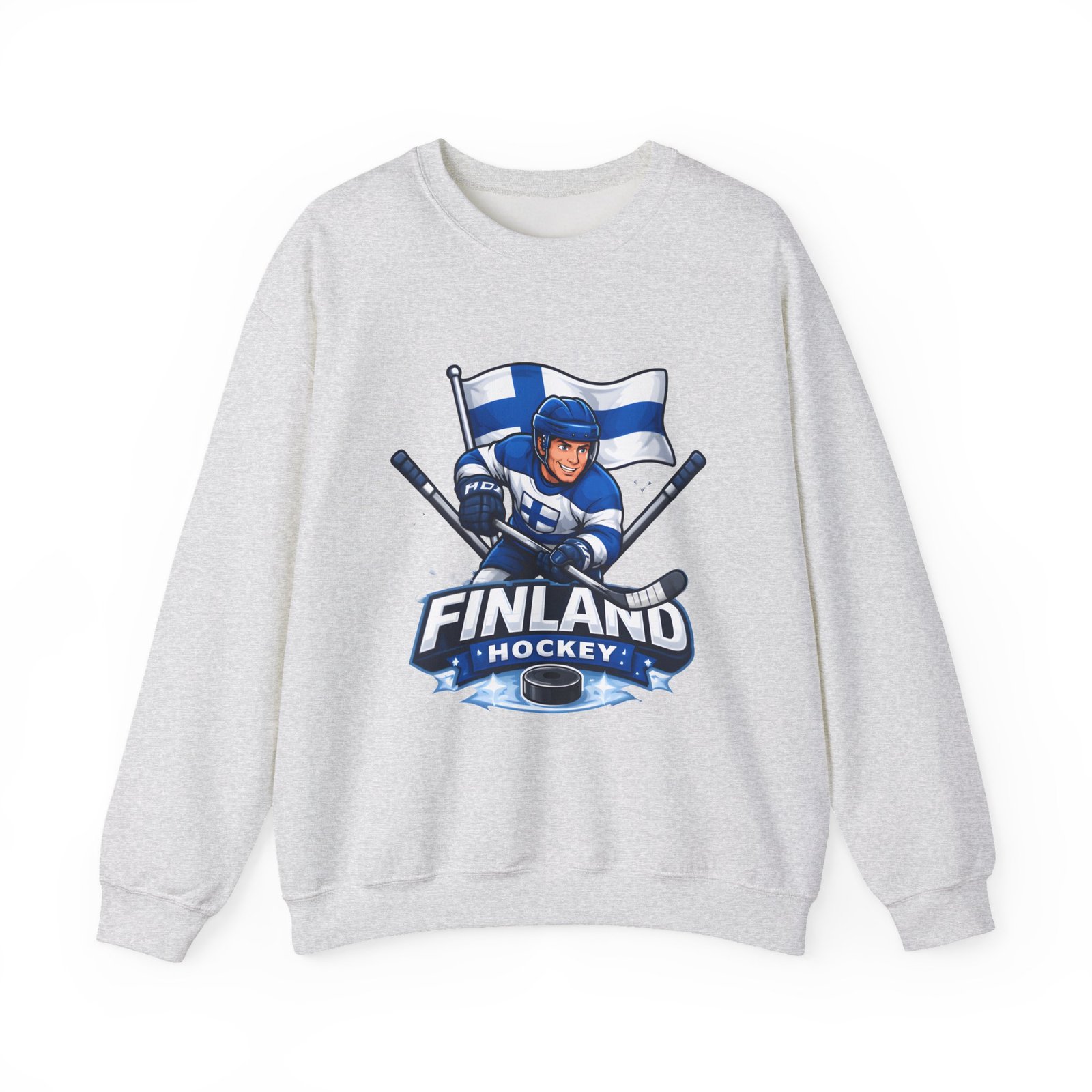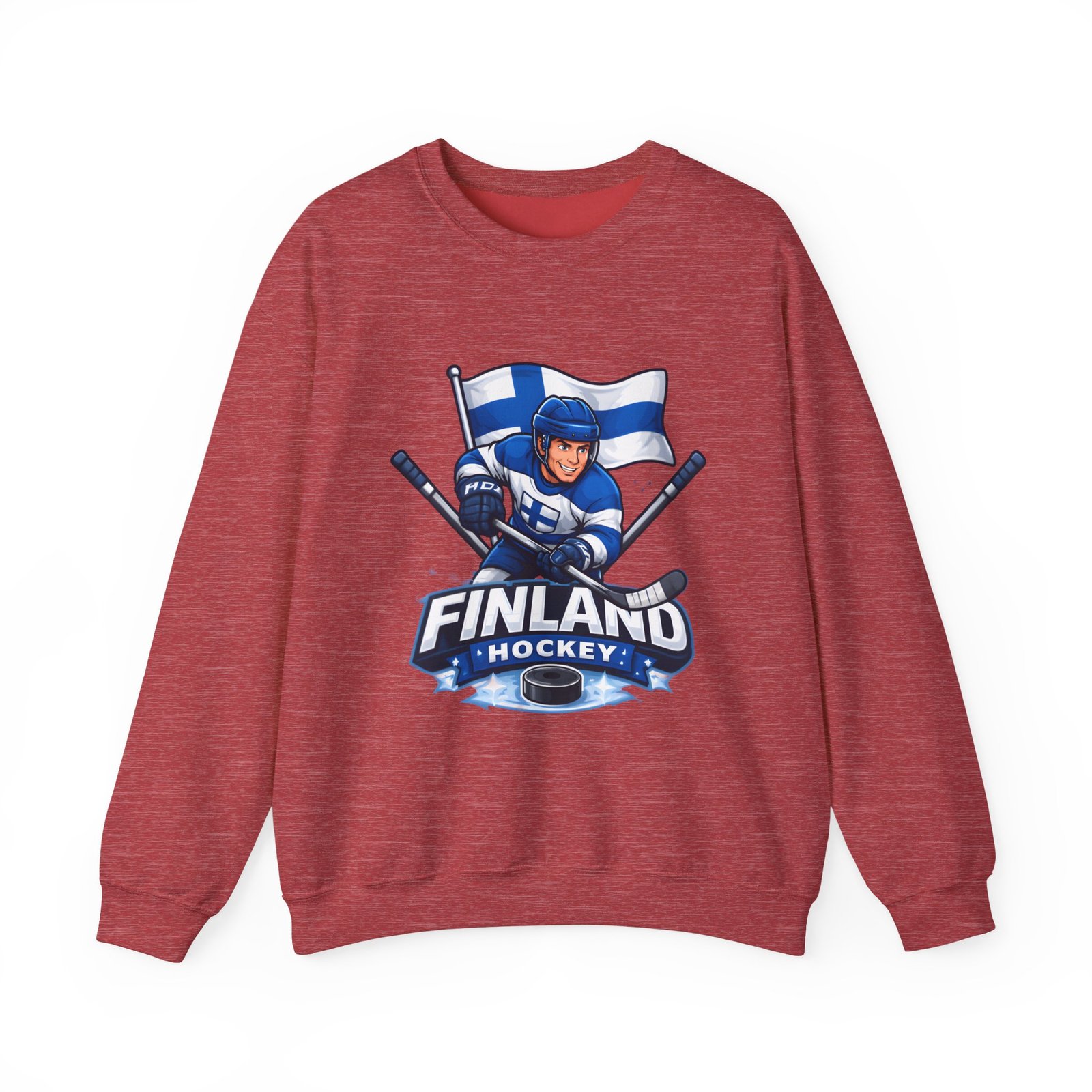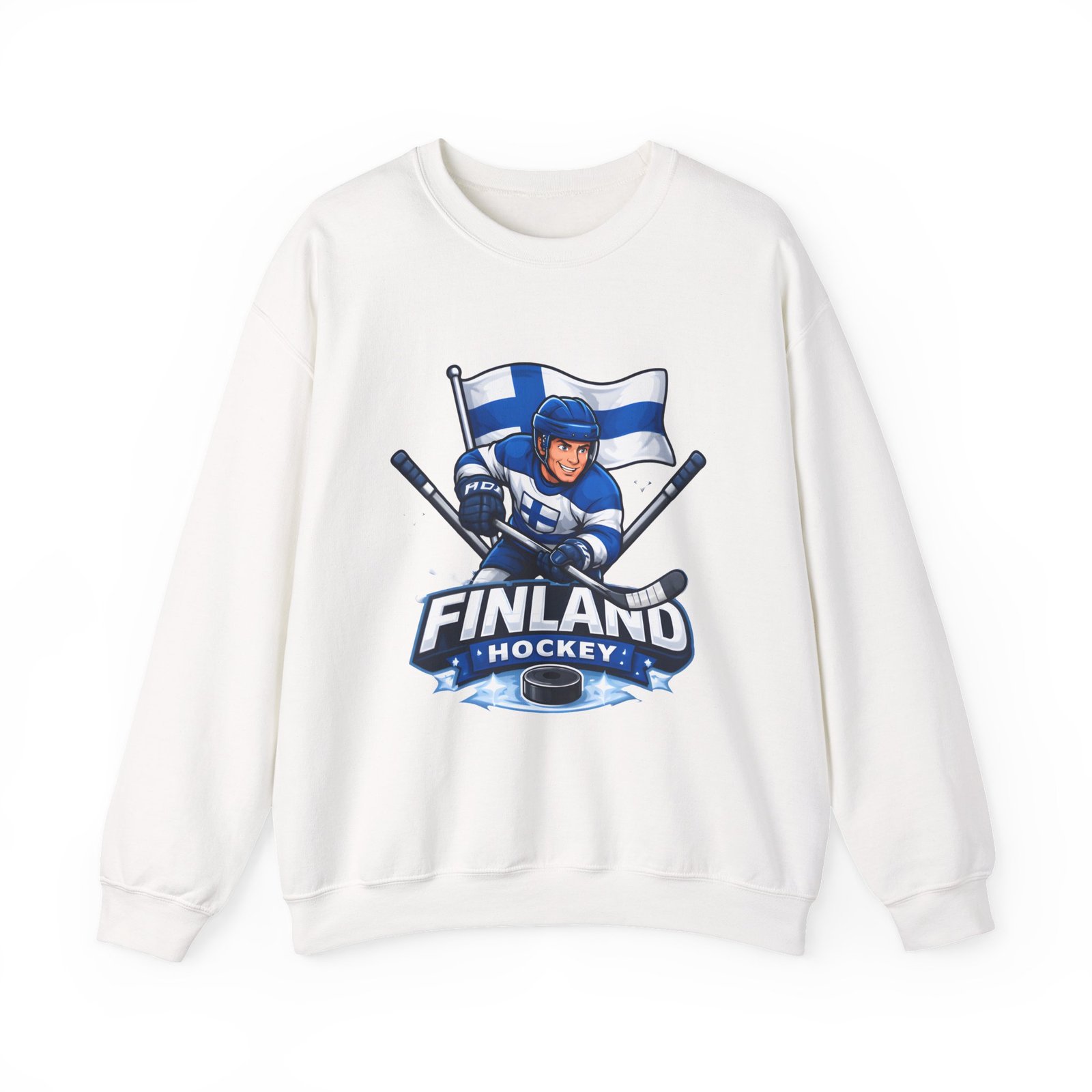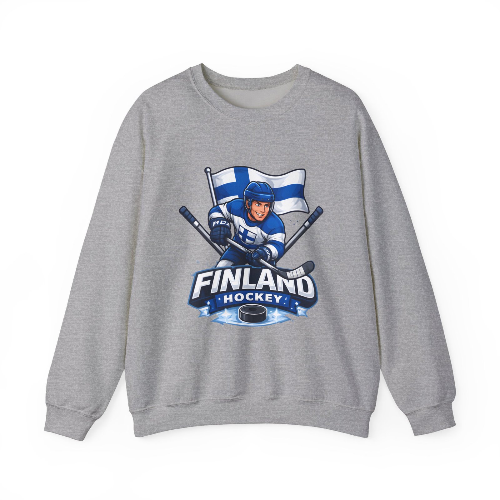 Wrap yourself in chilly-bleacher energy with this cozy crewneck that wears like a rallying cry. Soft, midweight fleece holds a bold Finland hockey emblem—skating player, crossed sticks, and waving flag—so you carry team pride without shouting. The classic fit and ribbed crew collar sit familiar and comfortable after long rides home from the rink or slow mornings with a steaming mug. Subtle label details and clean seams keep the focus on the graphic while lasting through practices, travel days, and weekends packed with friends and family.