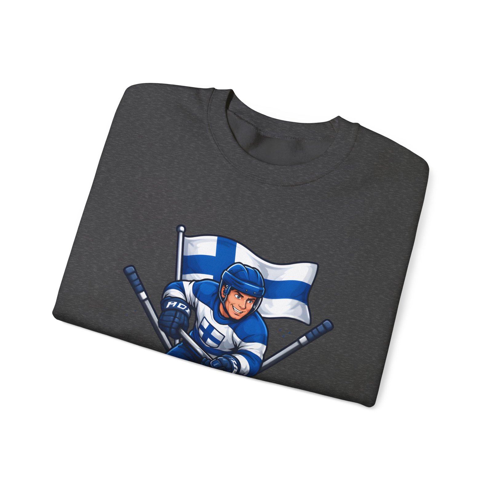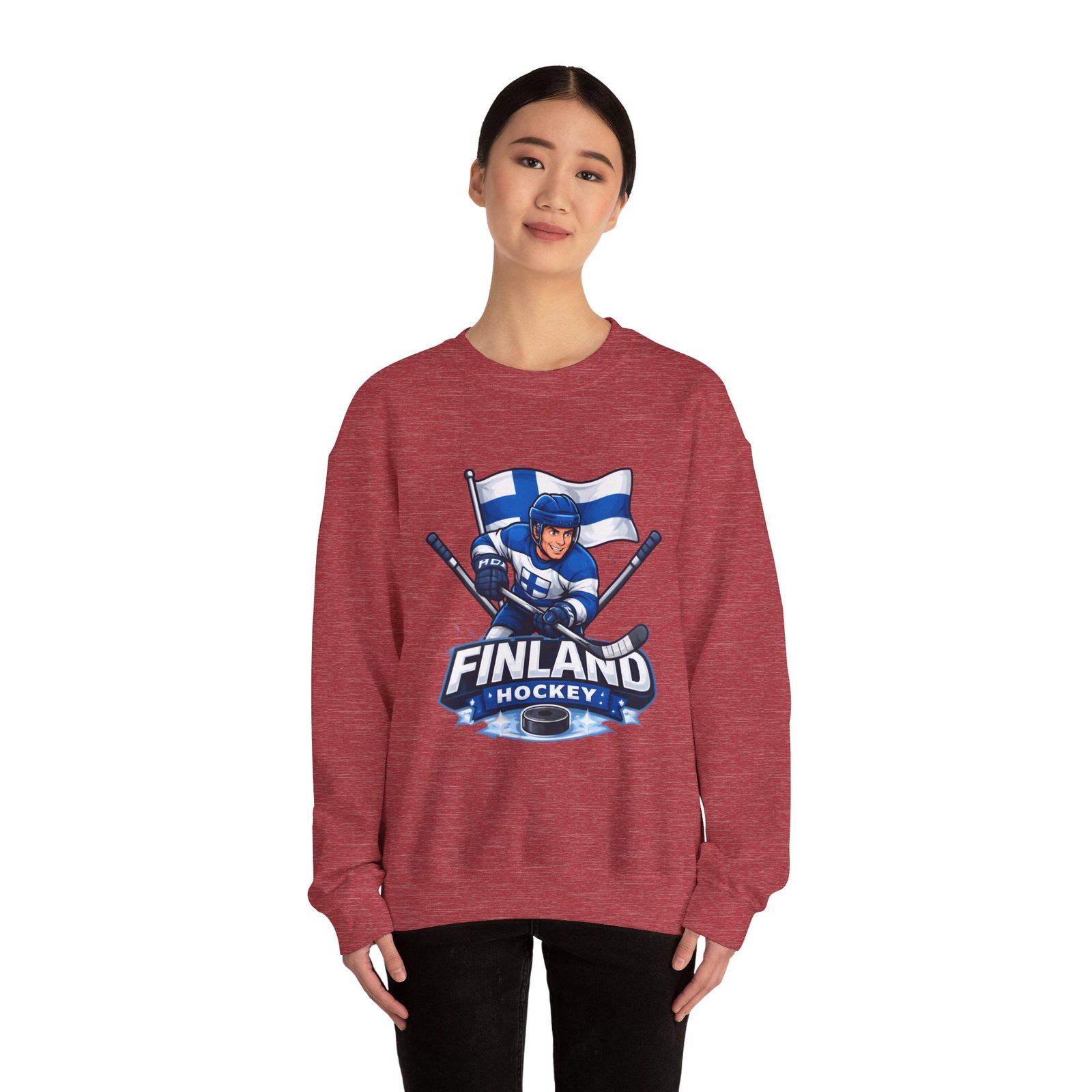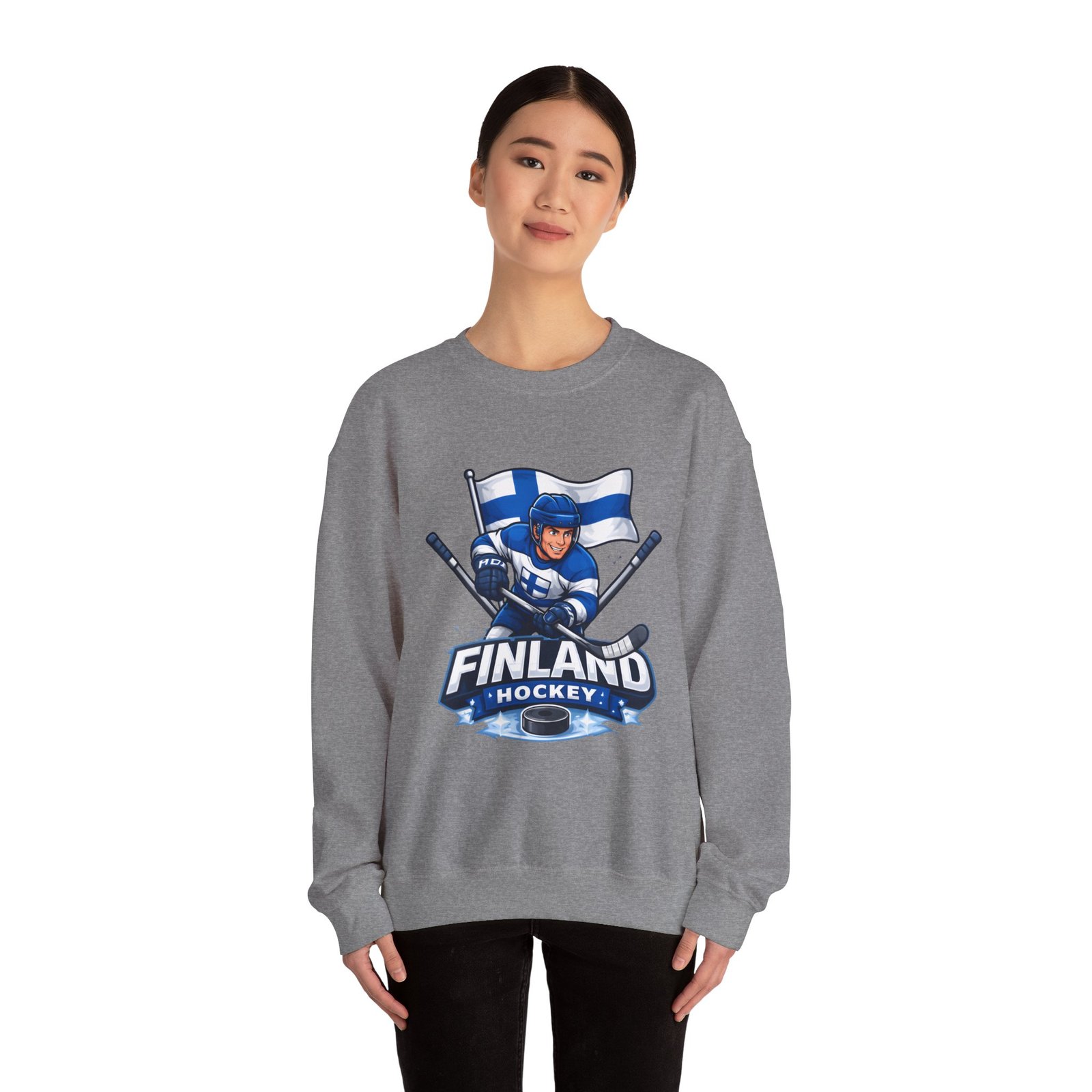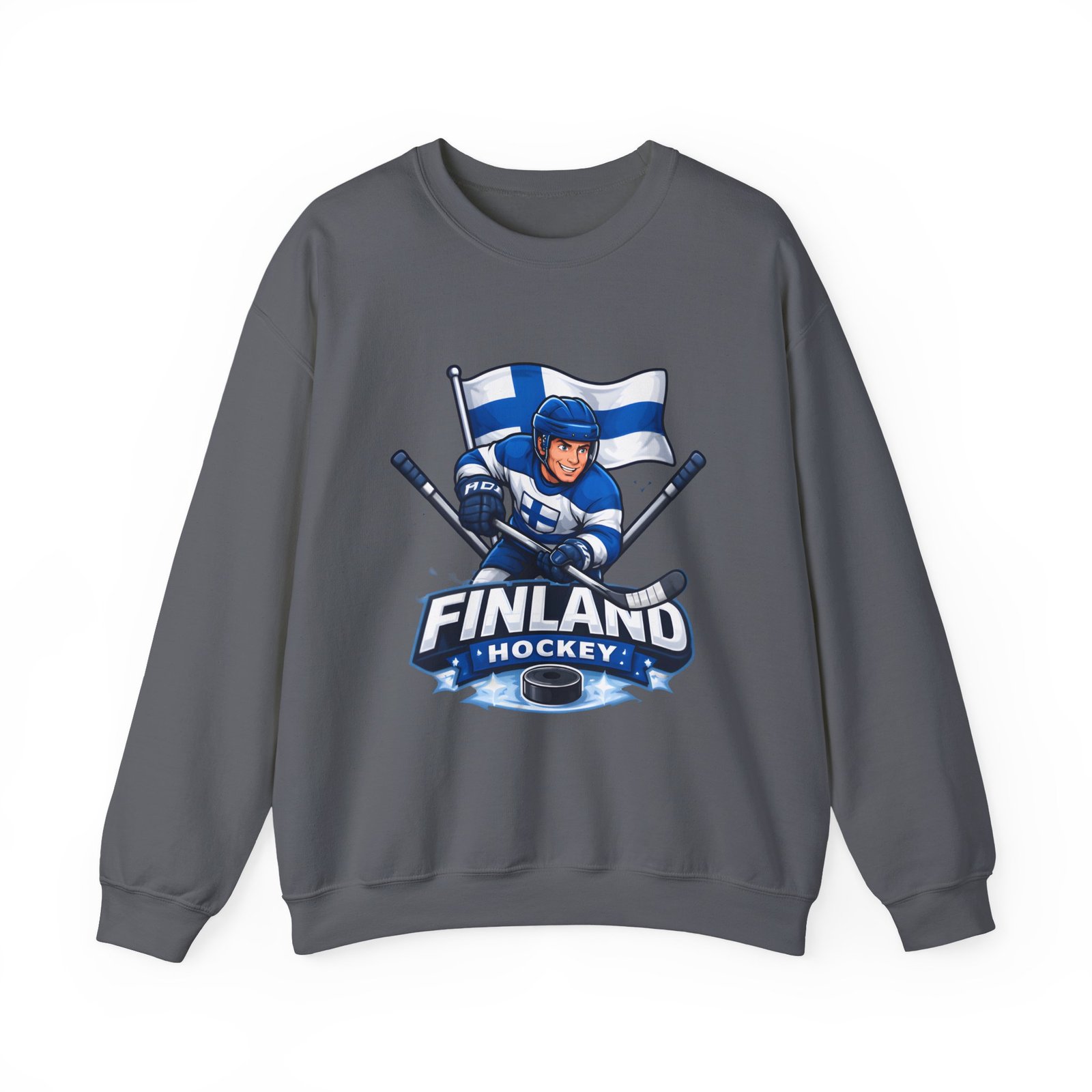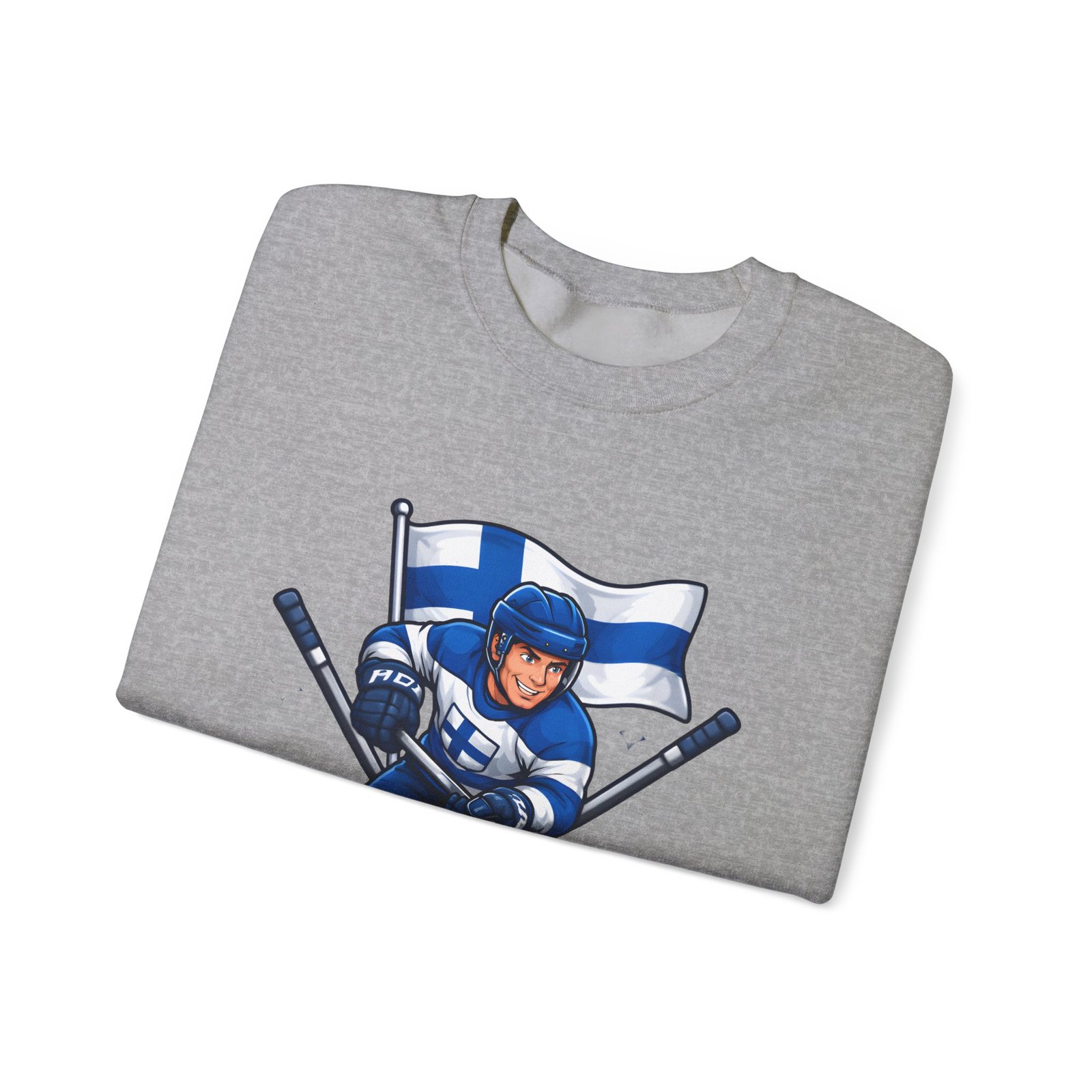 Wrap yourself in chilly-bleacher energy with this cozy crewneck that wears like a rallying cry. Soft, midweight fleece holds a bold Finland hockey emblem—skating player, crossed sticks, and waving flag—so you carry team pride without shouting. The classic fit and ribbed crew collar sit familiar and comfortable after long rides home from the rink or slow mornings with a steaming mug. Subtle label details and clean seams keep the focus on the graphic while lasting through practices, travel days, and weekends packed with friends and family.