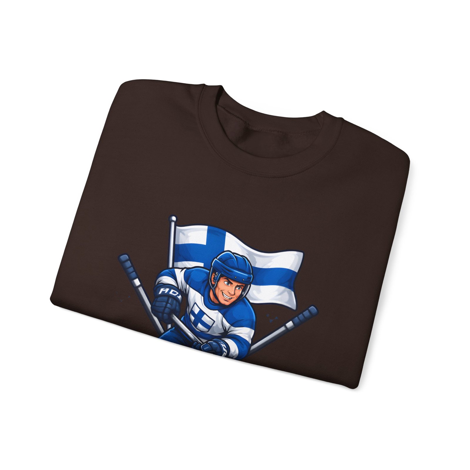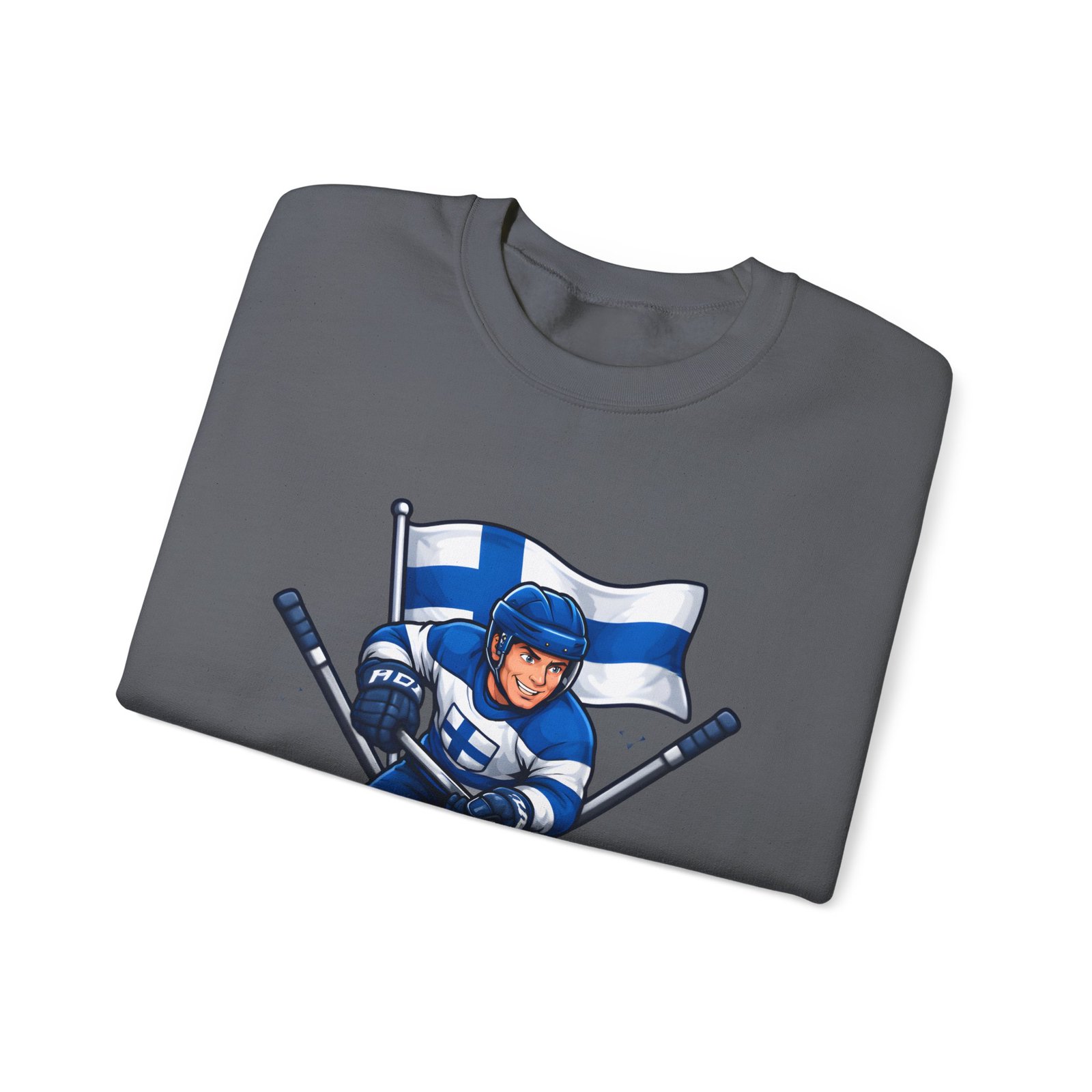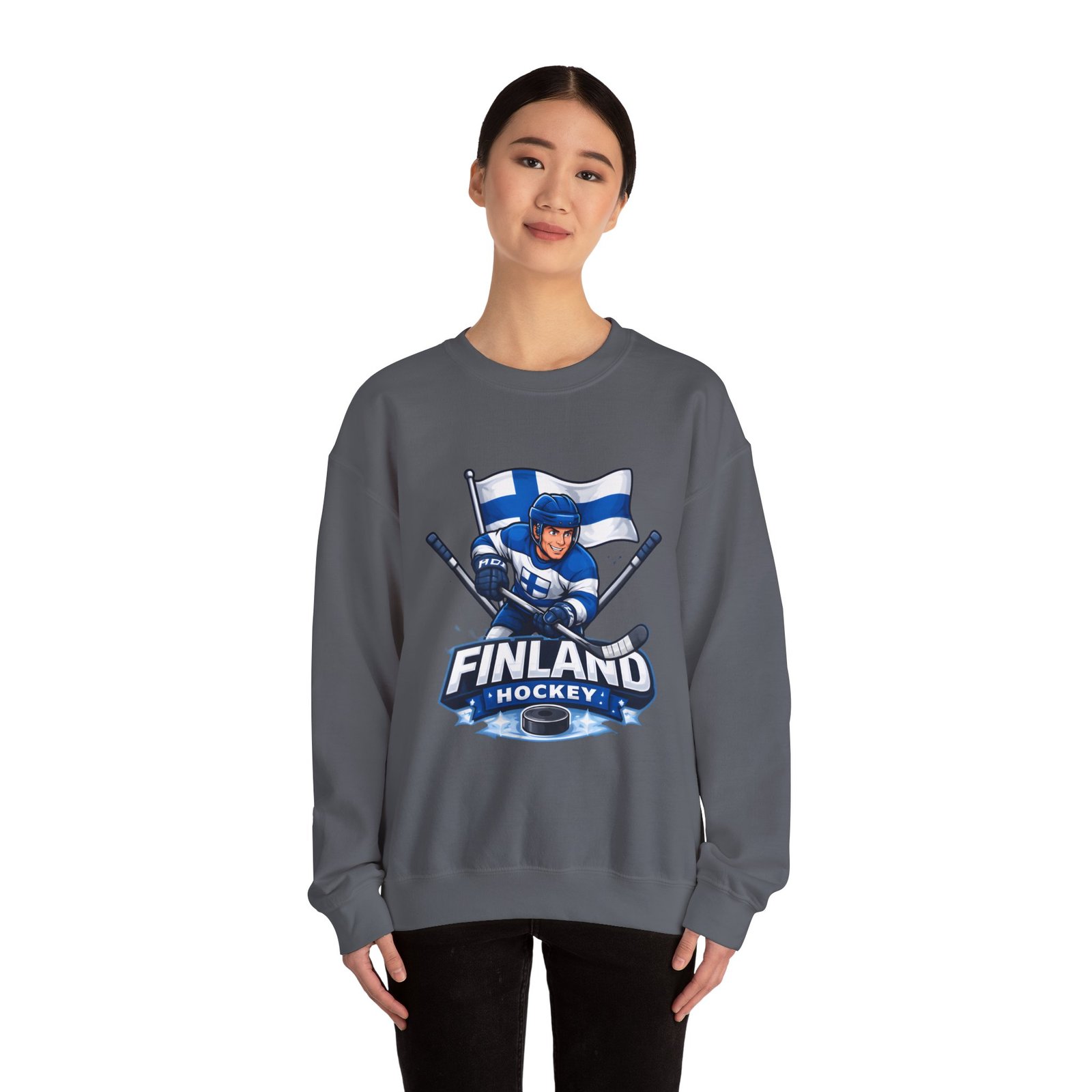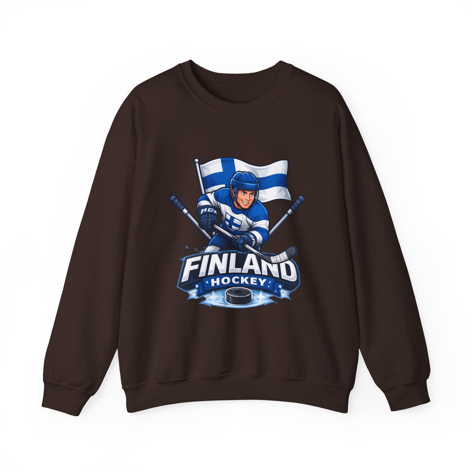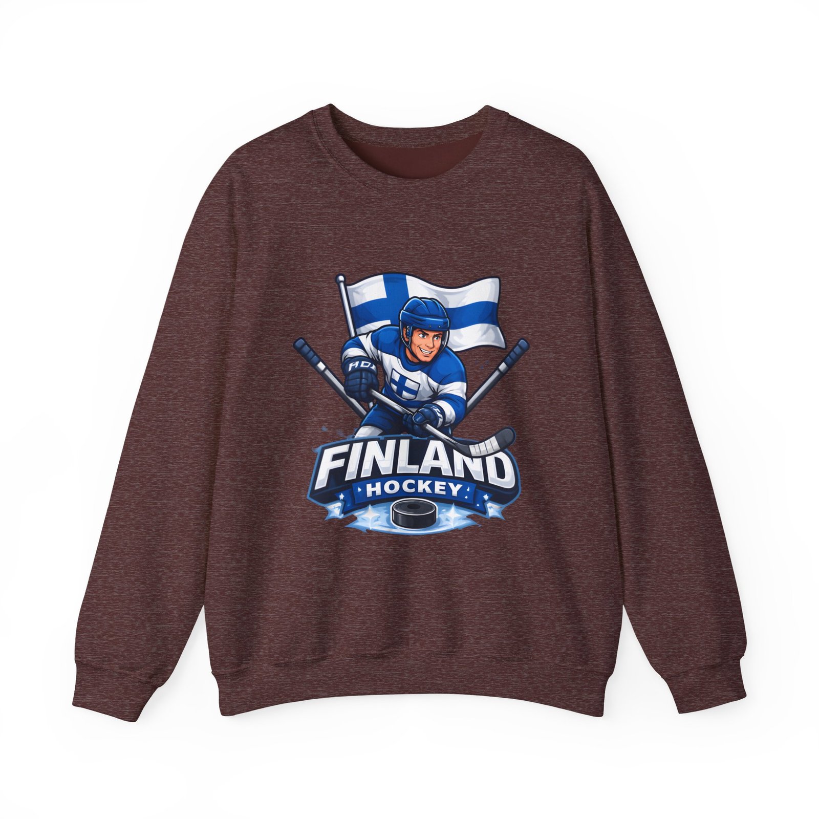 Wrap yourself in chilly-bleacher energy with this cozy crewneck that wears like a rallying cry. Soft, midweight fleece holds a bold Finland hockey emblem—skating player, crossed sticks, and waving flag—so you carry team pride without shouting. The classic fit and ribbed crew collar sit familiar and comfortable after long rides home from the rink or slow mornings with a steaming mug. Subtle label details and clean seams keep the focus on the graphic while lasting through practices, travel days, and weekends packed with friends and family.