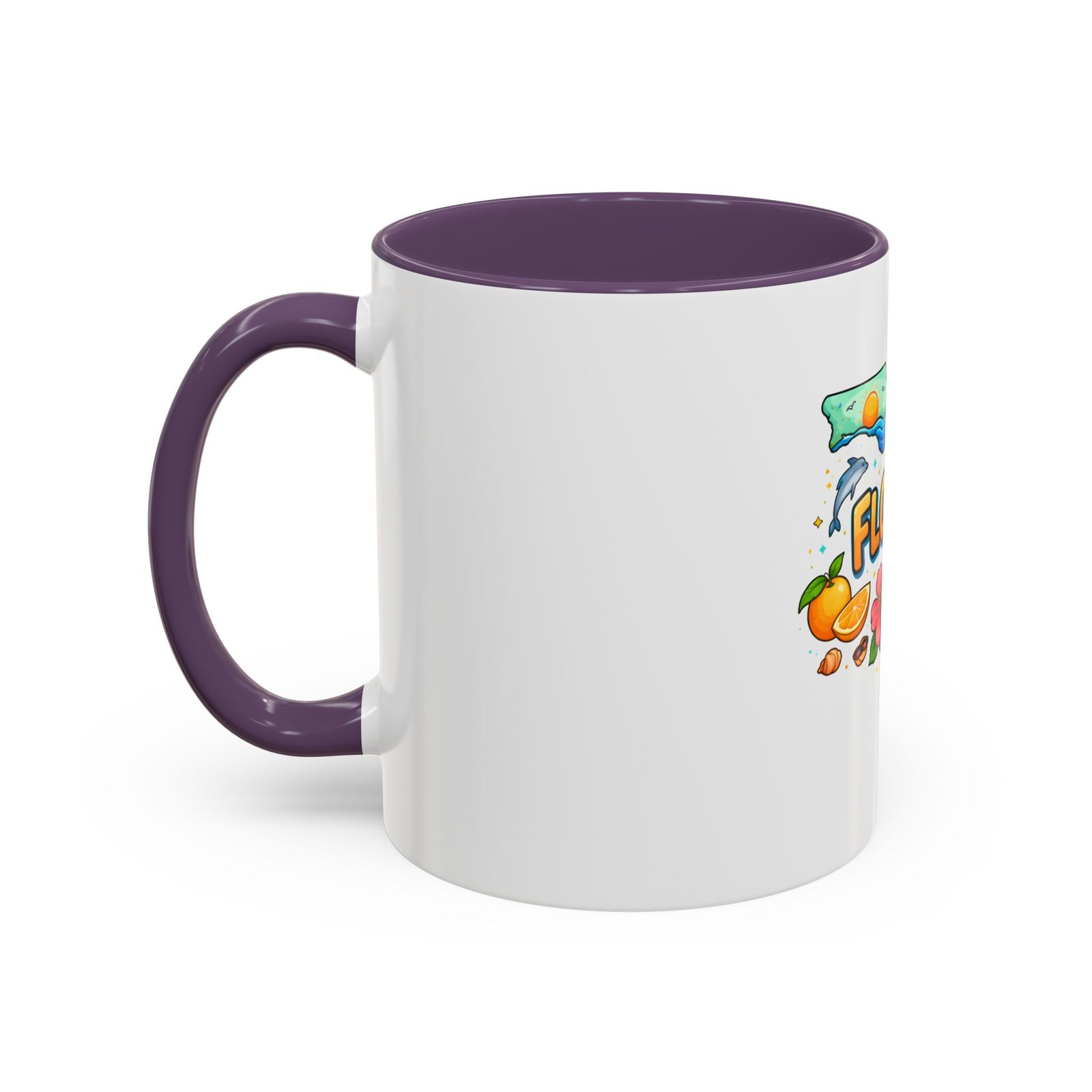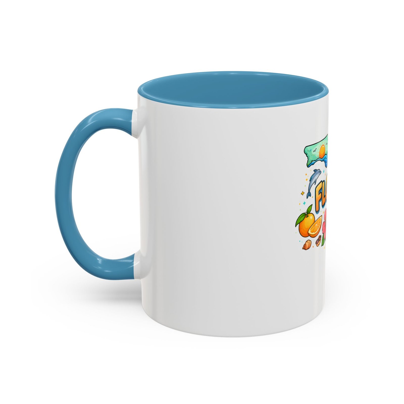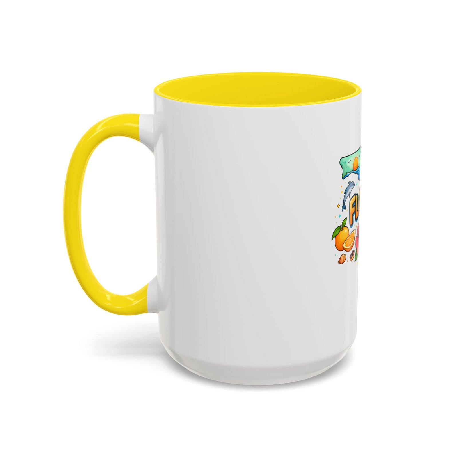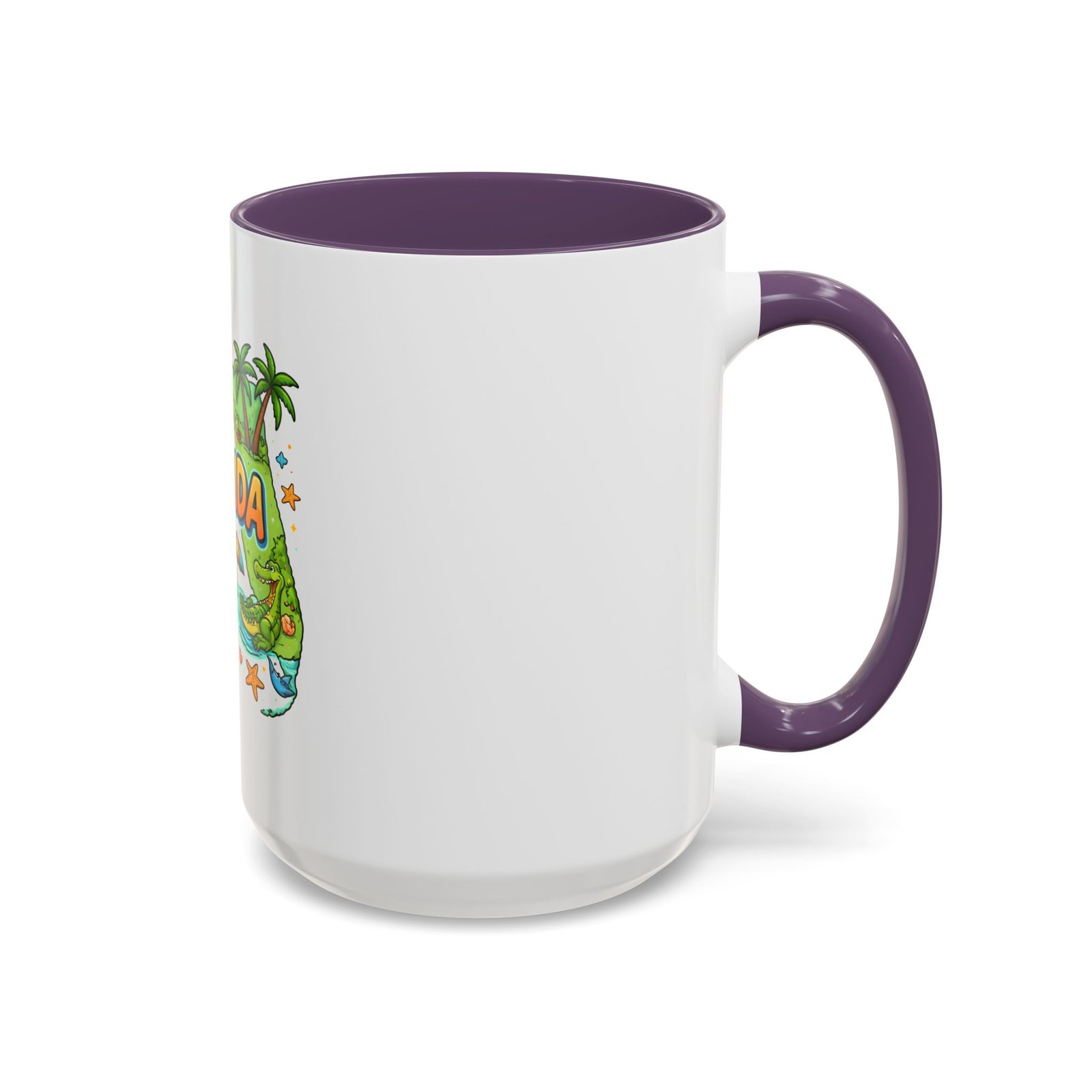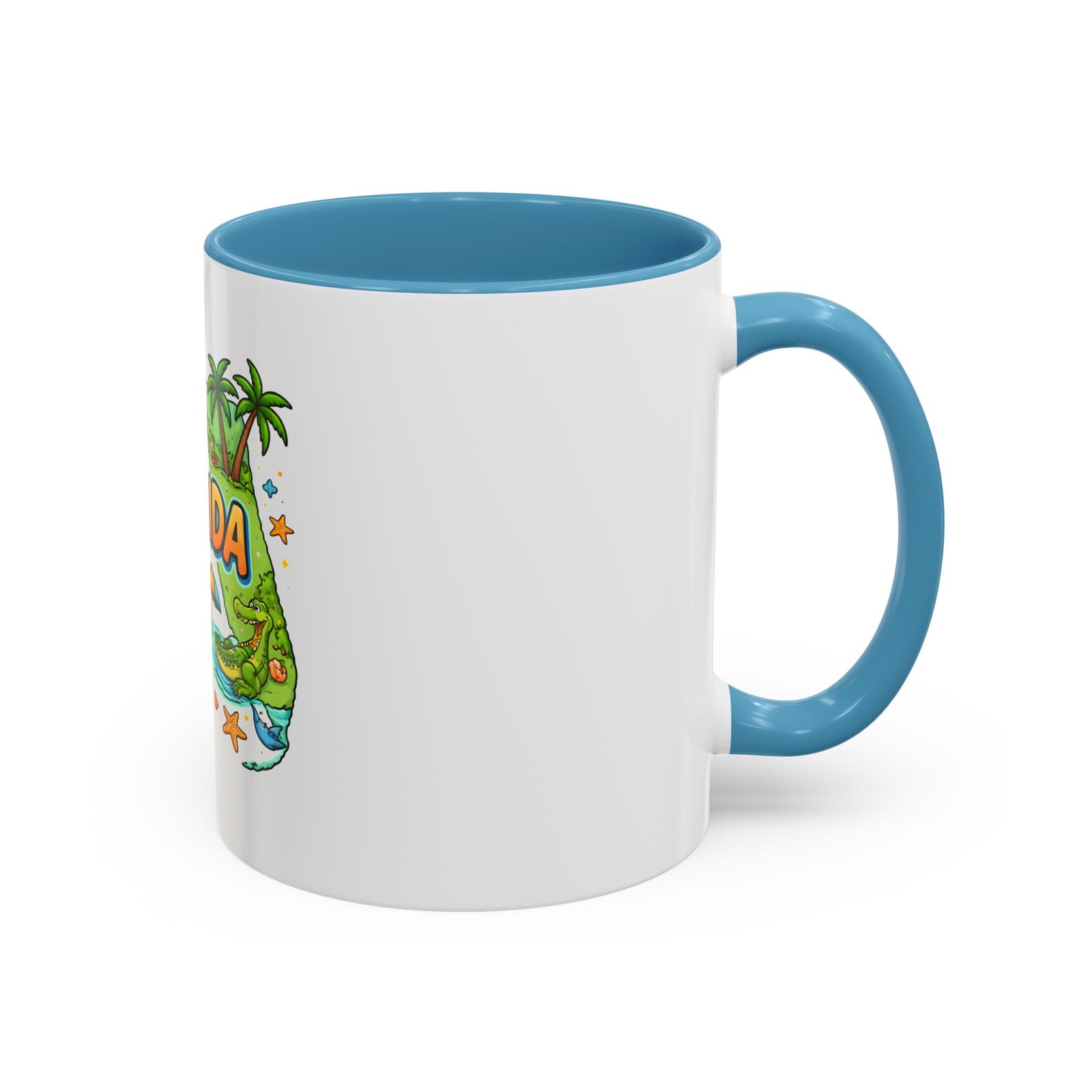 Wake up to sunshine, salt air, and a little Florida whimsy. This ceramic accent mug pairs a glossy white exterior with a colorful interior and handle, framing a playful Florida design—palm trees, hibiscus, an orange slice, and a grinning alligator lounging by the shore. It feels like a slow morning on the coast: warm light, ocean breeze, and a splash of tropical color to start your day. Slip it into your routine for coffee breaks after morning surf reports, desk escapes during work-from-home afternoons, or casual catch-ups with friends who love the Gulf and Atlantic alike.