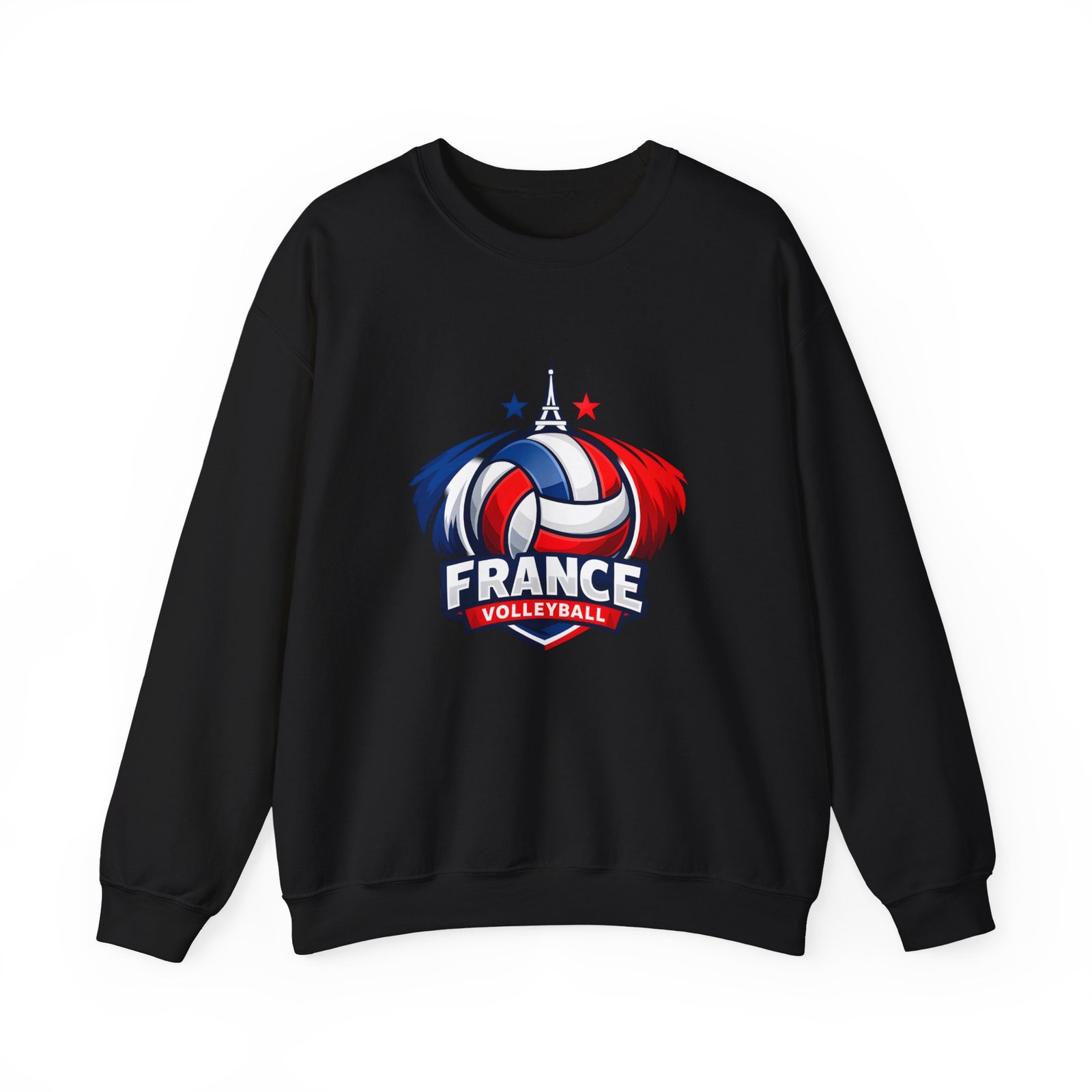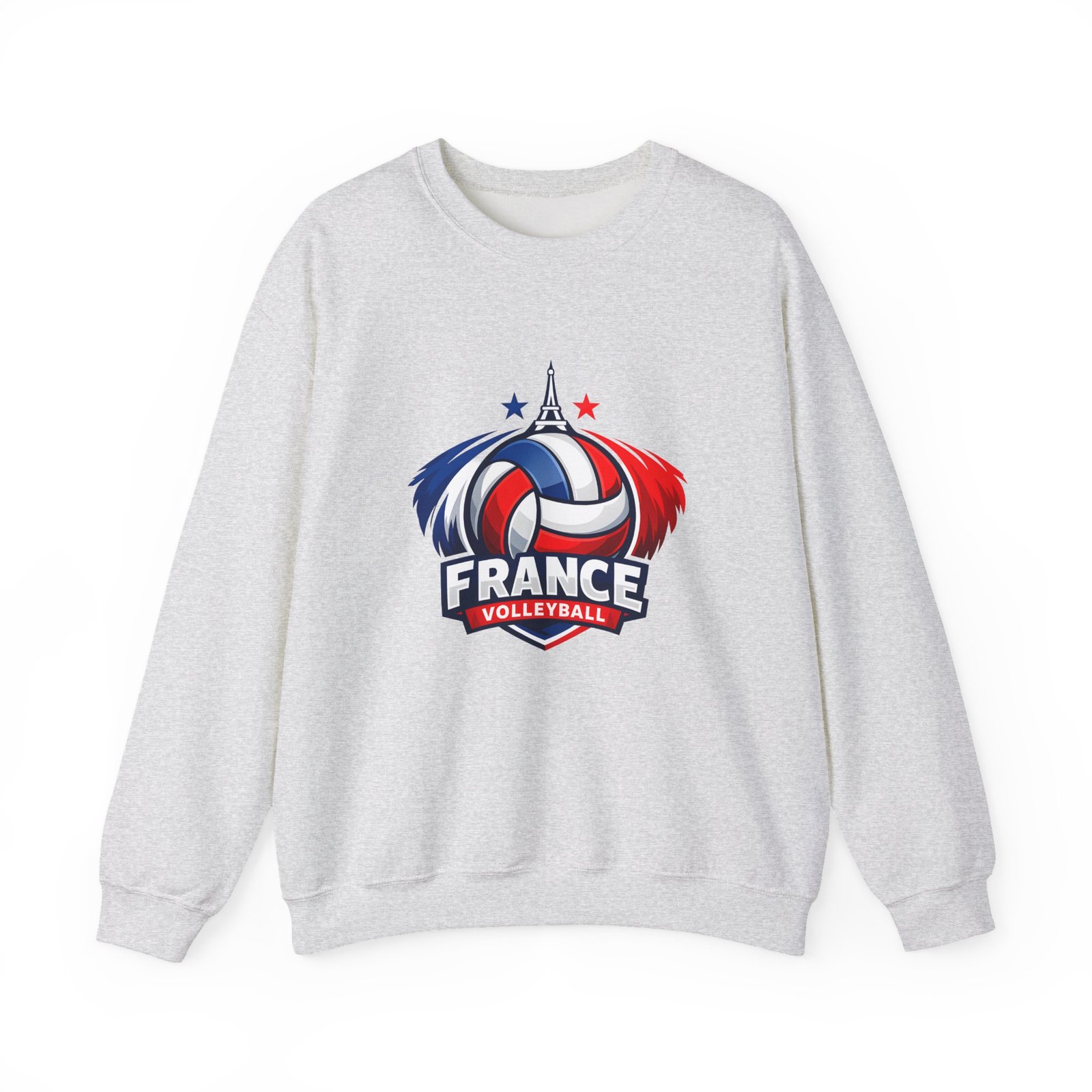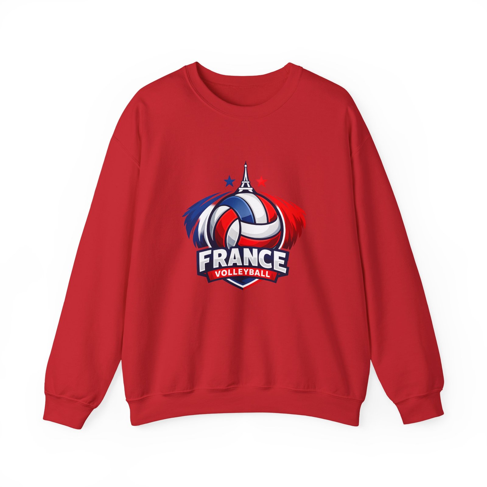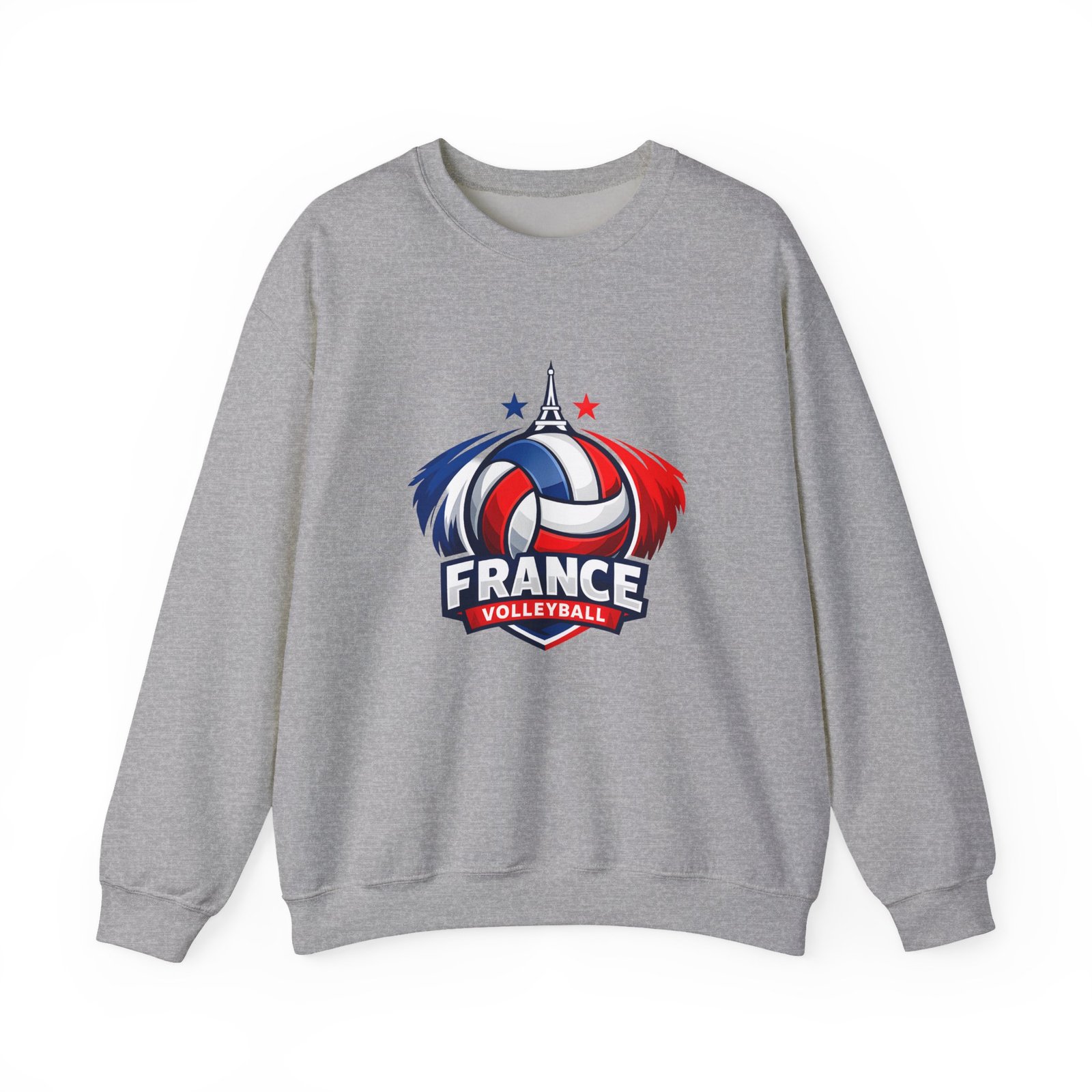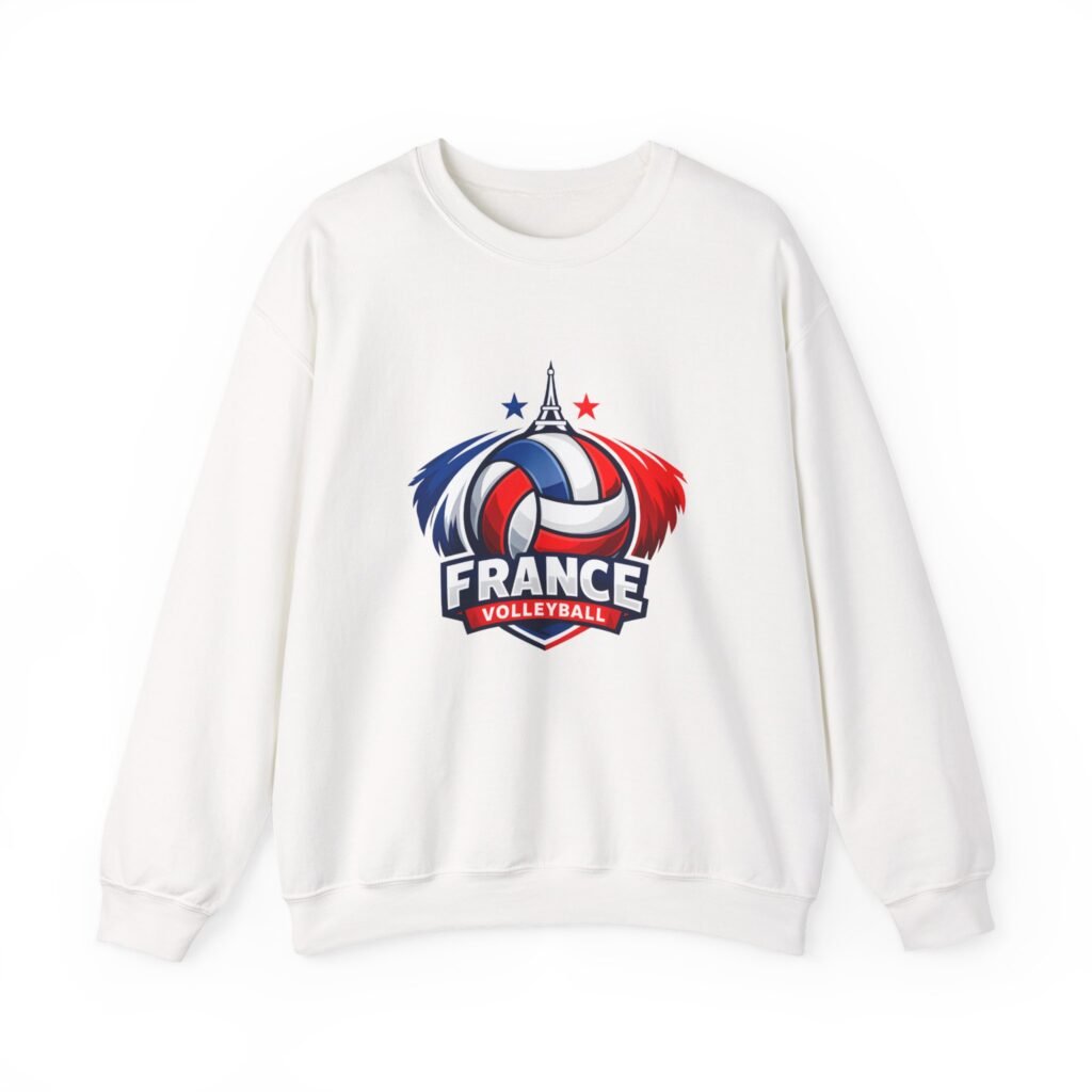Soft, sturdy, and unapologetically proud — this crewneck brings the energy of the court into everyday wear. The front sports a bold France volleyball emblem in red, white, and blue, balanced by a clean, classic silhouette that layers easily. Slip it on after practice, before a match, or on a chilly morning cheering from the stands; the medium-heavy cotton-poly blend keeps you warm without feeling bulky. Thoughtful details like a ribbed knit collar, tear-away inner label, and flat, durable seams mean it wears like a favorite from day one. Embroidery or printed neck/wrist accents add a touch of team identity or personal flair.