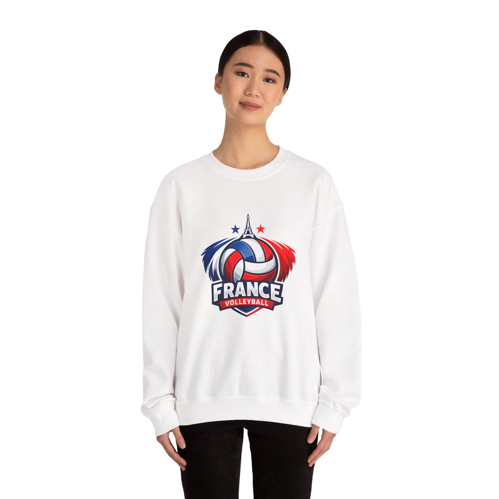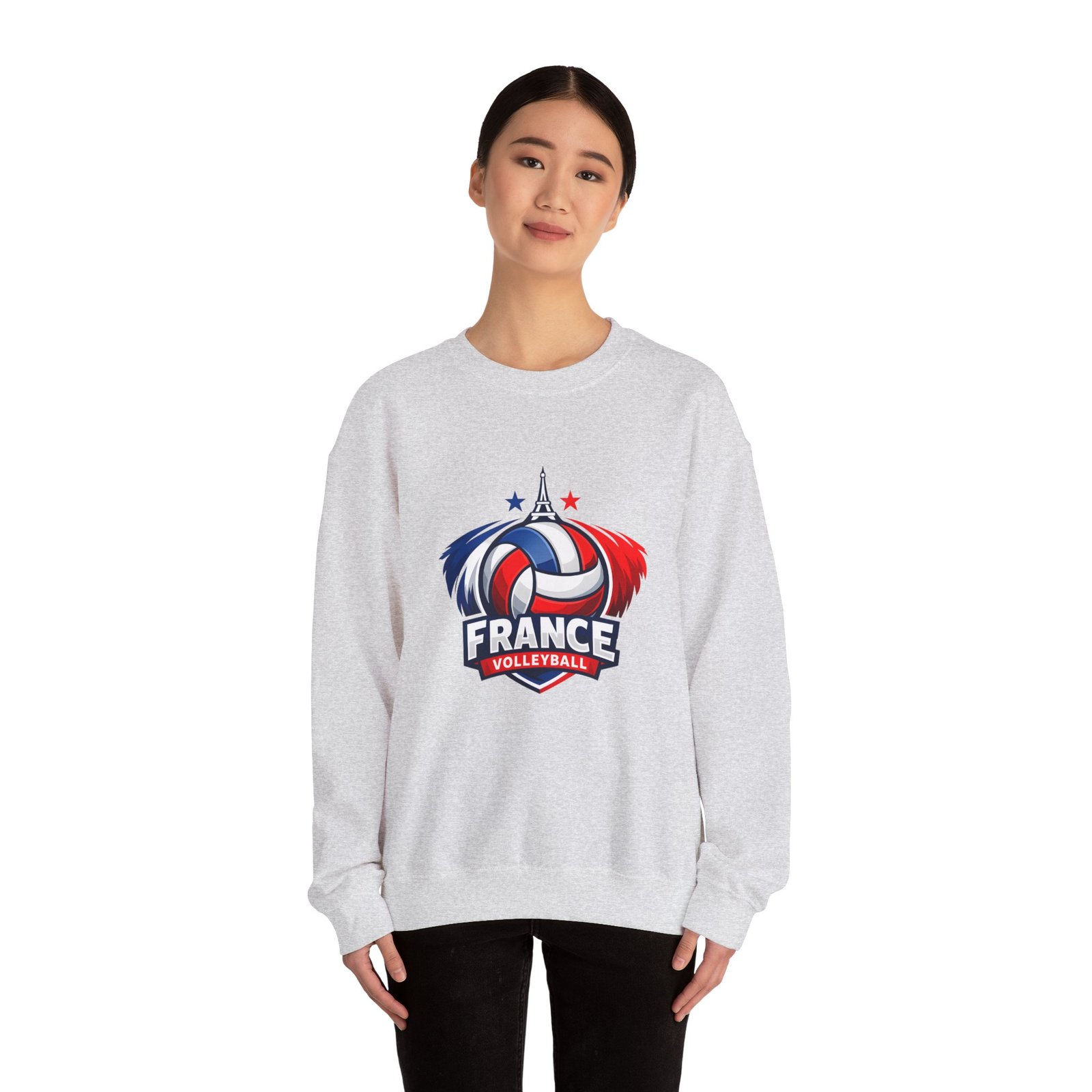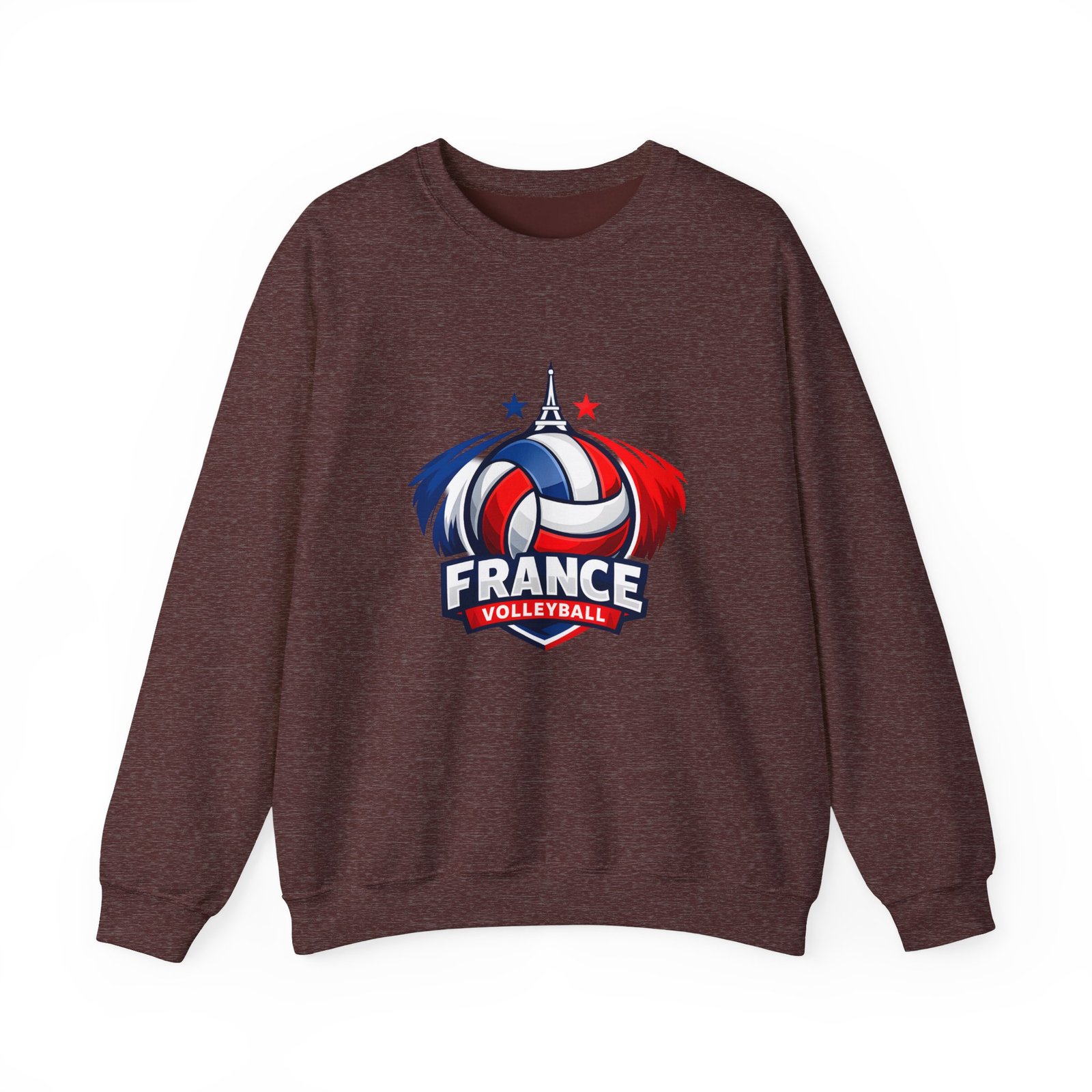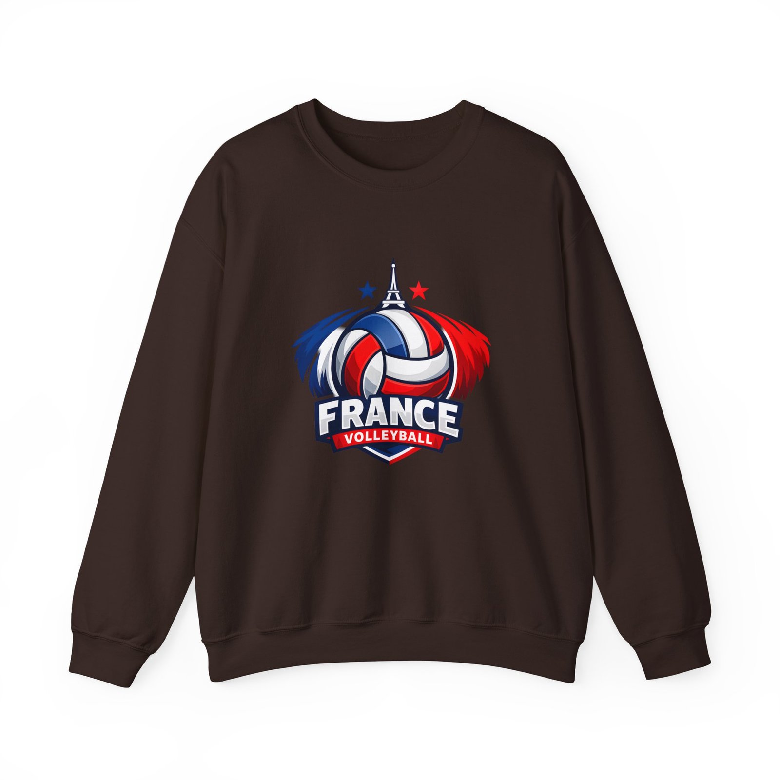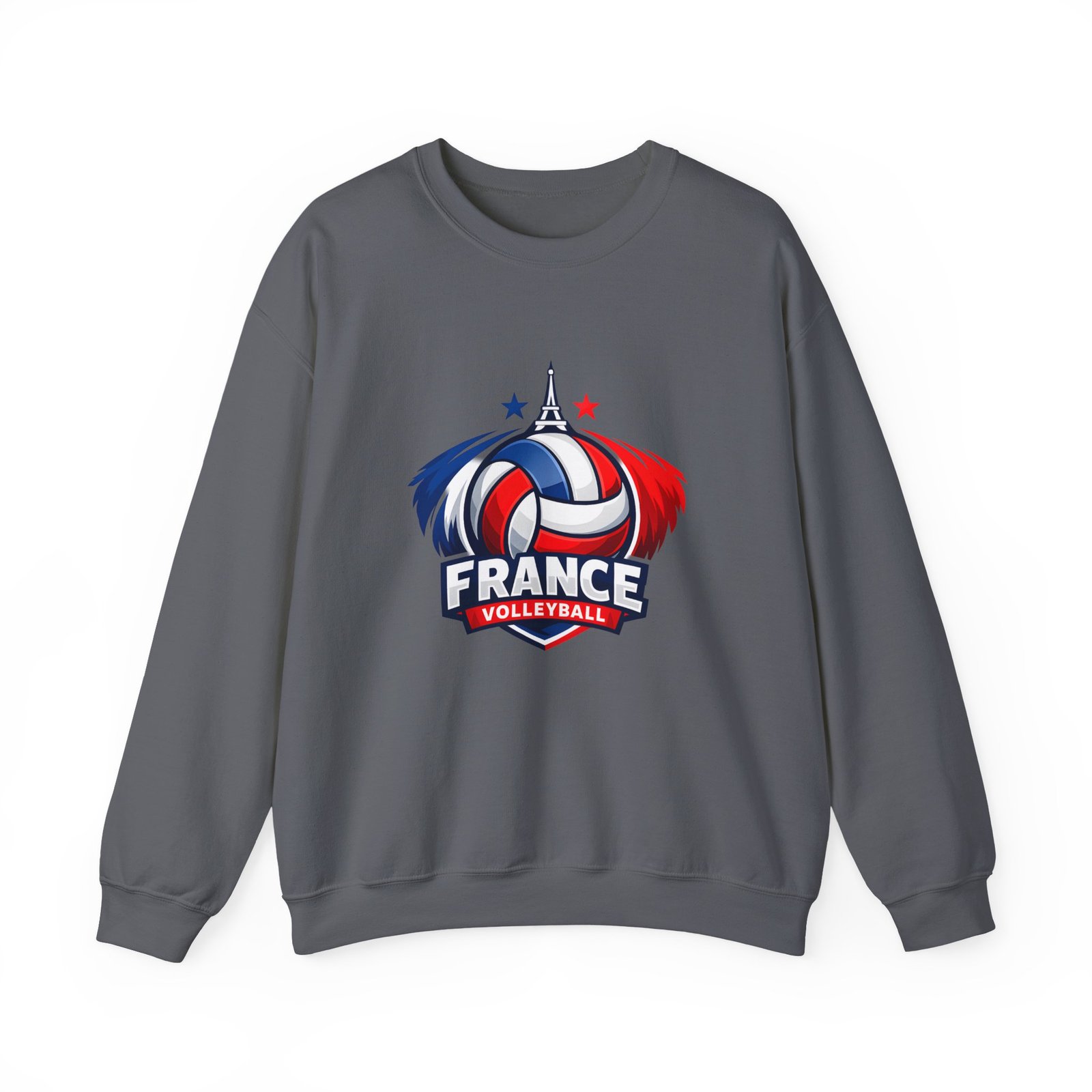 Soft, sturdy, and unapologetically proud — this crewneck brings the energy of the court into everyday wear. The front sports a bold France volleyball emblem in red, white, and blue, balanced by a clean, classic silhouette that layers easily. Slip it on after practice, before a match, or on a chilly morning cheering from the stands; the medium-heavy cotton-poly blend keeps you warm without feeling bulky. Thoughtful details like a ribbed knit collar, tear-away inner label, and flat, durable seams mean it wears like a favorite from day one. Embroidery or printed neck/wrist accents add a touch of team identity or personal flair.