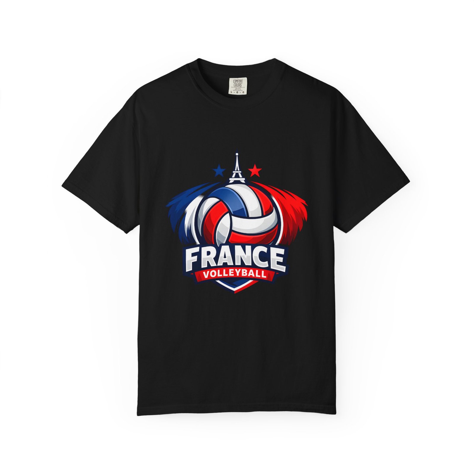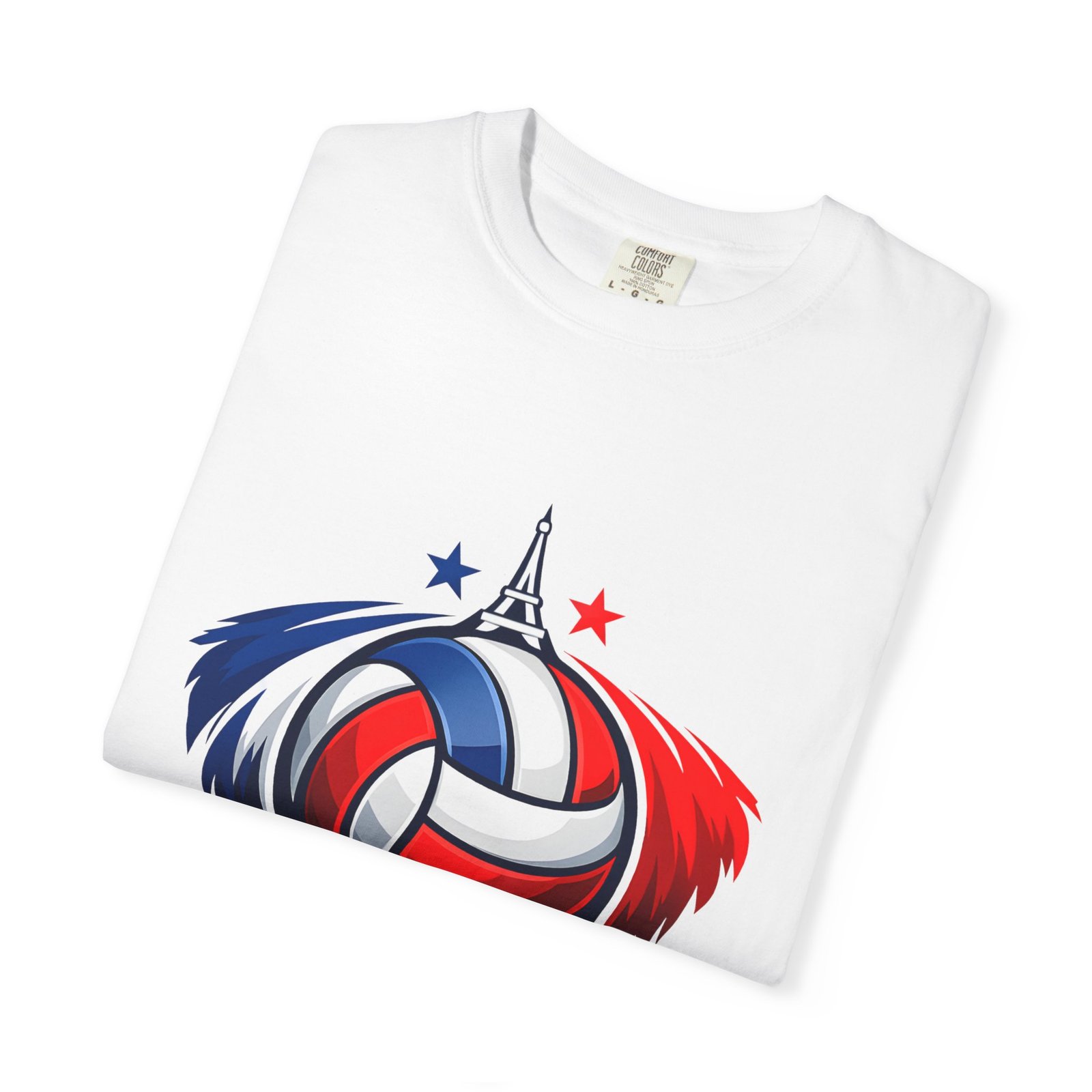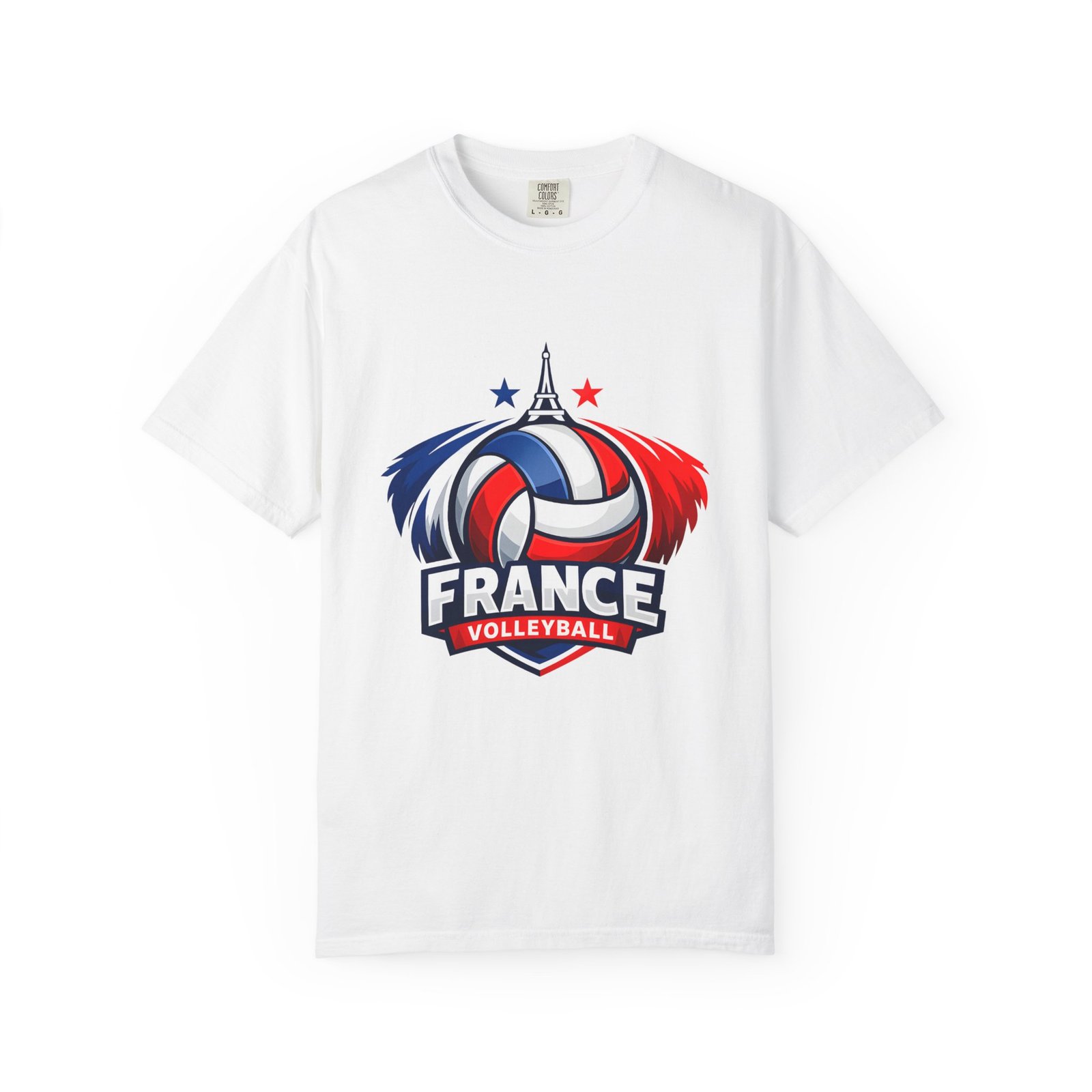 France Volleyball T‑Shirt – Tricolor Volleyball Crest with Eiffel TowerFrance Volleyball T‑Shirt – Tricolor Volleyball Crest with Eiffel Tower