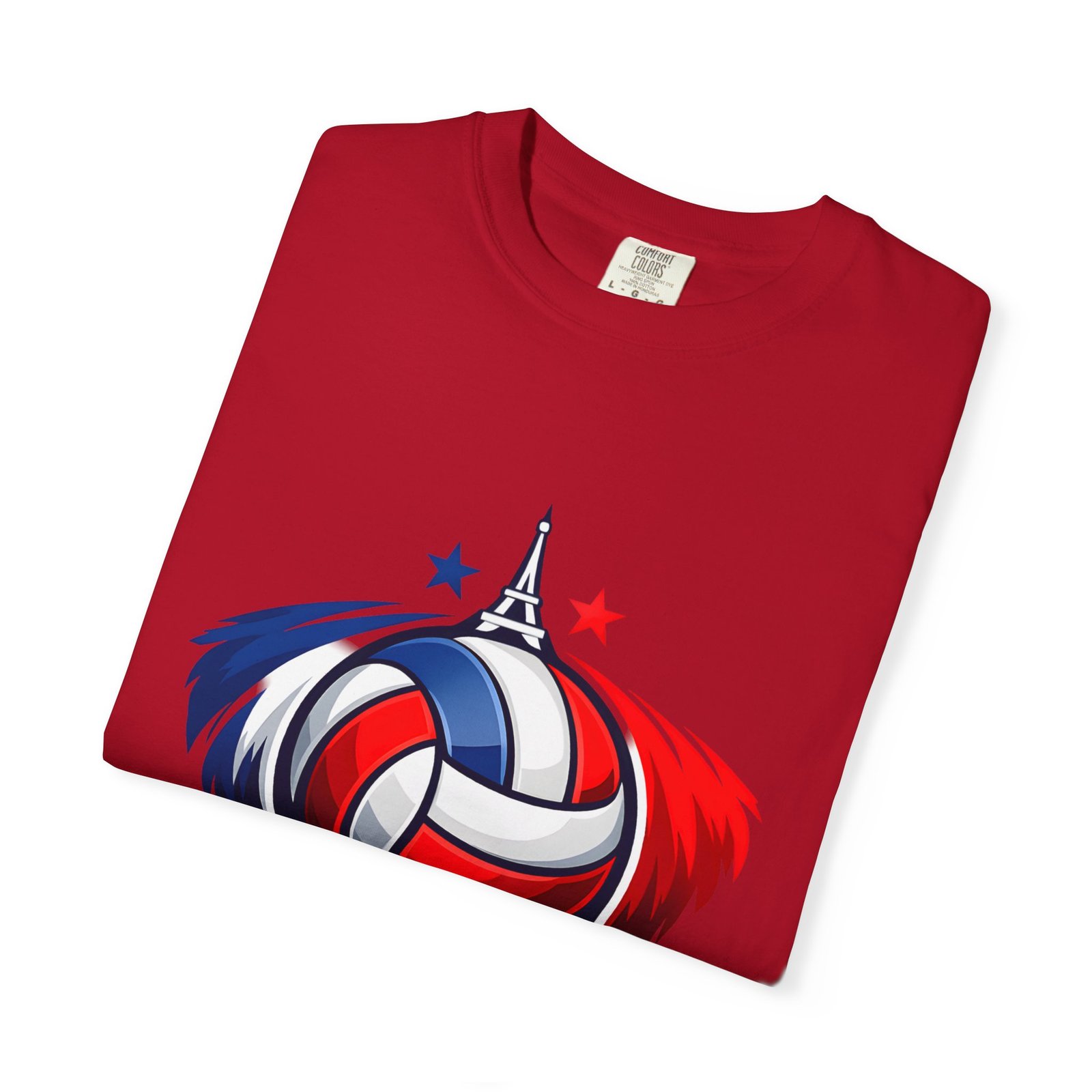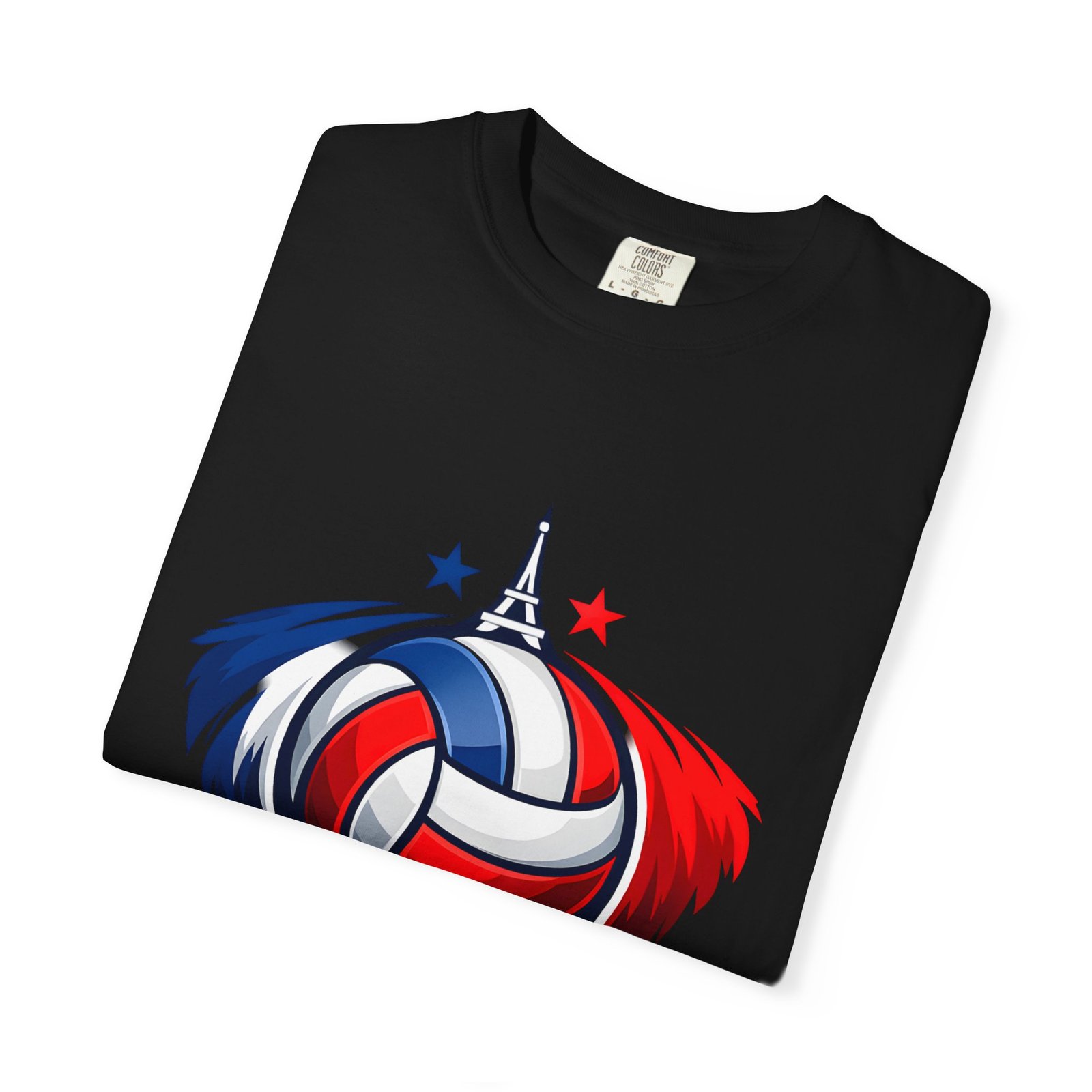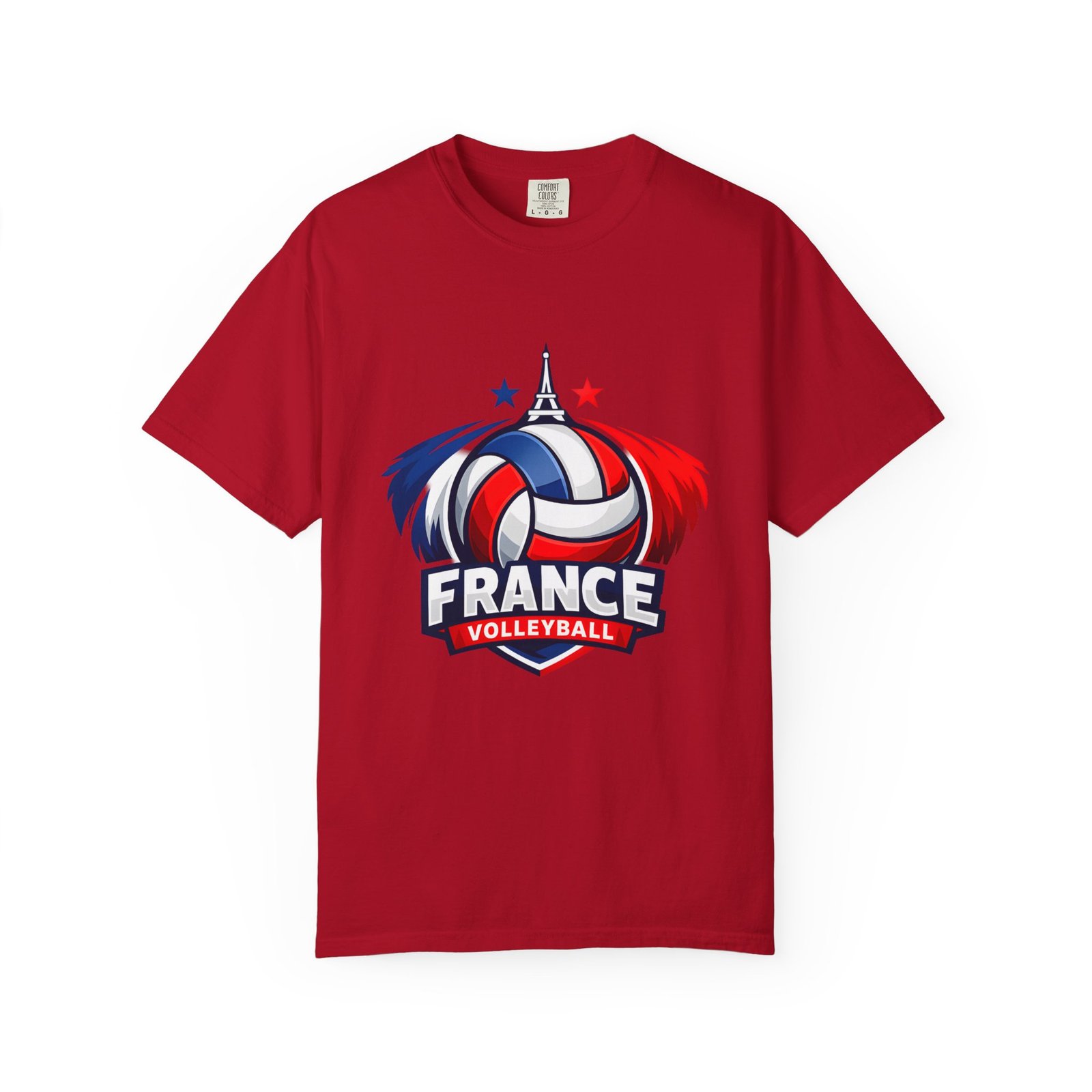 France Volleyball T‑Shirt – Tricolor Volleyball Crest with Eiffel TowerFrance Volleyball T‑Shirt – Tricolor Volleyball Crest with Eiffel Tower