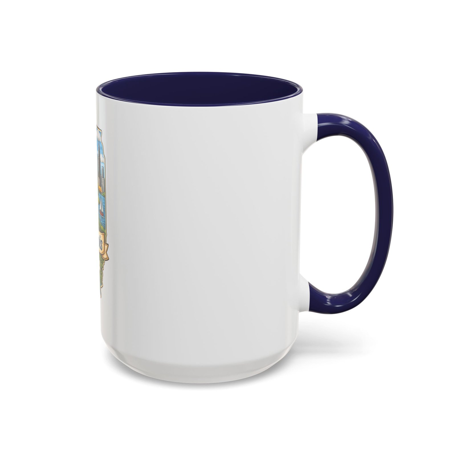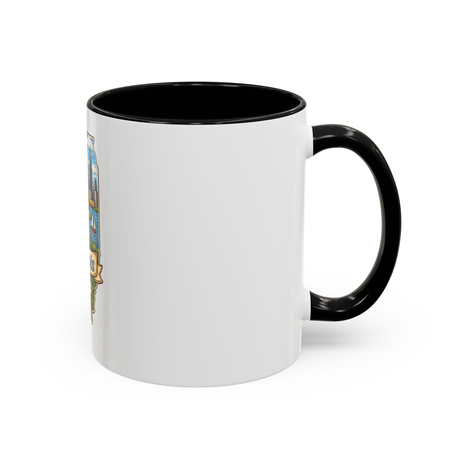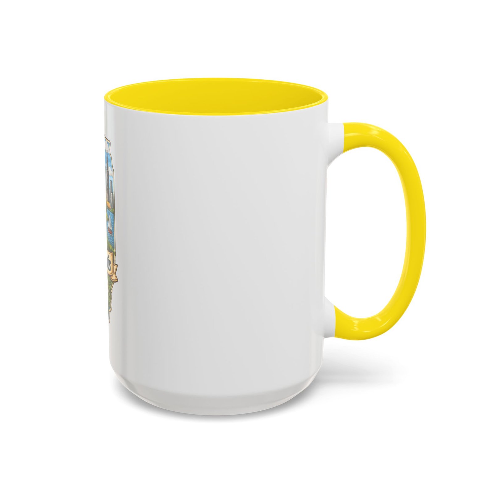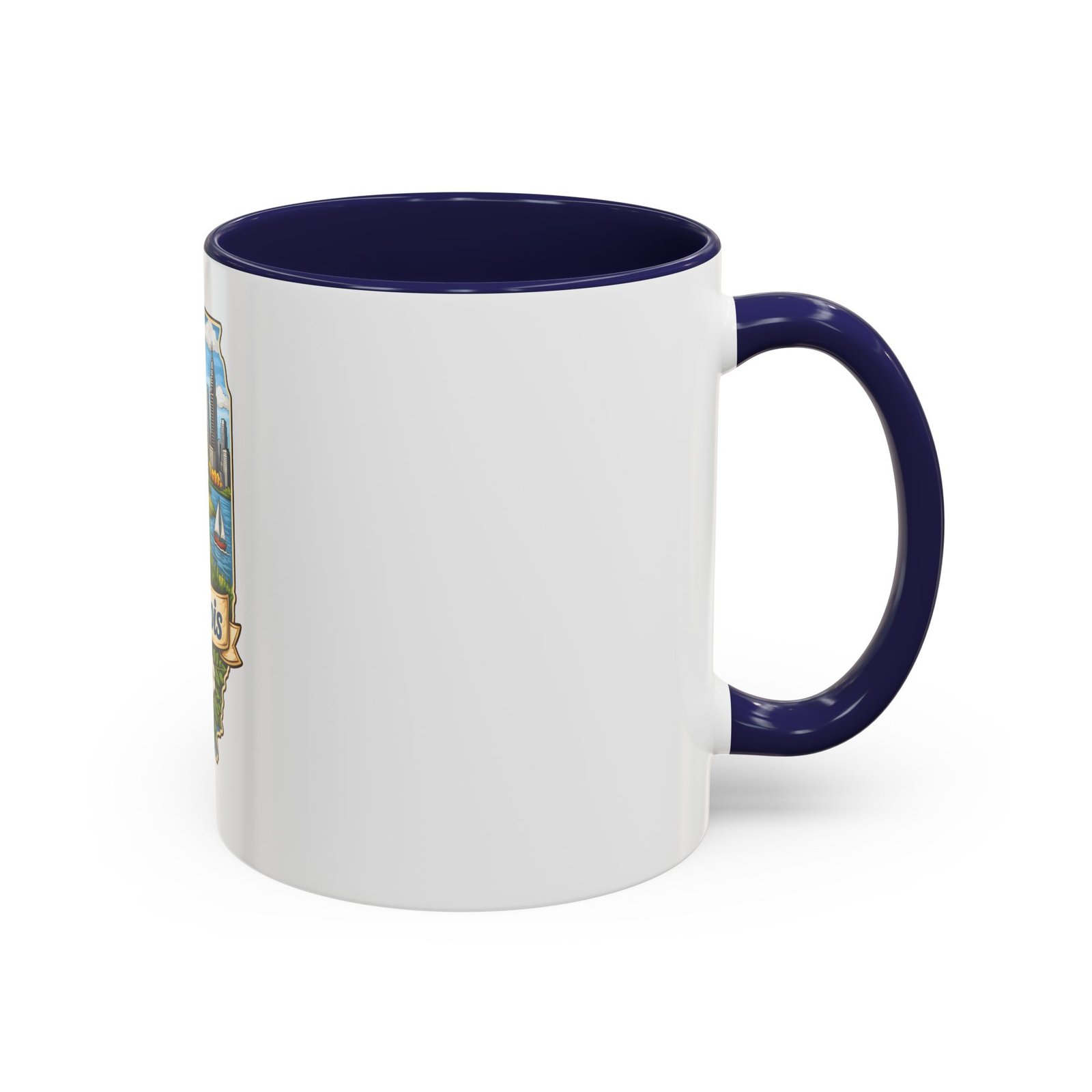 Warm mornings with a Midwestern skyline and fields — this ceramic mug carries a little piece of Illinois to your kitchen. The artwork frames the state’s outline with a red barn, cornrows, a sailboat on the lake, and a skyline in the distance, all tied together with a script banner that reads “Illinois.” Each sip feels like a short walk through hometown streets, slow sunrises over farmland, and lake breezes on a summer afternoon. The bright, detailed print pops against the glossy white body while the colored interior and handle add a cheerful contrast. Durable for daily use and easy to care for, it slips comfortably into a hand with a C-shaped handle and holds enough coffee to start your day or keep you company through an evening chat.