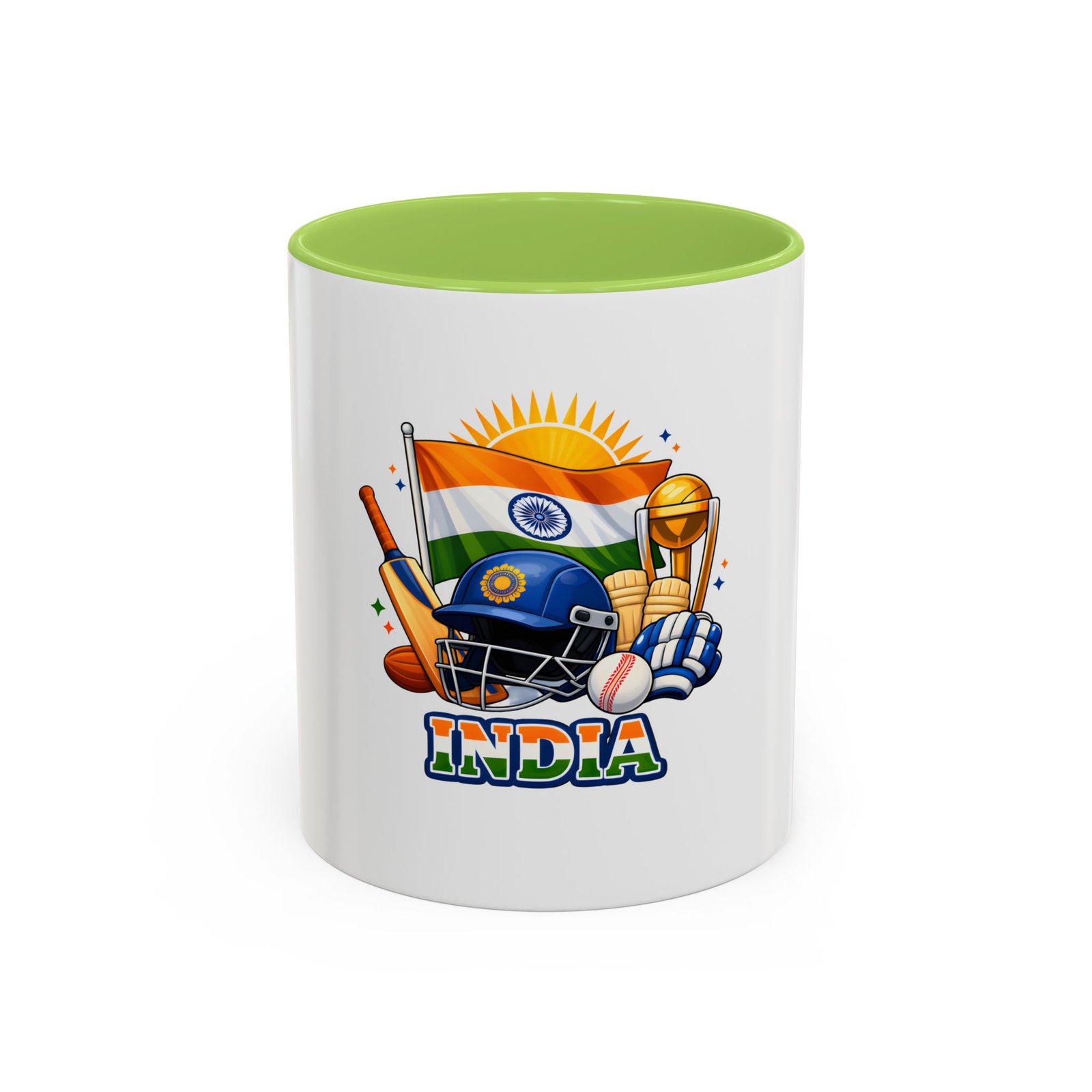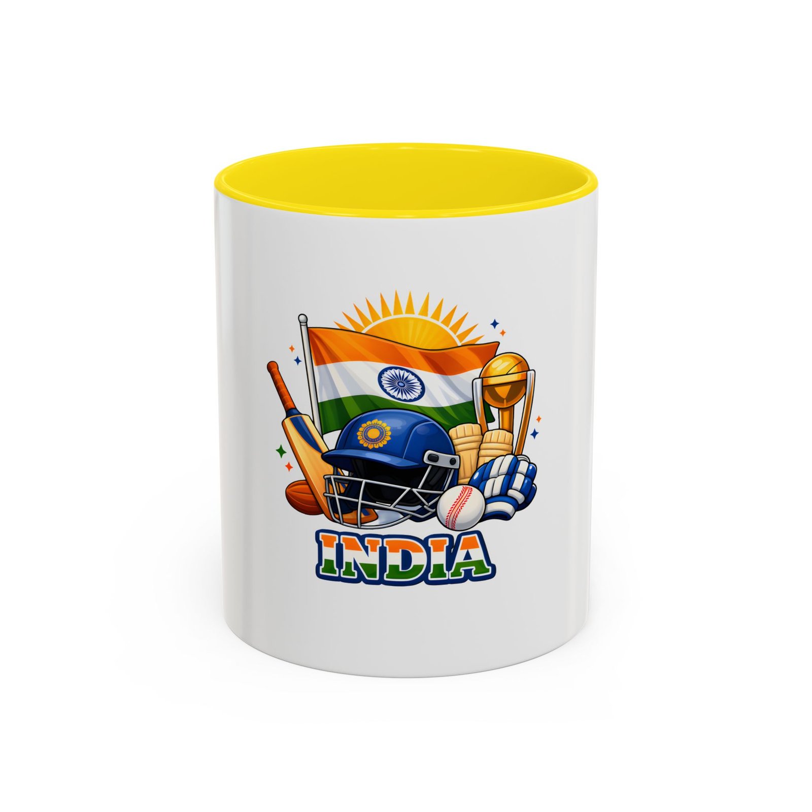 Sip in celebration. This ceramic mug pairs a bold, contrasting handle and interior with a colorful cricket-themed illustration: helmet, bat, ball, trophy and the Indian tricolour rising behind them. Short mornings feel like stadium buzz; evening chai becomes a quiet nod to matches watched and memories made. The glossy finish and vibrant print keep the artwork lively, while the comfortable C-handle and two size options let you choose how much of the day’s warmth you carry. It’s for anyone who lives for match day highs, backyard cricket, or sharing stories over hot tea.