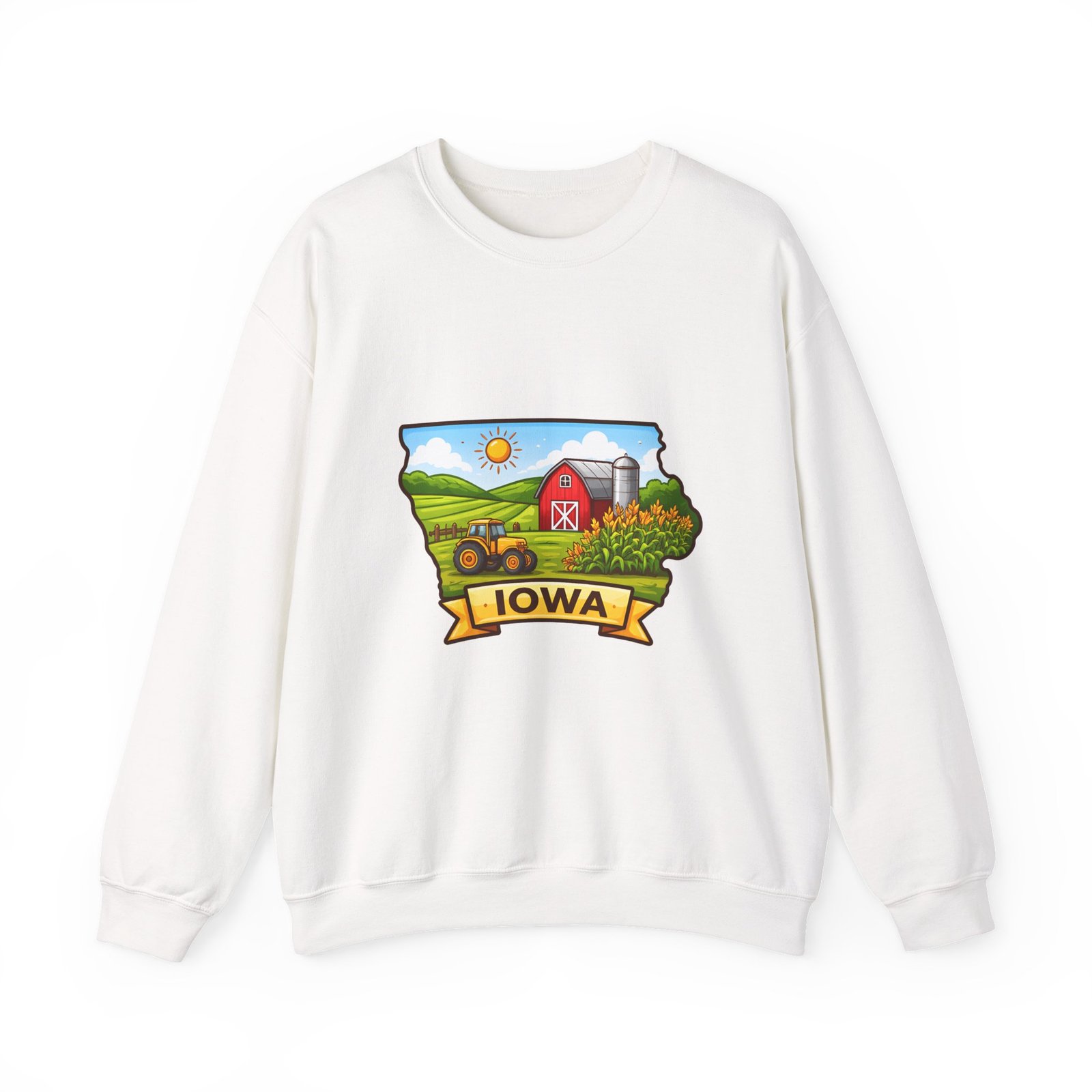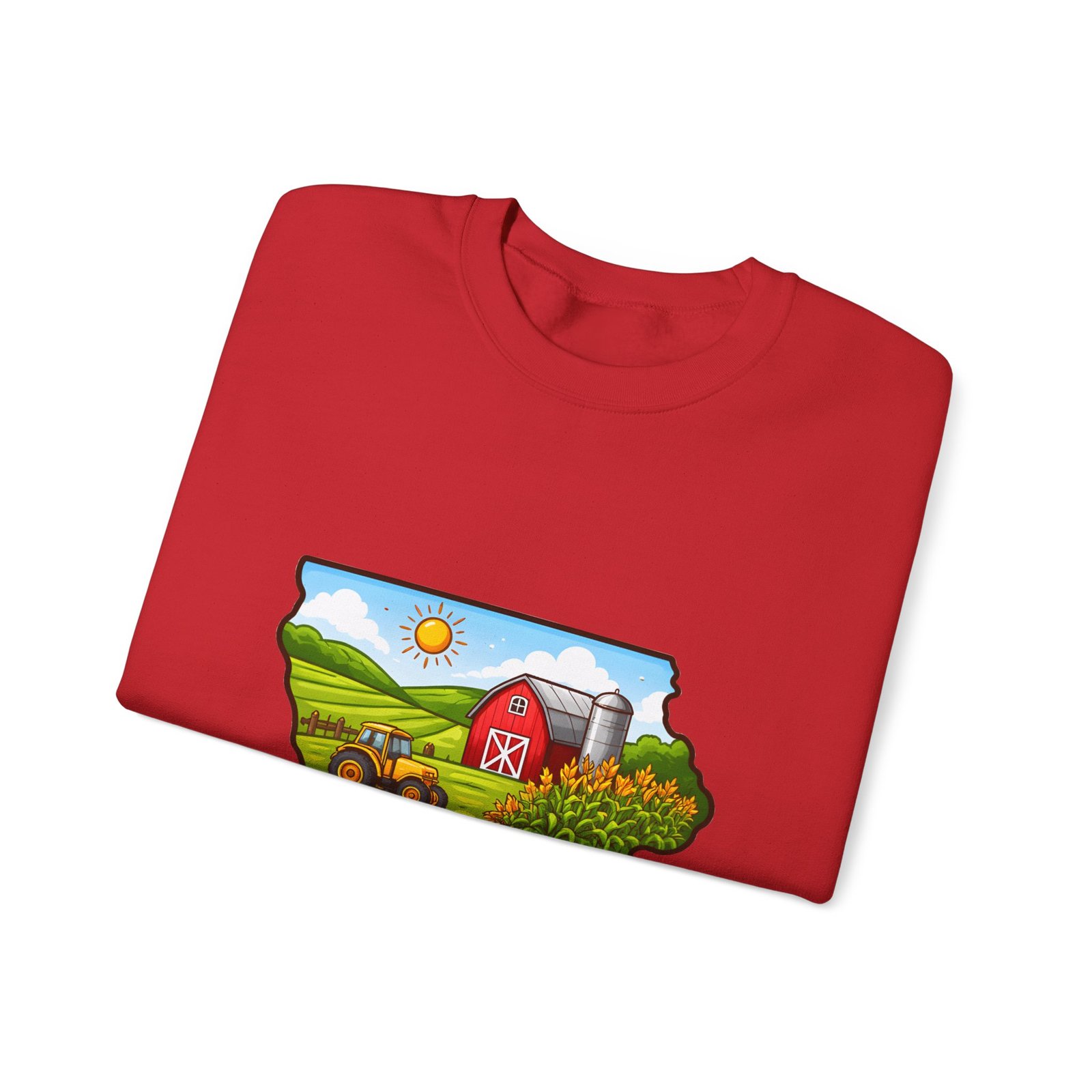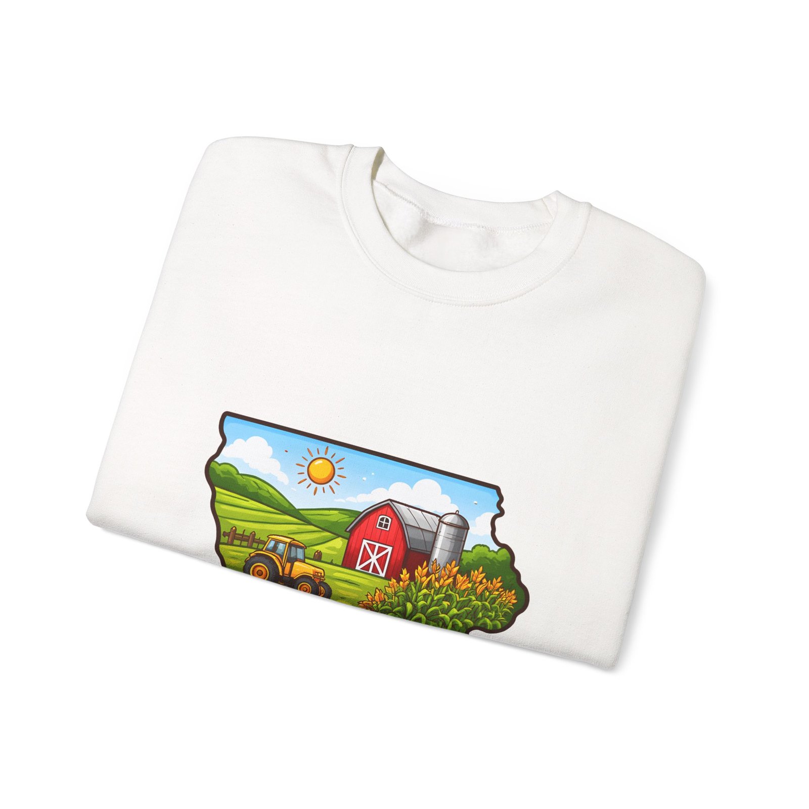 Iowa Farm Scene Crewneck Sweatshirt – Scenic Barn & Cornfields DesignIowa Farm Scene Crewneck Sweatshirt – Scenic Barn & Cornfields Design