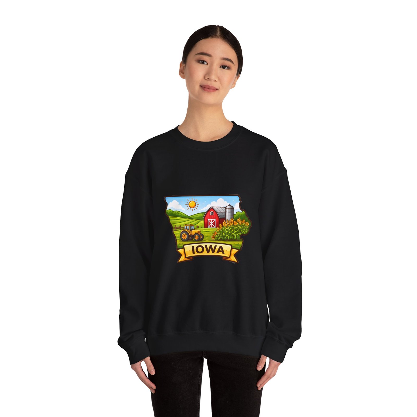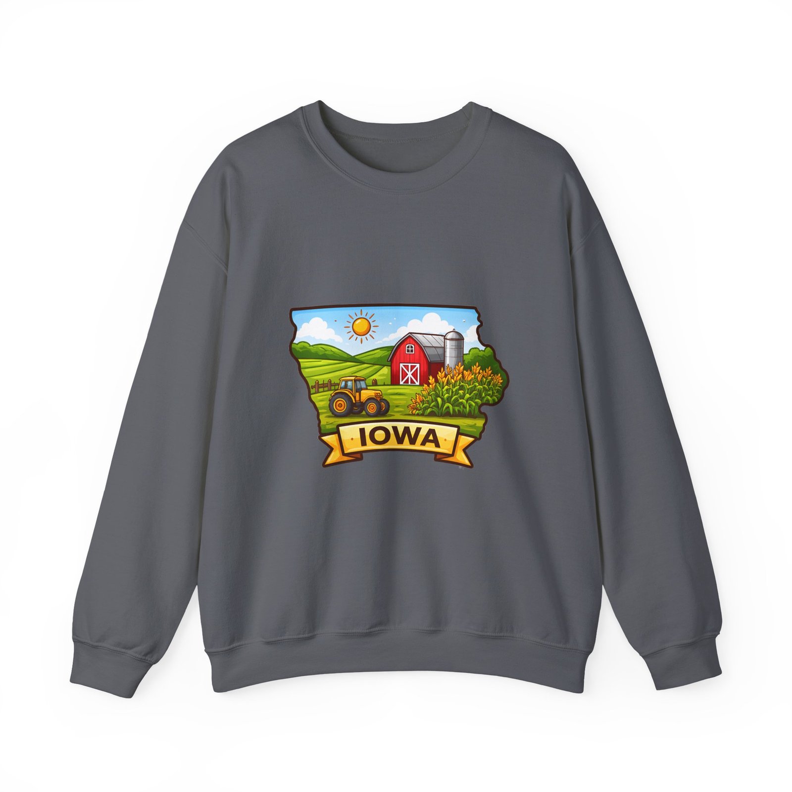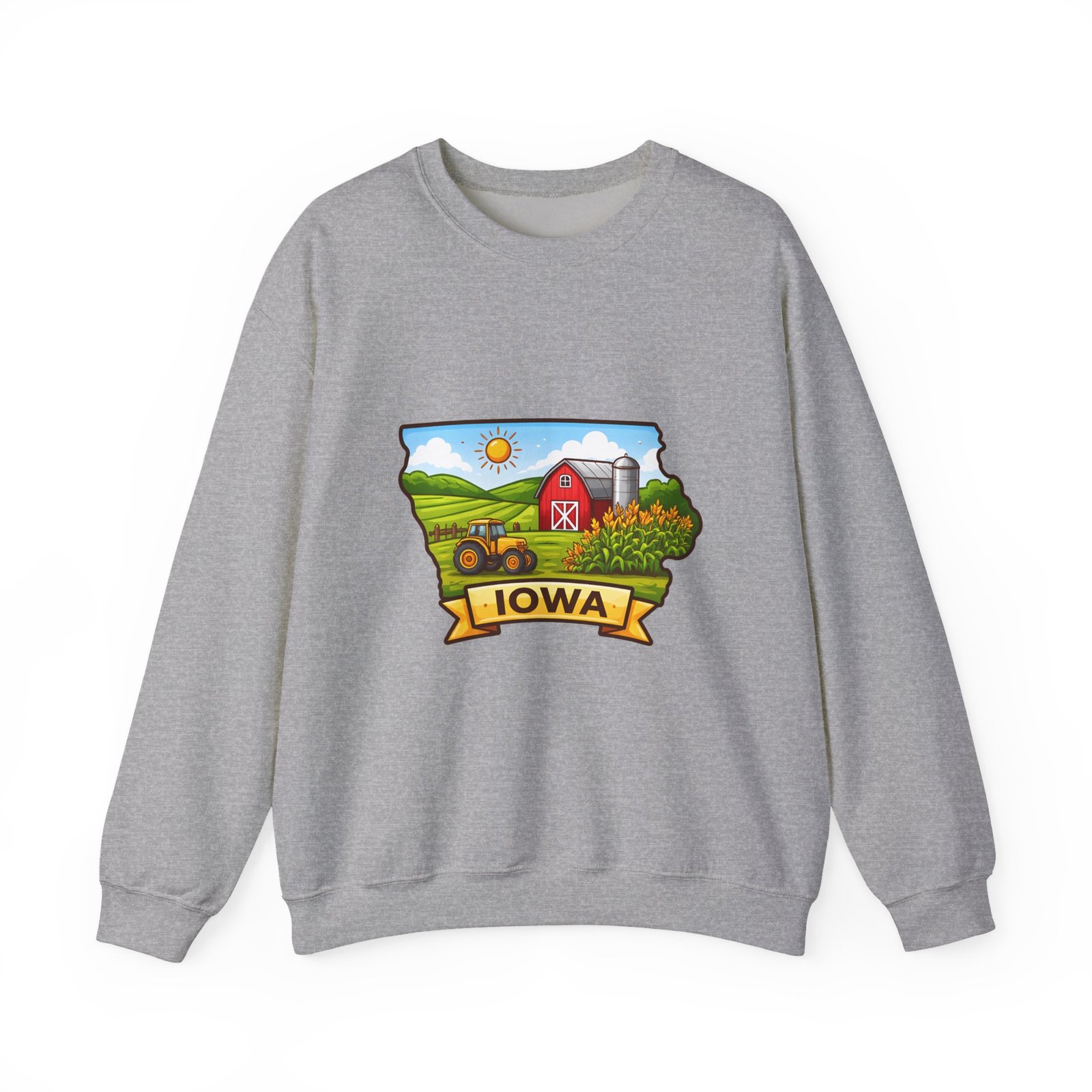Iowa Farm Scene Crewneck Sweatshirt – Scenic Barn & Cornfields DesignIowa Farm Scene Crewneck Sweatshirt – Scenic Barn & Cornfields Design