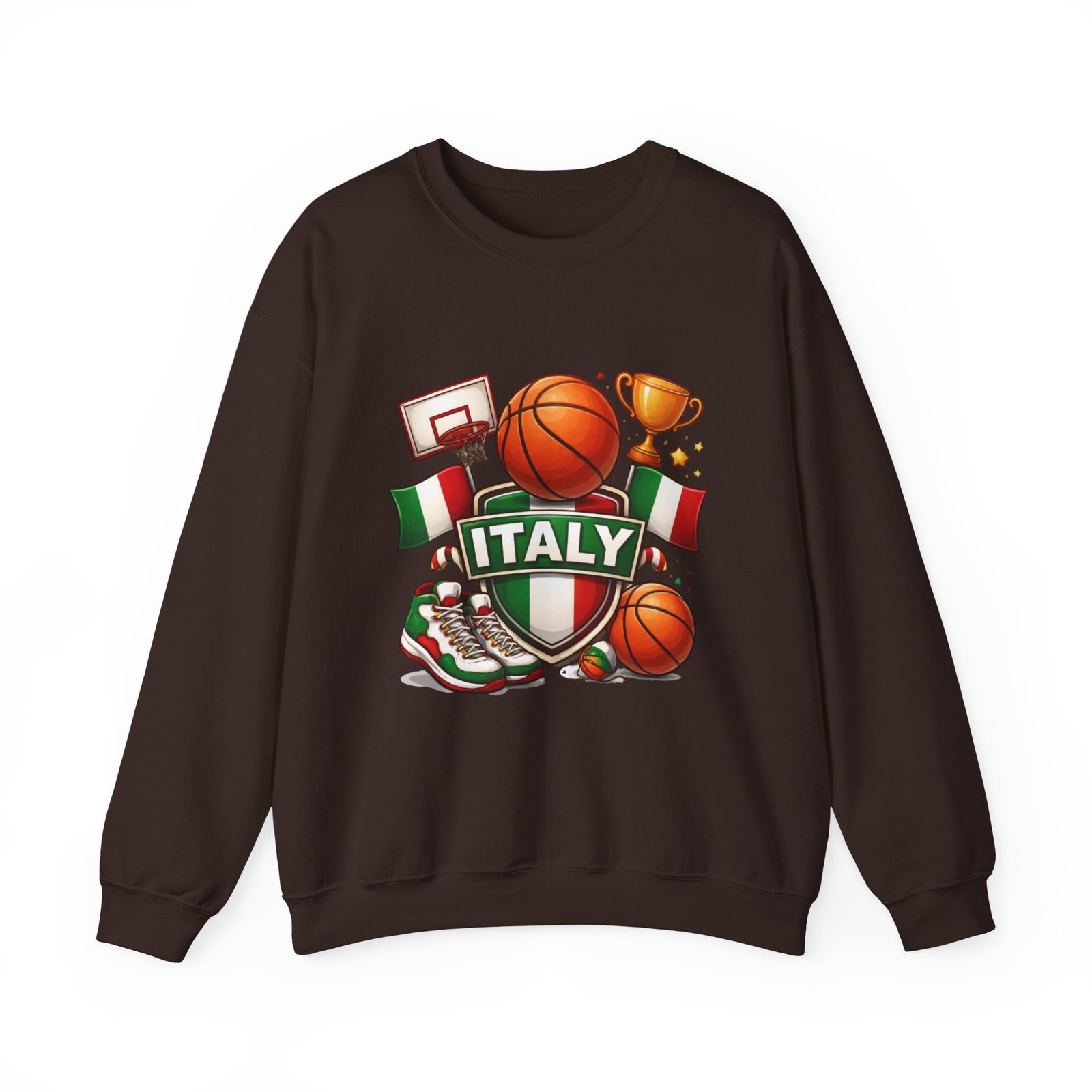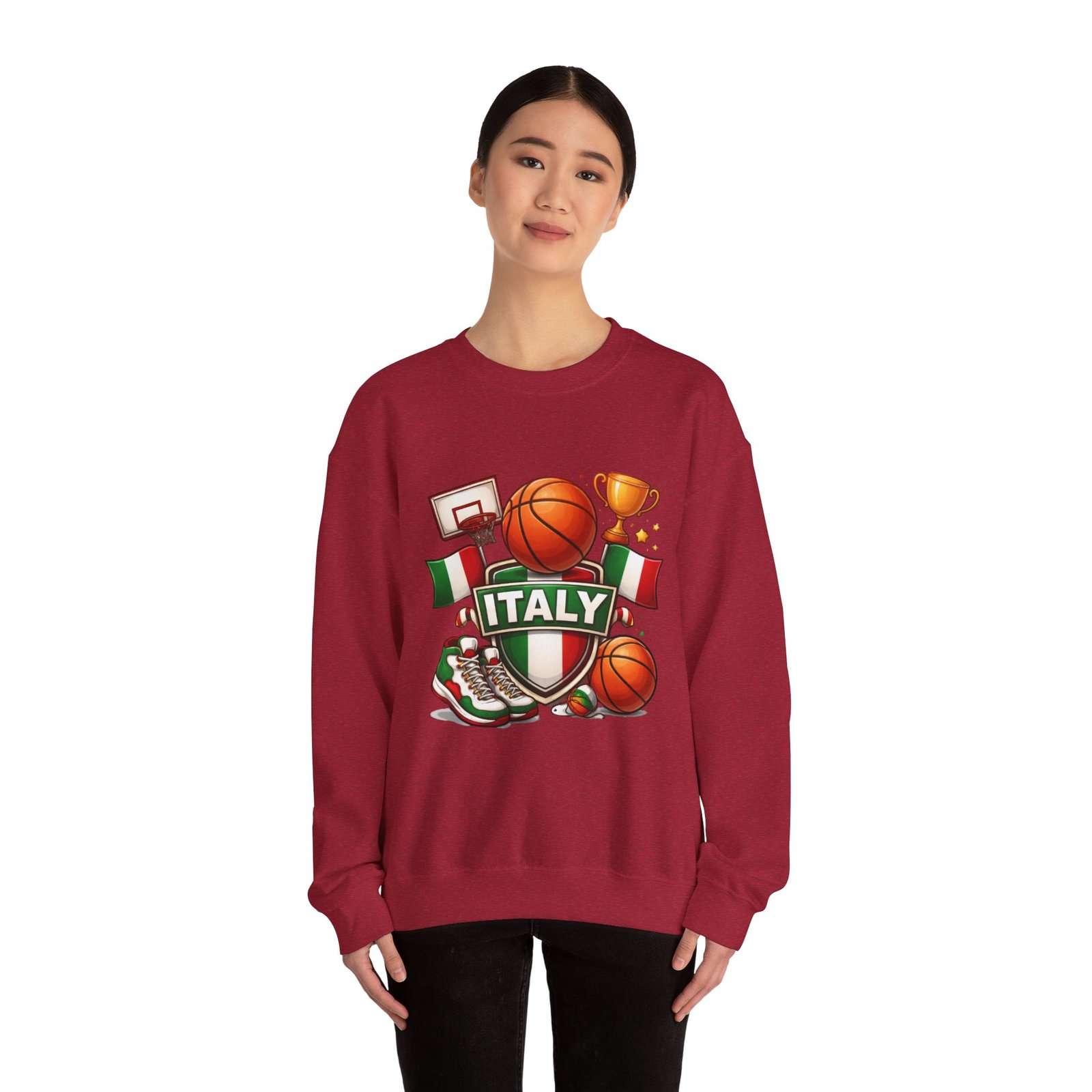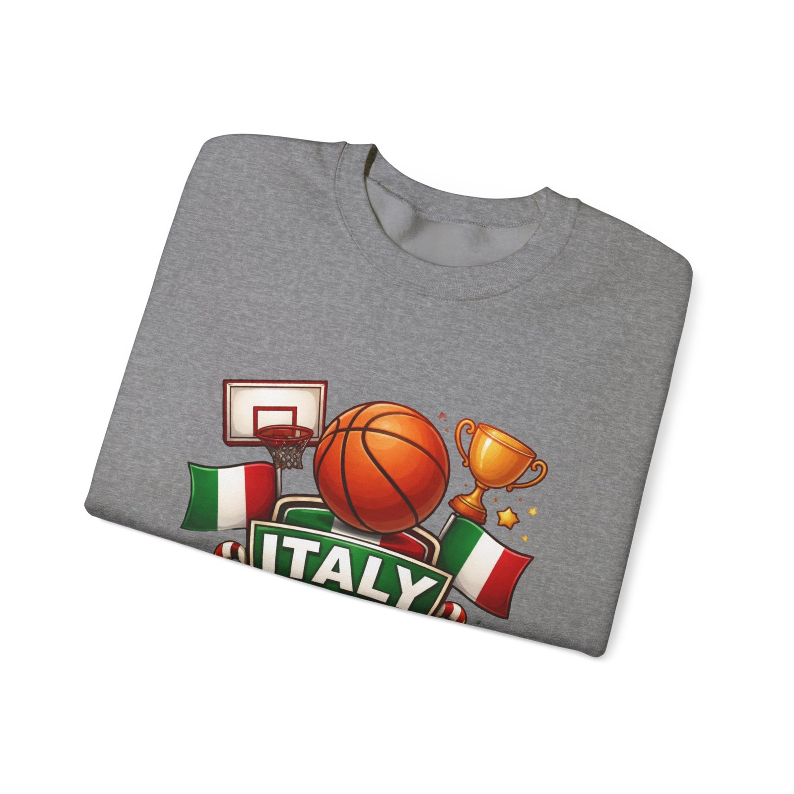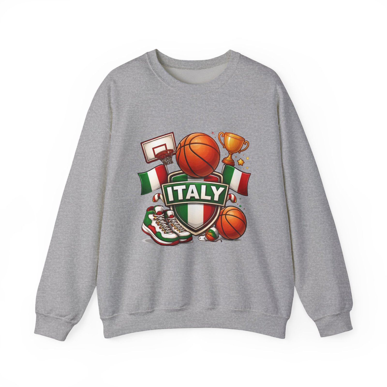 This cozy crewneck brings the loud, proud energy of Italian basketball to everyday wear. Soft, medium-weight fleece and a classic cut let you move comfortably while the colorful chest graphic—basket, shoes, hoop, trophy, and an Italy banner—shows your team spirit without shouting. It’s the kind of sweatshirt you pull on for early-morning pick-up games, weekend stands at the local court, or those relaxed travel days when you want to carry a bit of home with you. The embroidered options add a tactile, premium touch to the design, and the tear-away tag keeps things comfortable against the neck. Built to hold up to repeated wear and washes, this sweatshirt ages into a trusty favorite that still looks crisp.