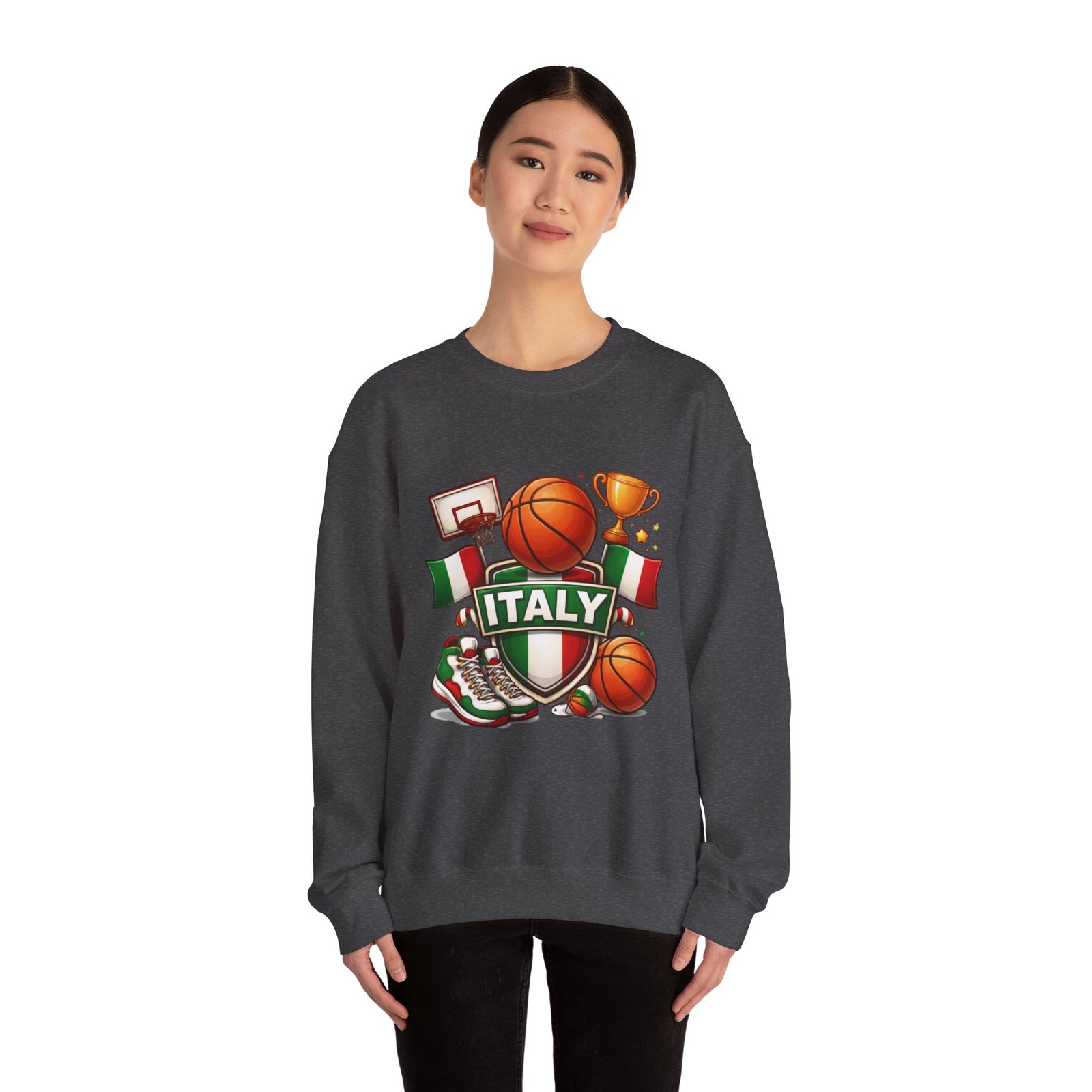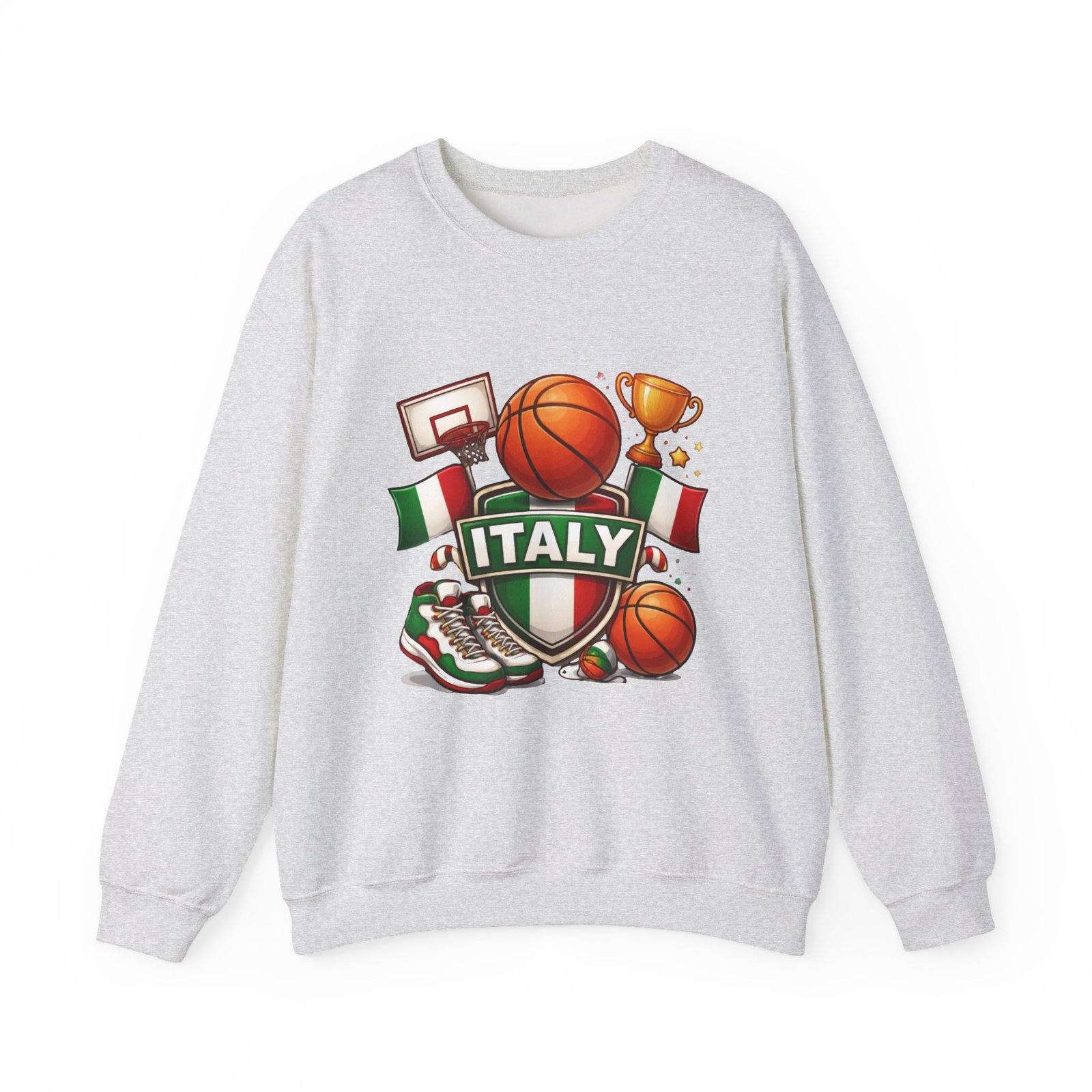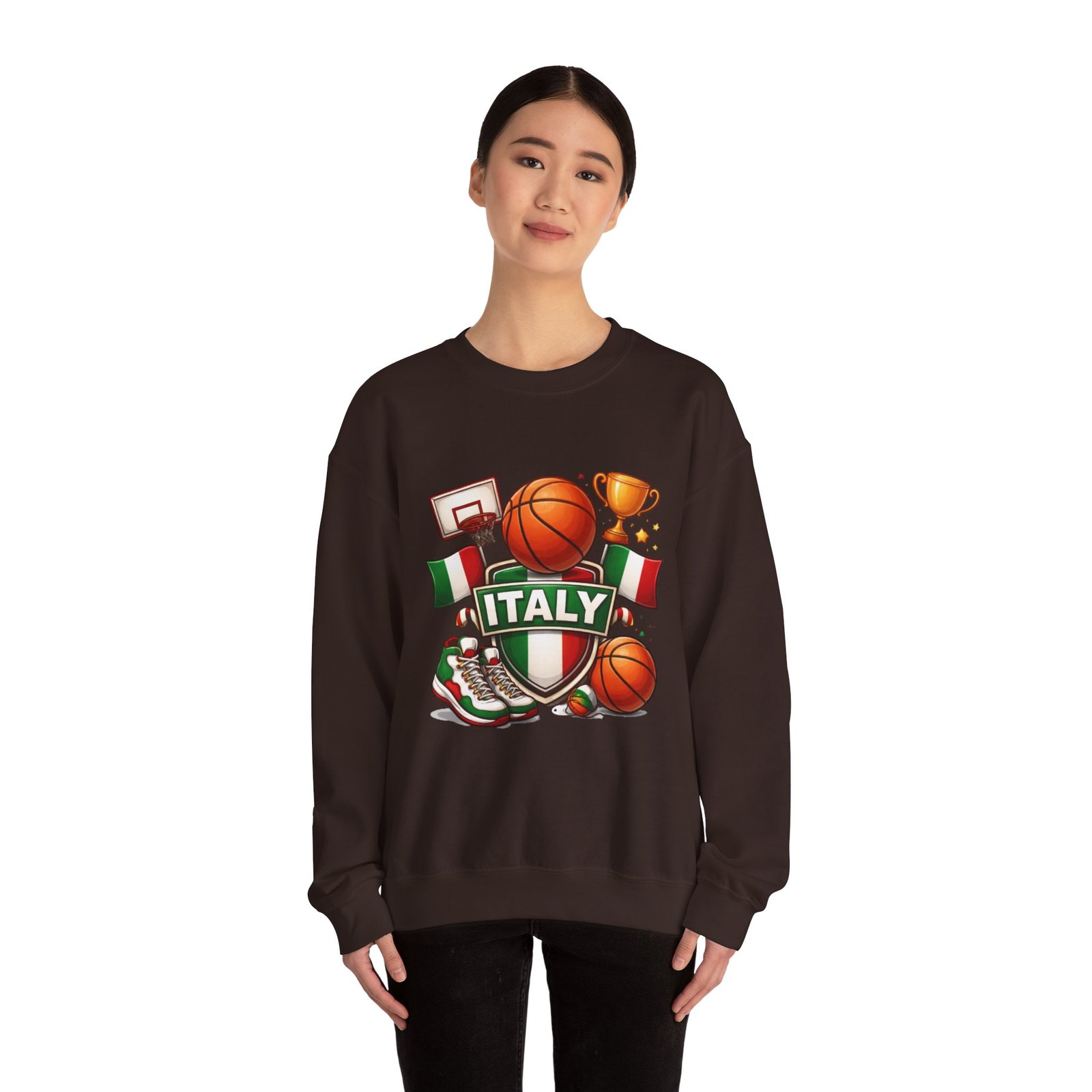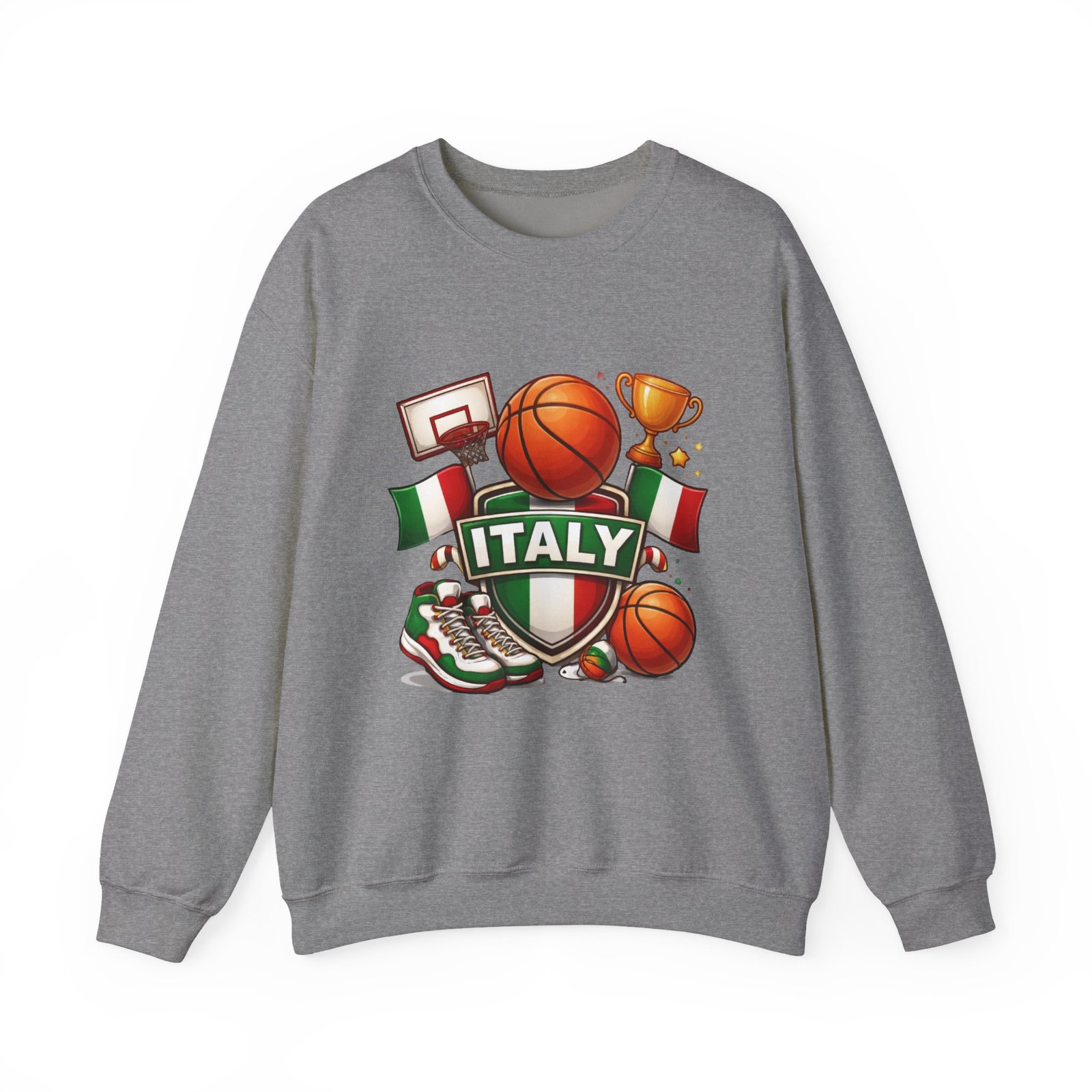 This cozy crewneck brings the loud, proud energy of Italian basketball to everyday wear. Soft, medium-weight fleece and a classic cut let you move comfortably while the colorful chest graphic—basket, shoes, hoop, trophy, and an Italy banner—shows your team spirit without shouting. It’s the kind of sweatshirt you pull on for early-morning pick-up games, weekend stands at the local court, or those relaxed travel days when you want to carry a bit of home with you. The embroidered options add a tactile, premium touch to the design, and the tear-away tag keeps things comfortable against the neck. Built to hold up to repeated wear and washes, this sweatshirt ages into a trusty favorite that still looks crisp.