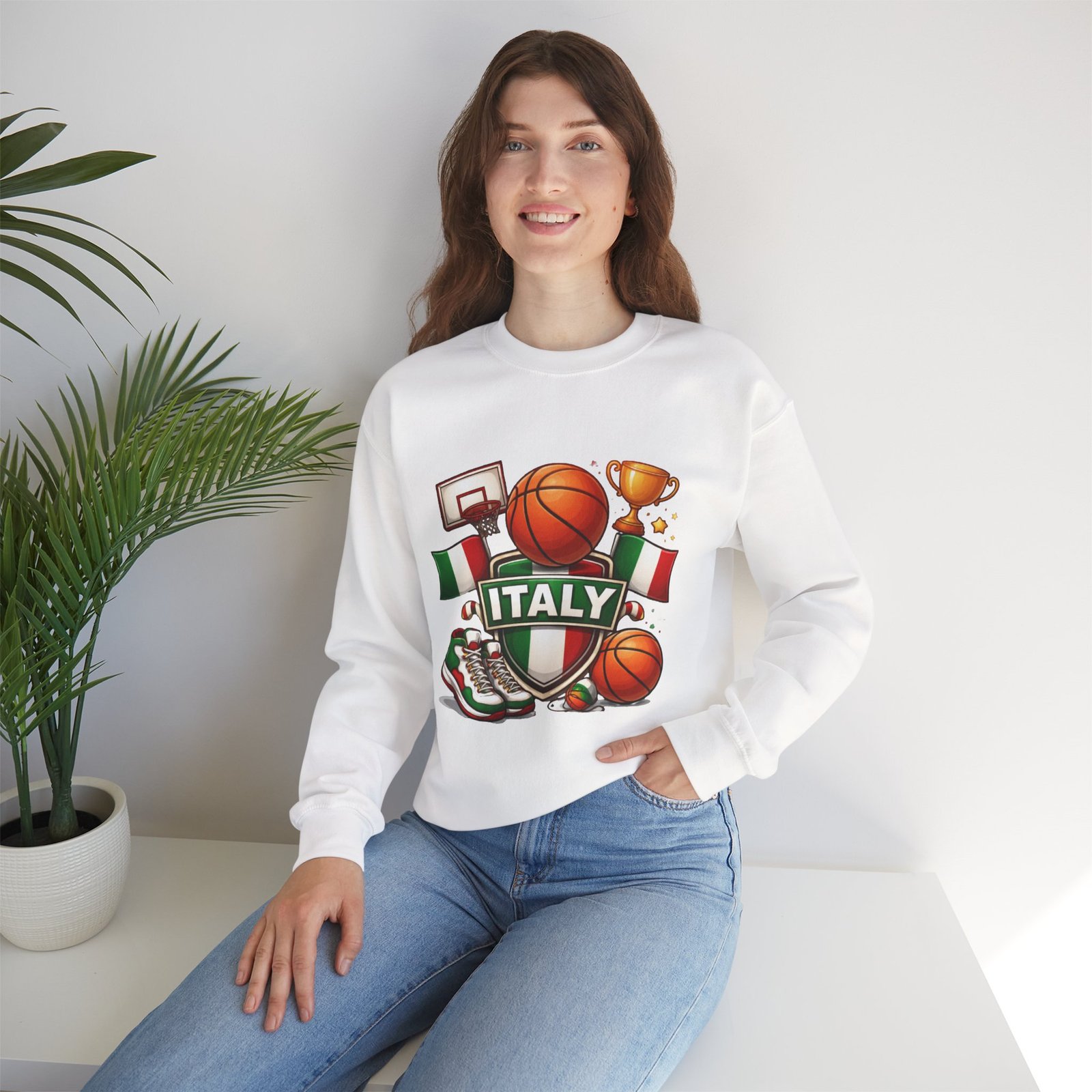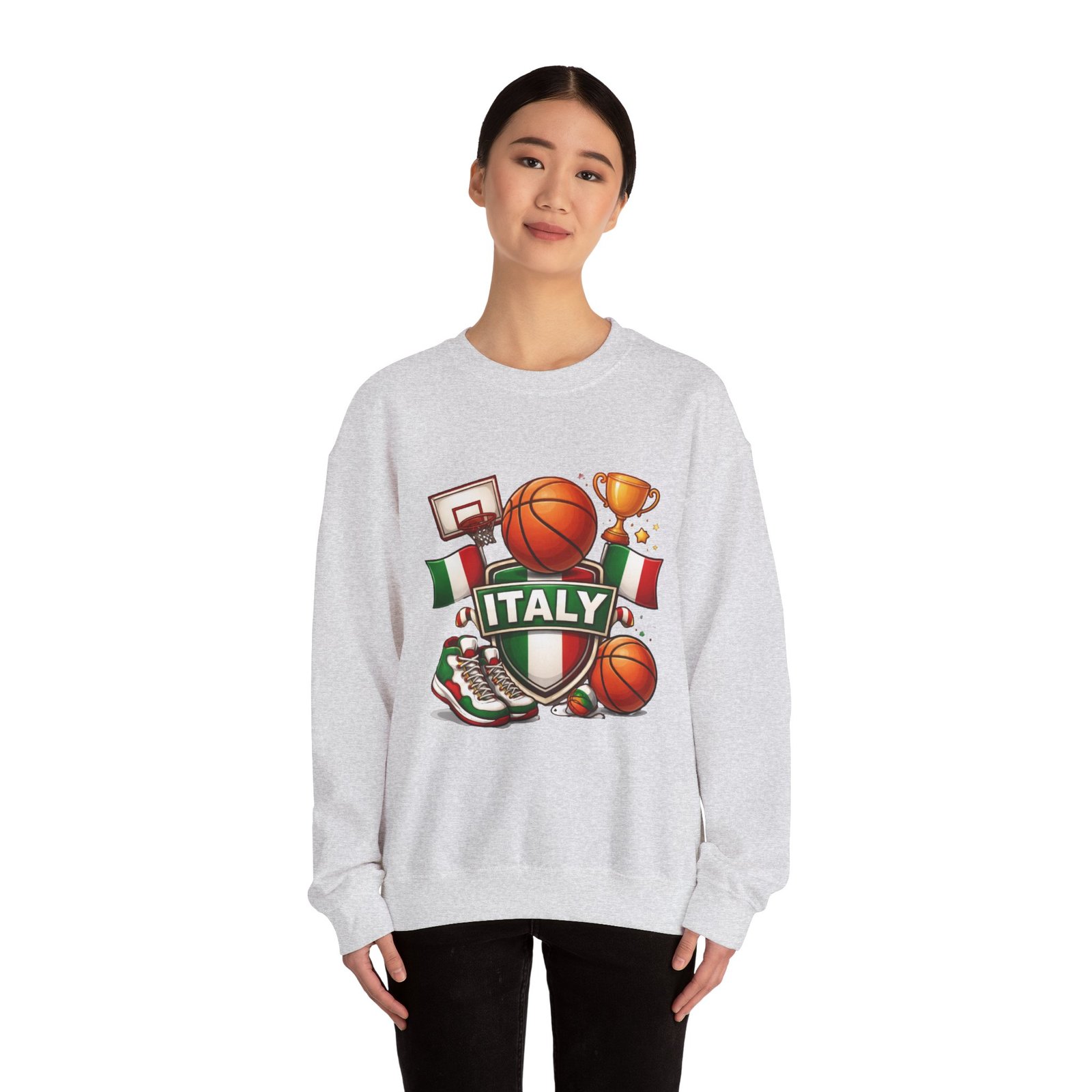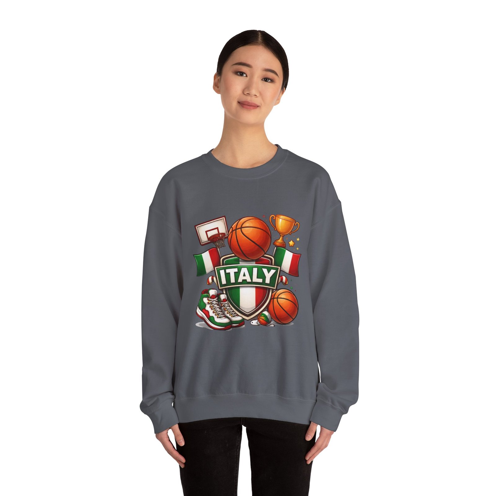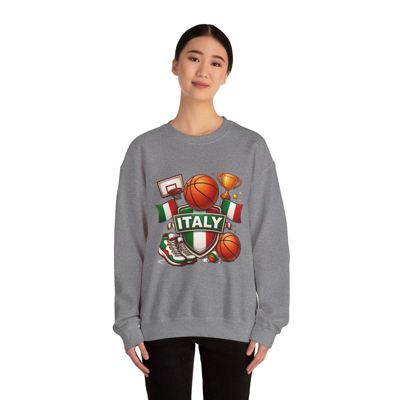 This cozy crewneck brings the loud, proud energy of Italian basketball to everyday wear. Soft, medium-weight fleece and a classic cut let you move comfortably while the colorful chest graphic—basket, shoes, hoop, trophy, and an Italy banner—shows your team spirit without shouting. It’s the kind of sweatshirt you pull on for early-morning pick-up games, weekend stands at the local court, or those relaxed travel days when you want to carry a bit of home with you. The embroidered options add a tactile, premium touch to the design, and the tear-away tag keeps things comfortable against the neck. Built to hold up to repeated wear and washes, this sweatshirt ages into a trusty favorite that still looks crisp.
