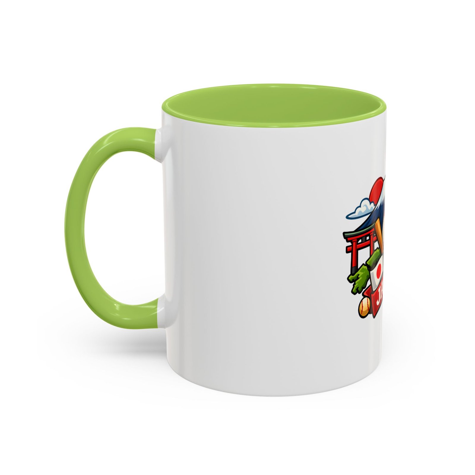 This ceramic accent mug brings Japan to your morning ritual with bright, playful artwork: Mount Fuji, a torii gate, a baseball and bat, and the red sun framed by a banner that reads “Japan.” The colored interior and handle add a bold contrast against the glossy white body, making the illustration pop. Lightweight but sturdy, it holds either 11oz or 15oz of your favorite brew and works in microwaves and dishwashers for everyday use. Safe, lead- and BPA-free materials keep your coffee time worry-free while the crisp, vibrant print stays vivid with regular use. It’s a cheerful, travel-inspired piece that slips easily into daily routines or themed collections.