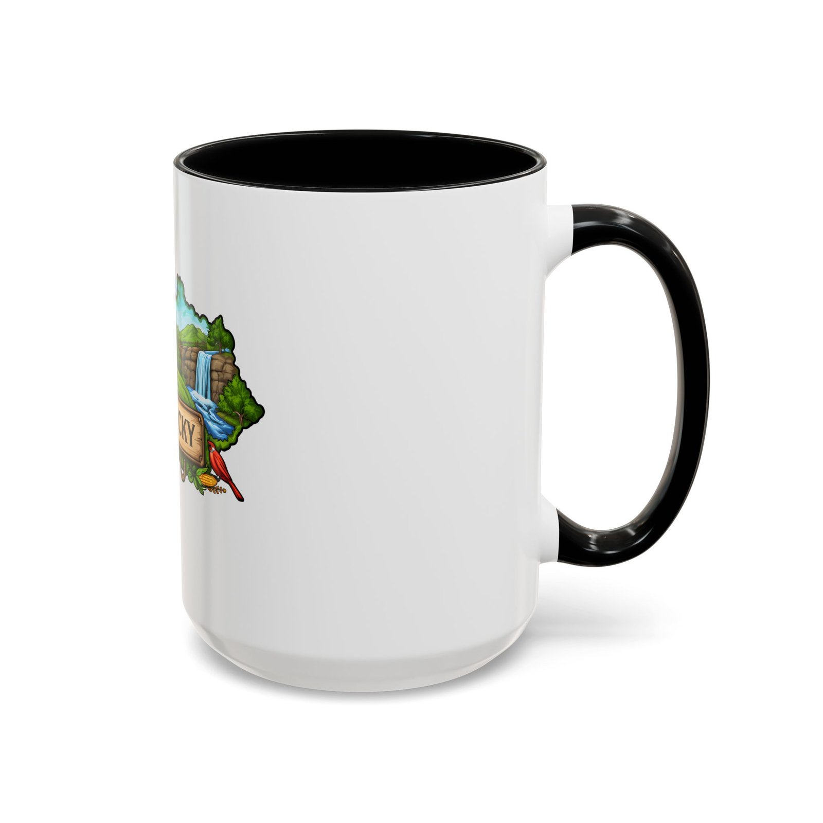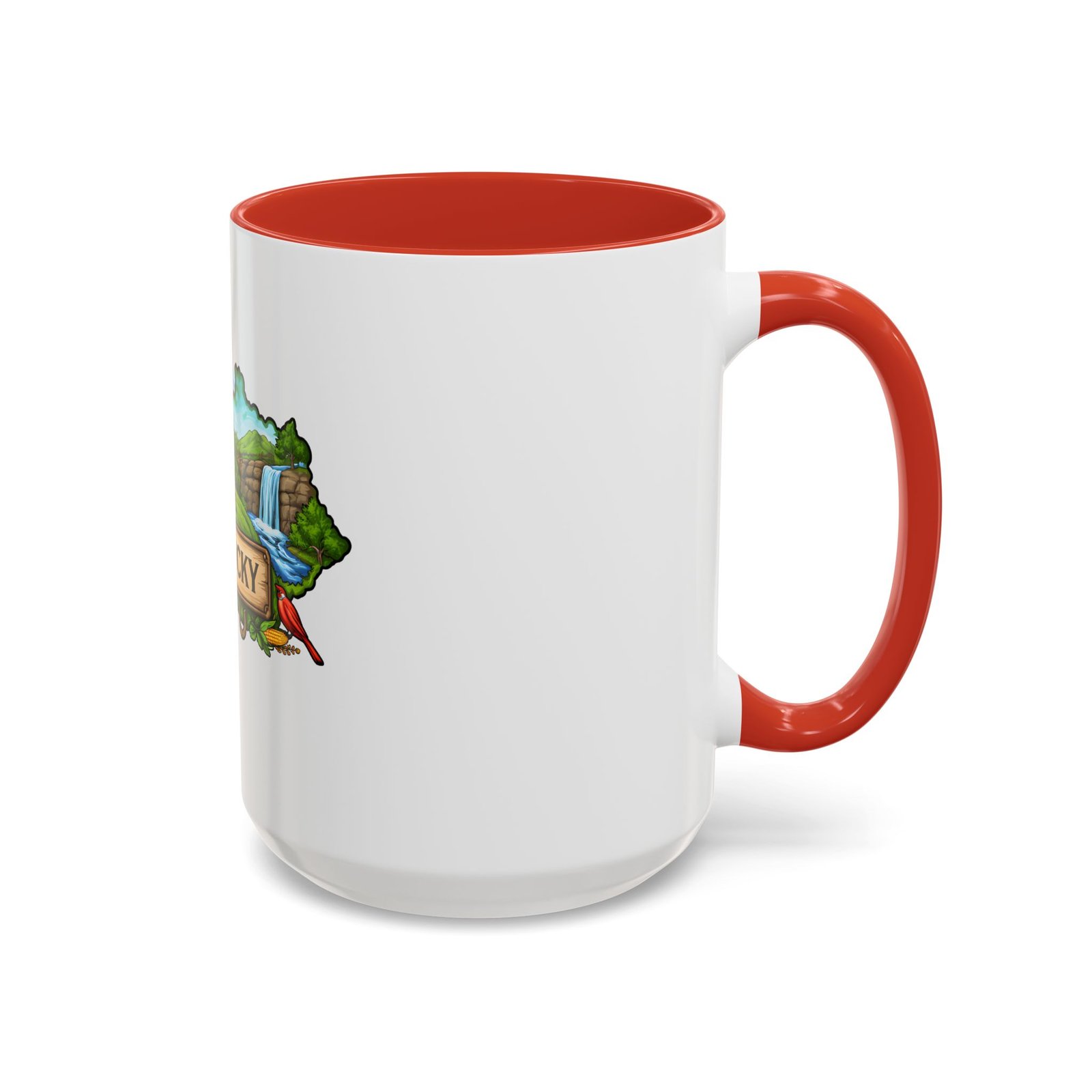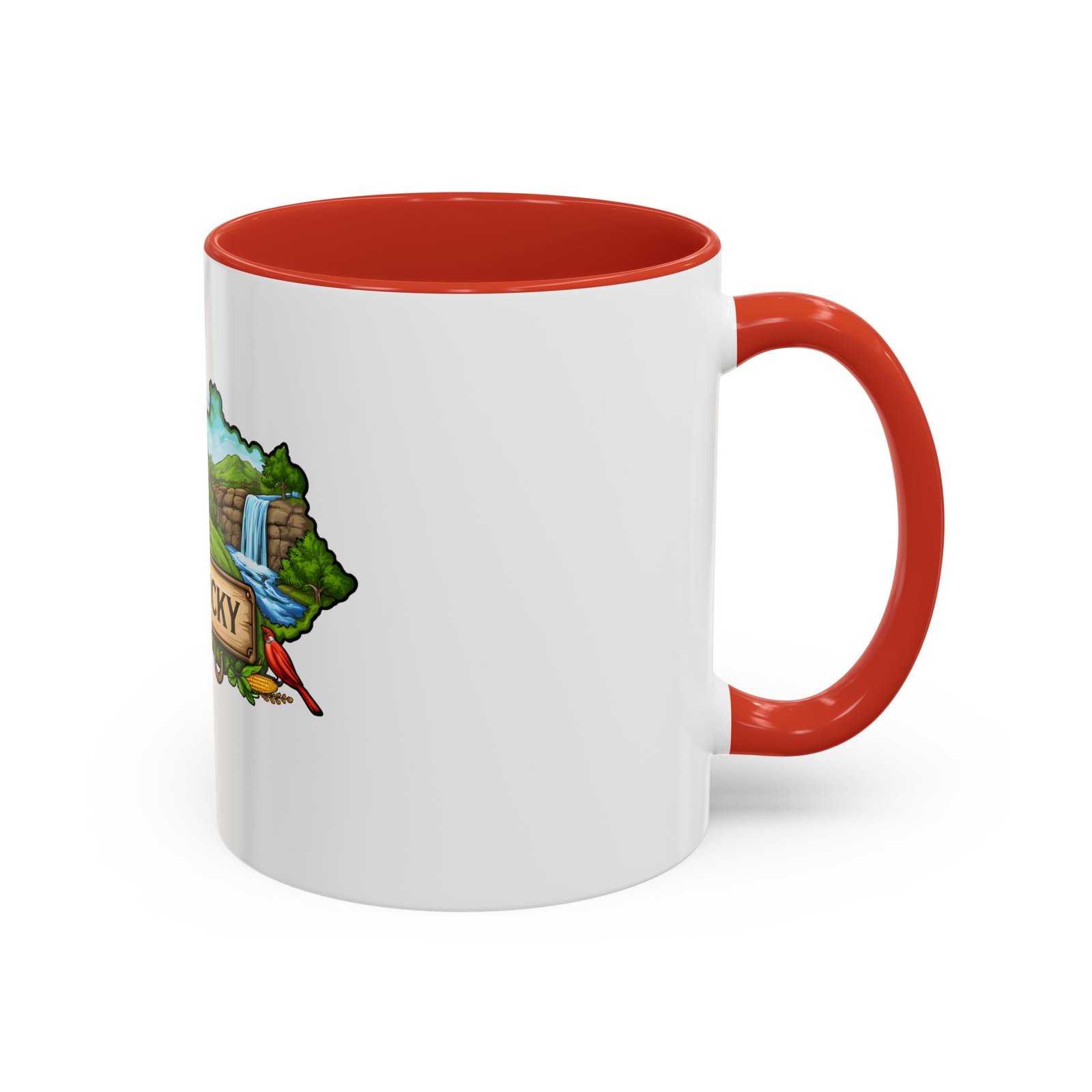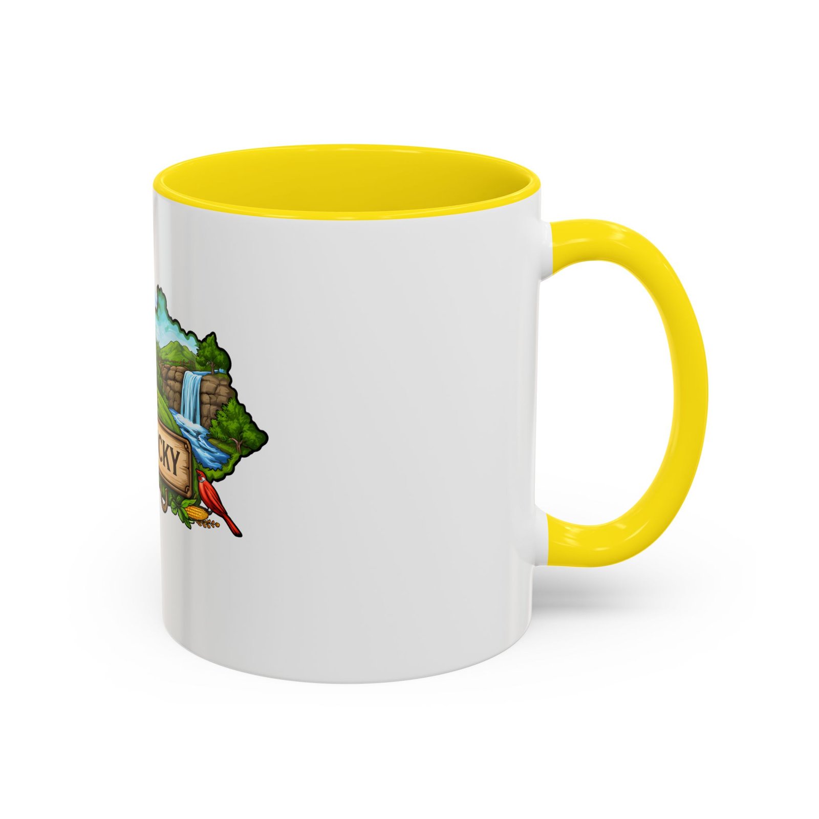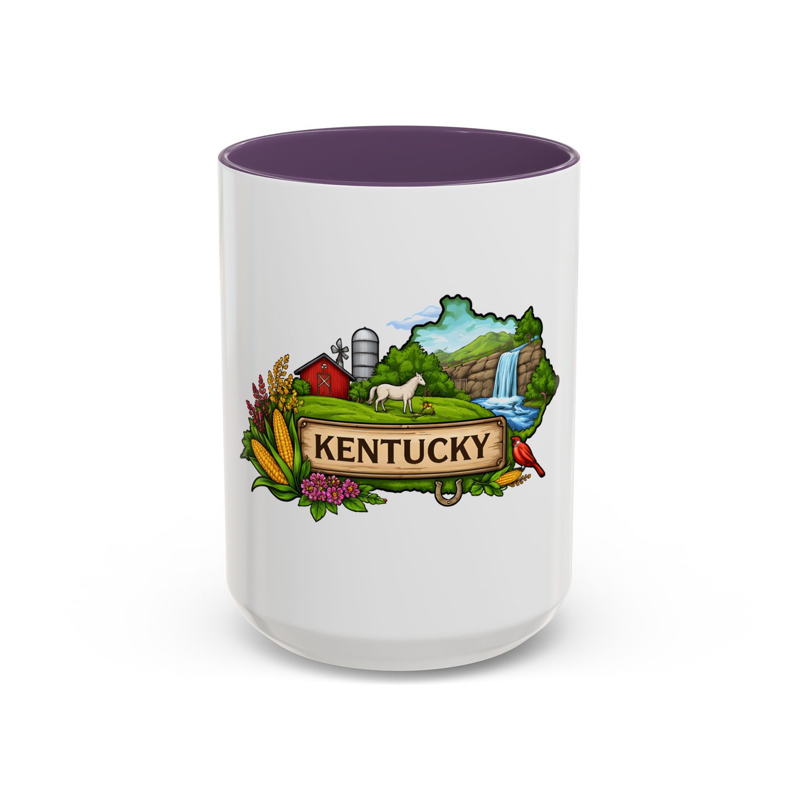 Start your morning with a cup that celebrates home-state pride. This ceramic accent mug pairs a bright, glossy white exterior with a bold colored interior and handle to make the rich Kentucky illustration pop—rolling hills, a red barn, cascading waterfall, corn stalks and a cardinal woven into a rustic sign. It feels warm and familiar in hand, like a slow sunrise over farmland. Durable and low-effort care means this mug joins weekday routines and weekend slow-sips alike, adding a small, joyful moment to coffee, tea, or hot chocolate.