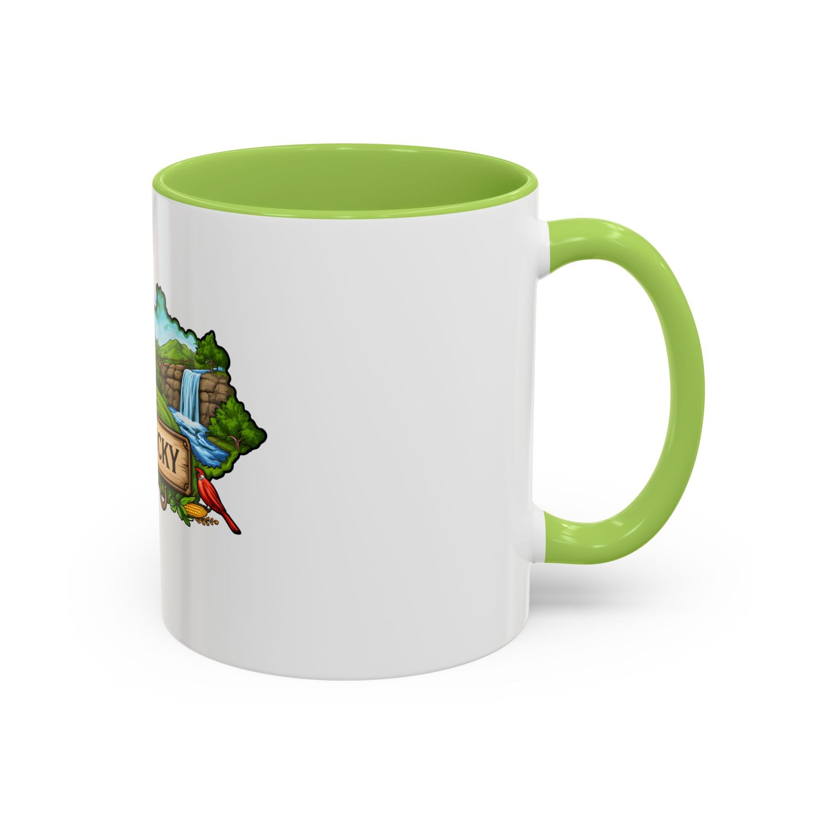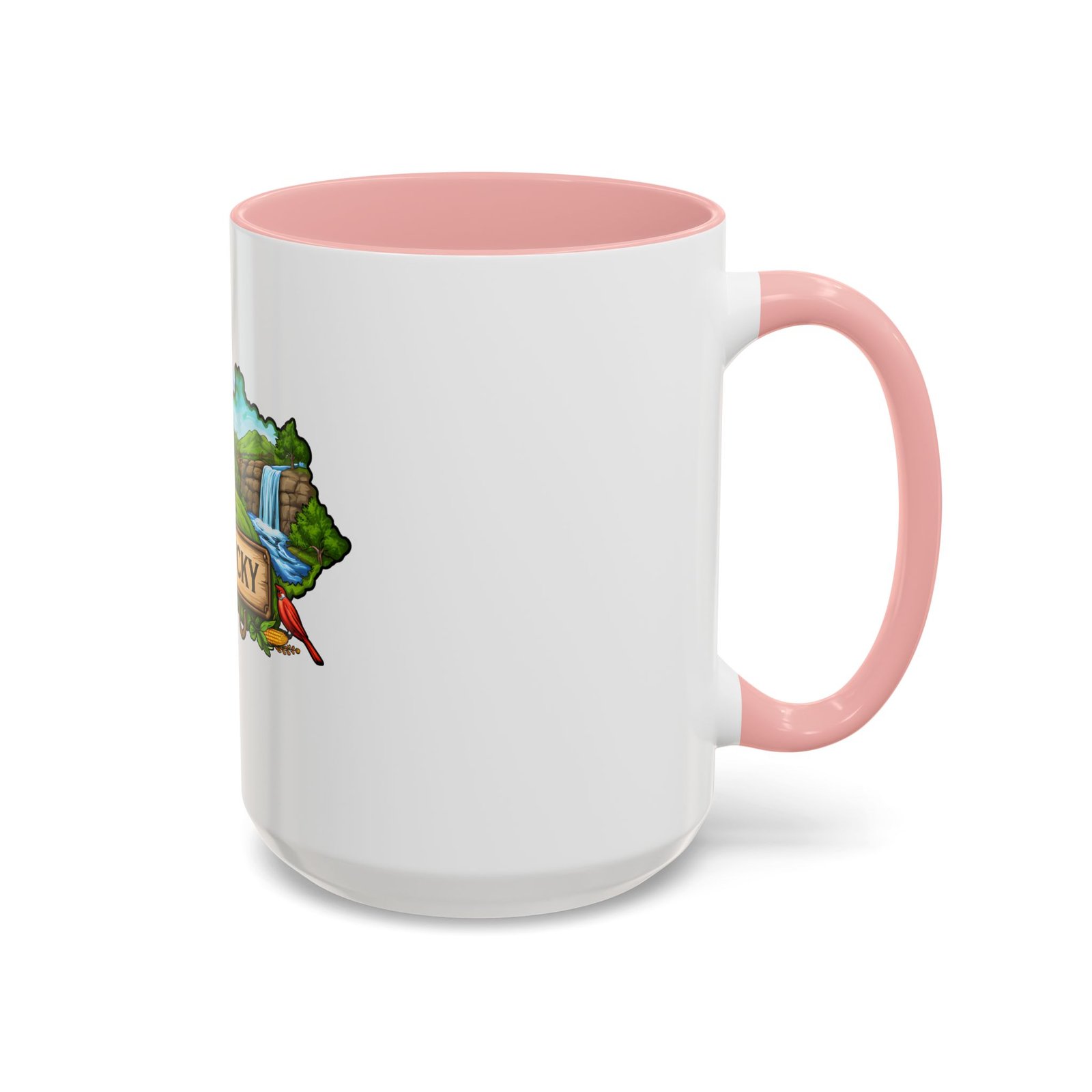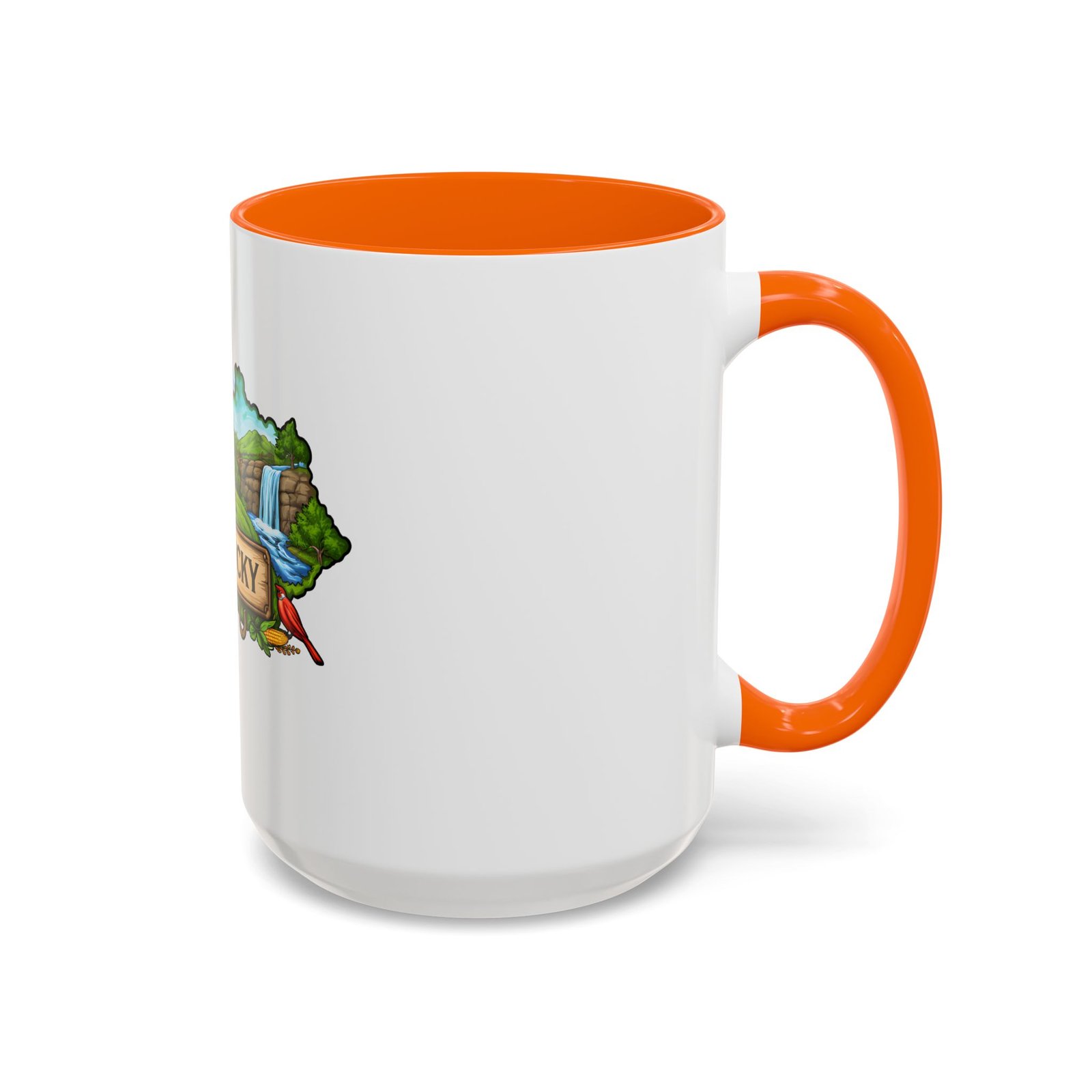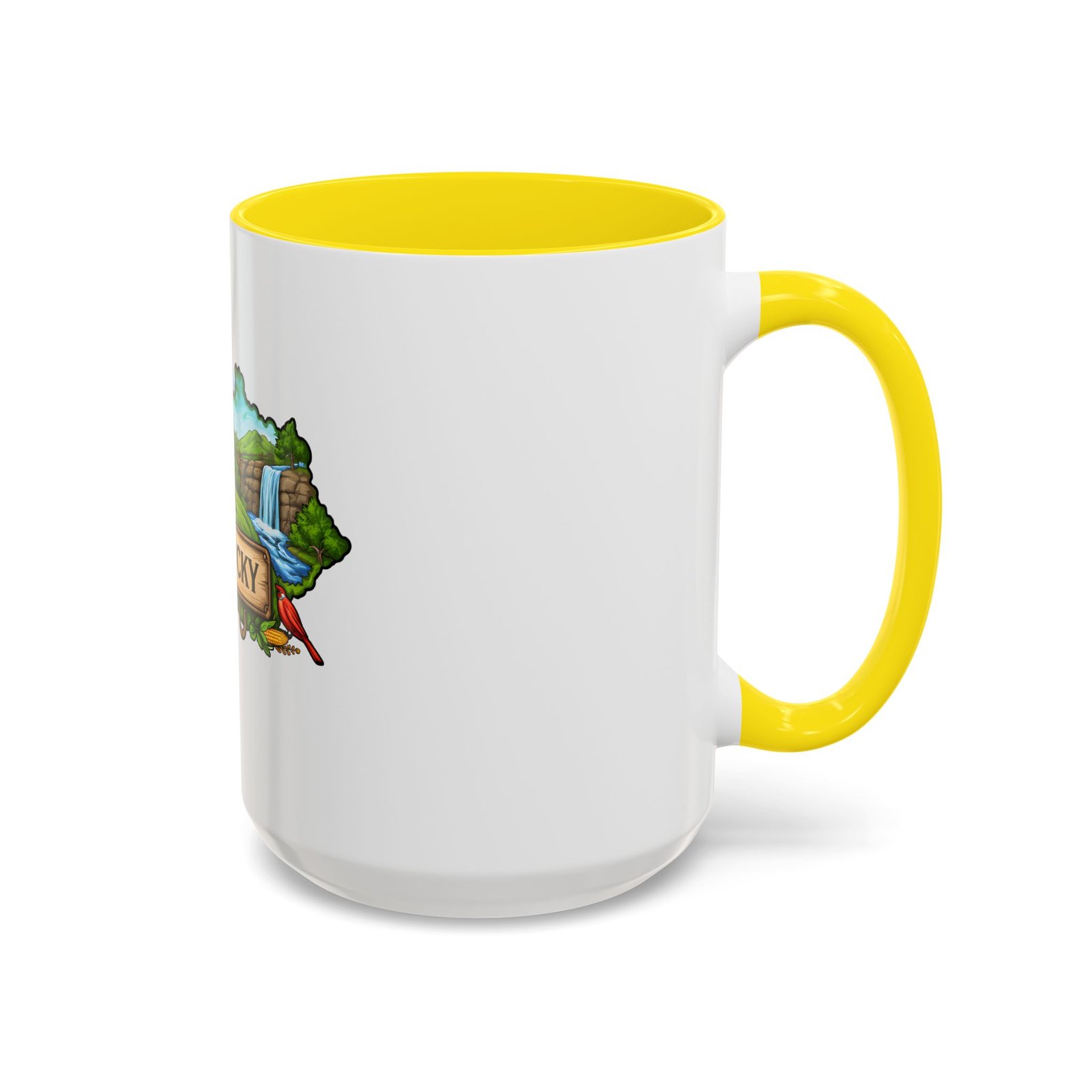 Start your morning with a cup that celebrates home-state pride. This ceramic accent mug pairs a bright, glossy white exterior with a bold colored interior and handle to make the rich Kentucky illustration pop—rolling hills, a red barn, cascading waterfall, corn stalks and a cardinal woven into a rustic sign. It feels warm and familiar in hand, like a slow sunrise over farmland. Durable and low-effort care means this mug joins weekday routines and weekend slow-sips alike, adding a small, joyful moment to coffee, tea, or hot chocolate.