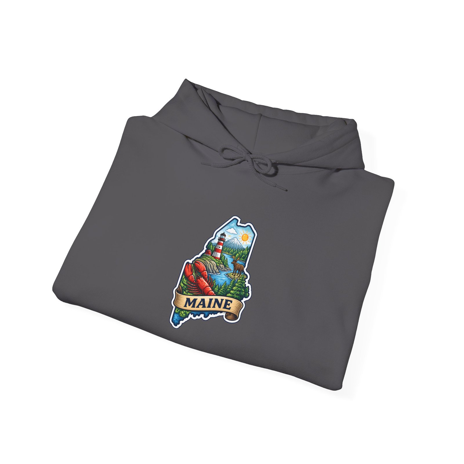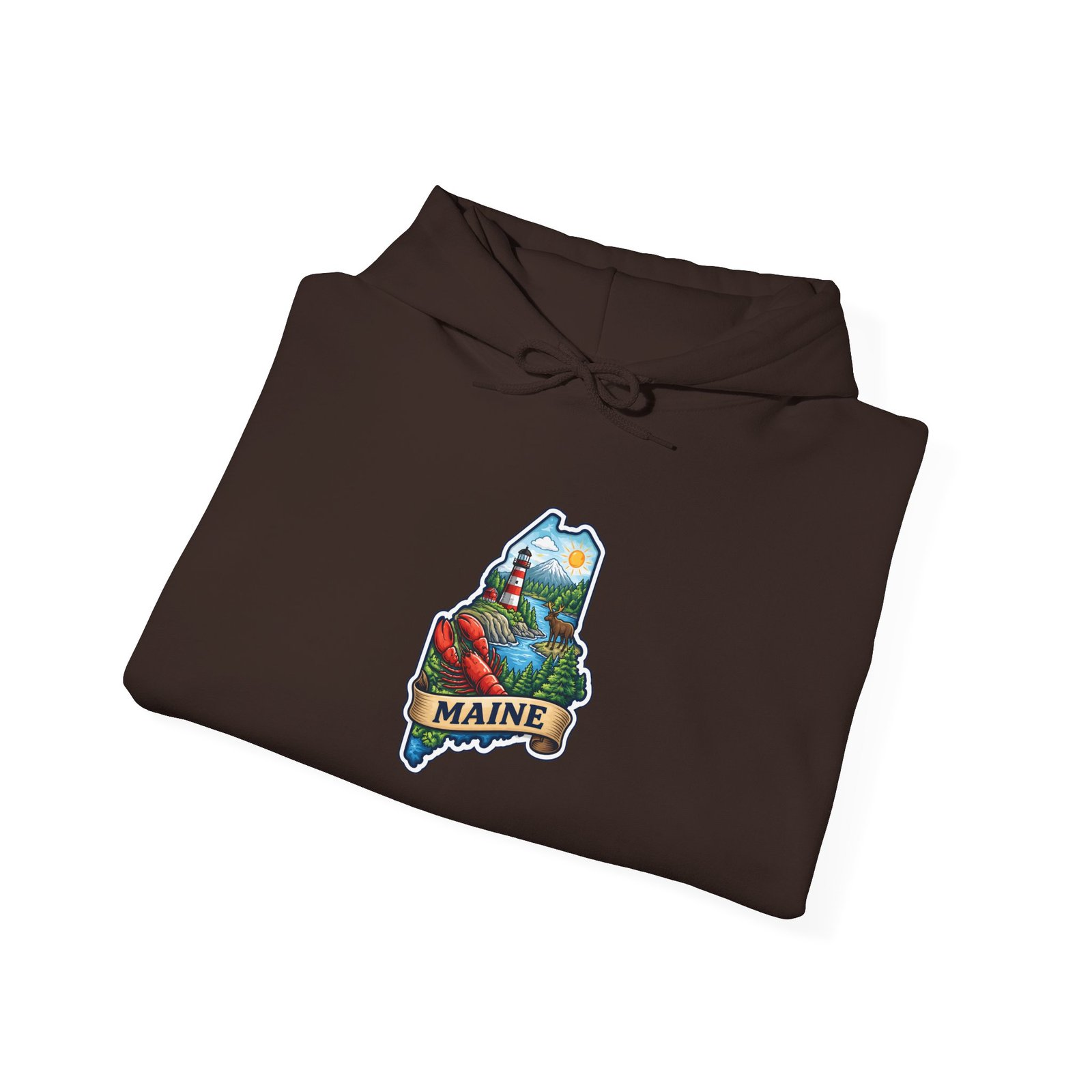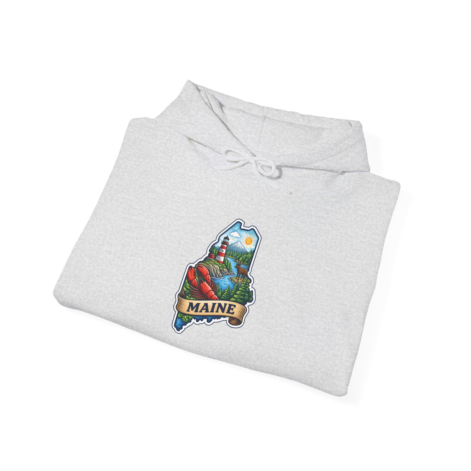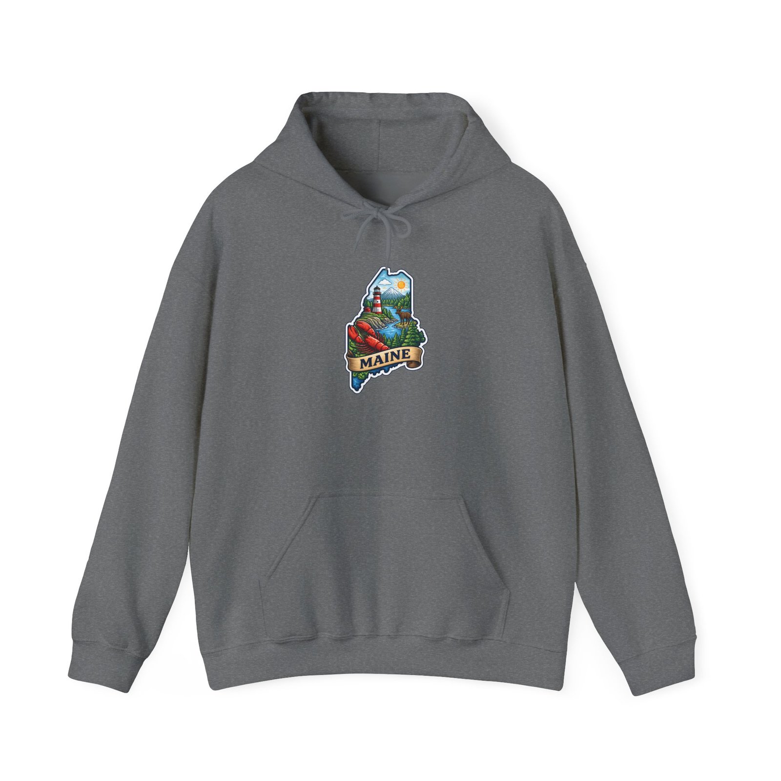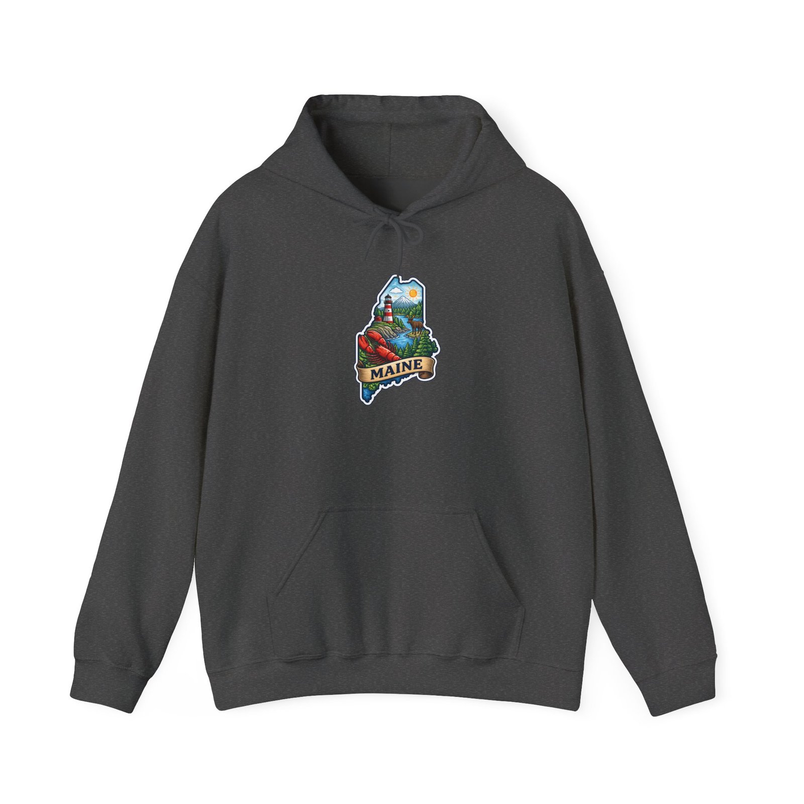 Soft, warm hooded sweatshirt embroidered with a small, colorful Maine-inspired patch at the chest. The design blends coastal scenery and woodland motifs for a quiet, outdoorsy vibe. Built from a cotton-poly blend with a double-lined hood and color-matched drawcord, this sweatshirt feels broken-in from the first wear while holding shape wash after wash. The roomy kangaroo pocket keeps hands cozy on foggy mornings, and clean, tubular construction reduces bulk for a smooth, classic silhouette. Wear it on shoreline walks, campfire evenings, or lazy weekends when you want a piece that nods to home and the wild without shouting.