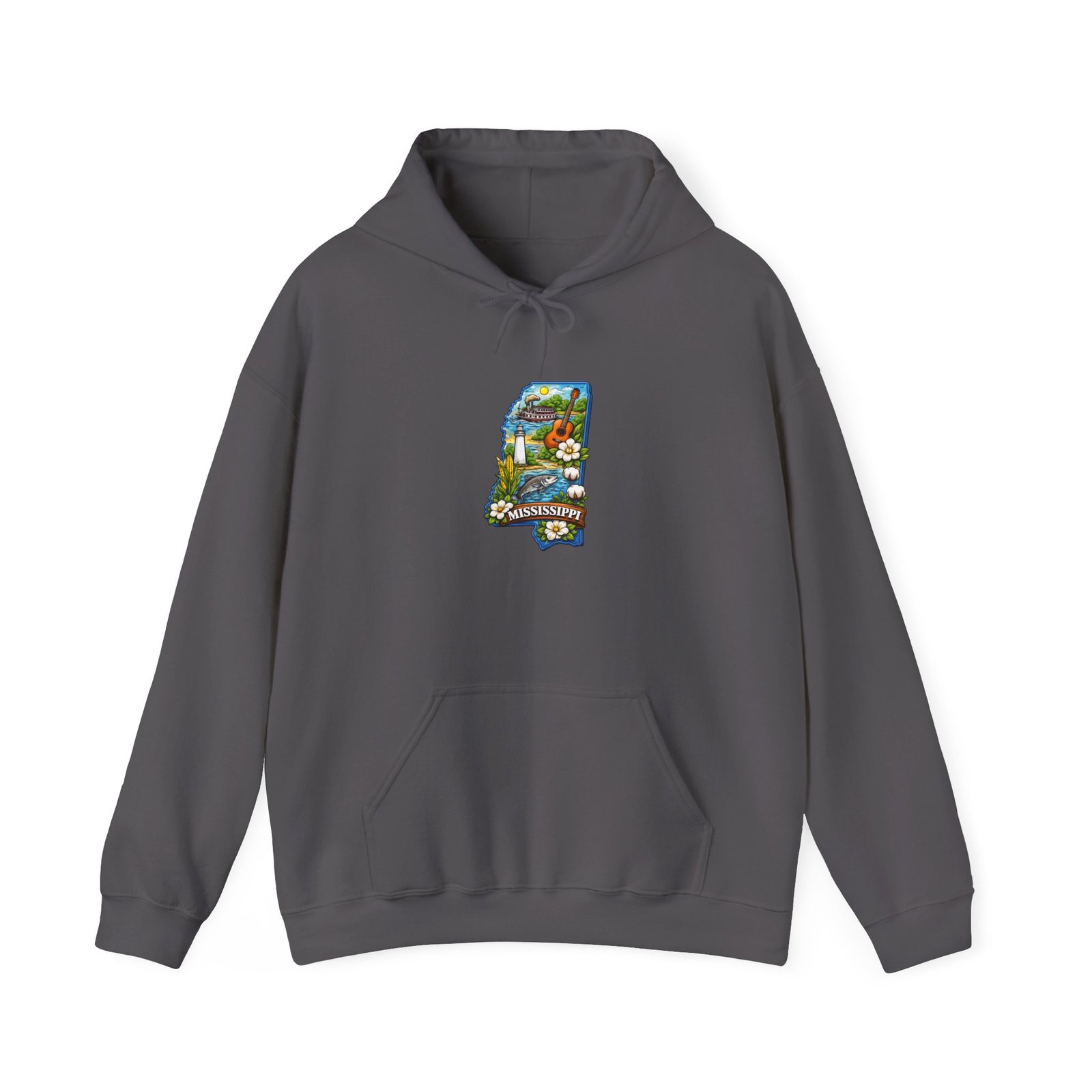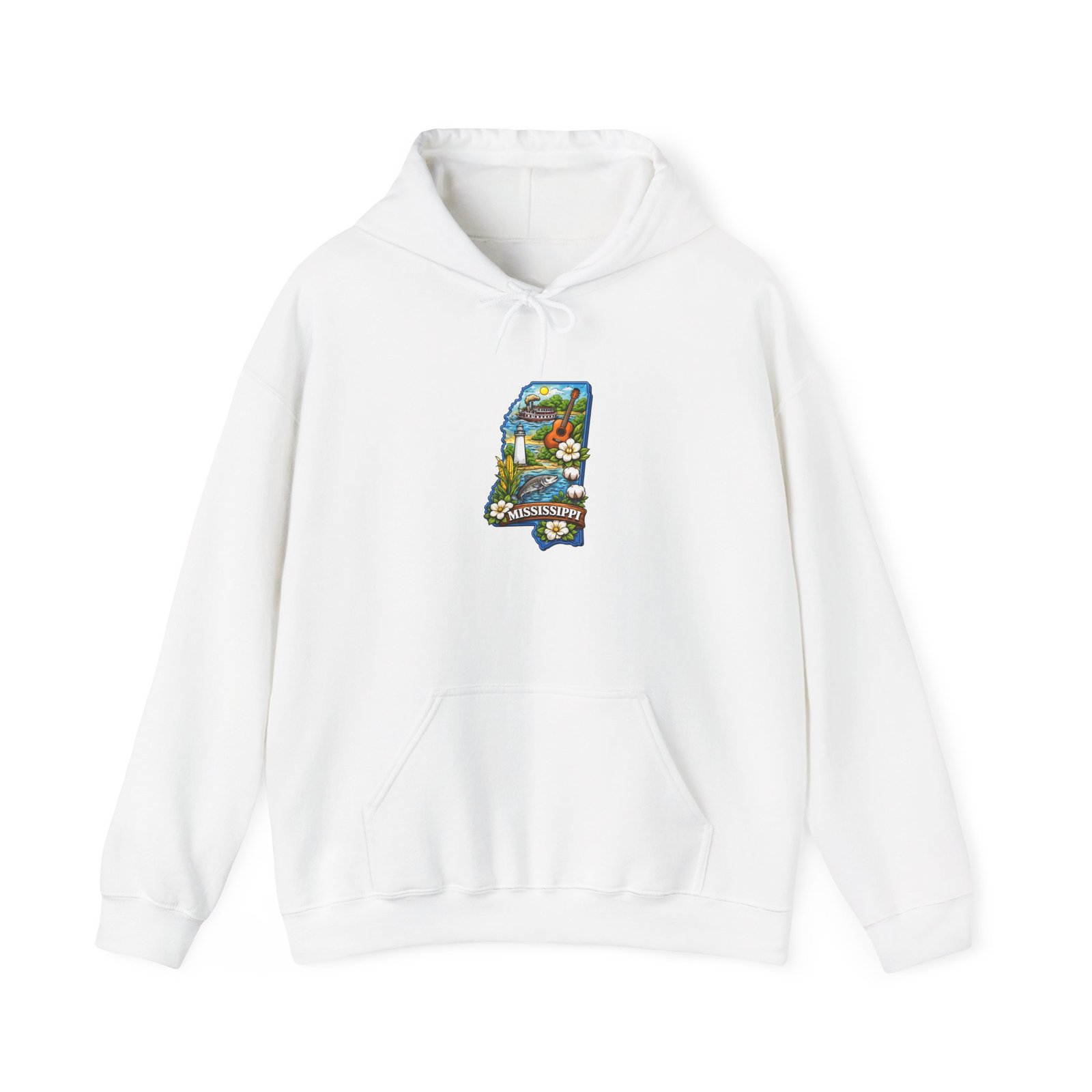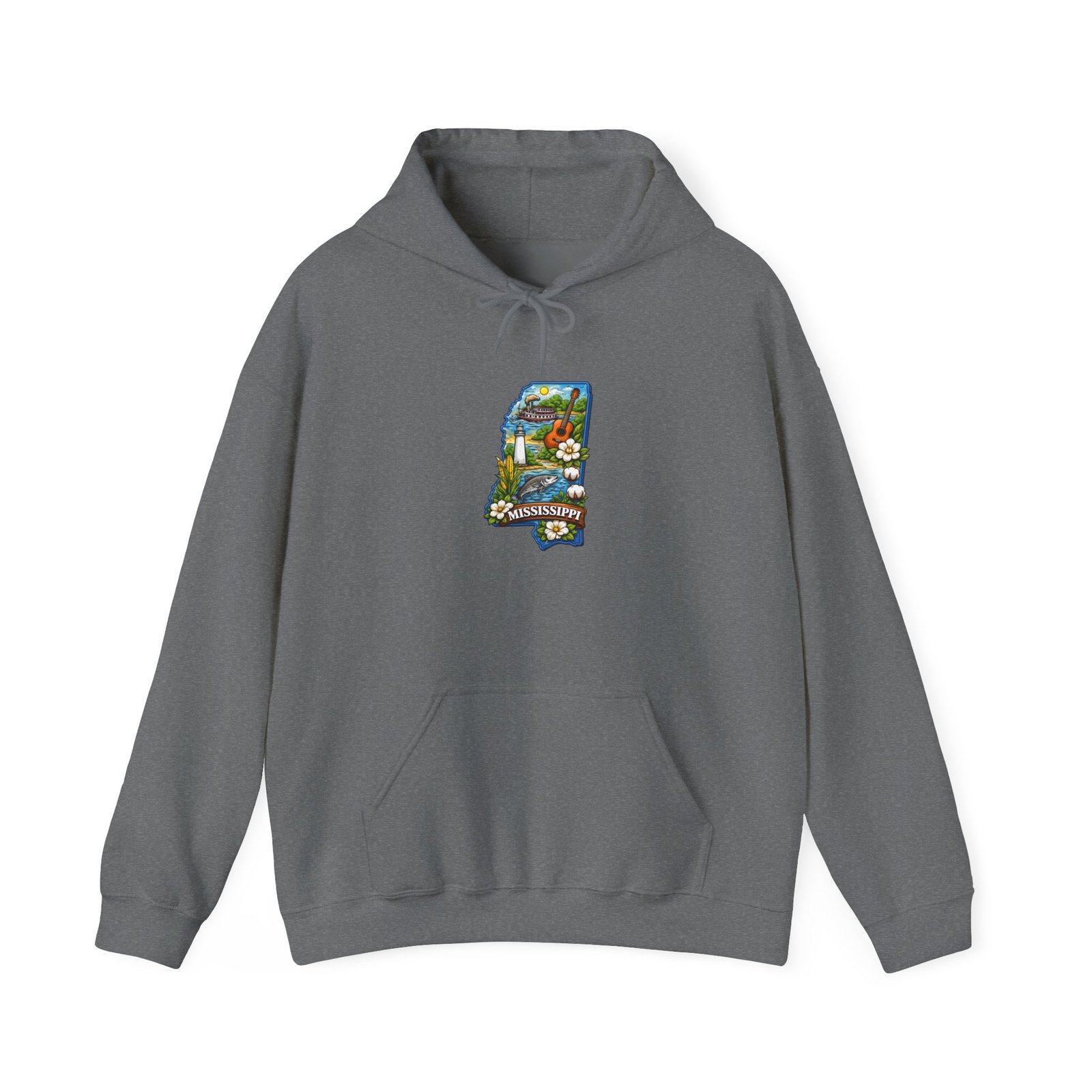 This cozy hooded sweatshirt brings a small, hand-drawn landscape to the forefront — a tiny world stitched into the chest that feels like a quiet escape. Soft and slightly plush, the midweight fabric holds warmth without weight. The drawstring hood and roomy kangaroo pocket create a worn-in comfort you’ll reach for on slow mornings, late-night drives, or when you want a low-key layer for exploring local trails. The artwork adds a touch of wanderlust: wildflowers, a winding river, and sunlit hills arranged inside a compact, badge-like shape that reads like a keepsake from a short, perfect weekend away. Wear it with jeans, a beanie, and muddy boots, or throw it over leggings for a coffee run — it settles into everyday life and makes small adventures feel deliberate.