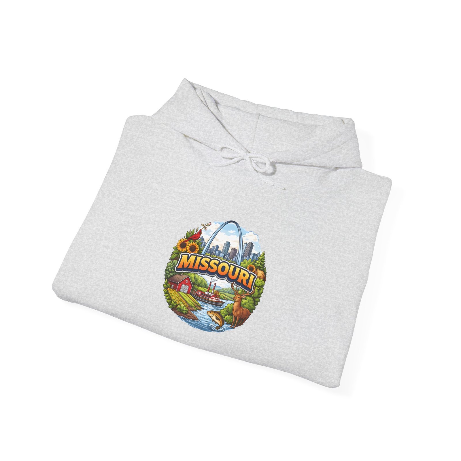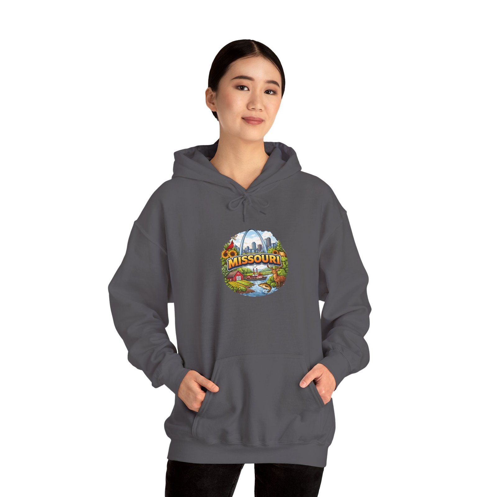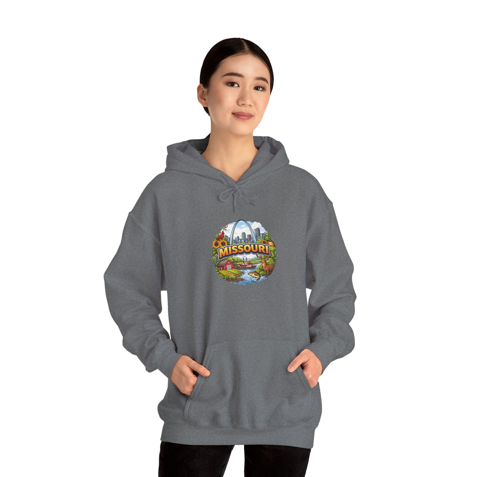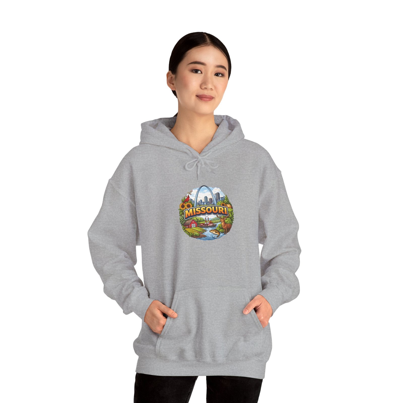Wrap yourself in a hoodie that feels like a slow Sunday drive through wildflower meadows and river bends. Soft, medium-weight fleece cradles you as a small, artful Missouri landscape sits at the chest — an arch skyline, rolling hills, and a ribbon of water framed by autumn tones. It reads like a hometown postcard you can wear: familiar, quietly proud, and a little nostalgic. Throw it on for early-morning coffee runs, crisp hikes along the Ozarks, or bonfire nights when the air turns sharp and conversation gets softer. The roomy pocket and double-lined hood make it practical for layering; the clean white canvas keeps the artwork bright so the scene stands out whether you’re exploring town or relaxing at home.