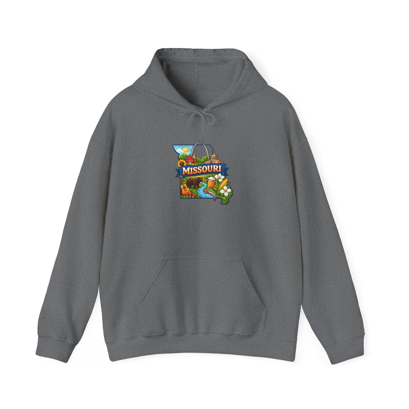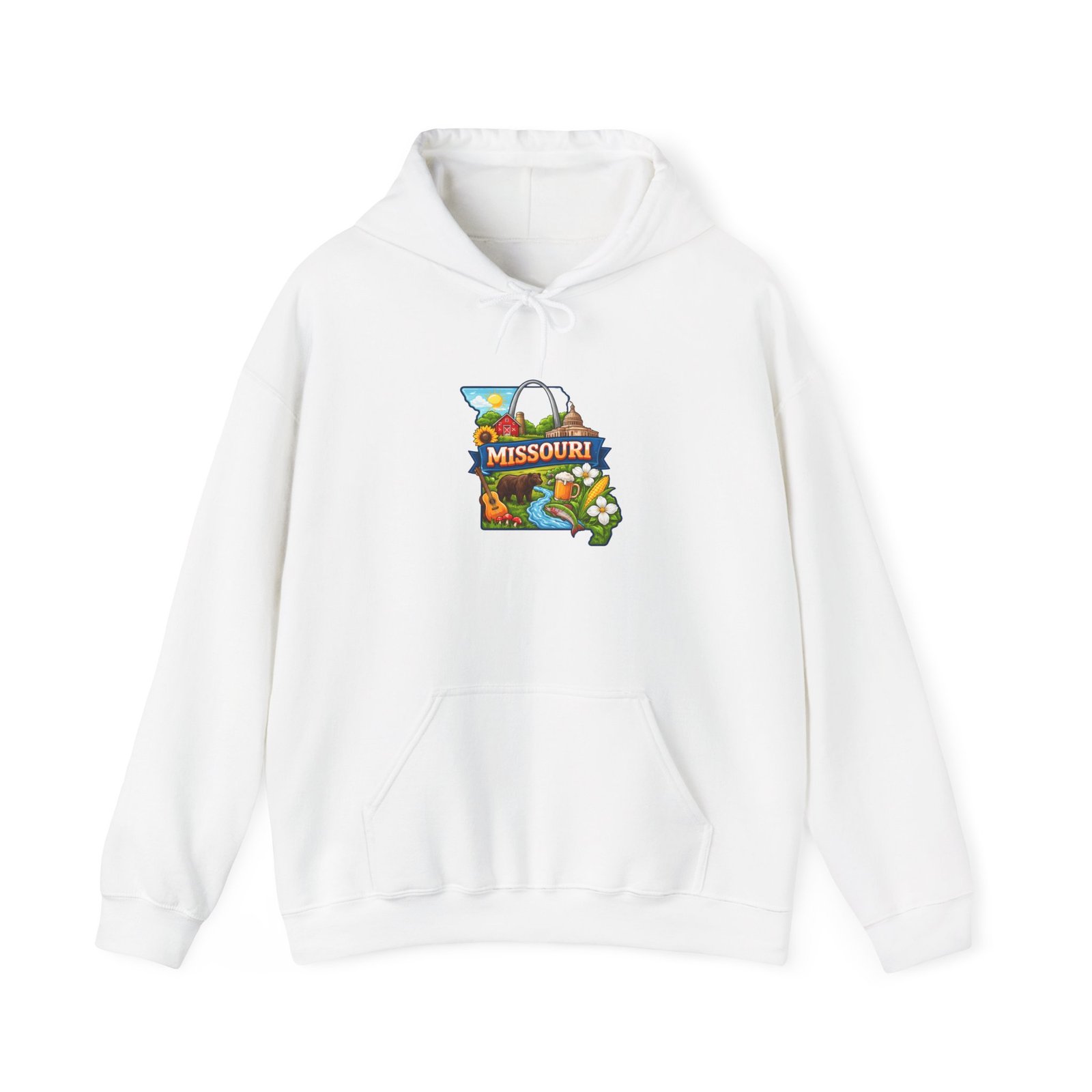 This cozy hooded sweatshirt carries a warm, small-town vibe with a colorful Missouri-themed patch at the chest. The mid-weight fleece blend wraps you in soft warmth on crisp mornings, while the roomy kangaroo pocket and double-lined hood invite slow walks, coffee stops, and long drives down familiar backroads. Subtle, durable prints and optional embroidery keep the design feeling handmade and personal — a sweatshirt that settles into your day and starts to feel like home.