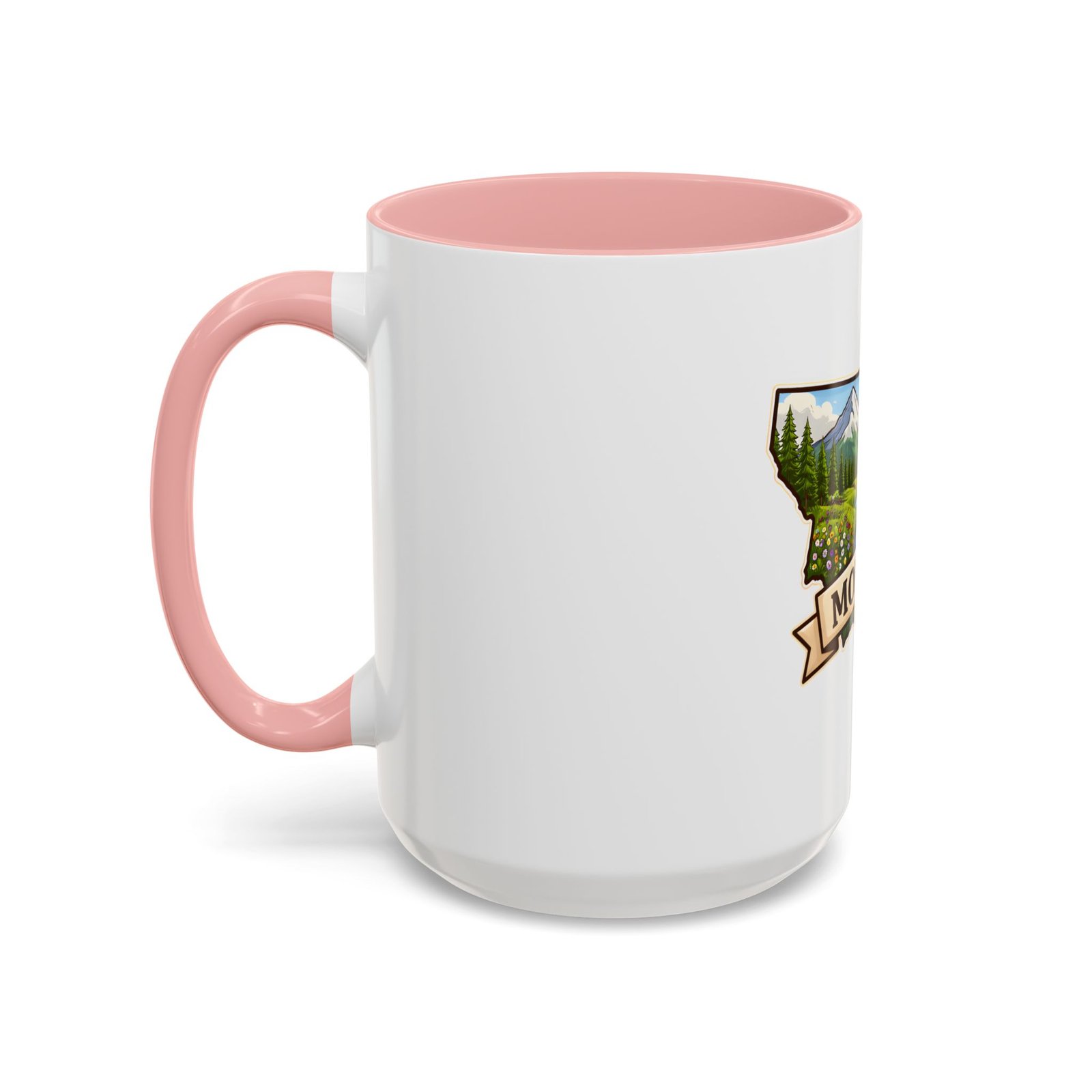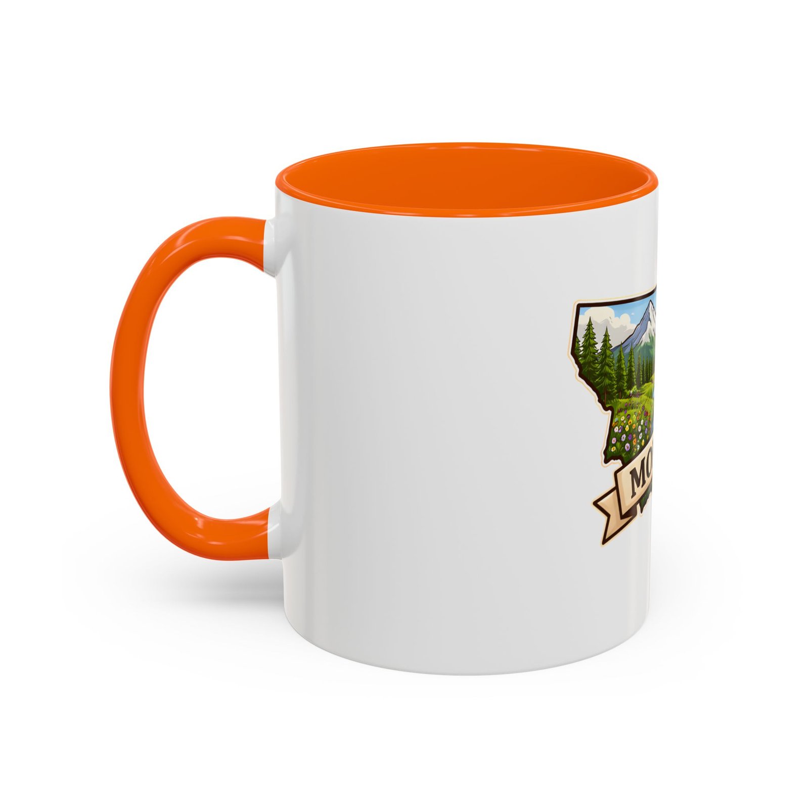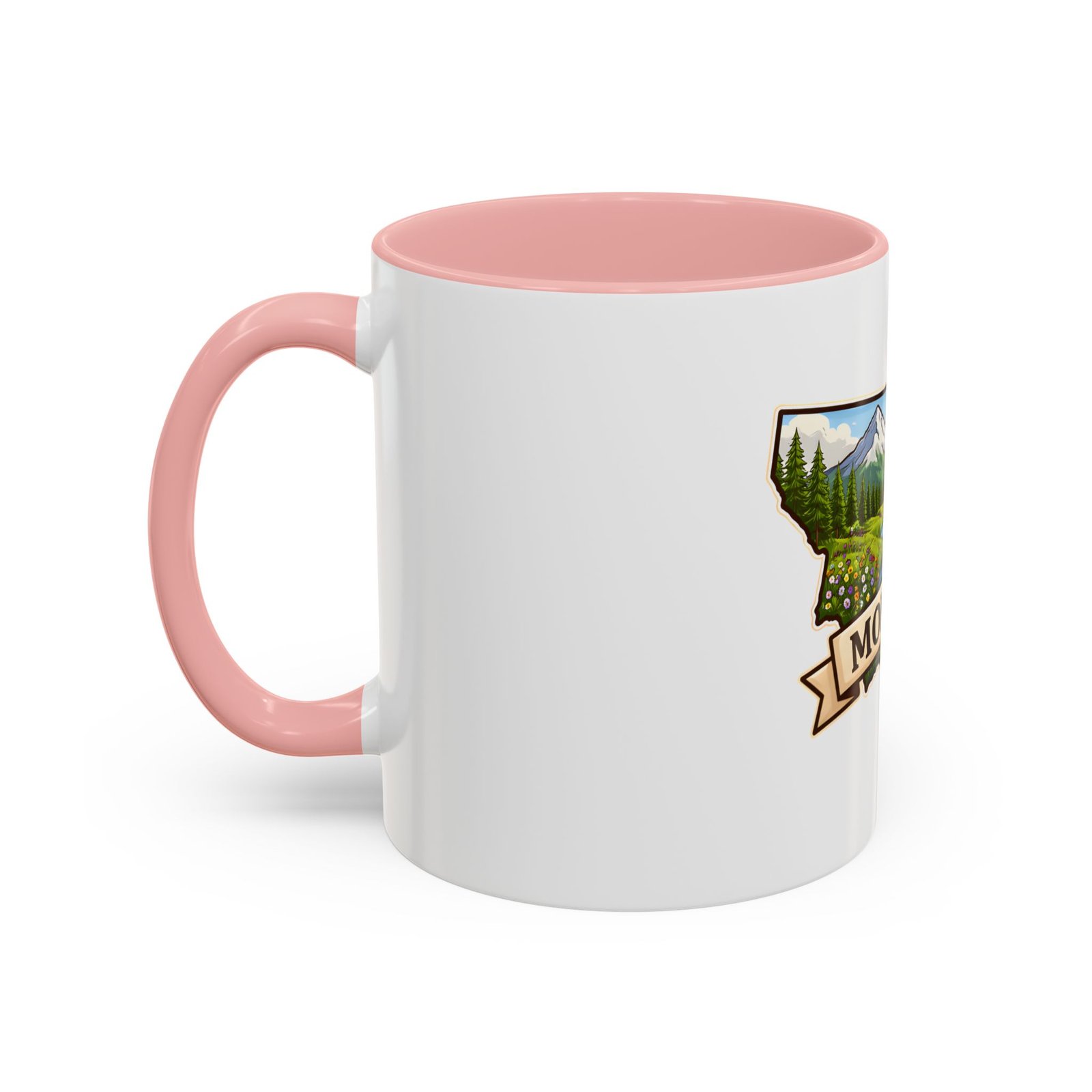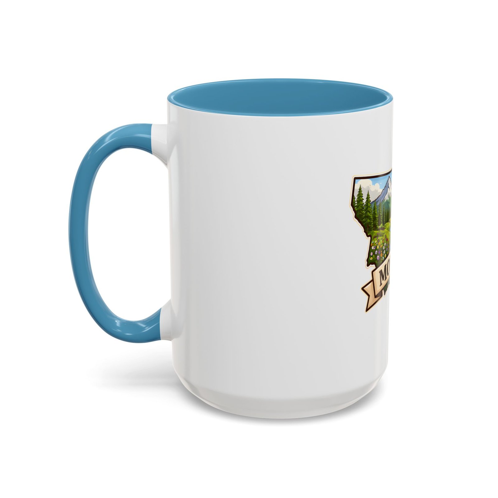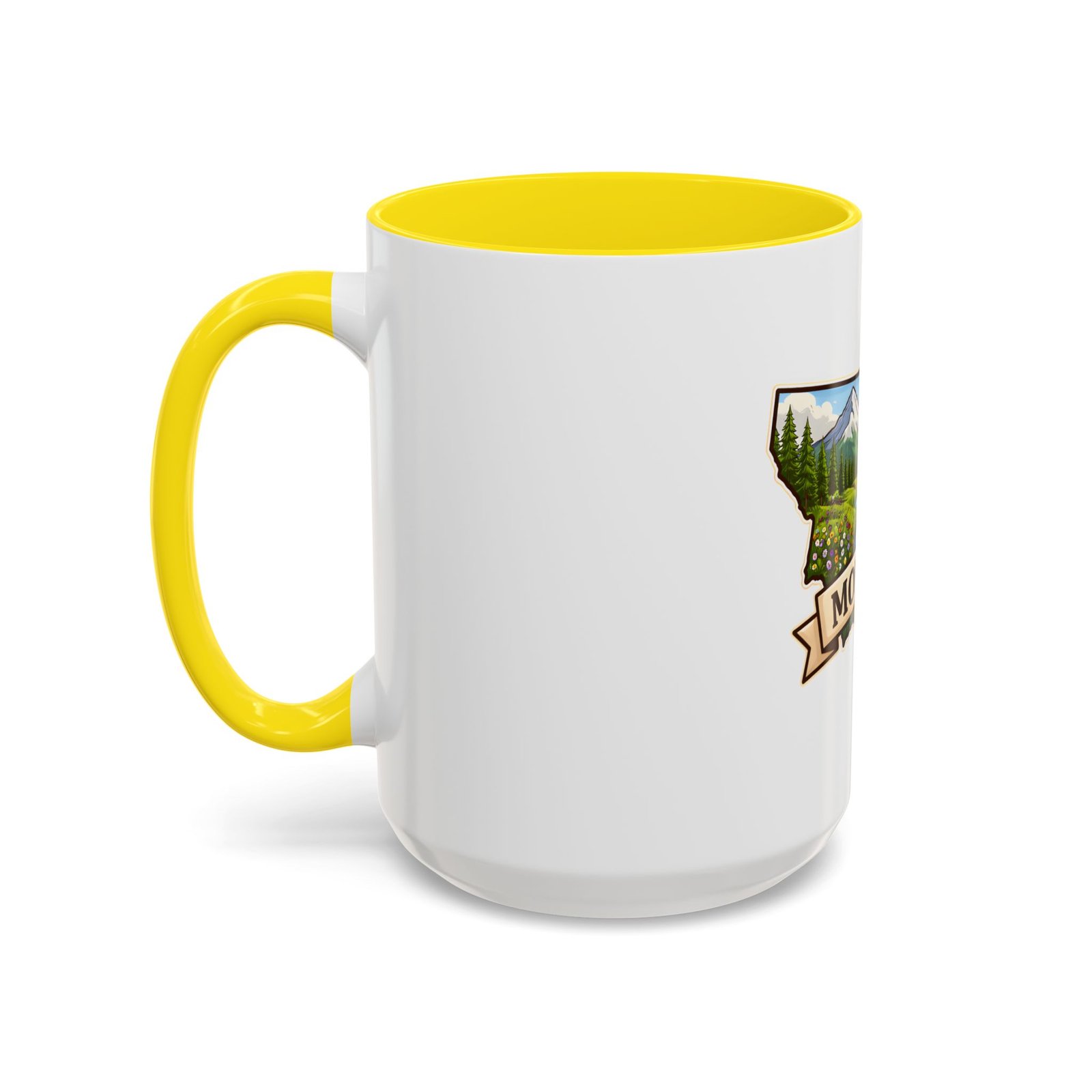 Wake to a crisp, big-sky morning with this Montana accent mug. Bright, detailed artwork wraps the white ceramic body — a winding blue river, wildflower meadows, evergreen pines, snow-capped peaks and a proud elk framed by a vintage banner that reads “Montana.” The colored interior and handle add a bold contrast that makes the scene pop while the glossy finish keeps the image lively through daily use. Hold it on chilly porch mornings, beside a stack of maps, or as you plan the next trail. This mug feels like a quiet moment in the West: clear, grounded, and ready for whatever the day brings.