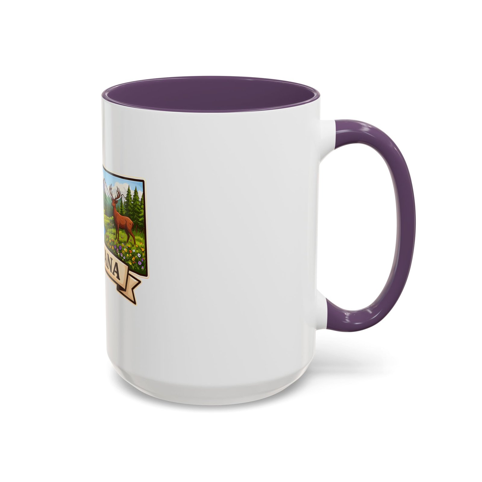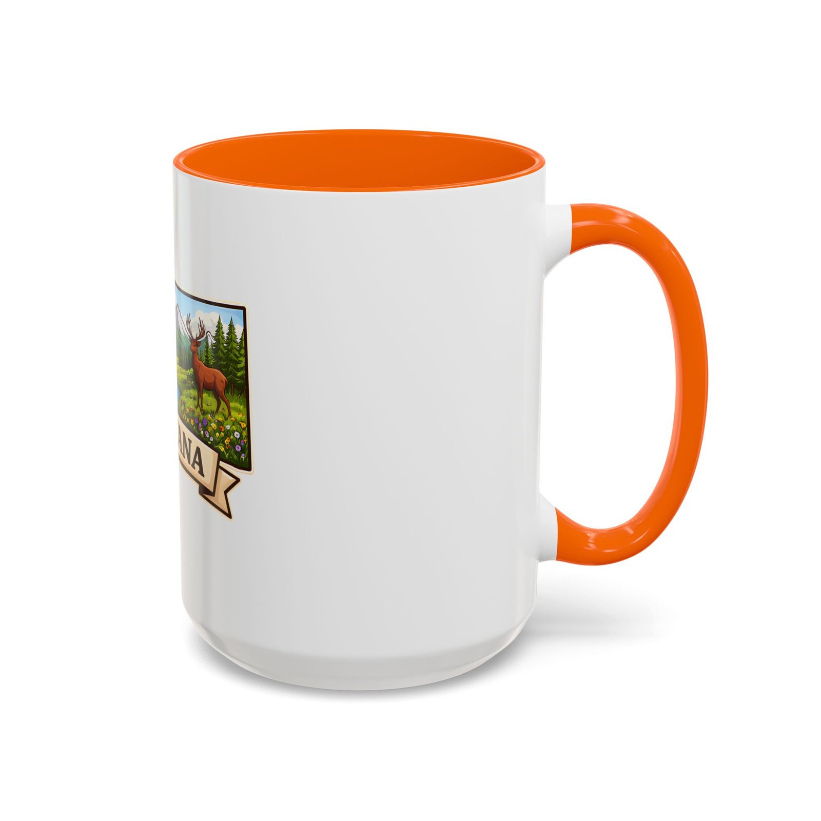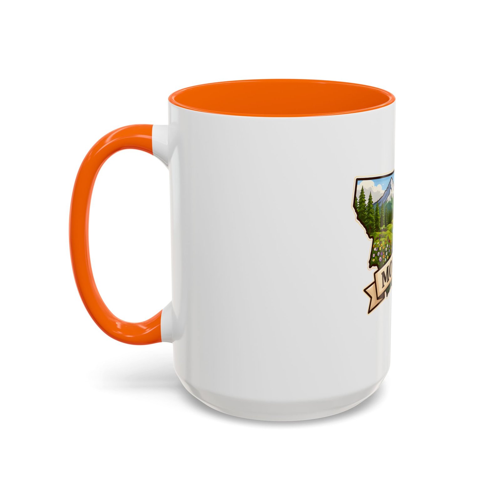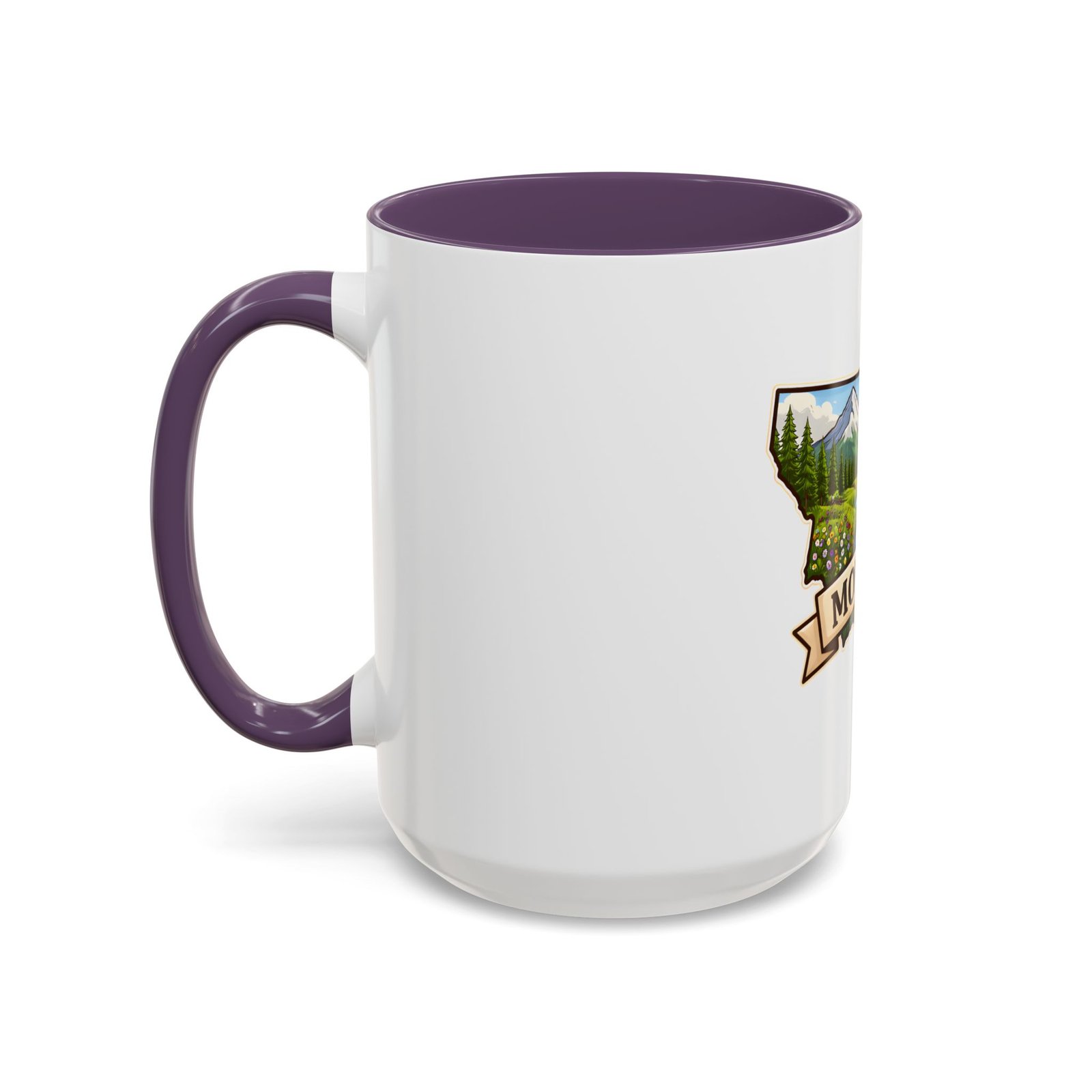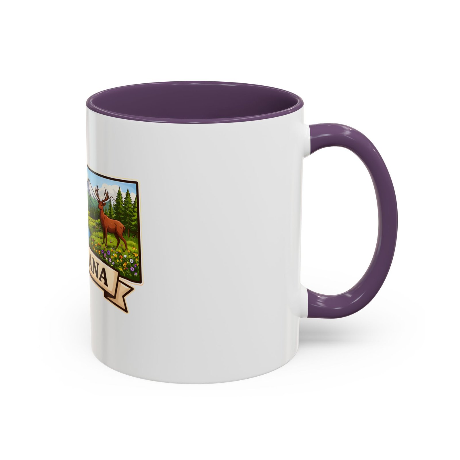 Wake to a crisp, big-sky morning with this Montana accent mug. Bright, detailed artwork wraps the white ceramic body — a winding blue river, wildflower meadows, evergreen pines, snow-capped peaks and a proud elk framed by a vintage banner that reads “Montana.” The colored interior and handle add a bold contrast that makes the scene pop while the glossy finish keeps the image lively through daily use. Hold it on chilly porch mornings, beside a stack of maps, or as you plan the next trail. This mug feels like a quiet moment in the West: clear, grounded, and ready for whatever the day brings.