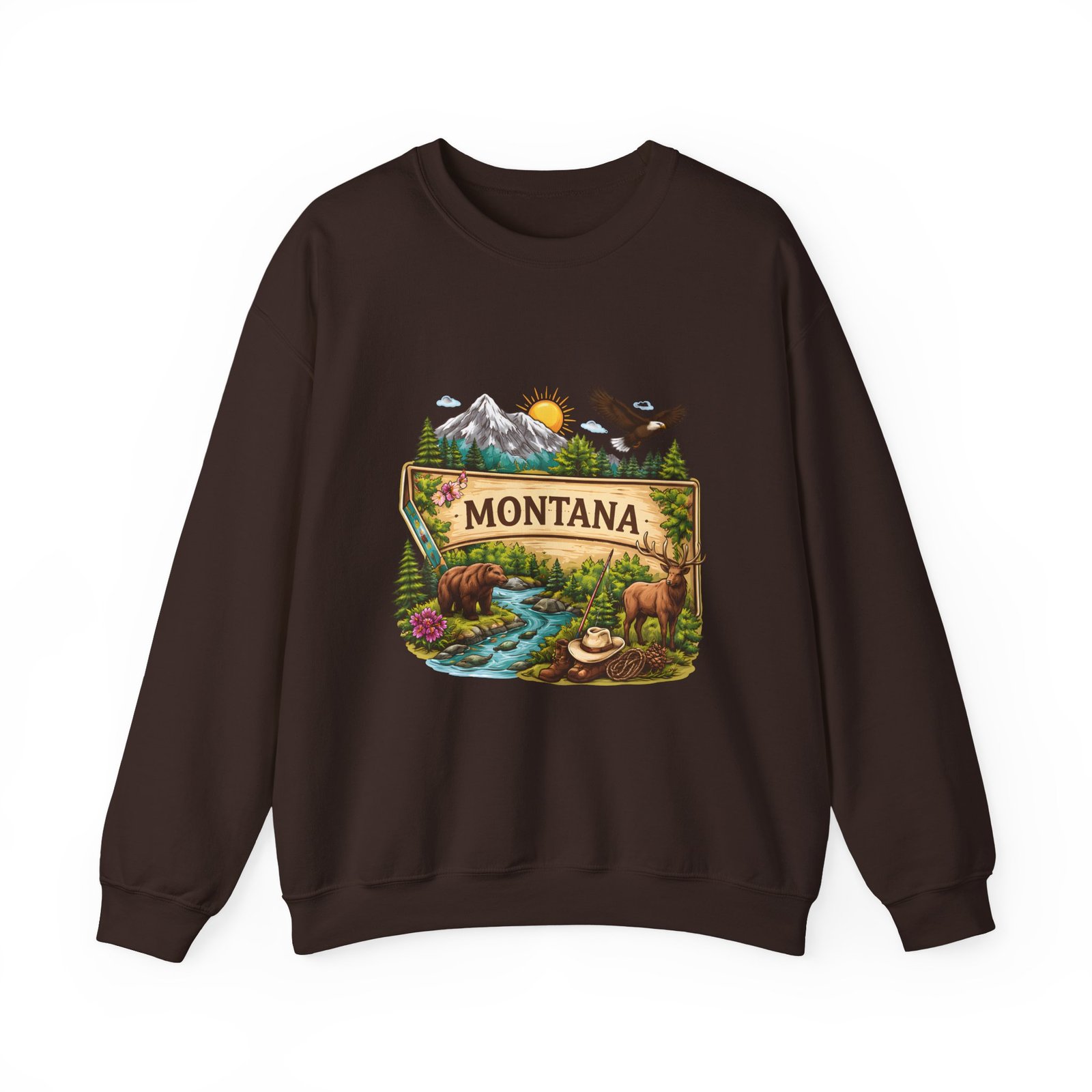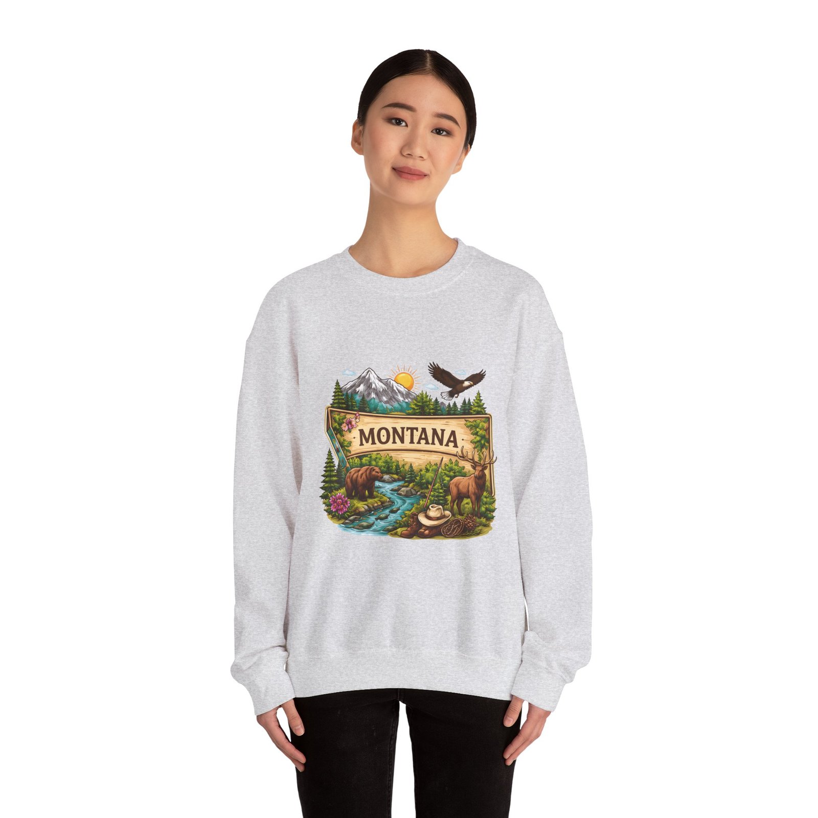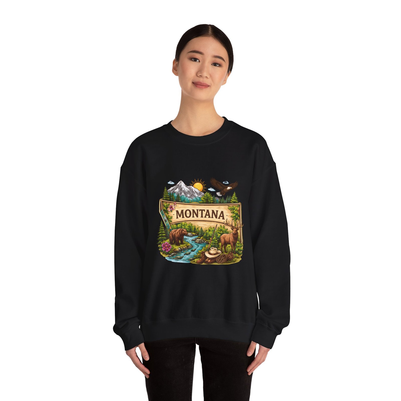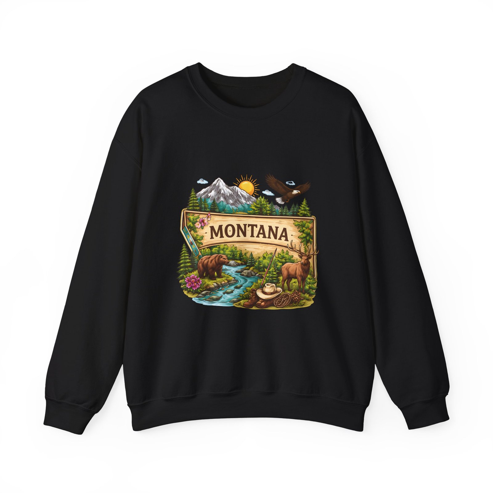 Montana Scenic Crewneck Sweatshirt — Mountain, Wildlife & River Graphic