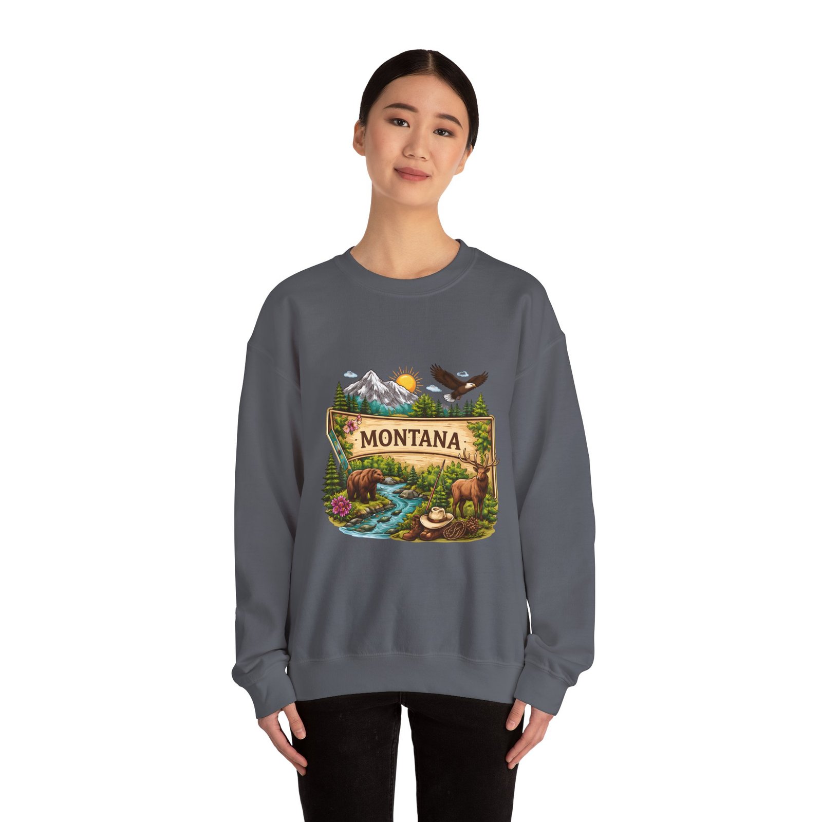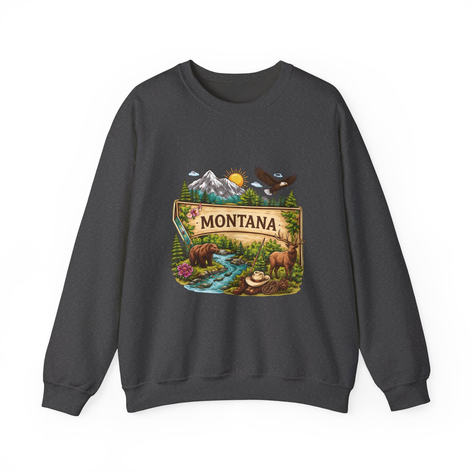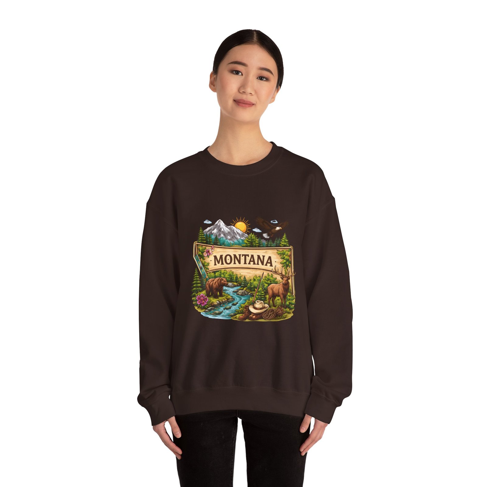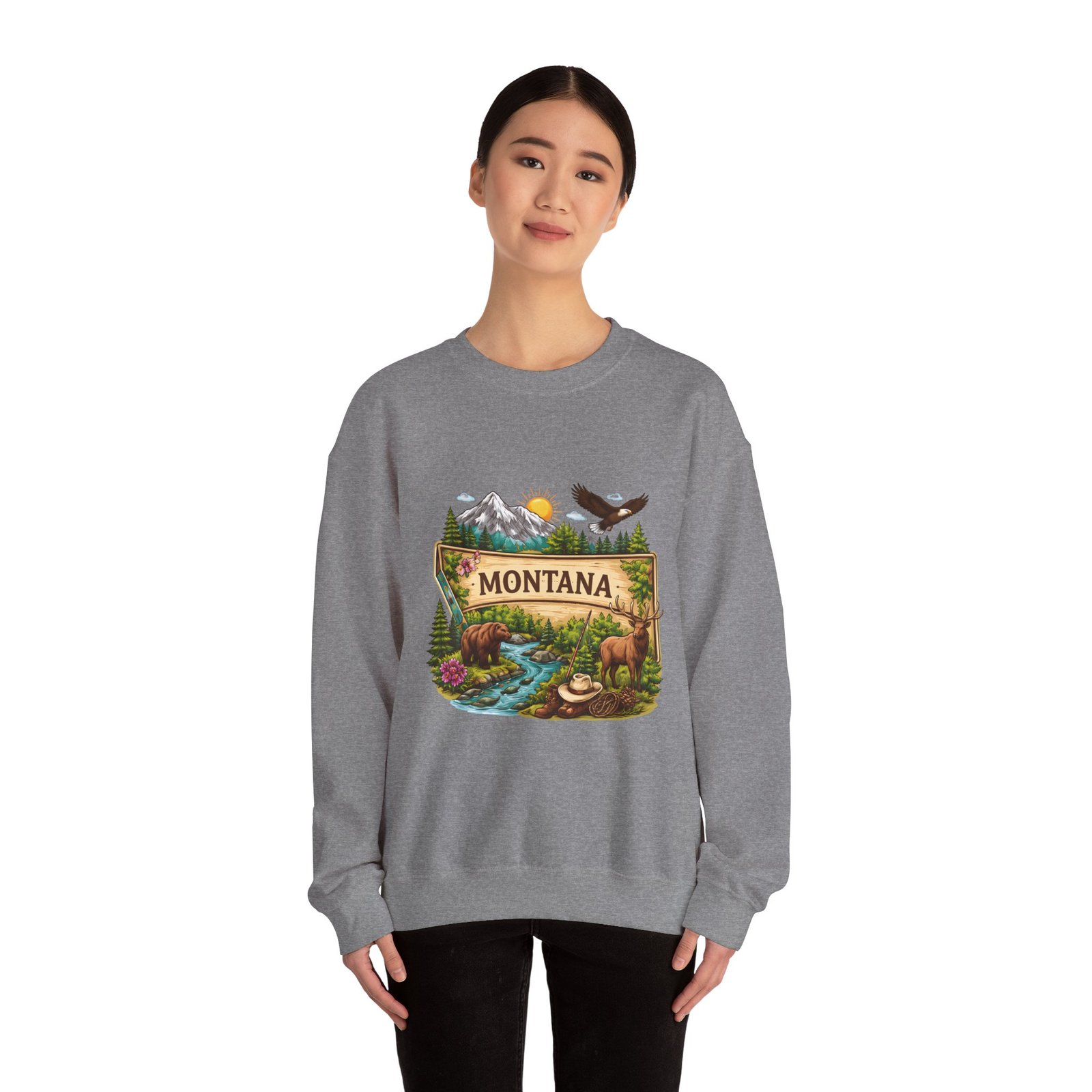 Montana Scenic Crewneck Sweatshirt — Mountain, Wildlife & River Graphic