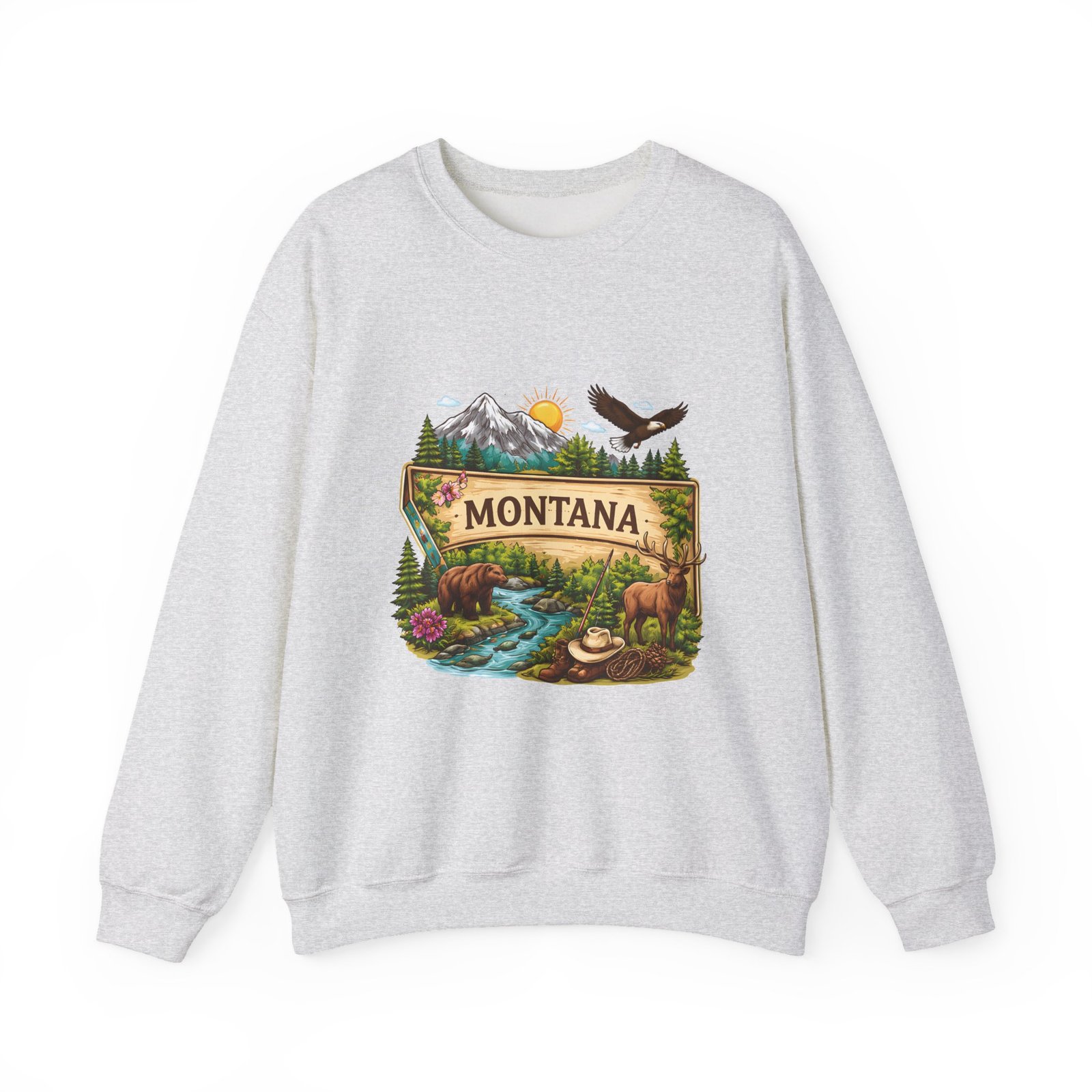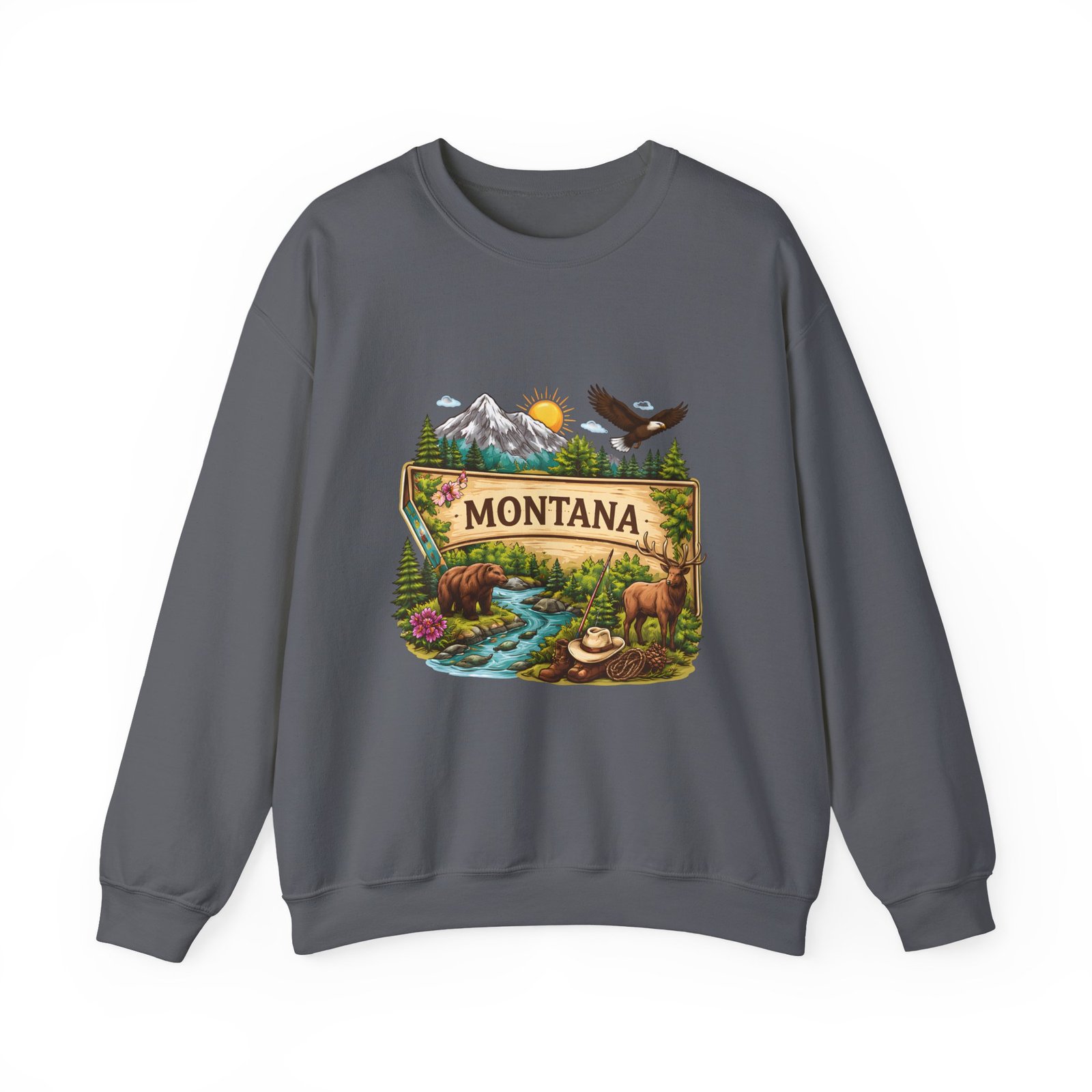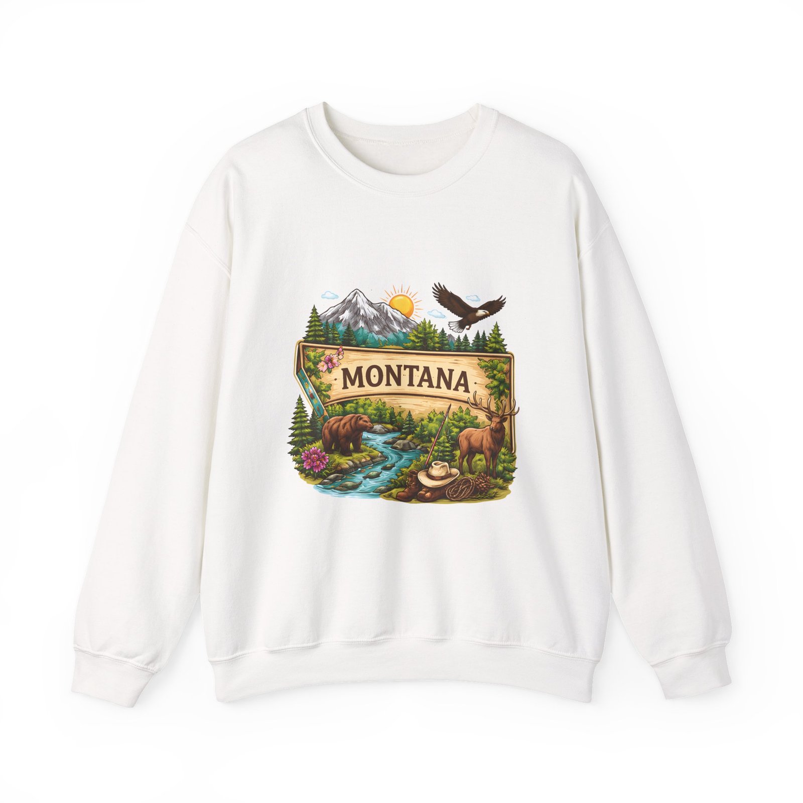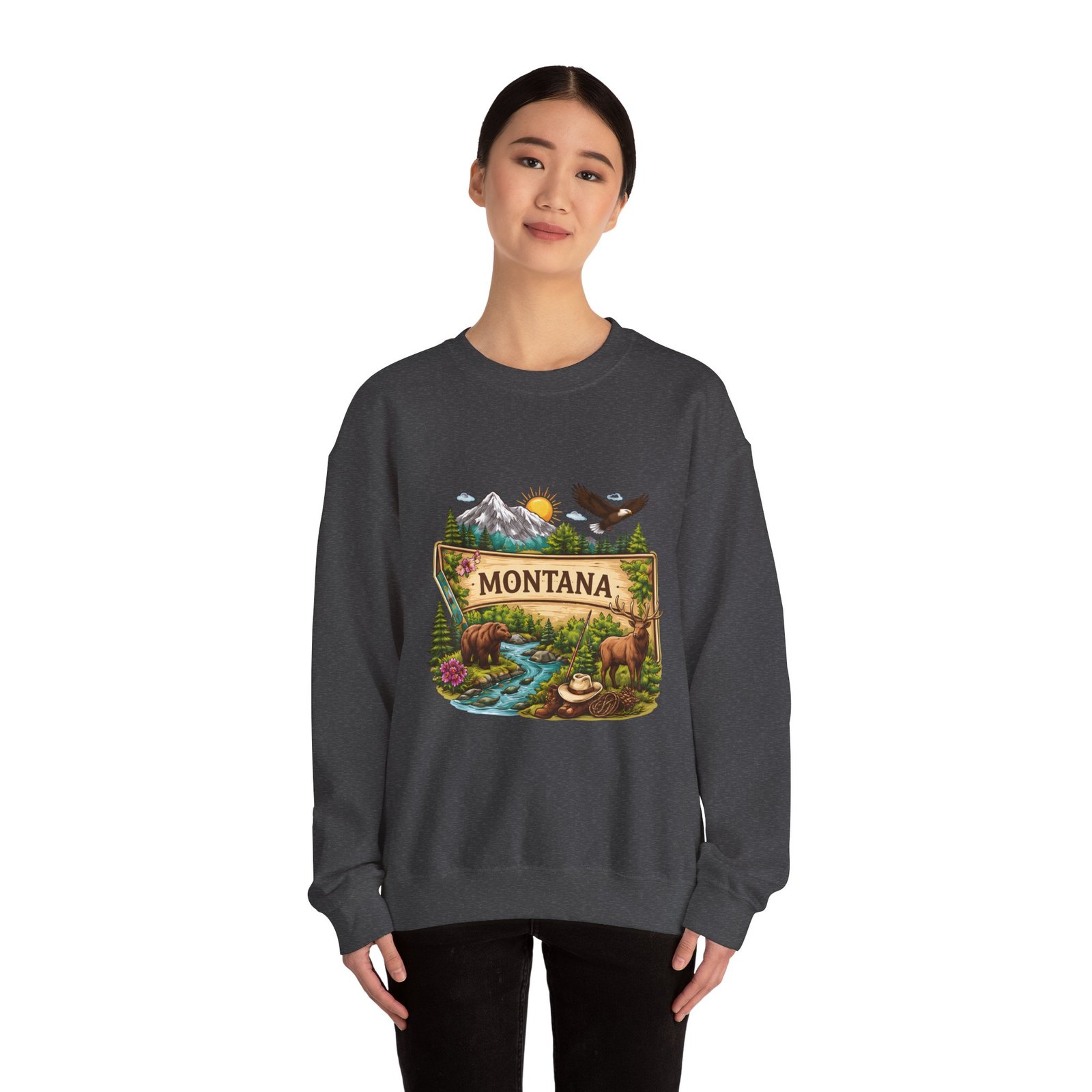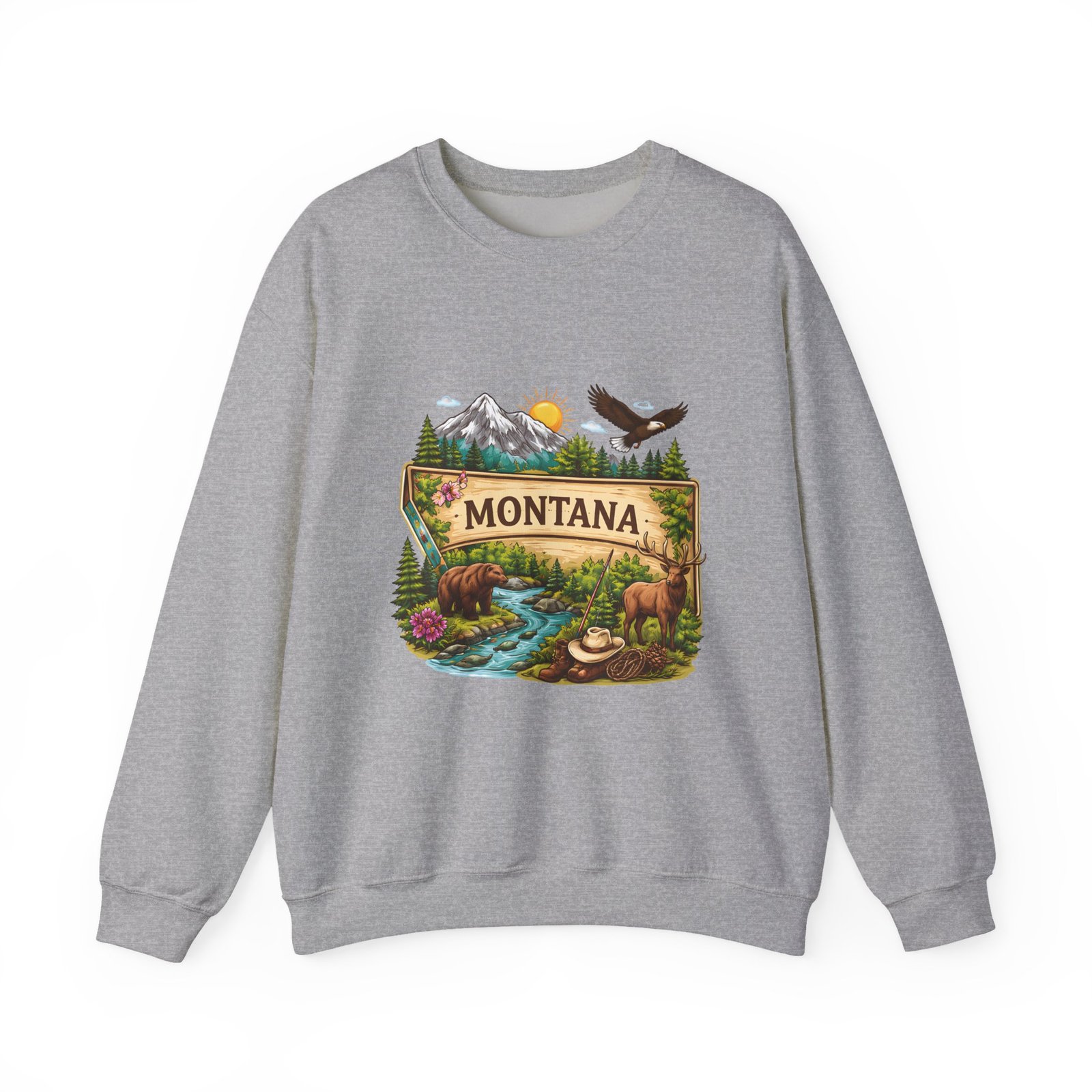 Montana Scenic Crewneck Sweatshirt — Mountain, Wildlife & River Graphic